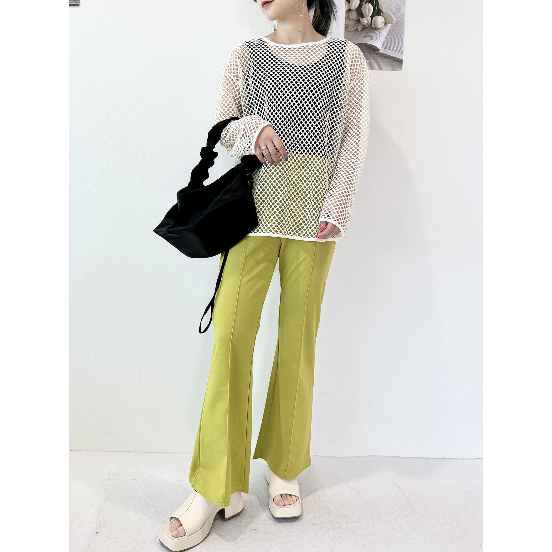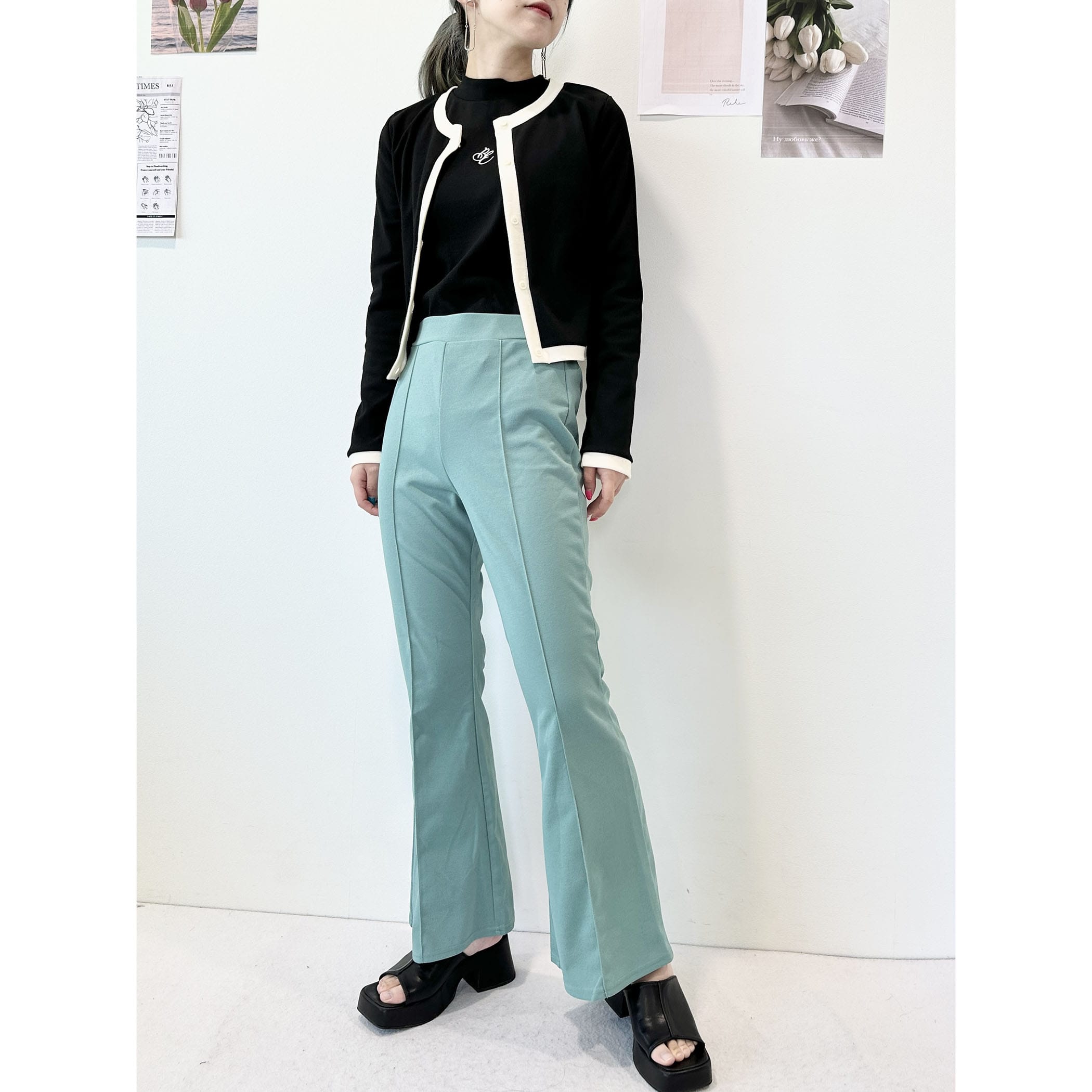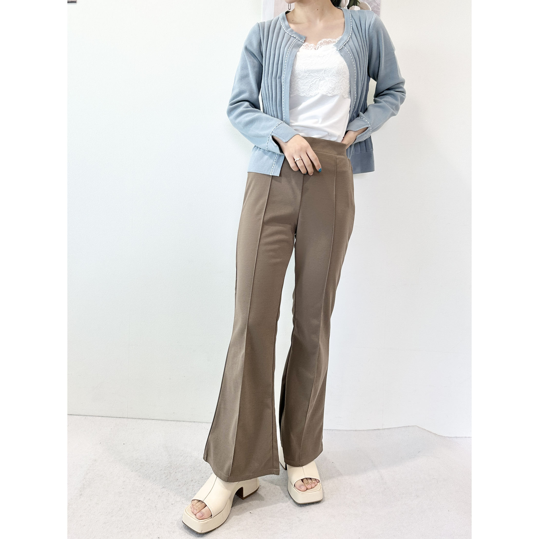 ストレッチあり履き心地抜群の美脚シルエットのセミフレアパンツ。
