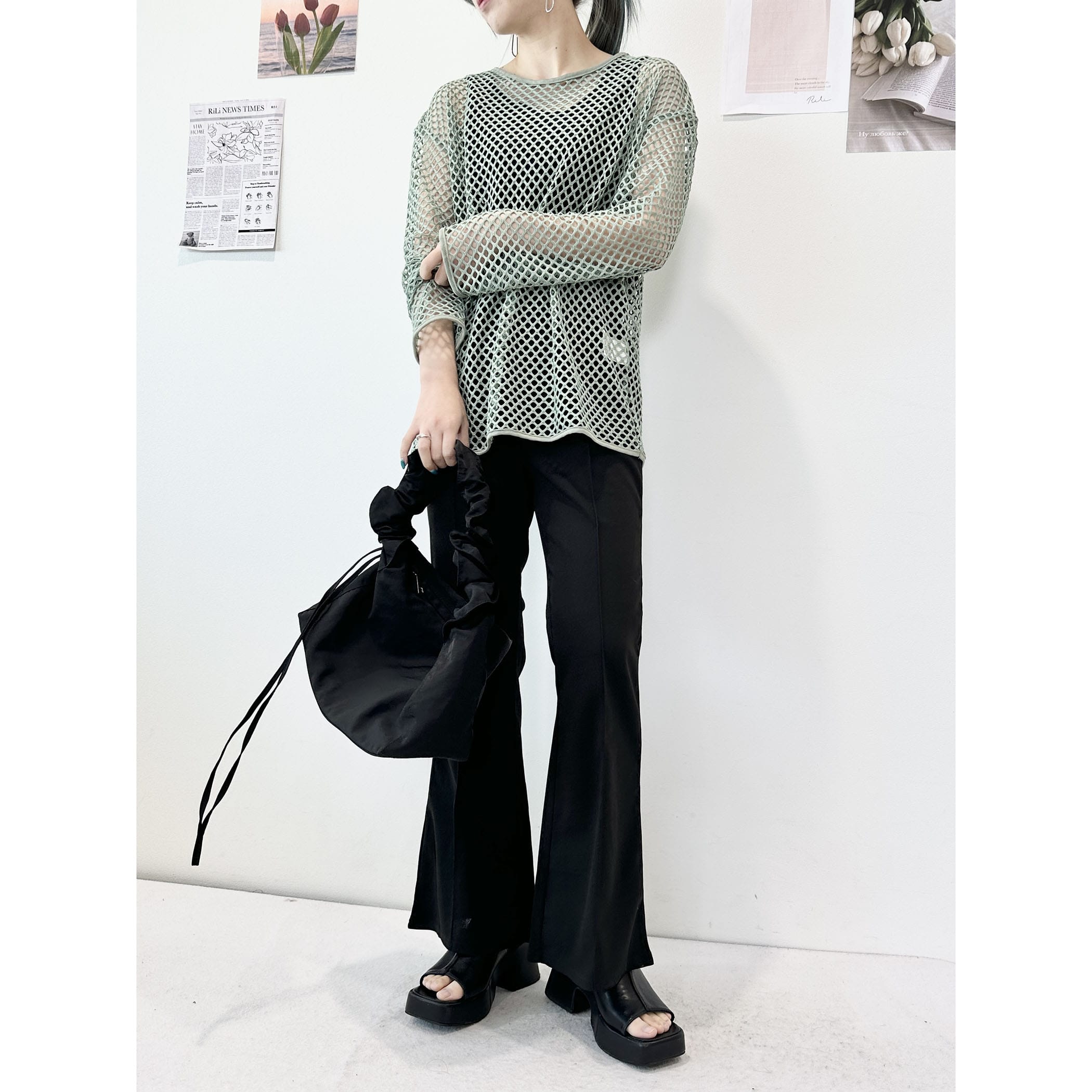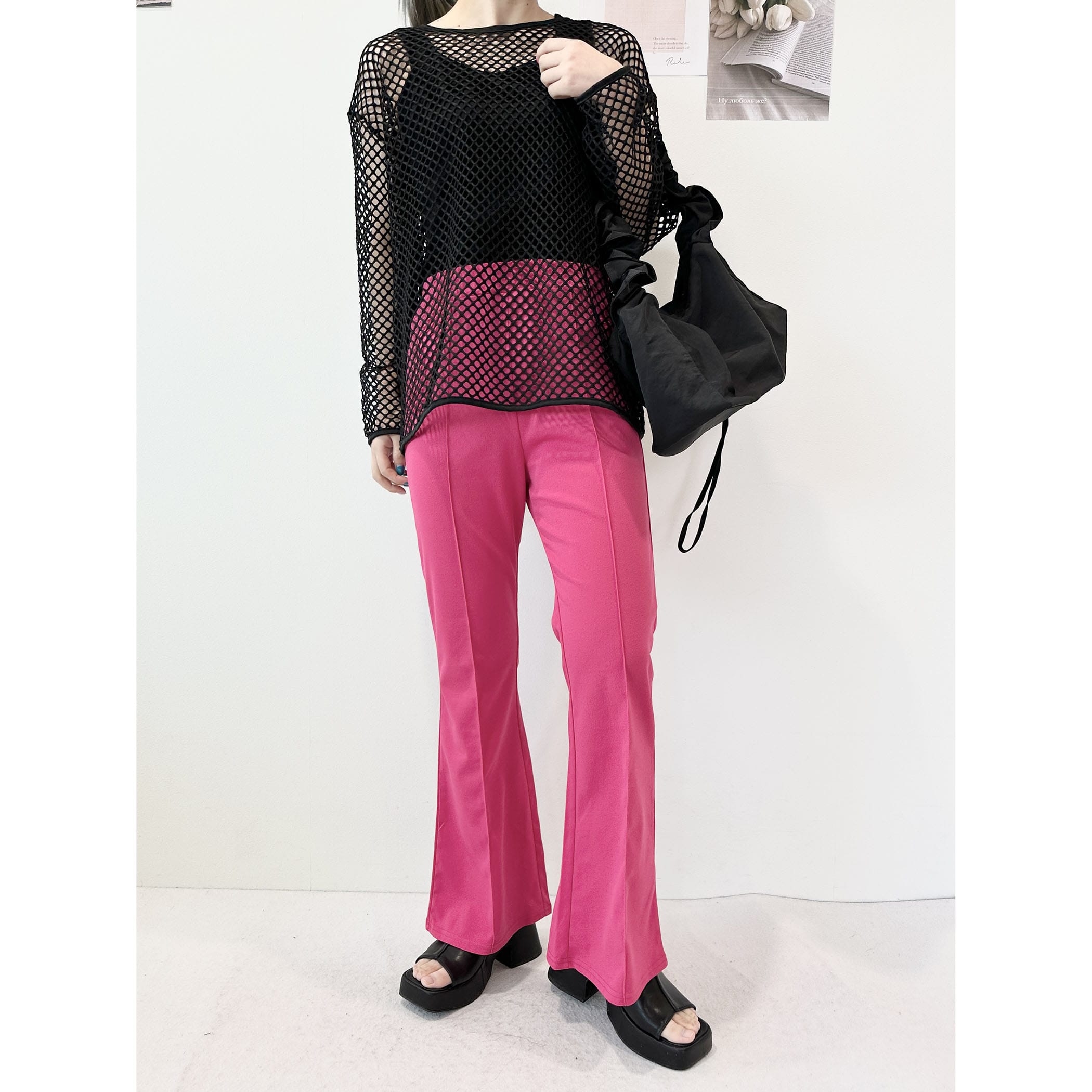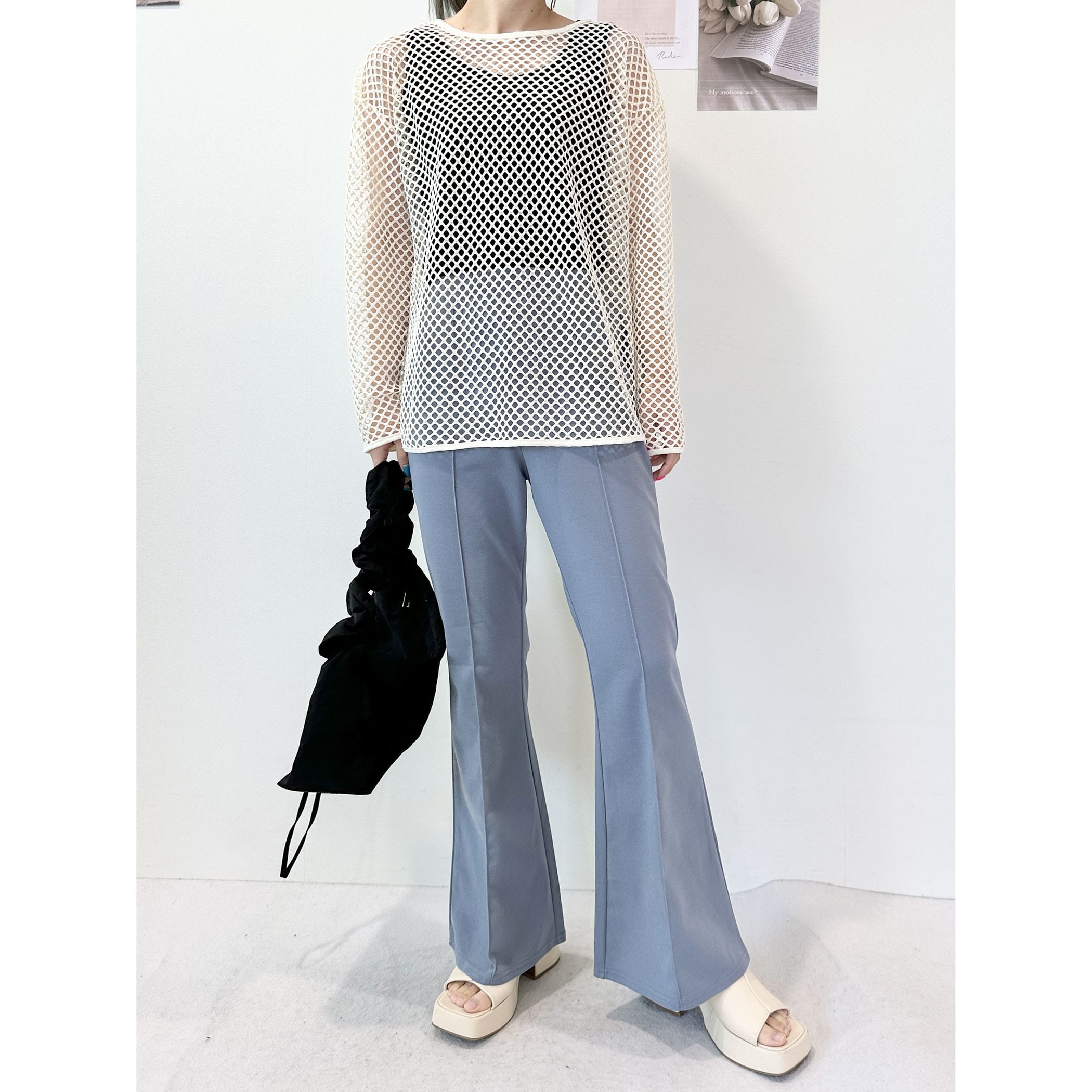 ストレッチあり履き心地抜群の美脚シルエットのセミフレアパンツ。