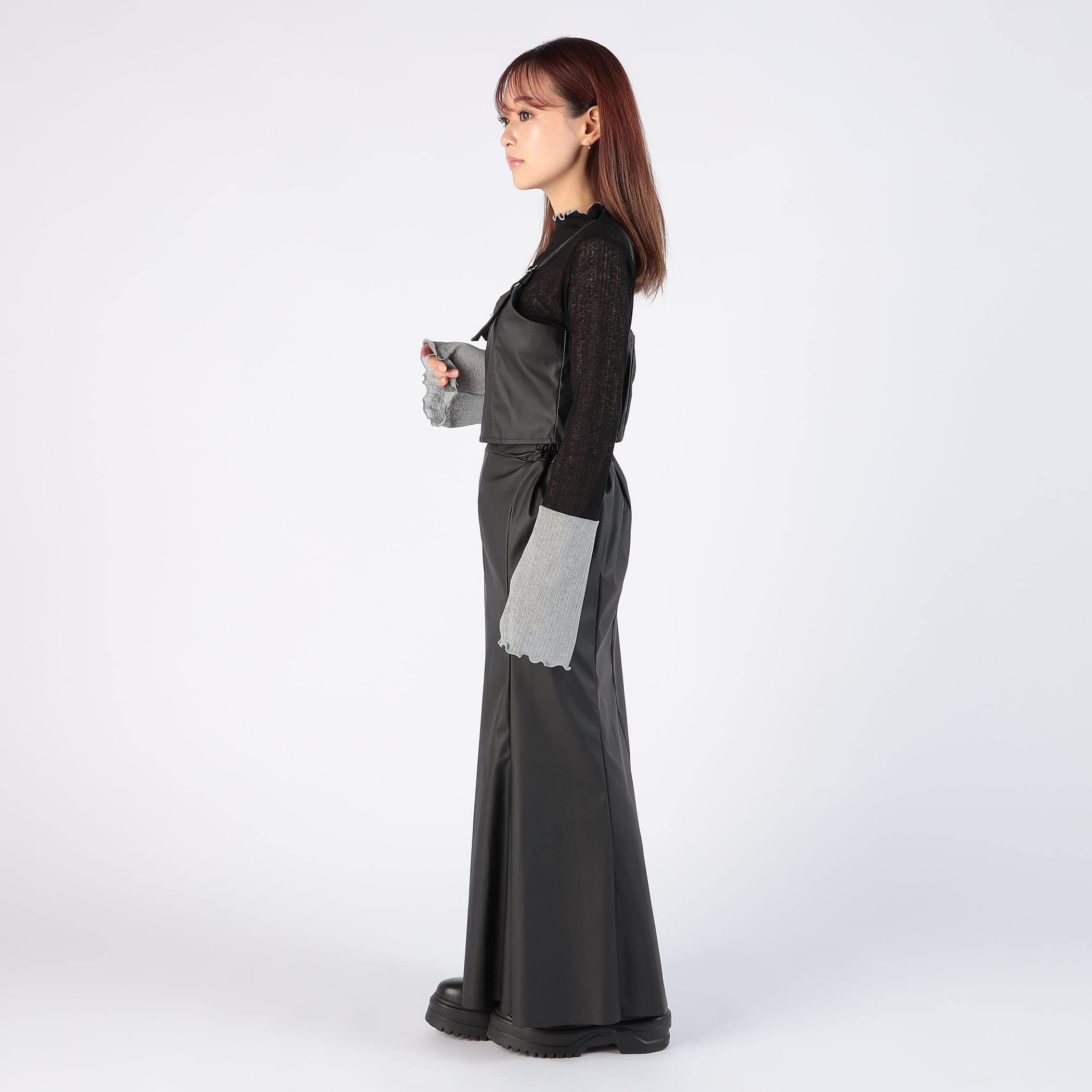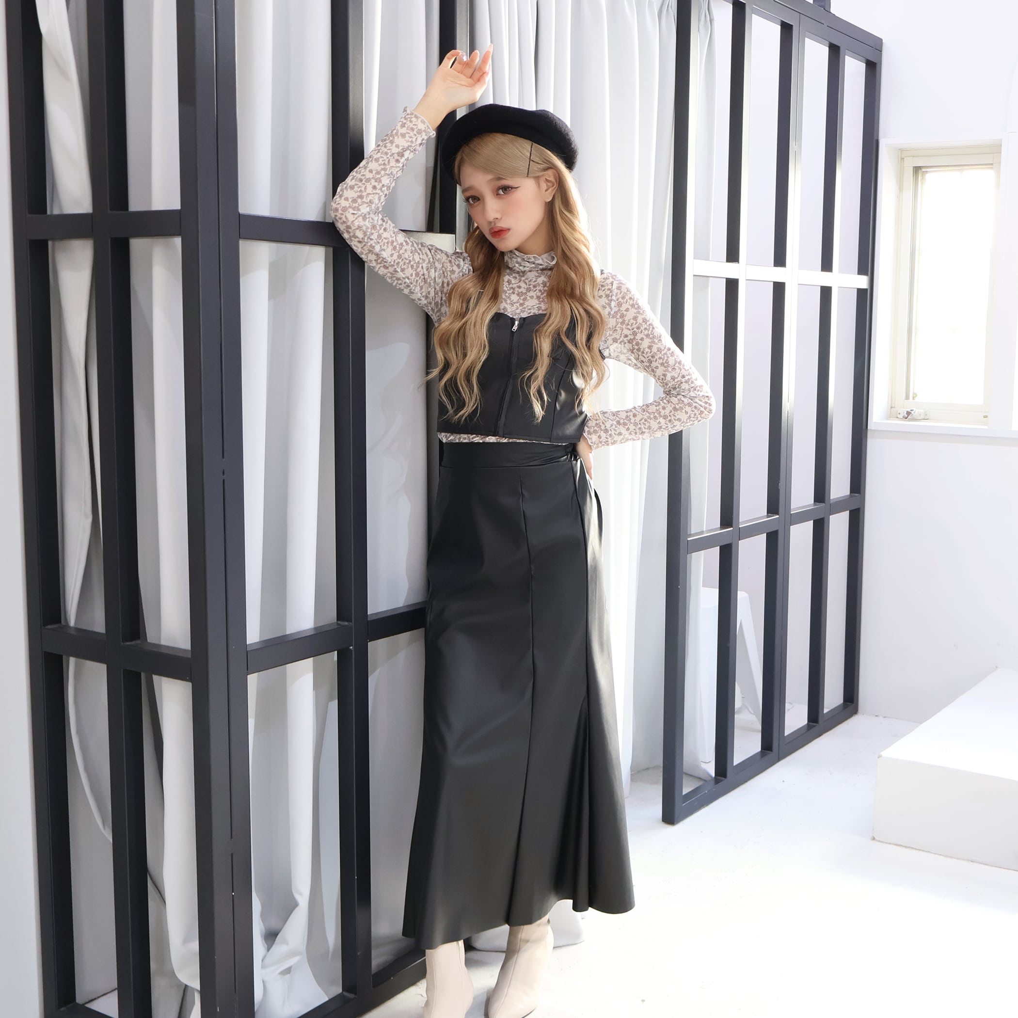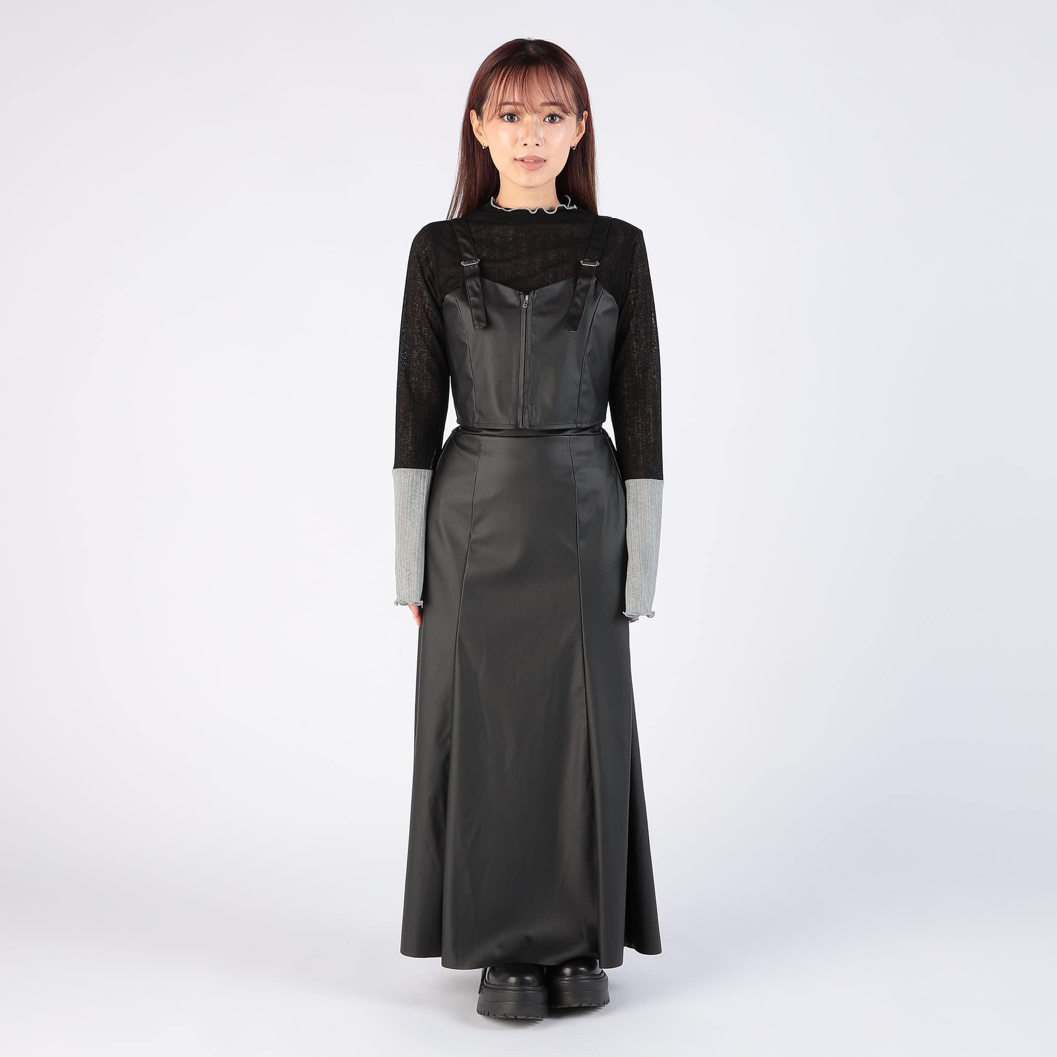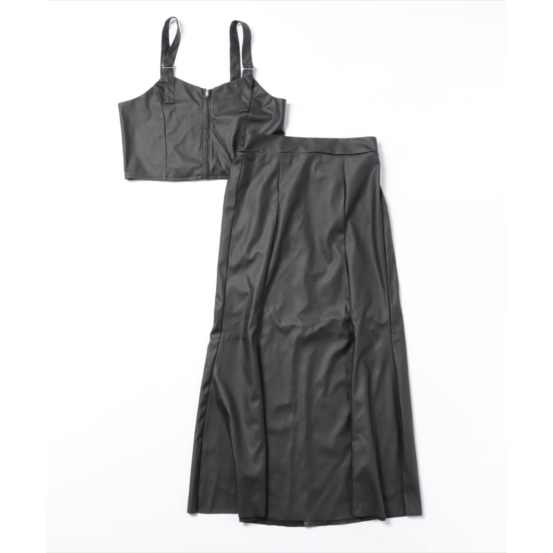 フロントジップで着脱楽ちんなビスチェは後ろゴムで着用時もストレスフリーです。スカートは足さばきも良くマーメイドシルエットでレディなスタイルに◎別々でも着回しやすいデザインも魅力です!