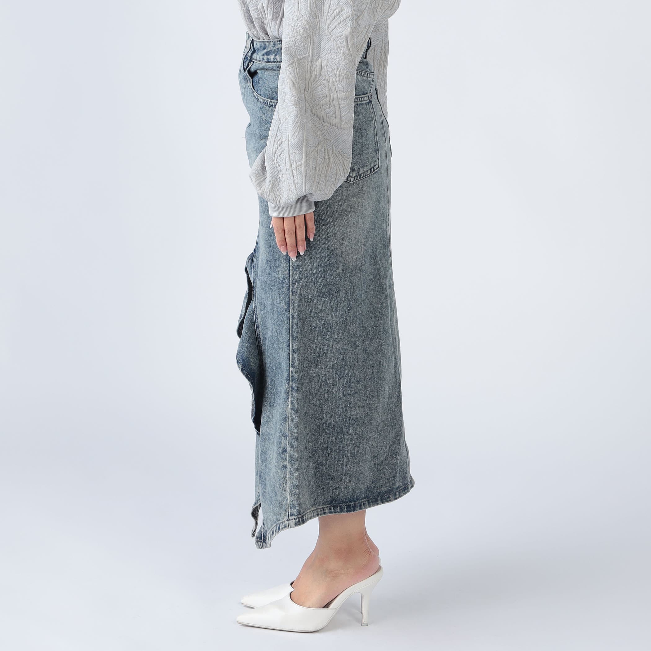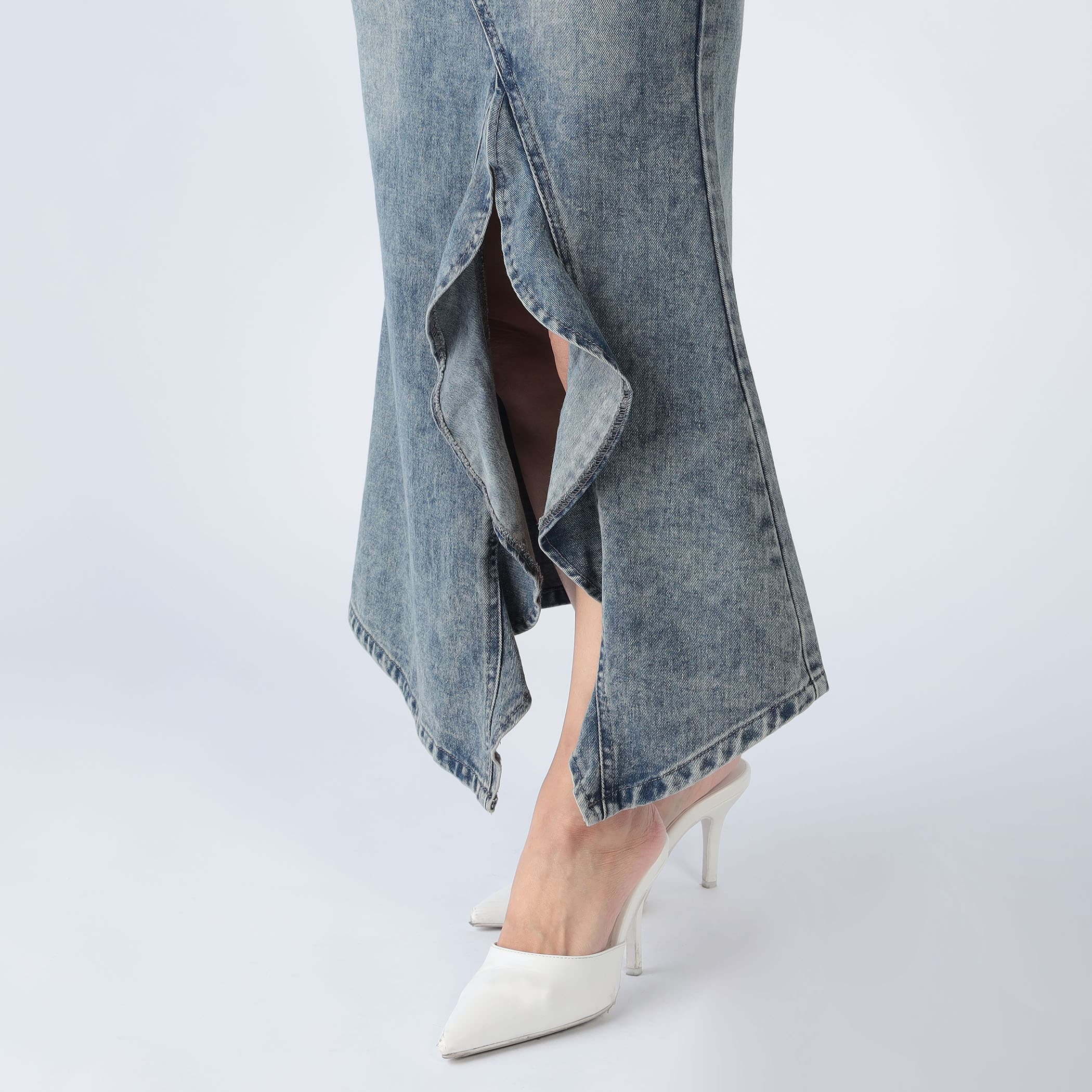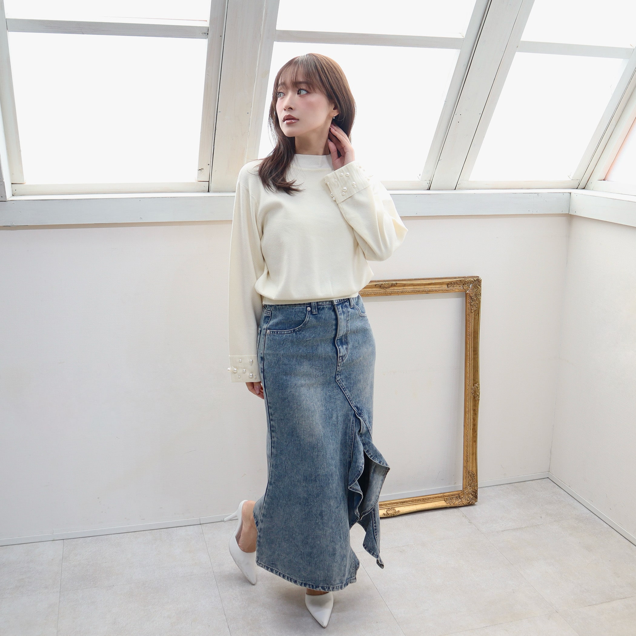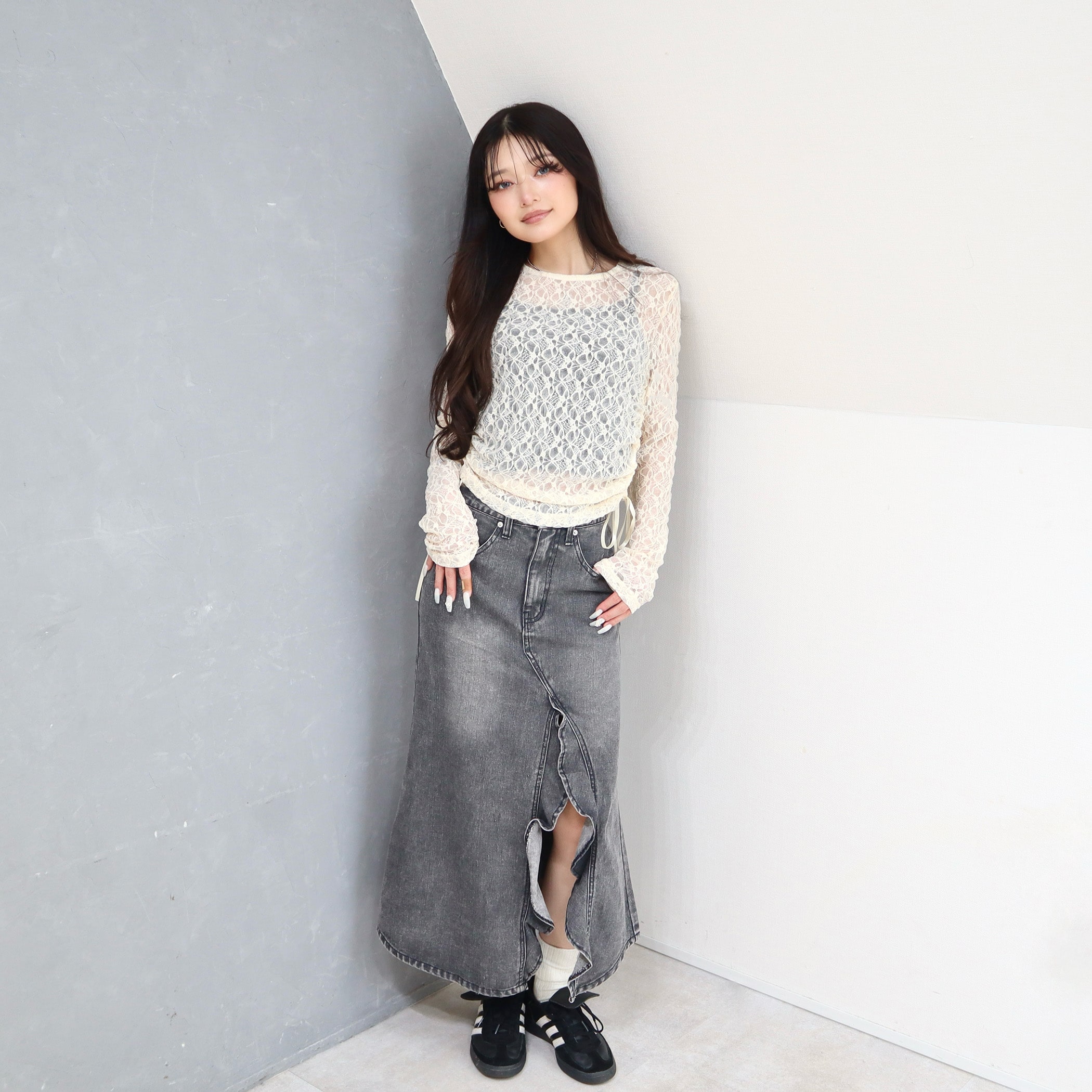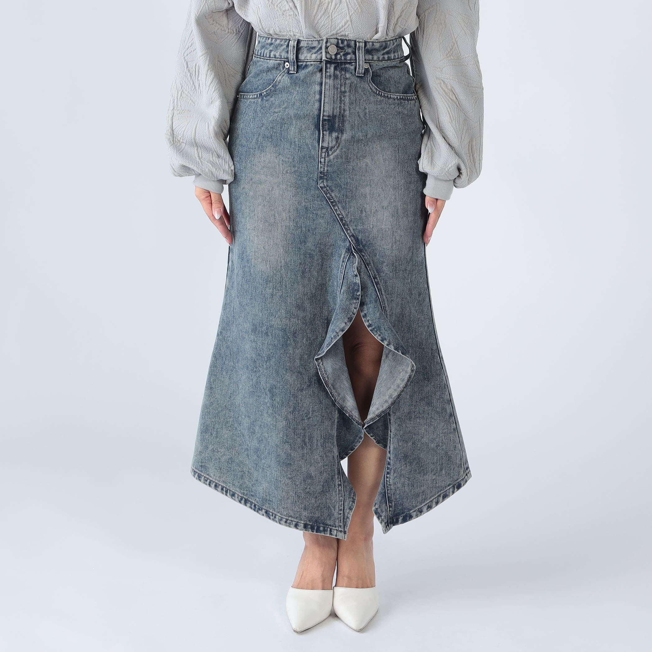 フリルのスリットがヘルシーに肌見せ◎スリットがあるので歩きやすい◎デザイン性のあるアイテムなので、1枚でコーデのポイントになります。