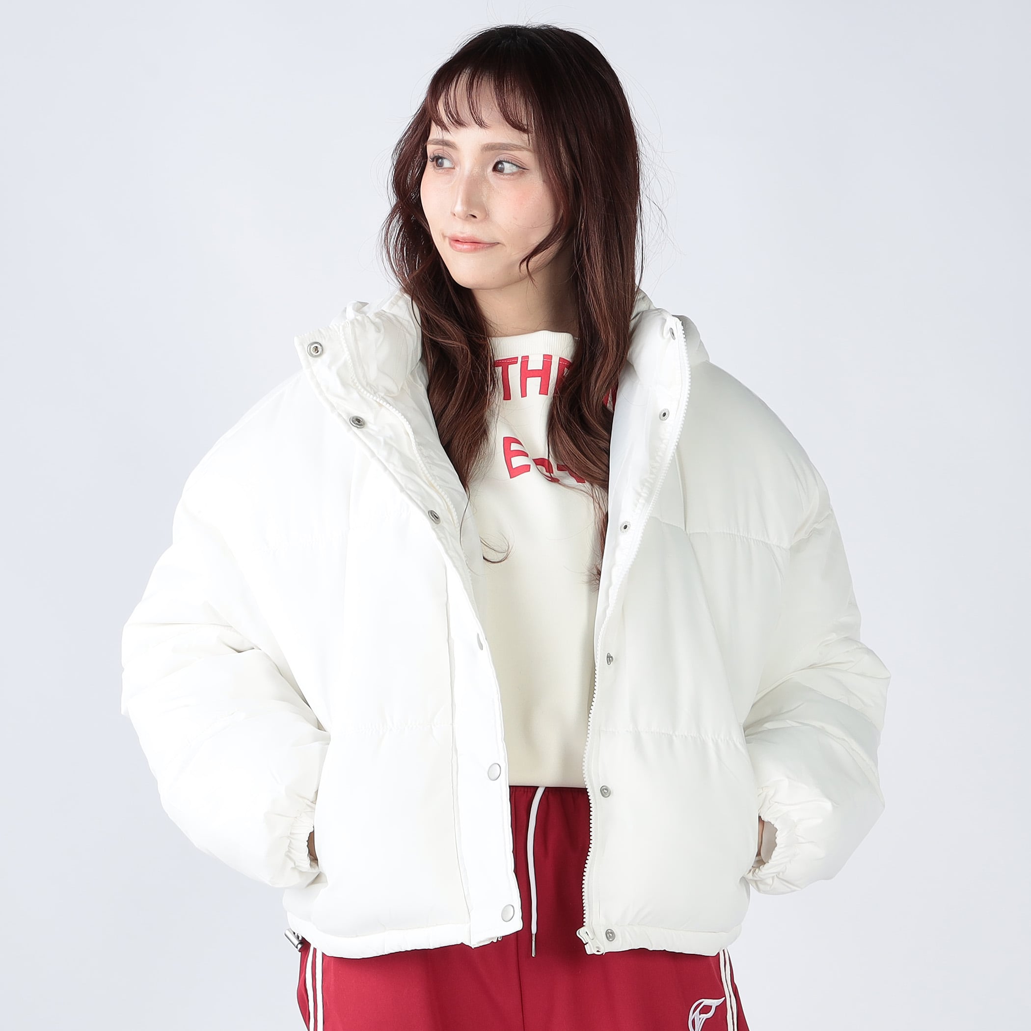 中綿キルトフード付きショートコート