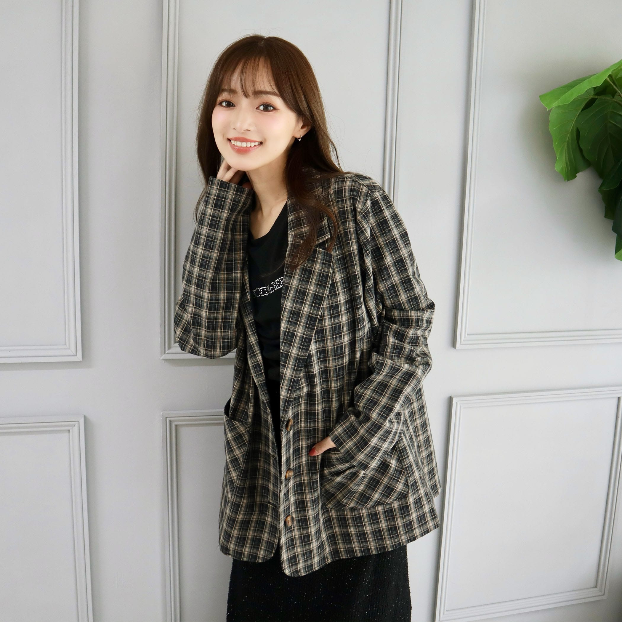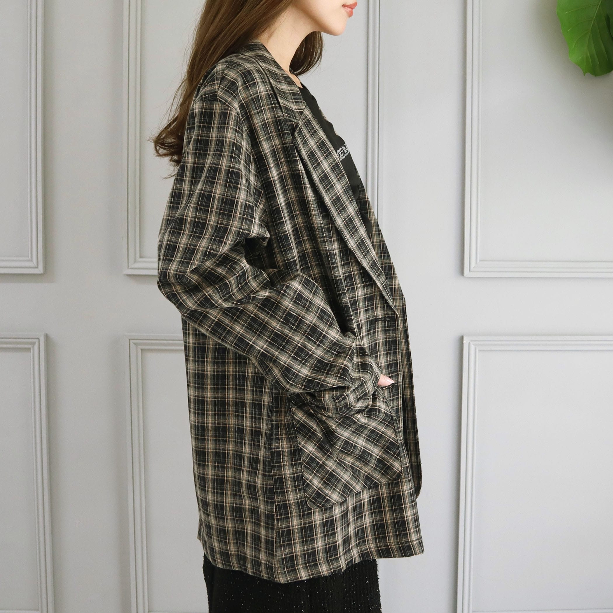 程よくゆったりとしたシルエットで、カジュアルからきれいめまで幅広く活躍するトレンドのチェックジャケット。落ちついたチェック柄が上品さを引き立て、羽織るだけでこなれ感を演出してくれます。シーズンレスに使いやすい程よい軽さと厚みの素材感で、ワンピスタイル~パンツルックまで着回しのきくアイテムです。