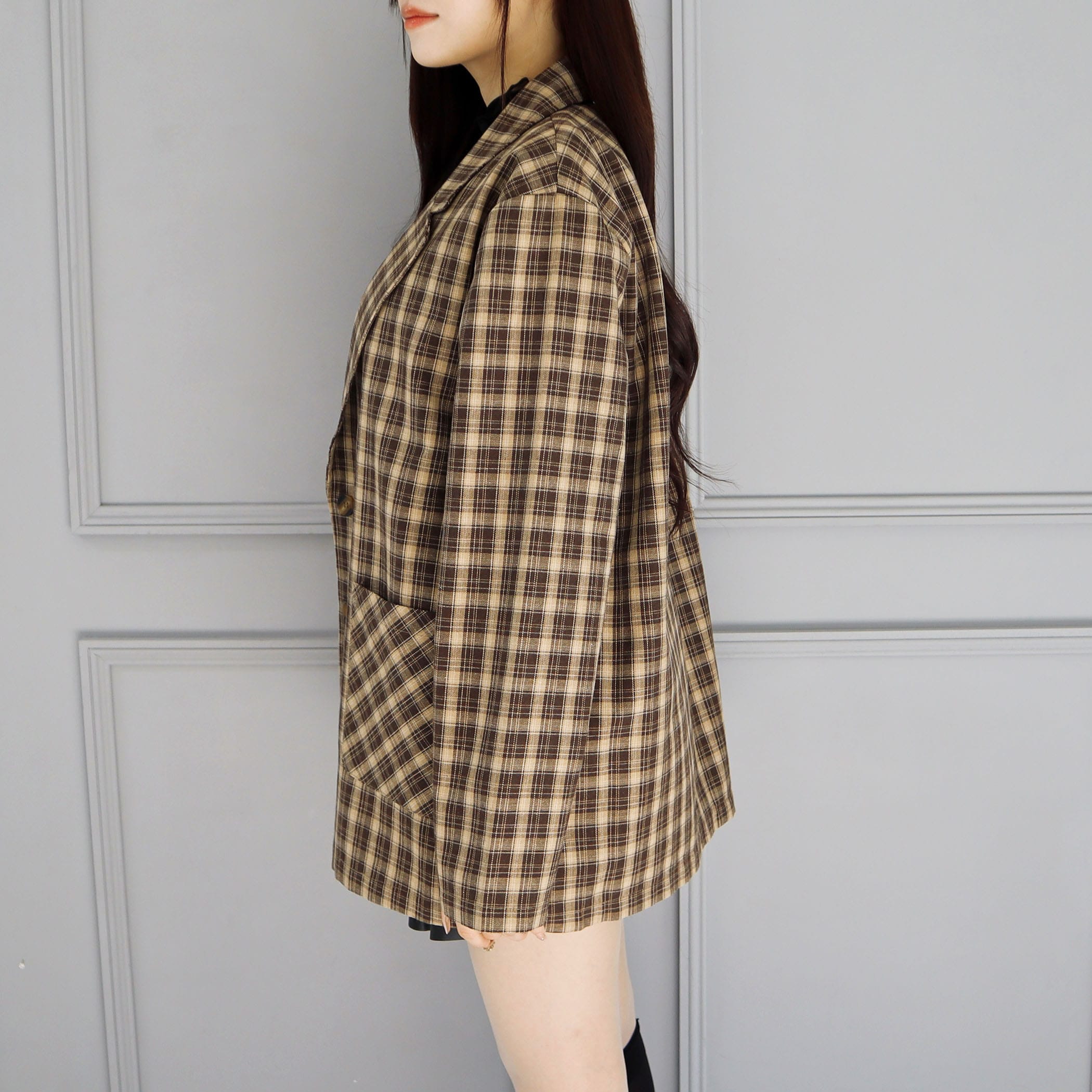 チェック柄シングルジャケット