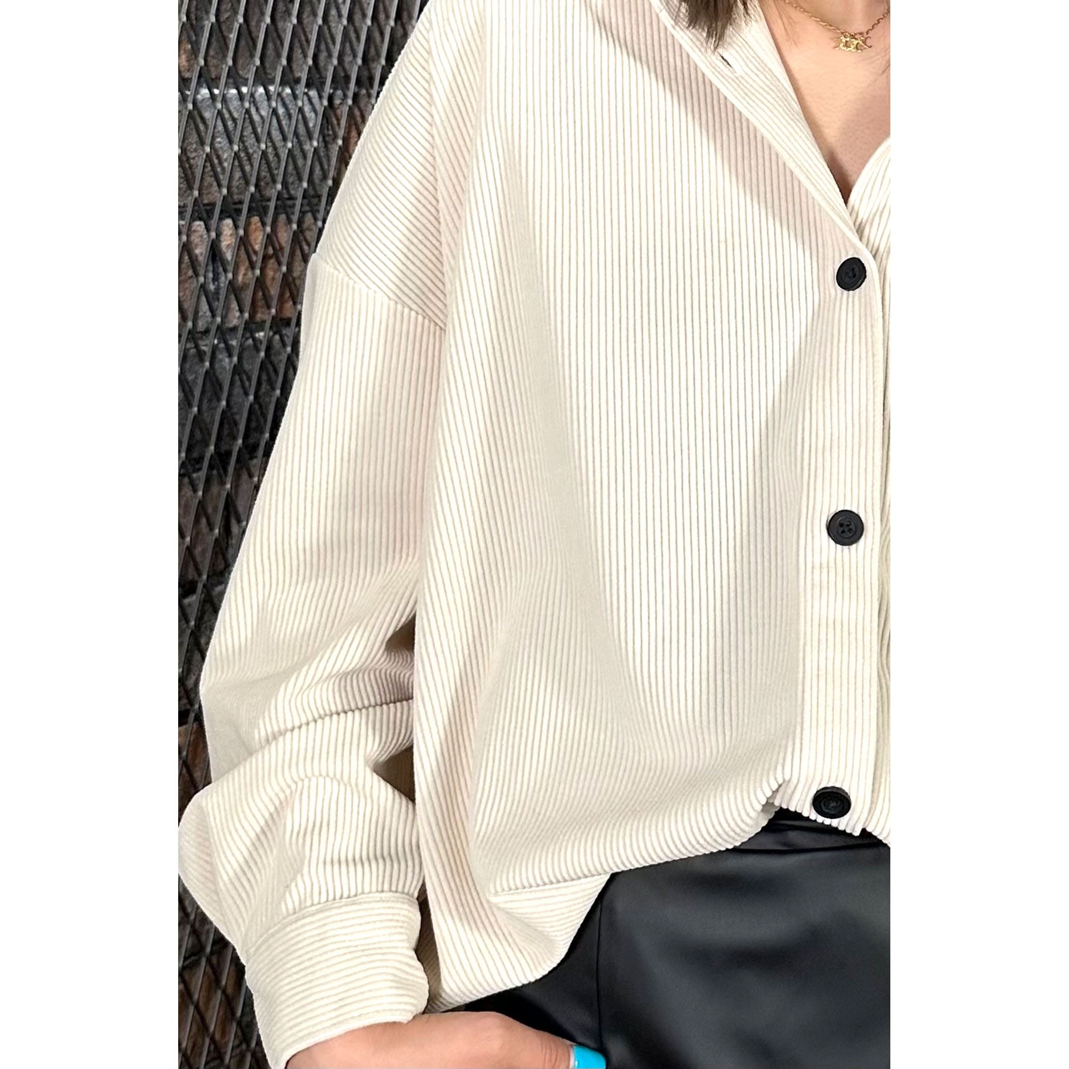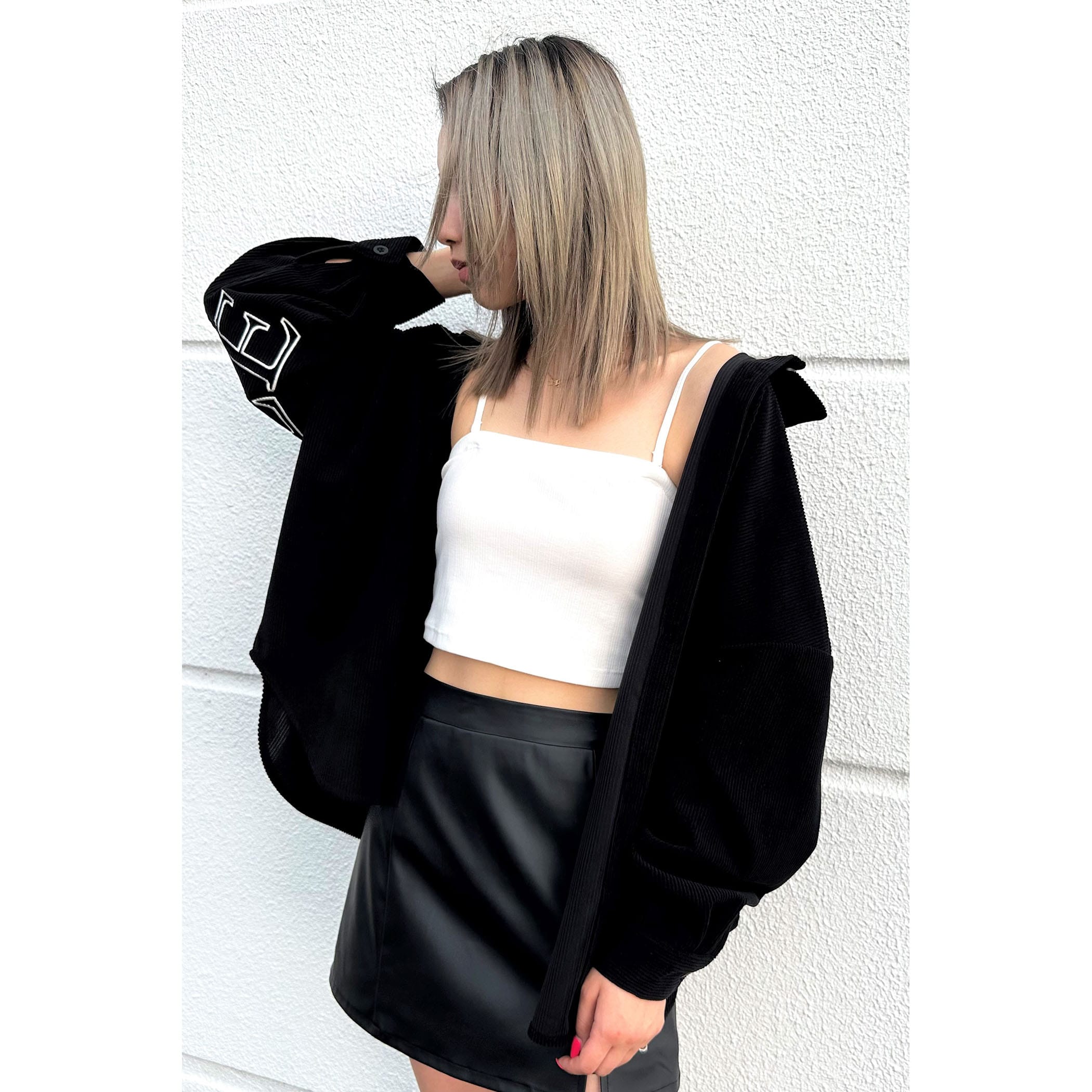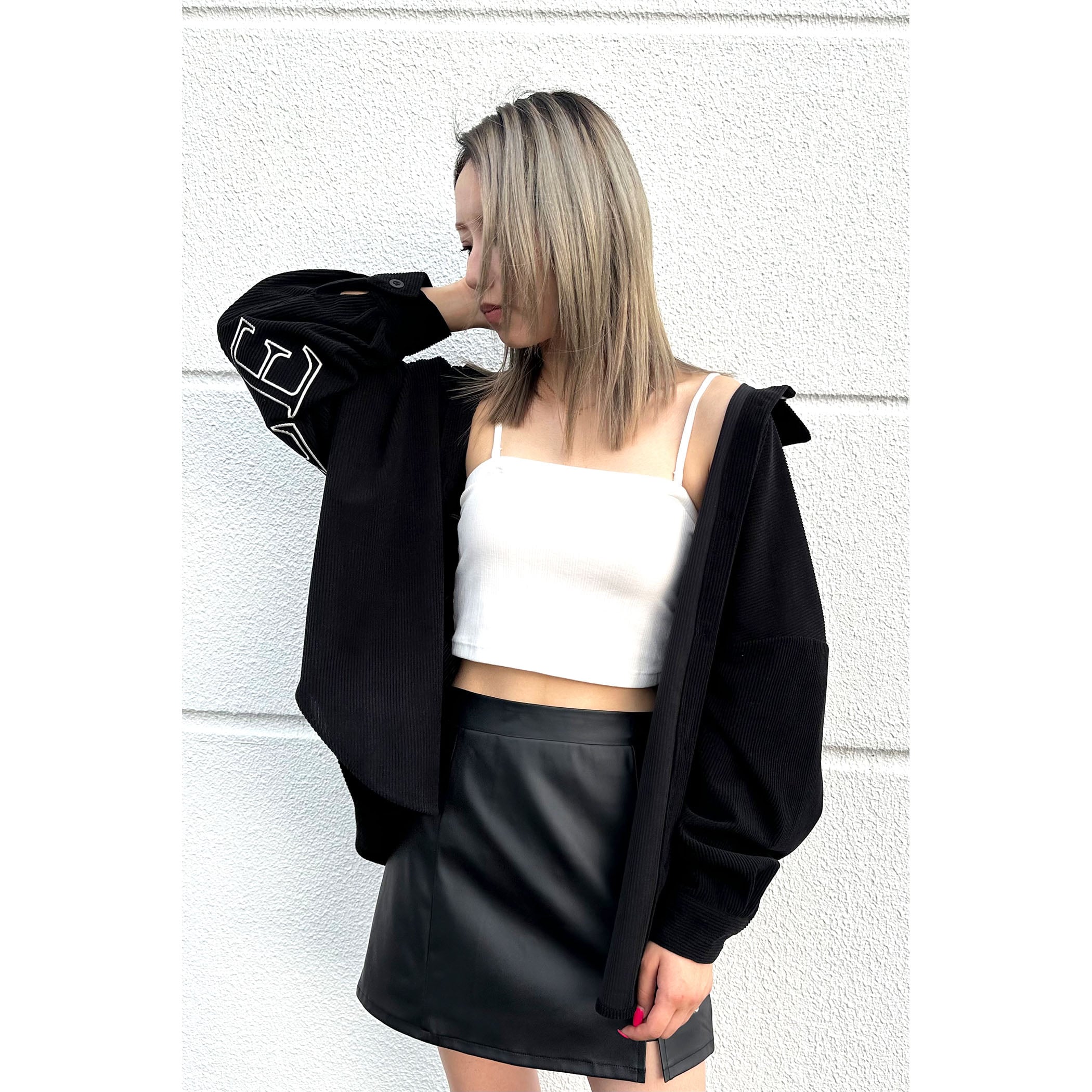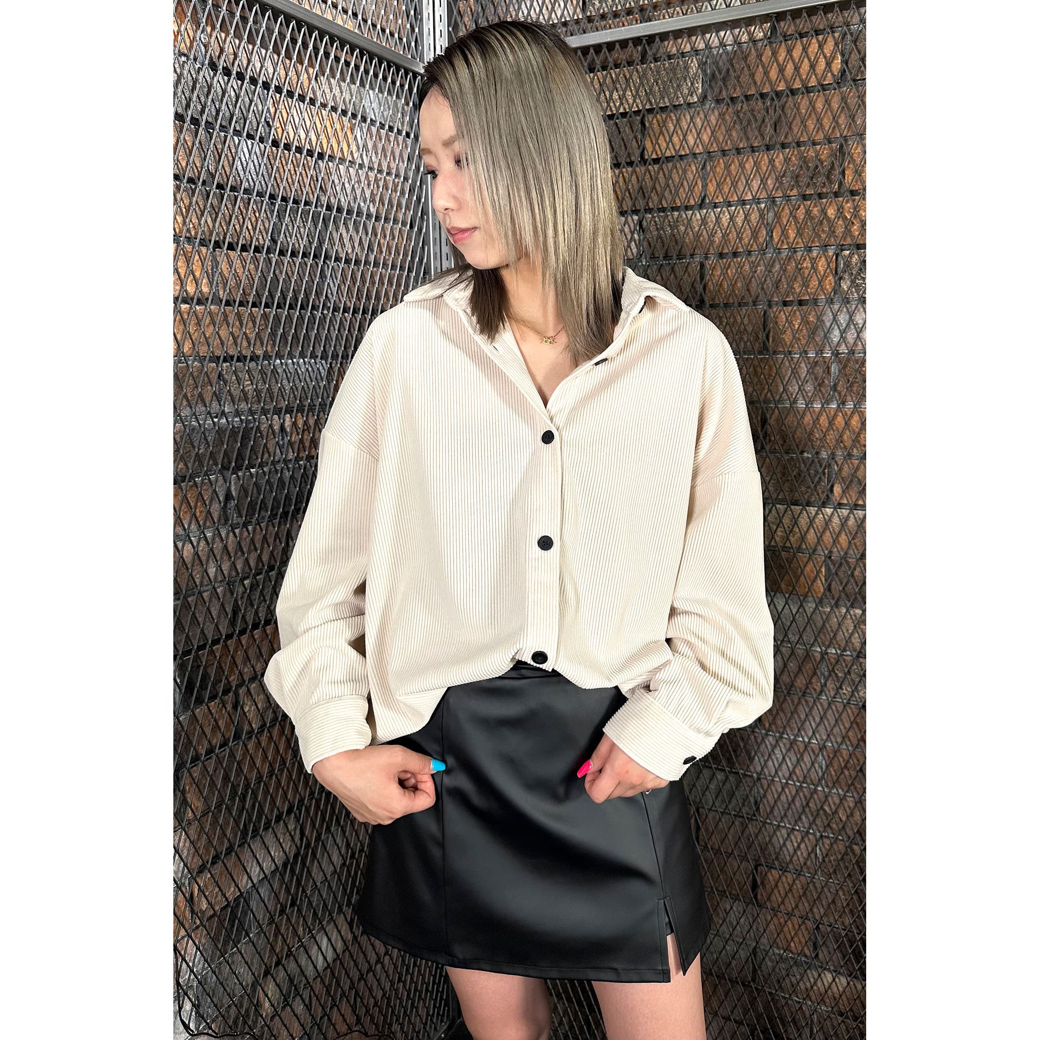 AWらしい暖かみのあるコーデュロイシャツ。ゆったりしたシルエットで羽織としても重宝します。後ろ身頃の大きめロゴ刺繍がアクセントに◎