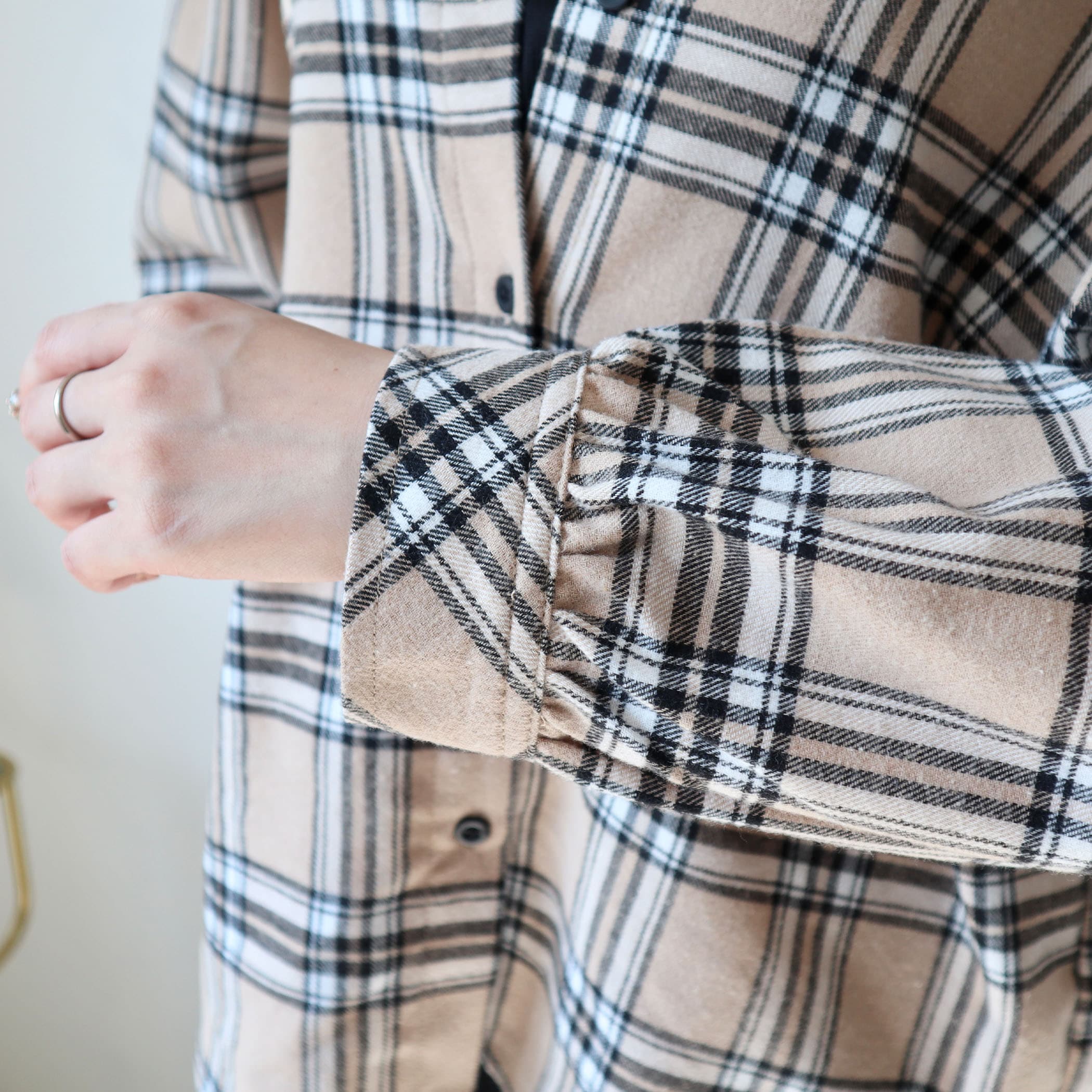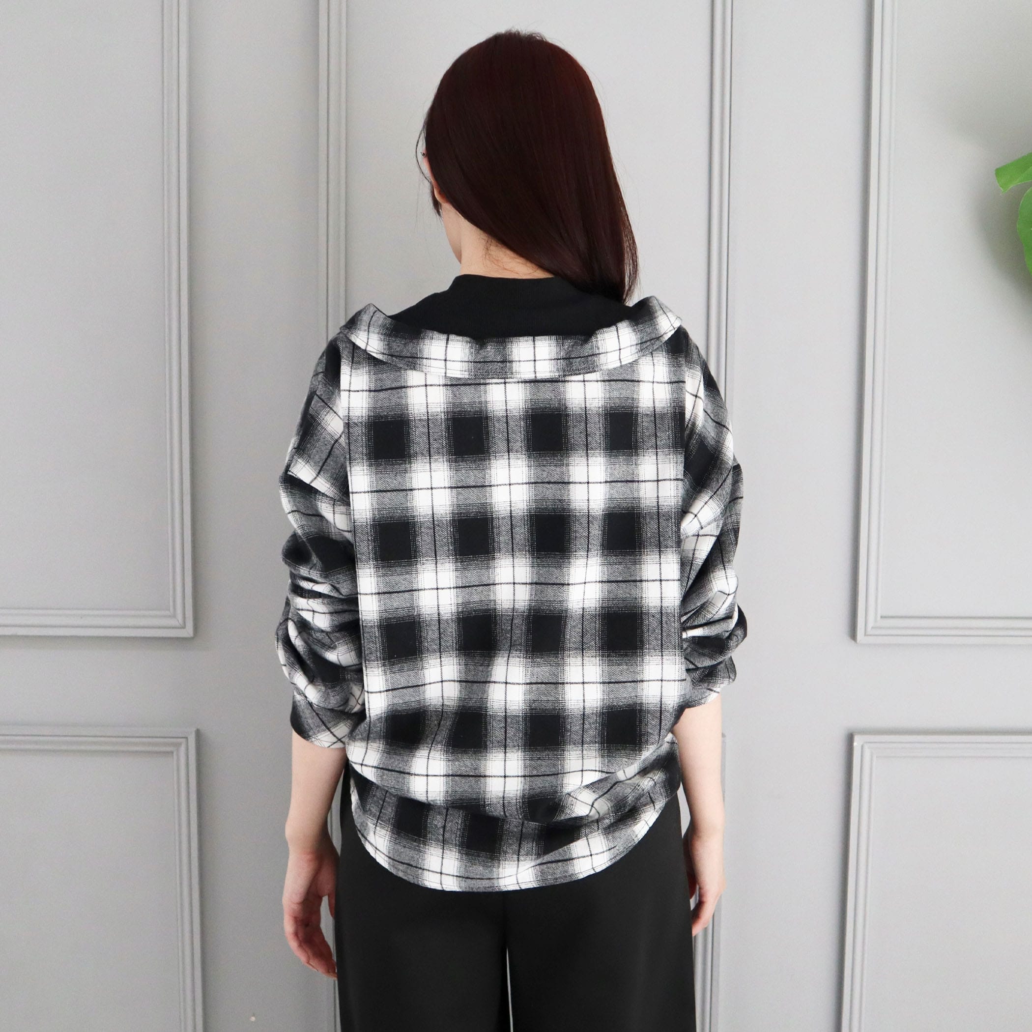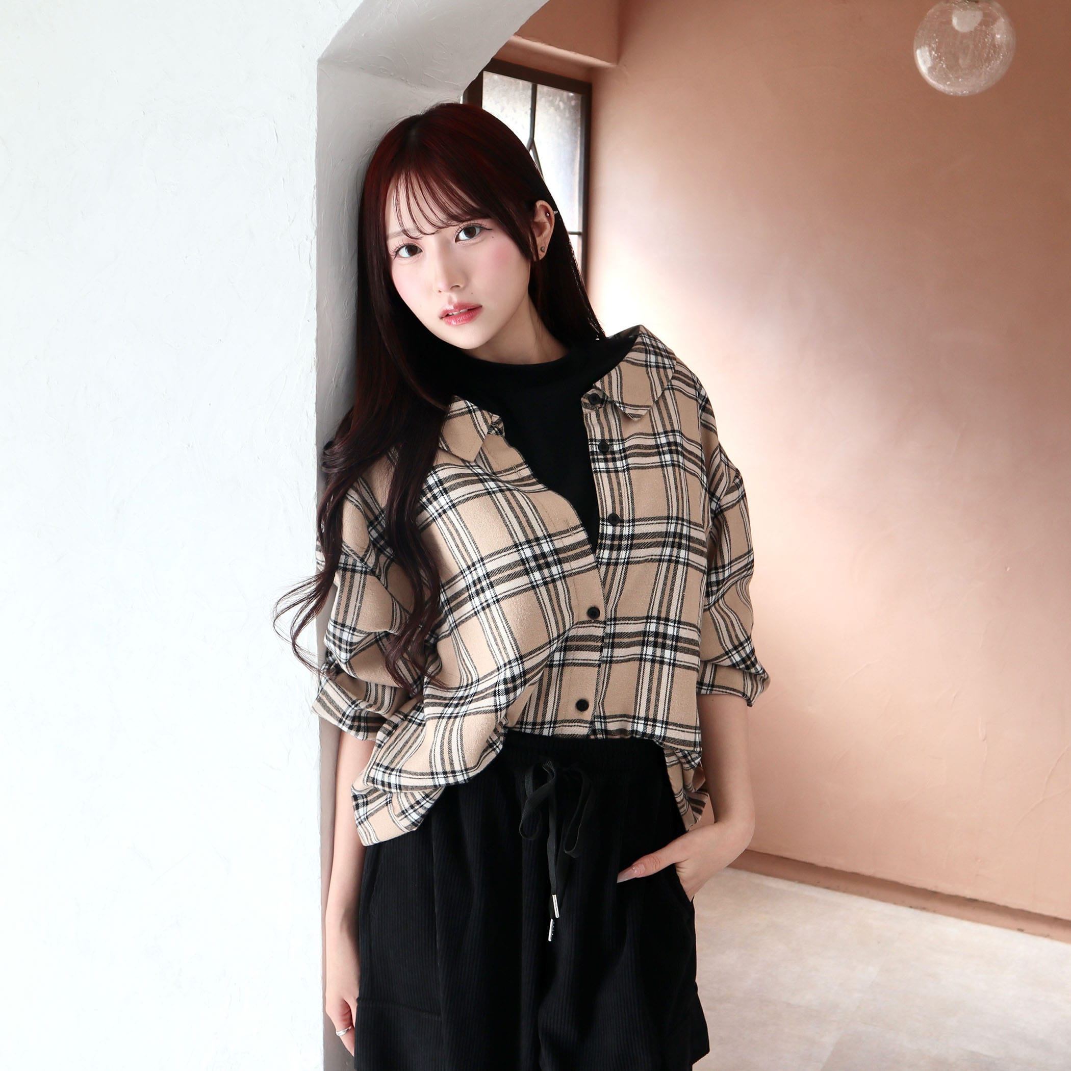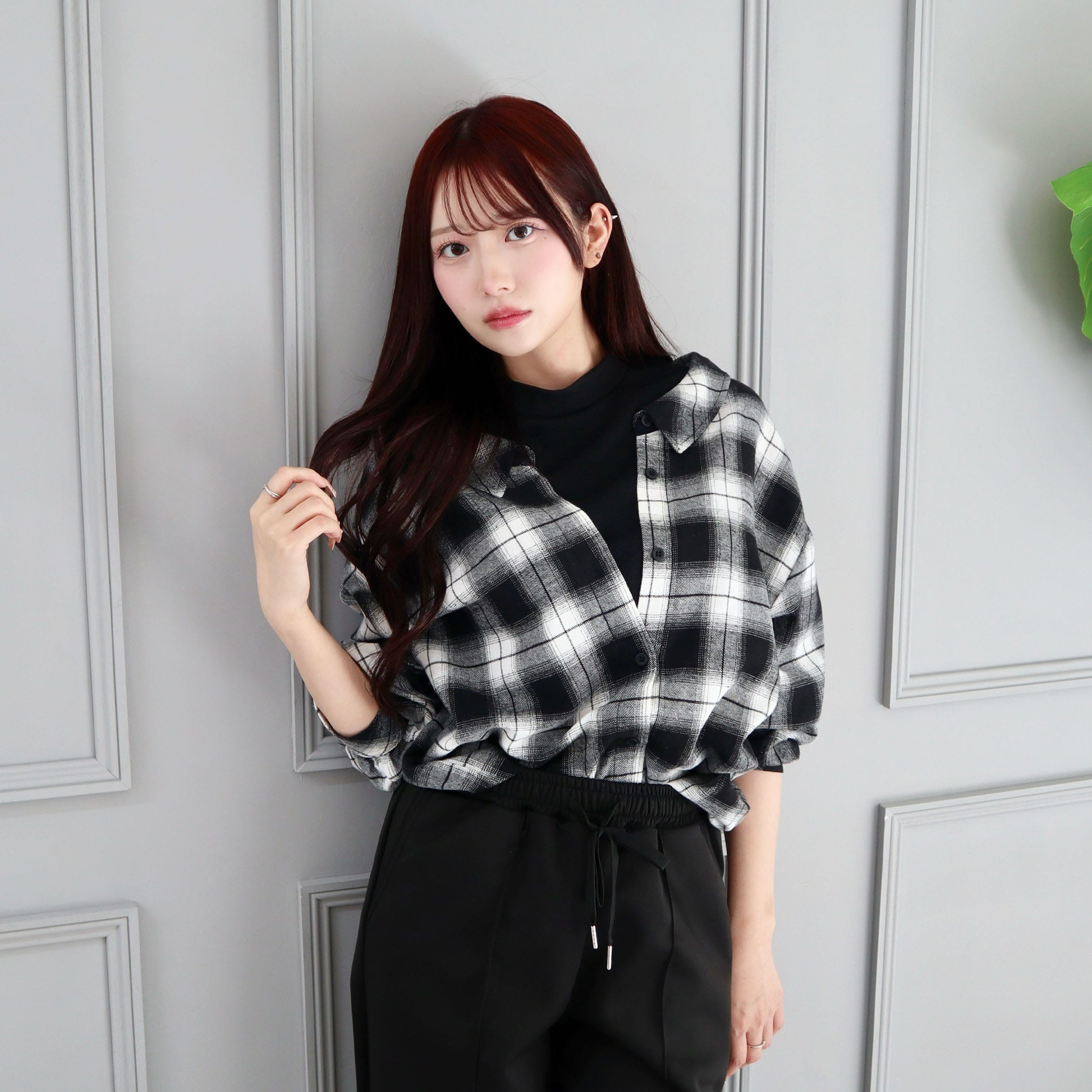 一枚でコーデが決まるレイヤード風のチェックシャツ。トレンドのレイヤードスタイルが着るだけで完成します。インナーとドッキングされているので着崩れや着膨れがなく、きれいなシルエットで着用いただけます。パンツにもスカートにも合わせやすく、ボトムを選ばないのも◎。