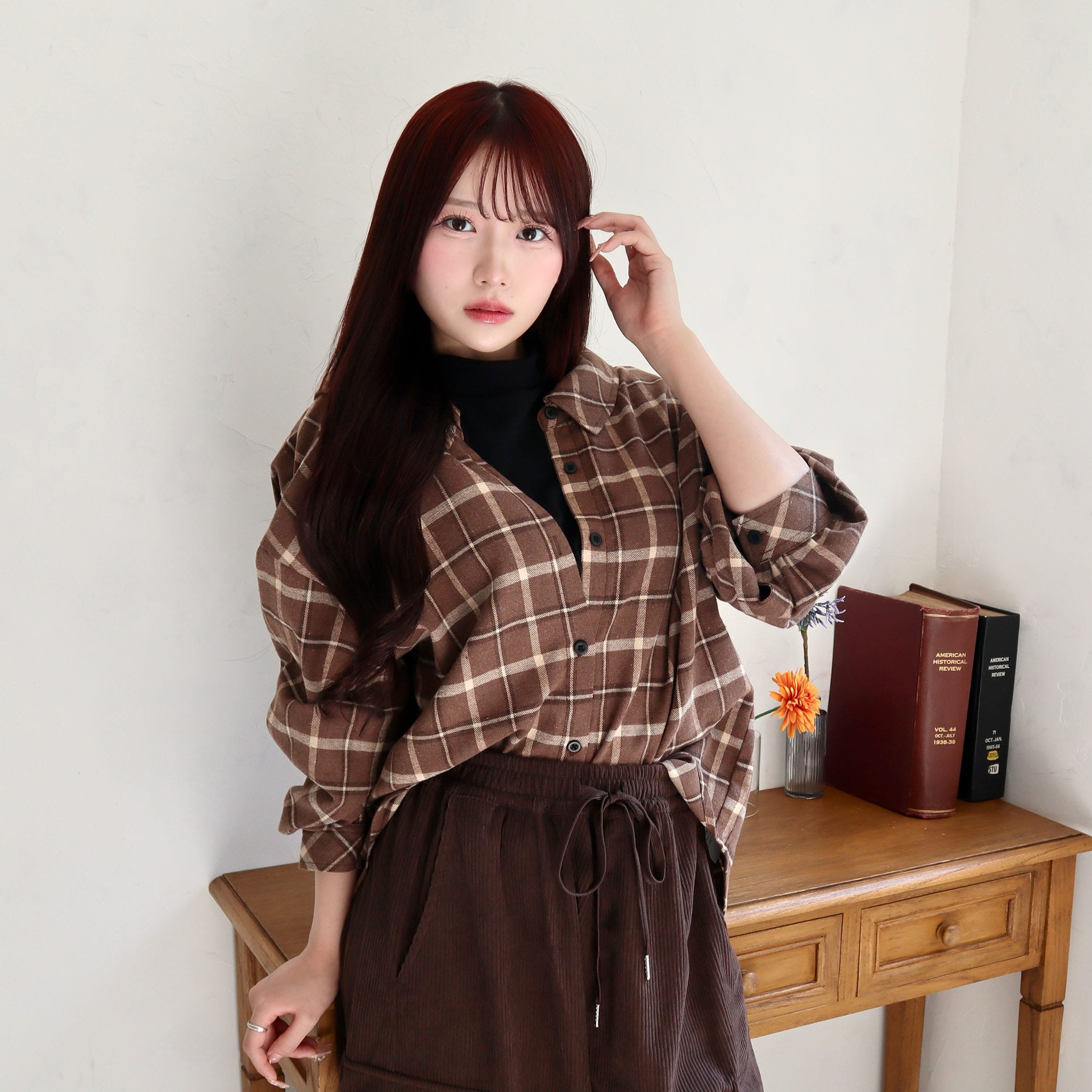 エコチェックレイヤード風シャツ