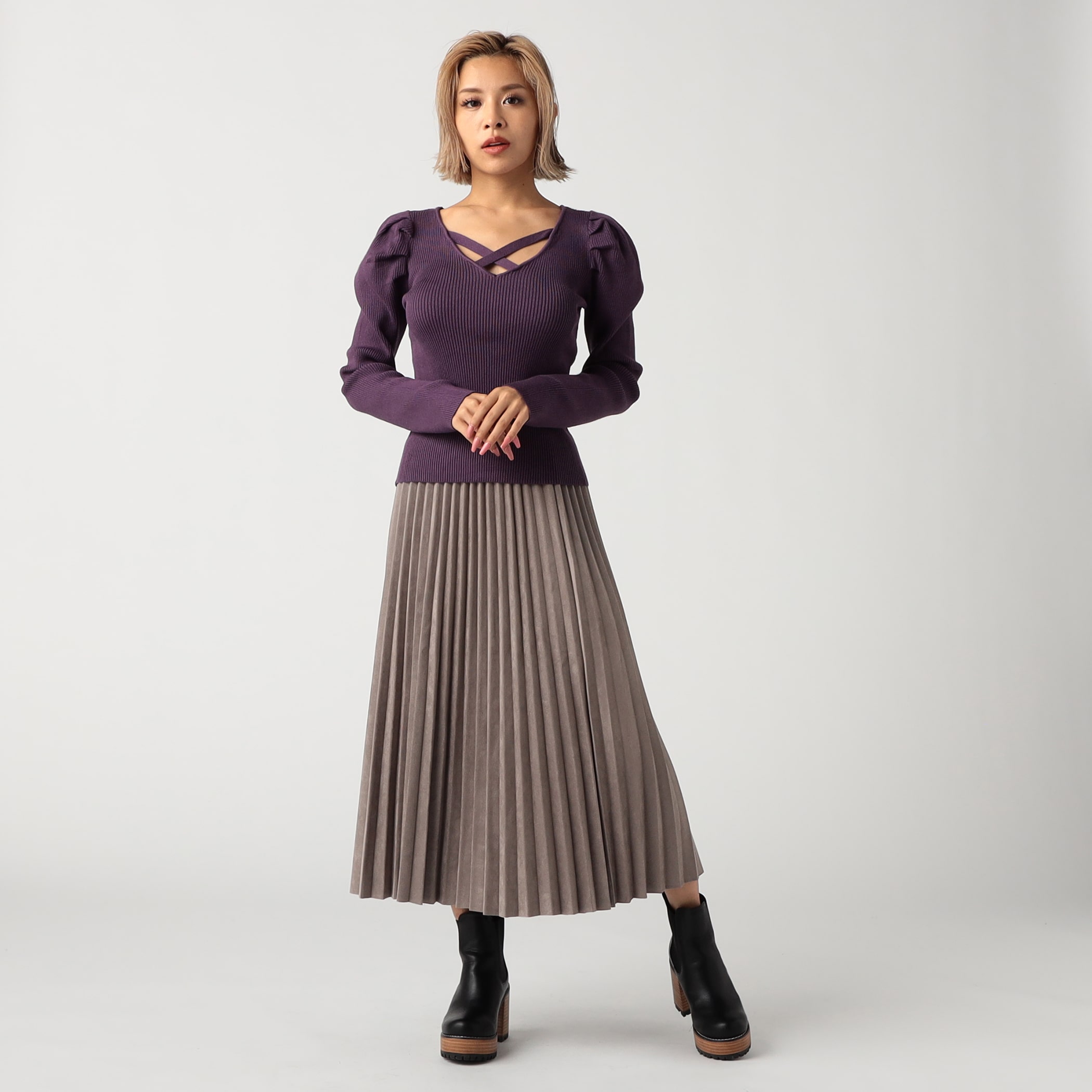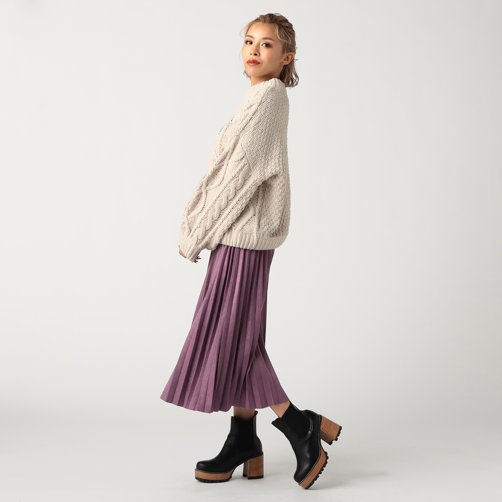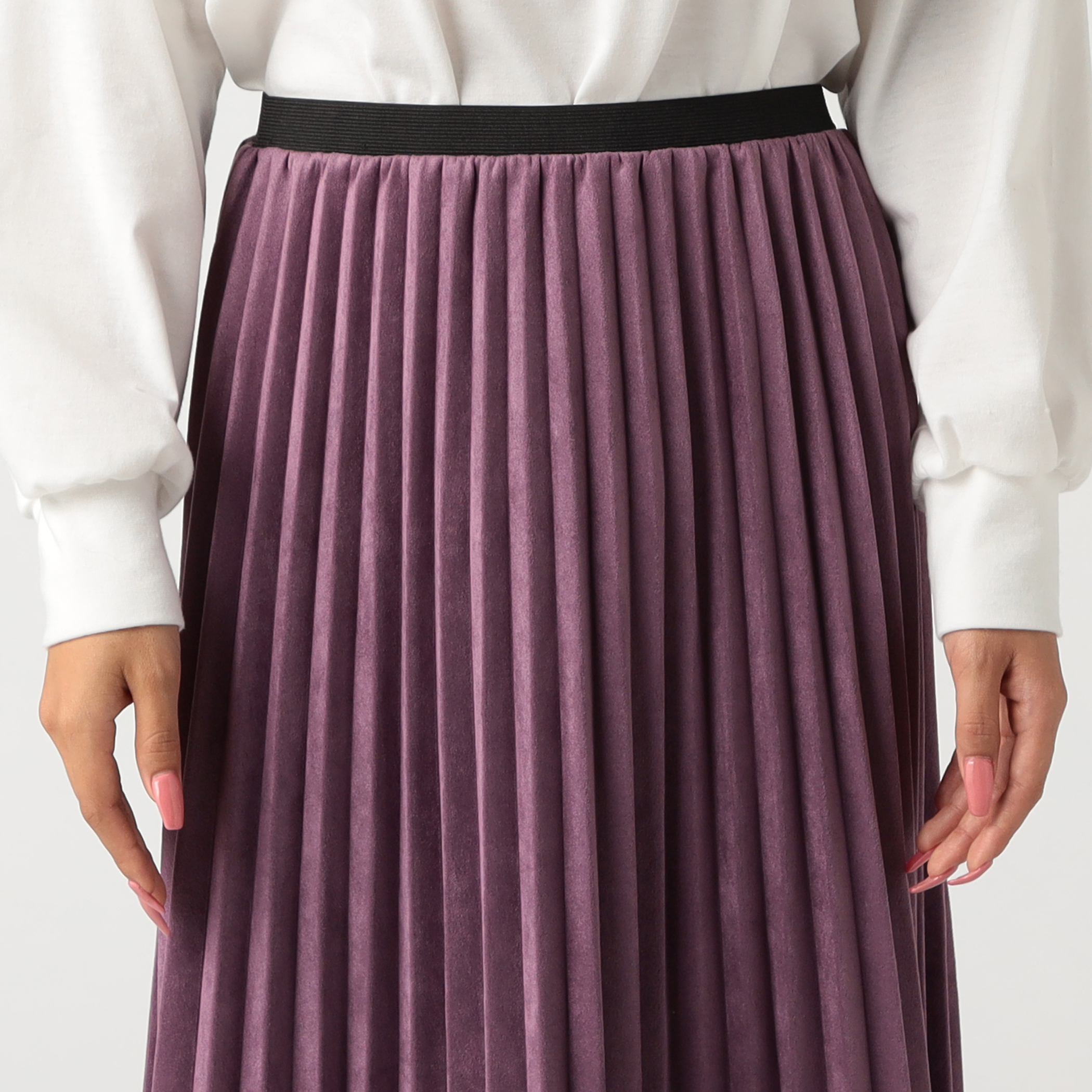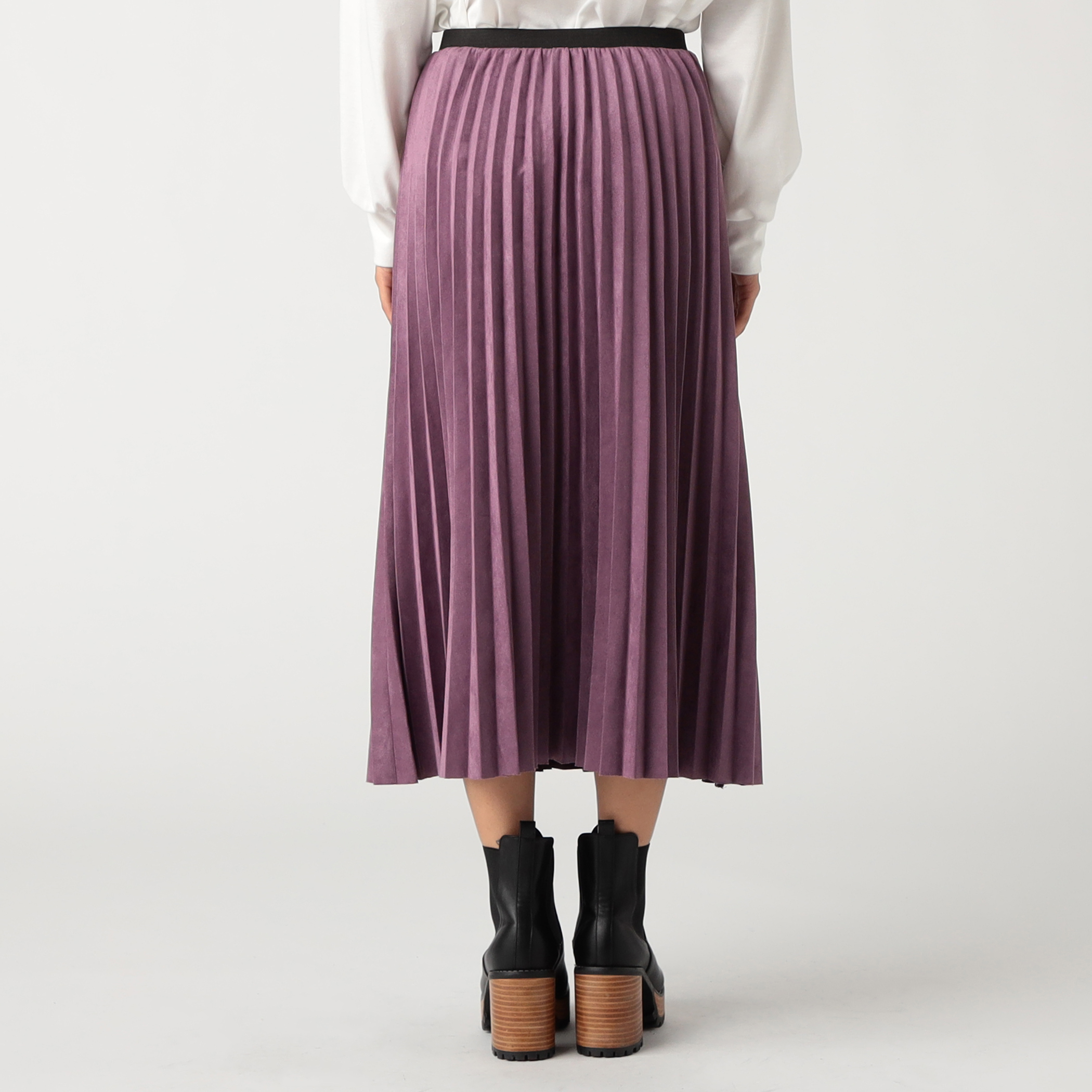 エレガントなスタイルを楽しめるアコーディオンプリーツスカート。ウエストはラクラク快適なゴム仕様です。マットな質感のスウェード調ポンチを使用していて、秋冬らしい目にも暖かな一枚へと仕上げています。安心のロング丈です。