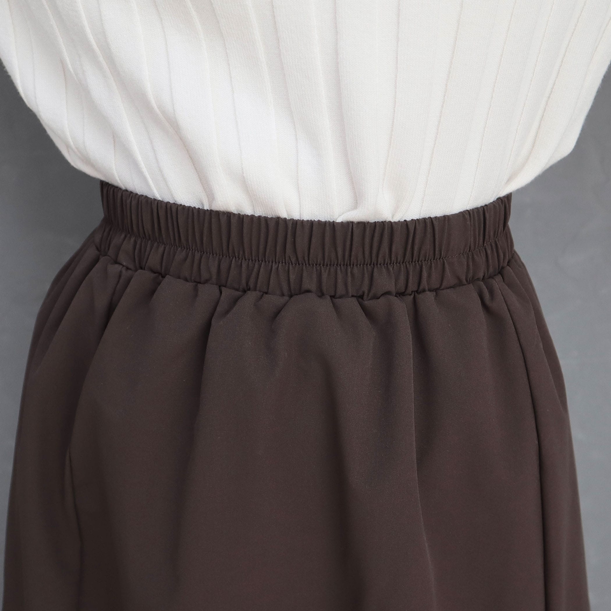 さらりとしたハリ感のある生地でふんわり広がるバルーンシルエットが可愛いデザインです。きれいめにもカジュアルにも着こなせます。ウエストはストレスフリーな履き心地のゴム仕様でリラックスして着用いただけます。