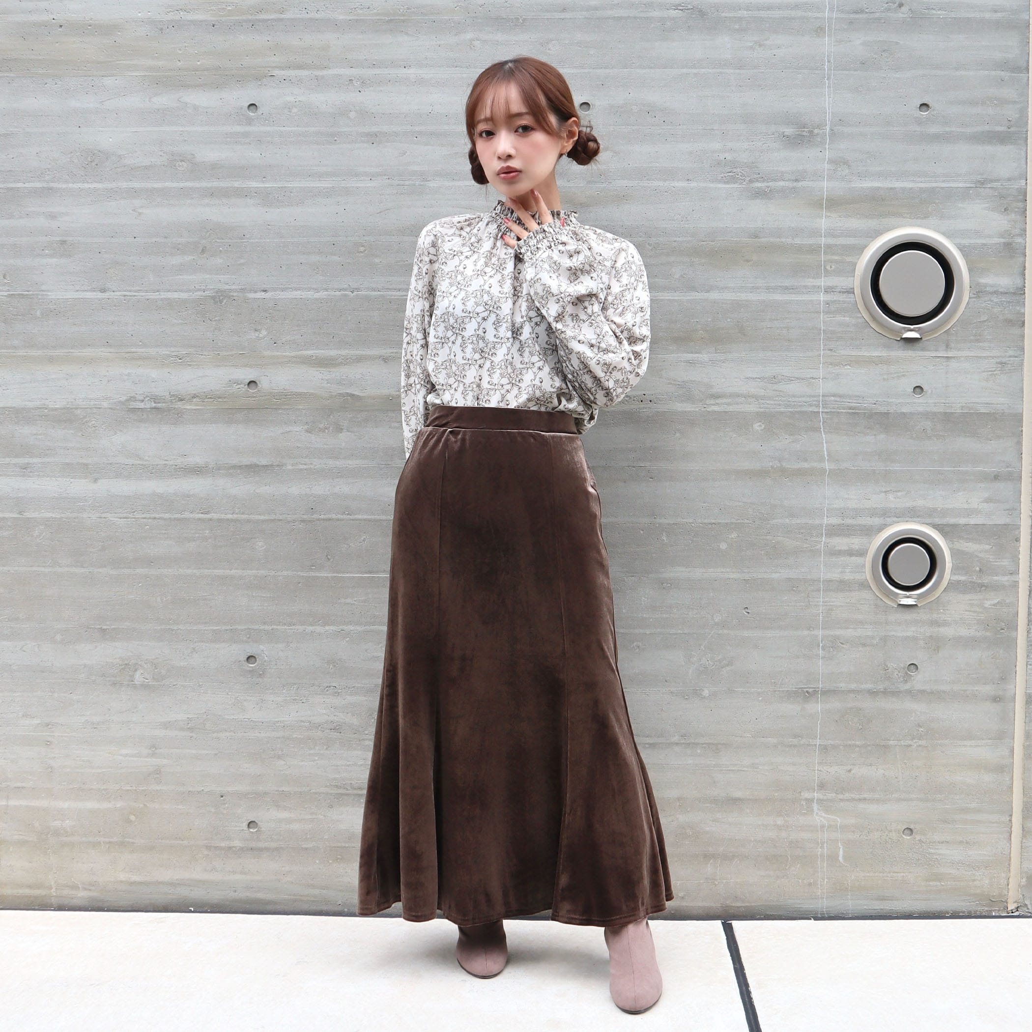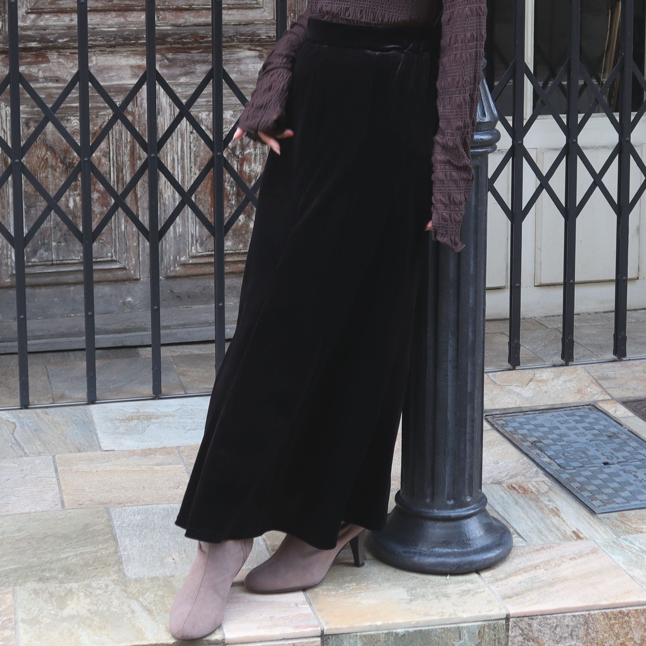 着映えする華やかな秋冬コーデにぴったりなベロアプリーツスカート。こなれた印象を演出し、動くたびに光沢感が高見えします。マーメイドラインのシルエットが様々なトップスとのバランスが取りやすく、綺麗め~カジュアルな雰囲気まで幅広いコーデがしやすい万能アイテムです。
