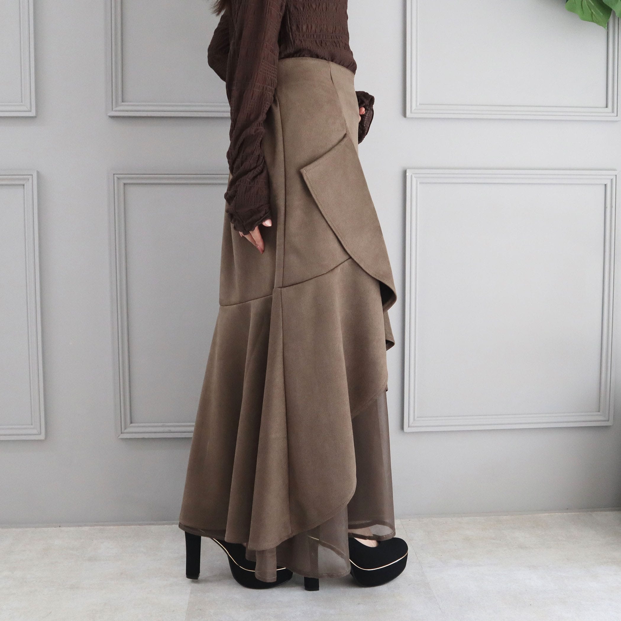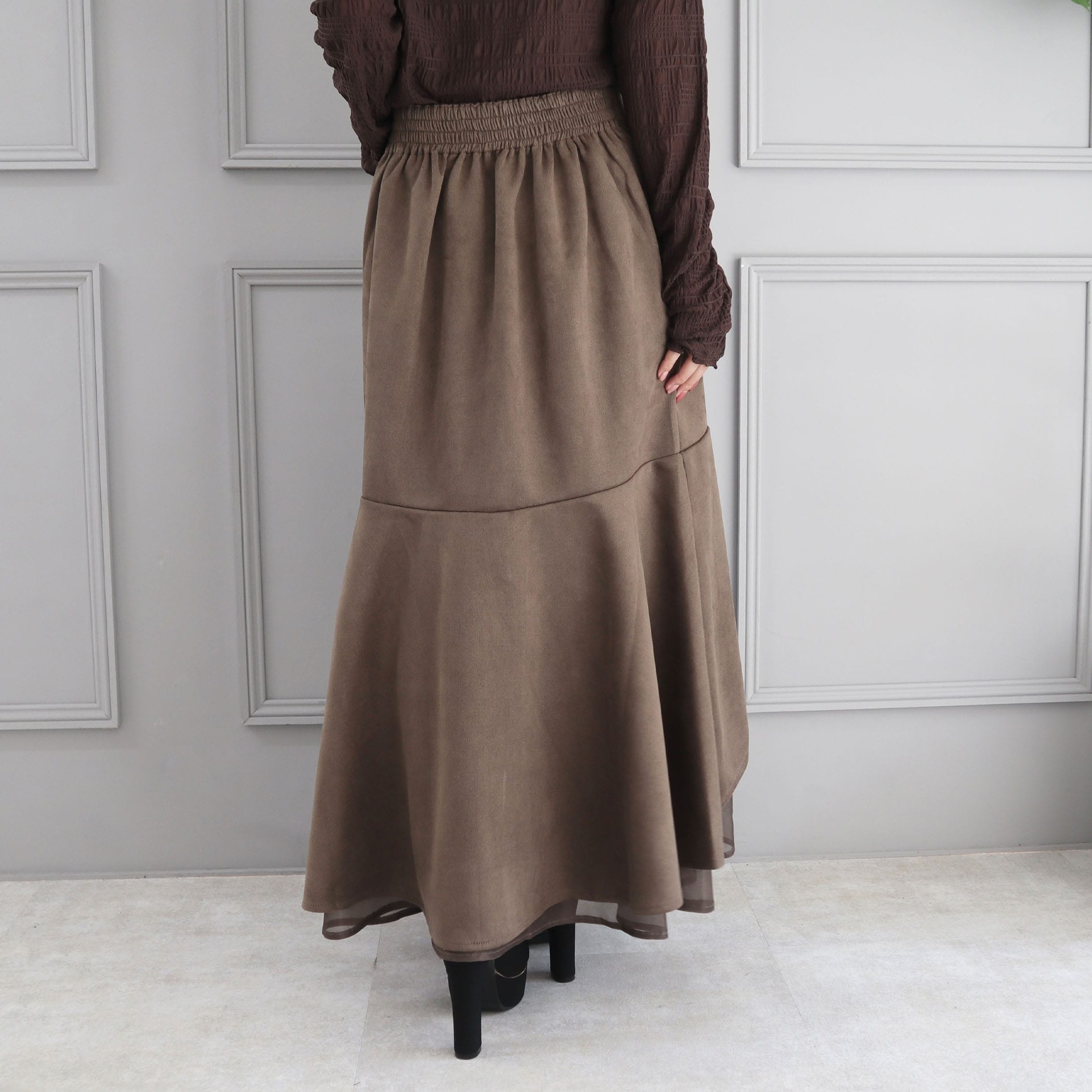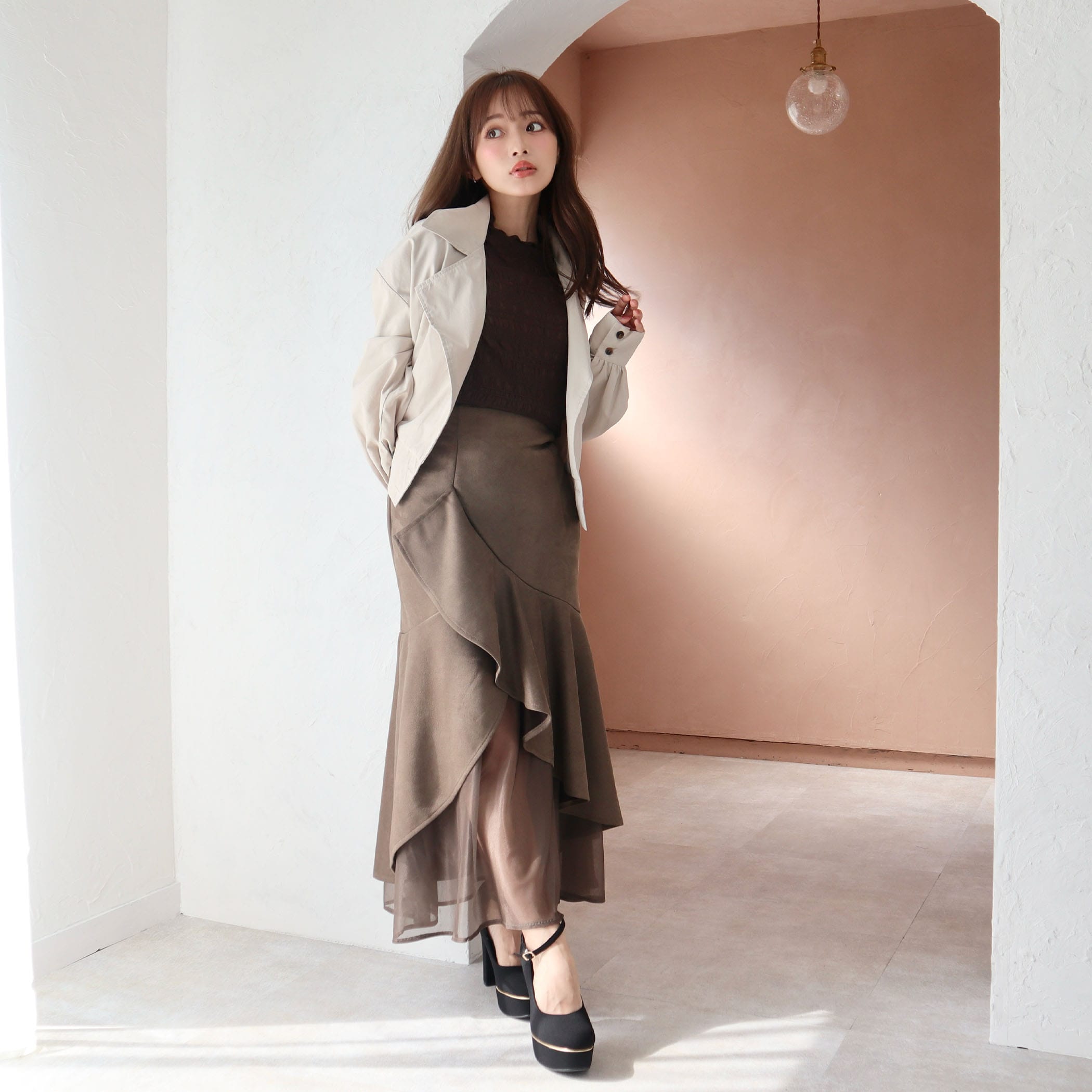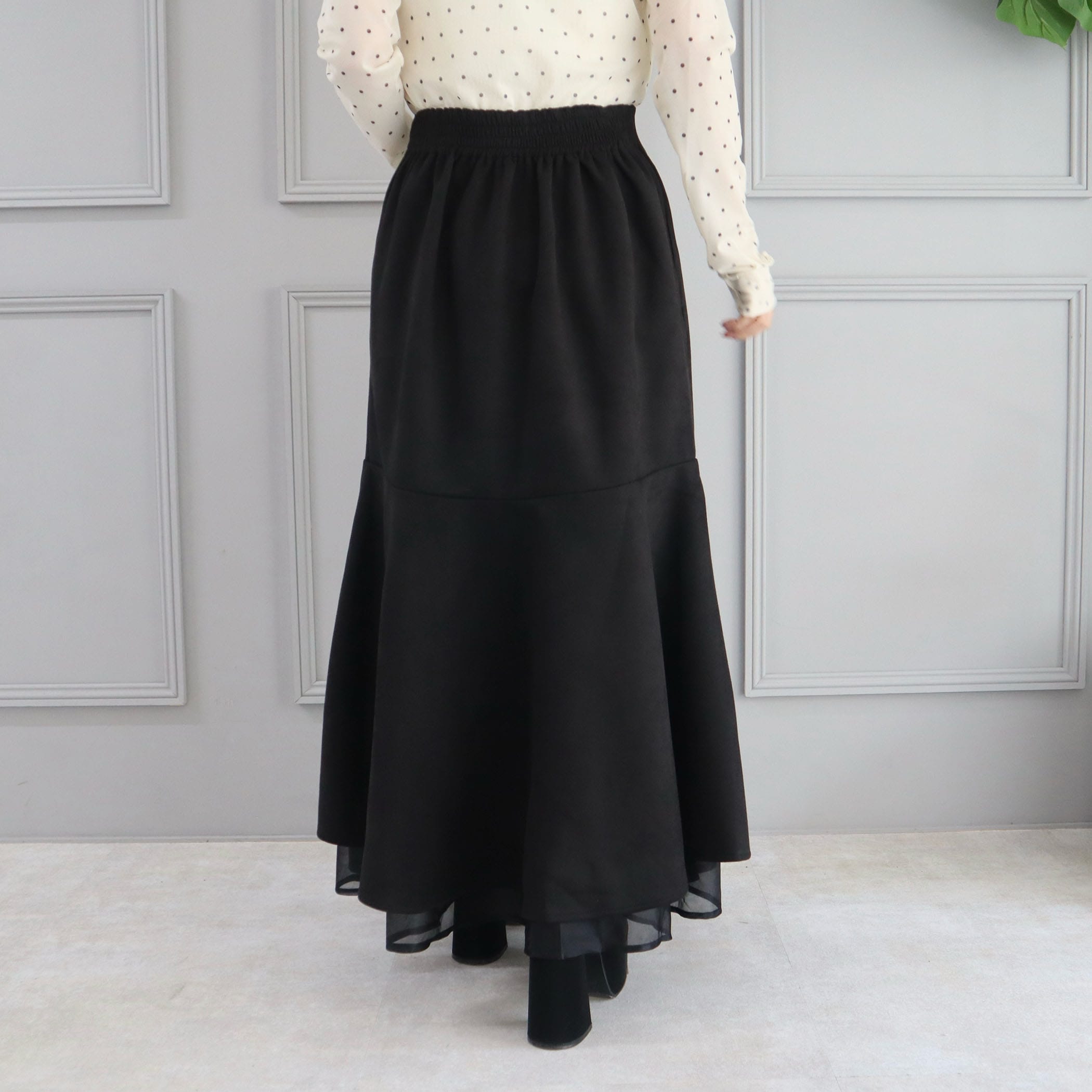 大人フェミニンな印象の切り替えマーメイドスカート。上品な見た目ですが、やわらかい手触りで楽ちんに着用いただけます。合わせるトップスやアウターで、ロングシーズン着ていただけます。シンプルなコーディネートでも、華やかな印象にしてくれます。