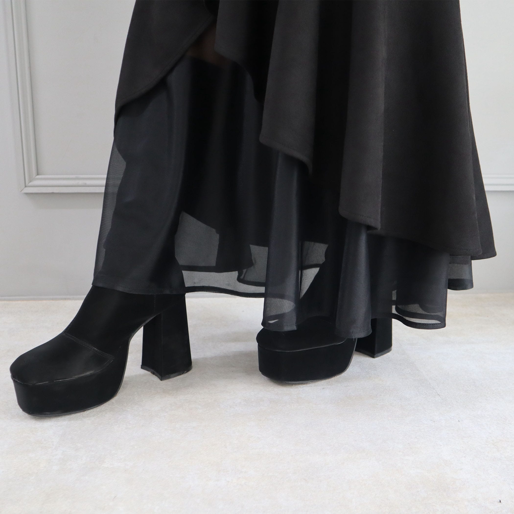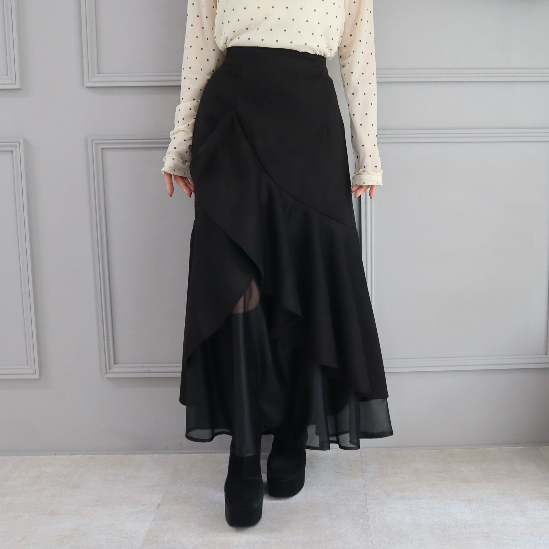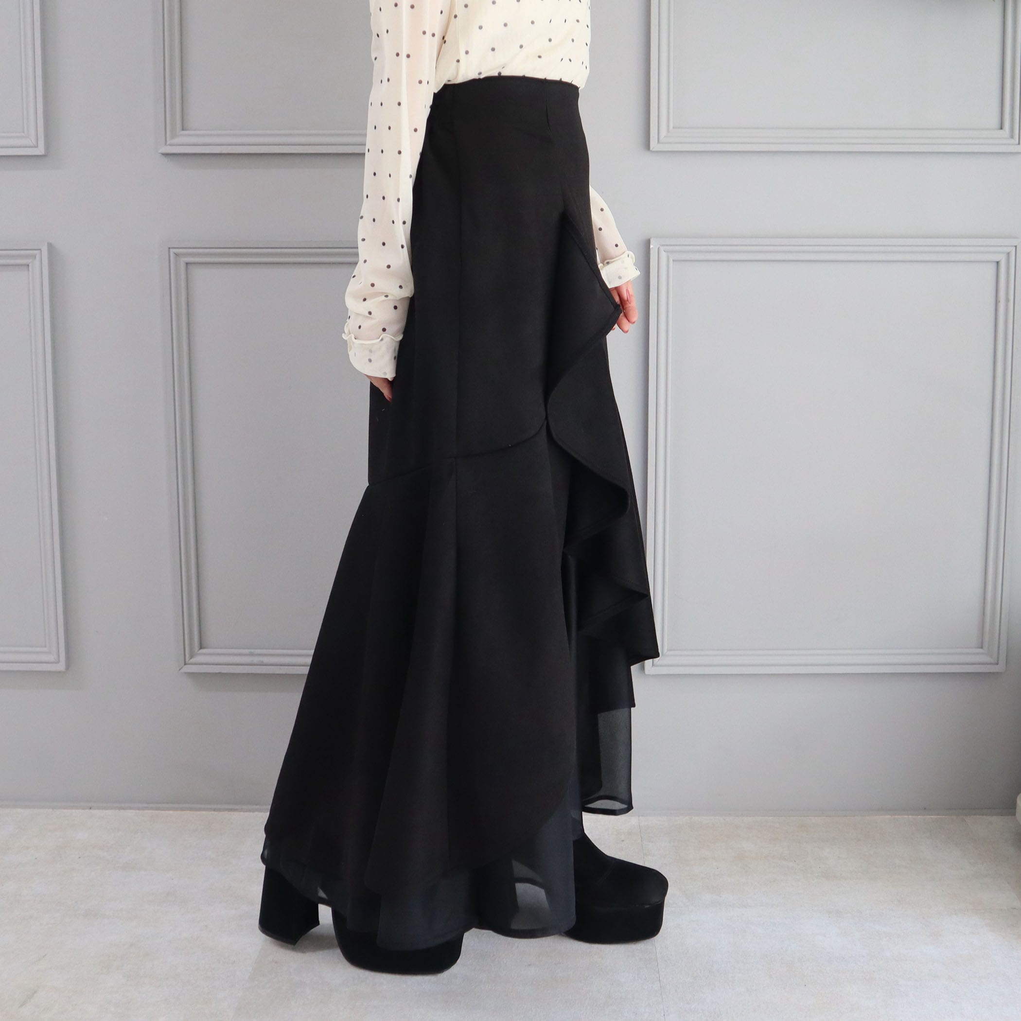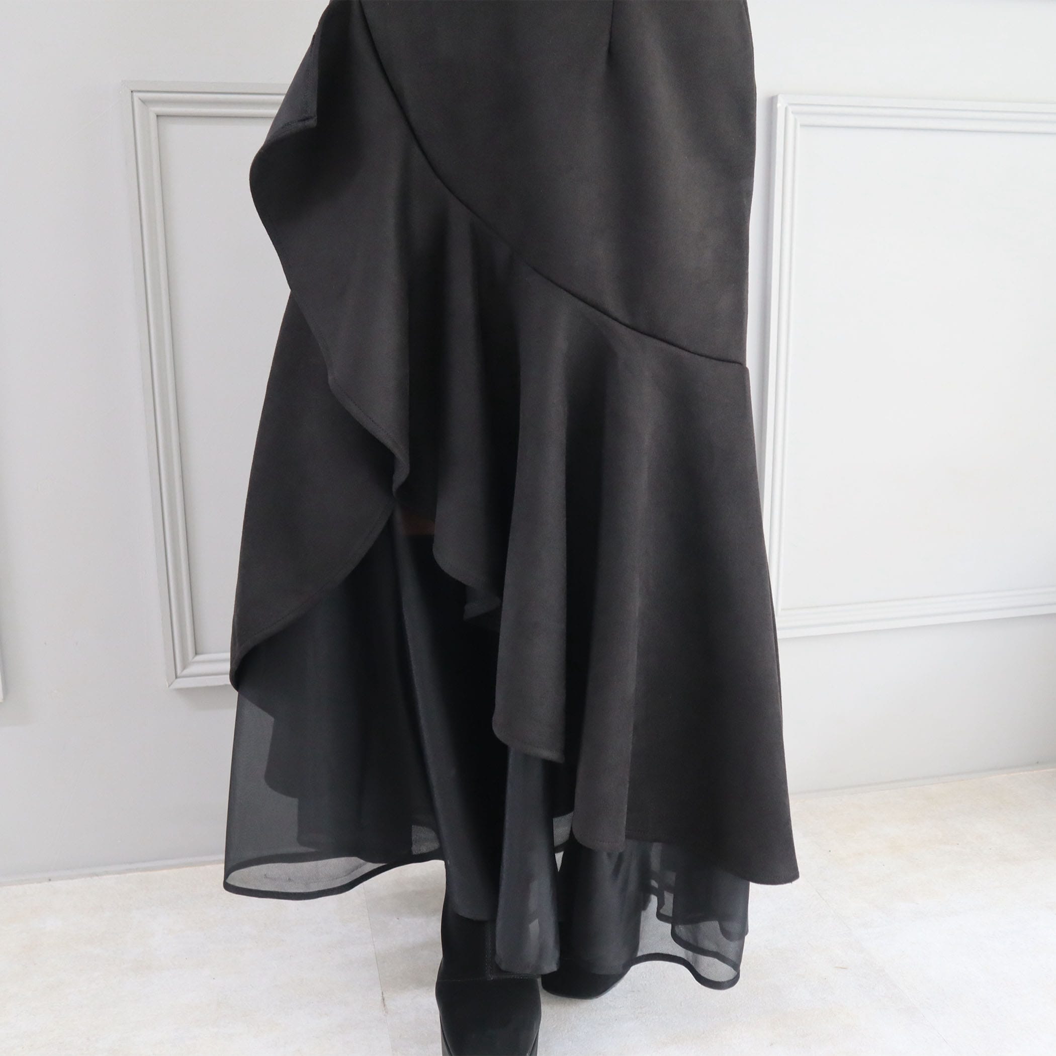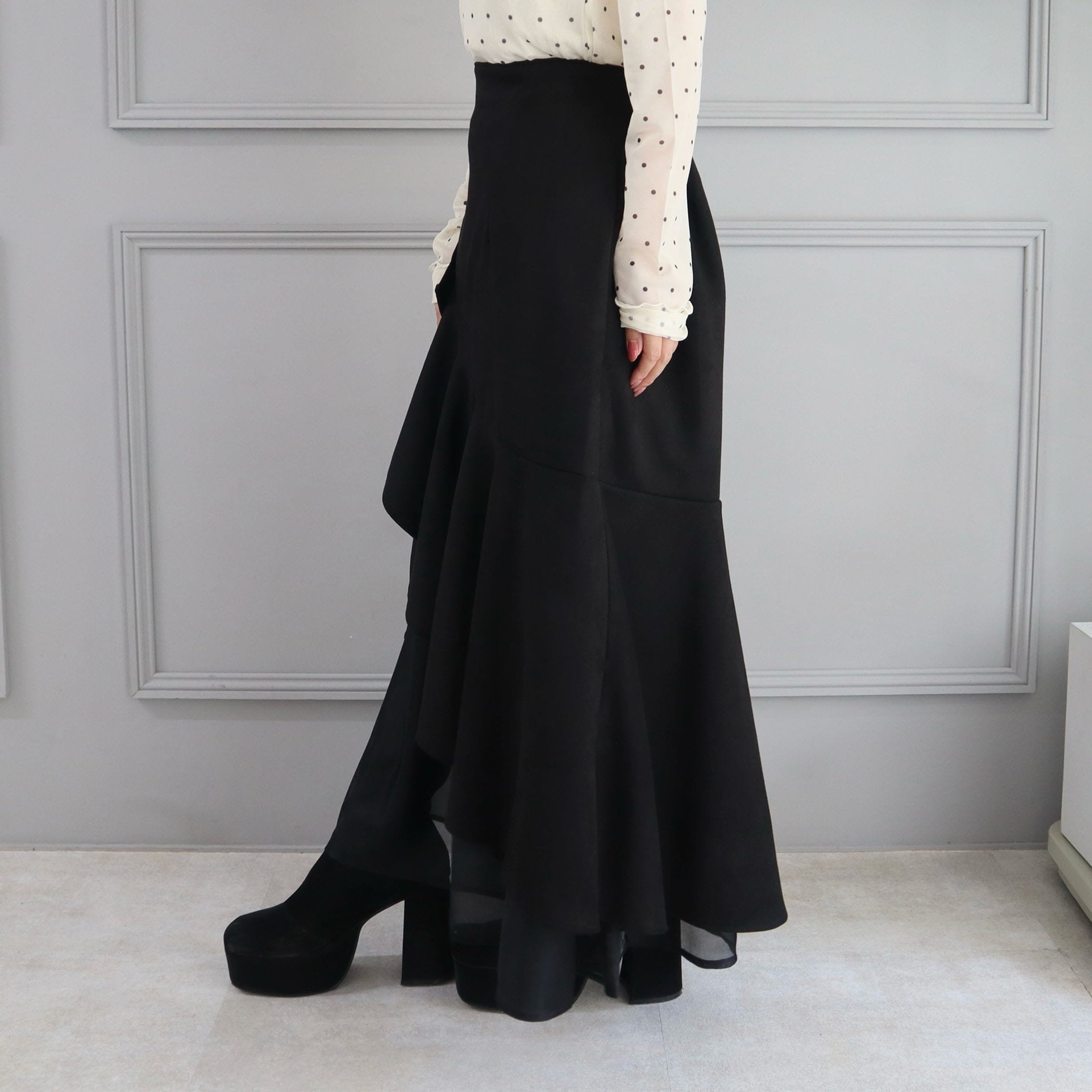 大人フェミニンな印象の切り替えマーメイドスカート。上品な見た目ですが、やわらかい手触りで楽ちんに着用いただけます。合わせるトップスやアウターで、ロングシーズン着ていただけます。シンプルなコーディネートでも、華やかな印象にしてくれます。