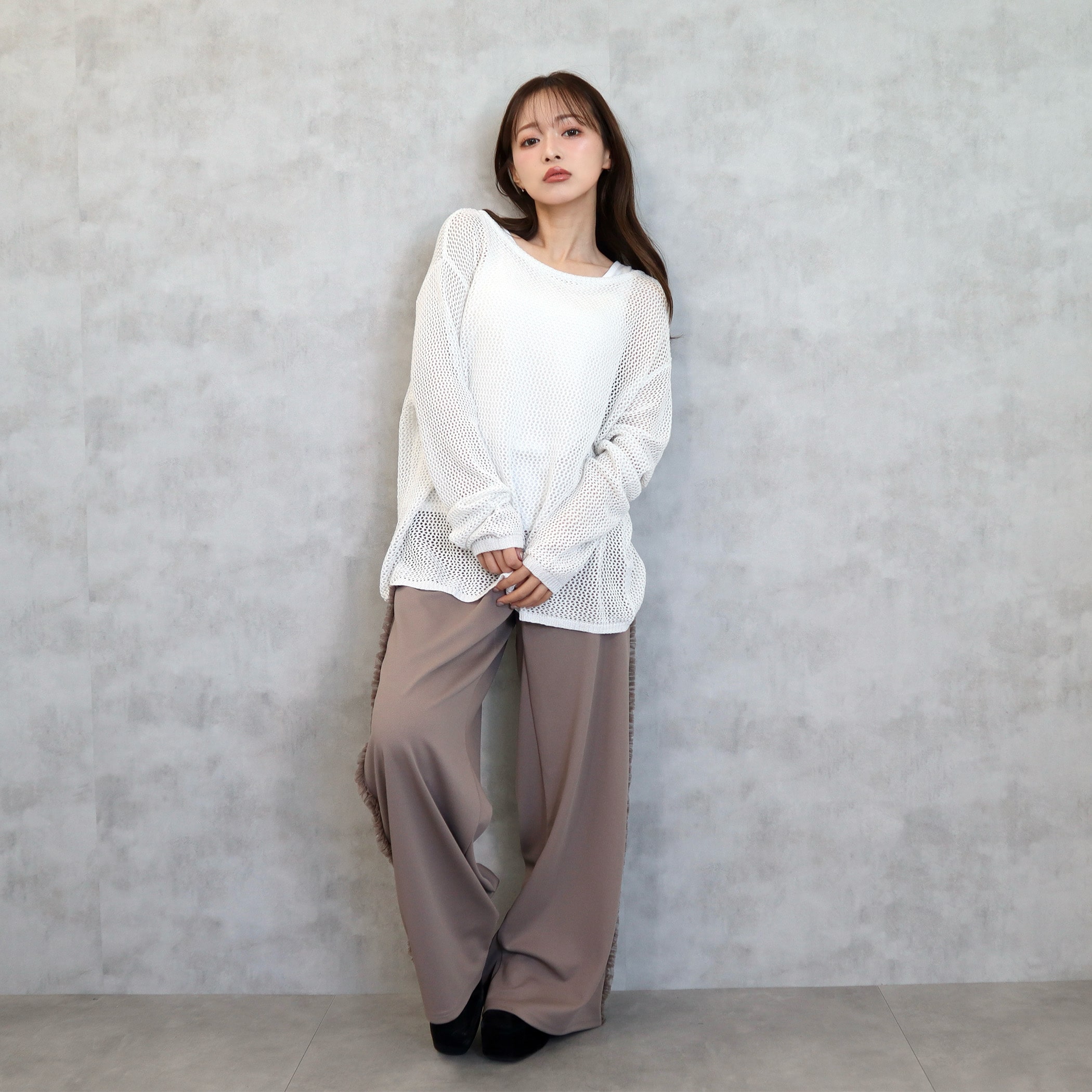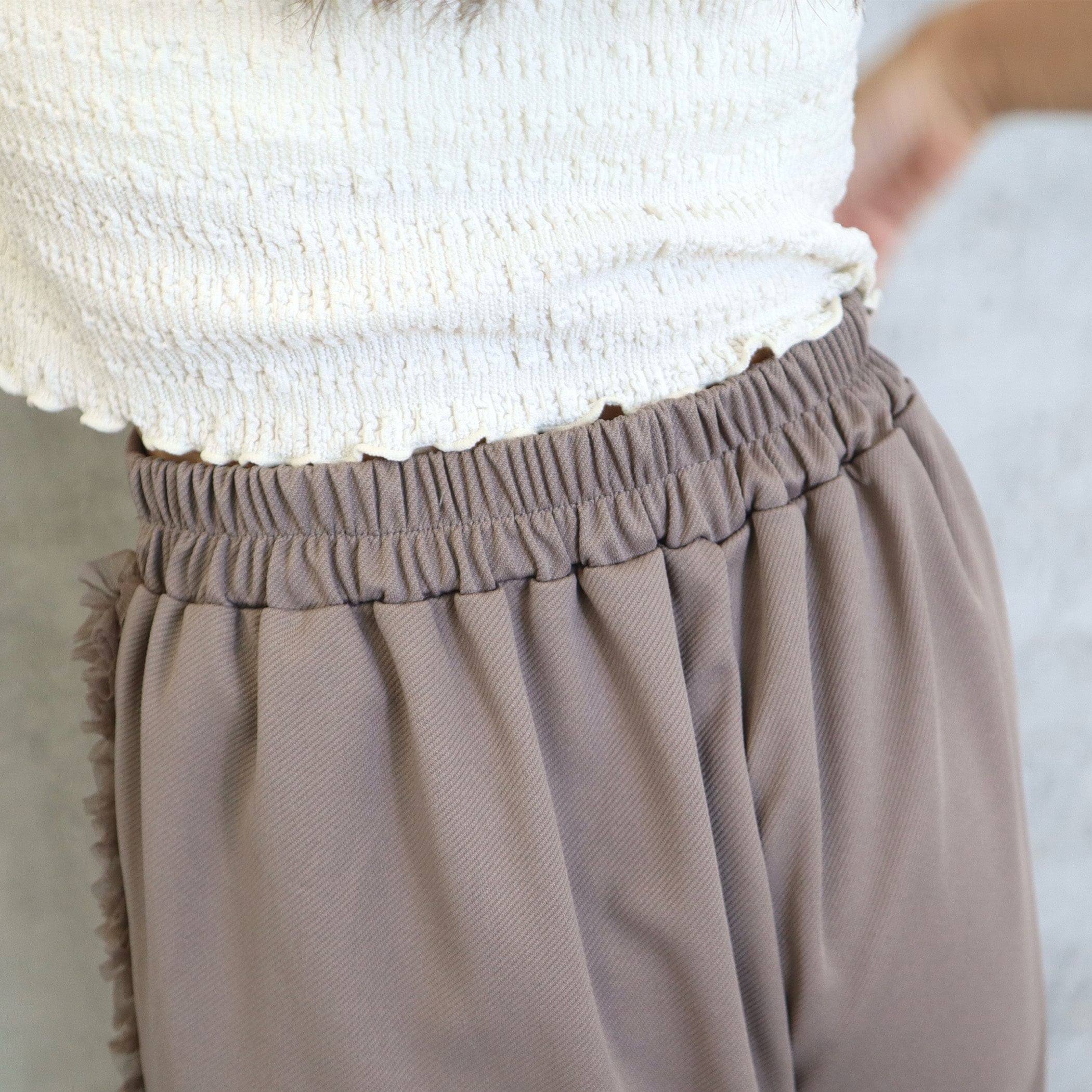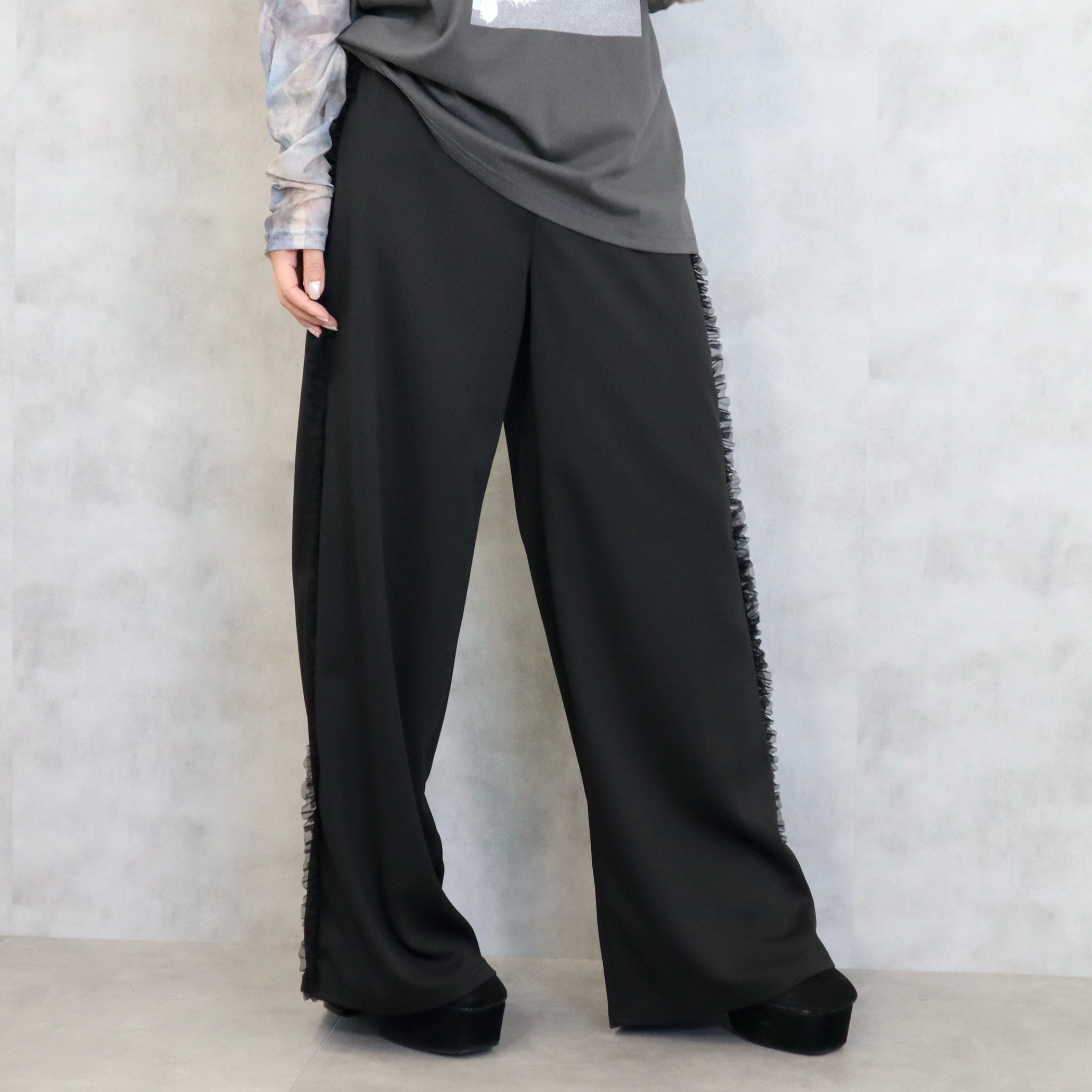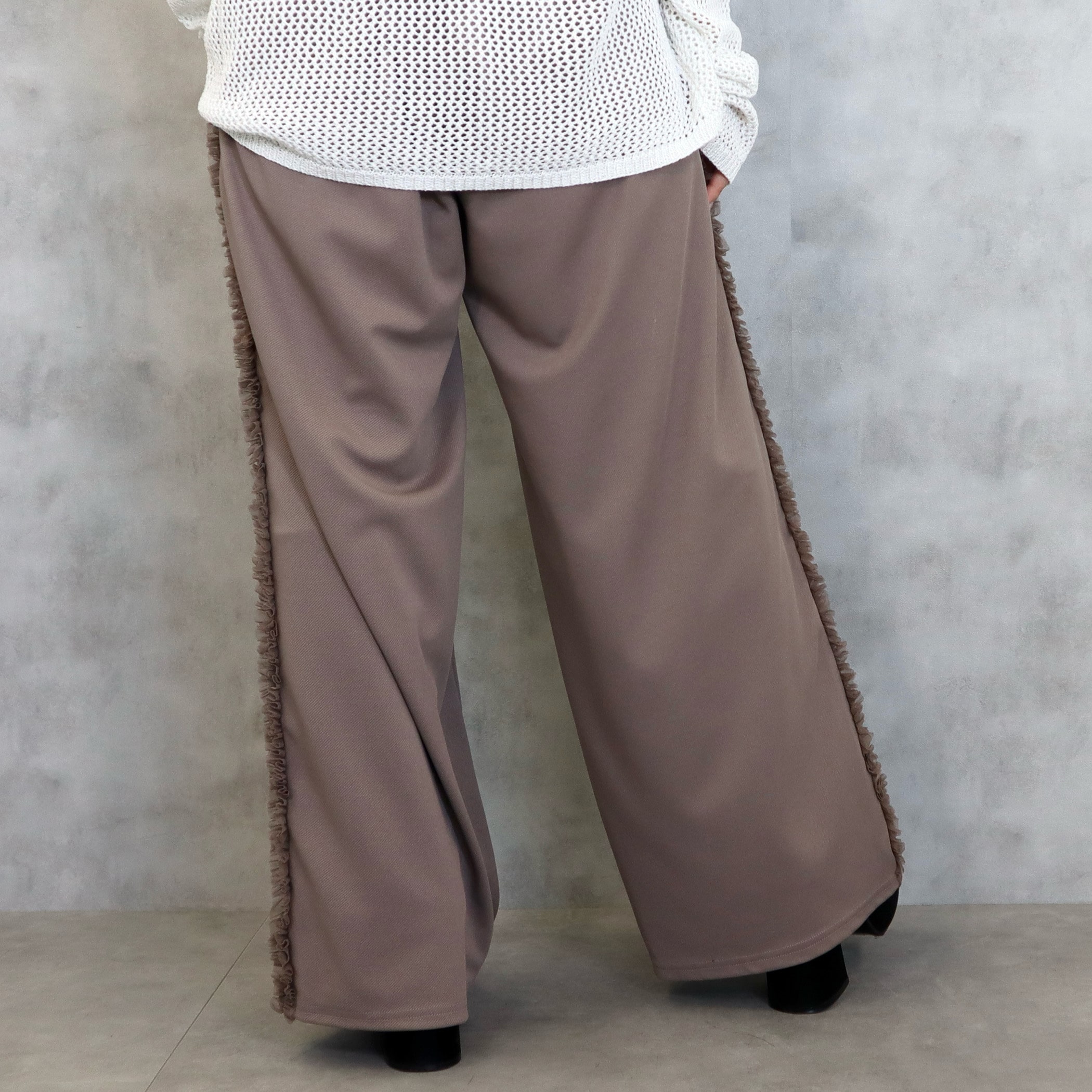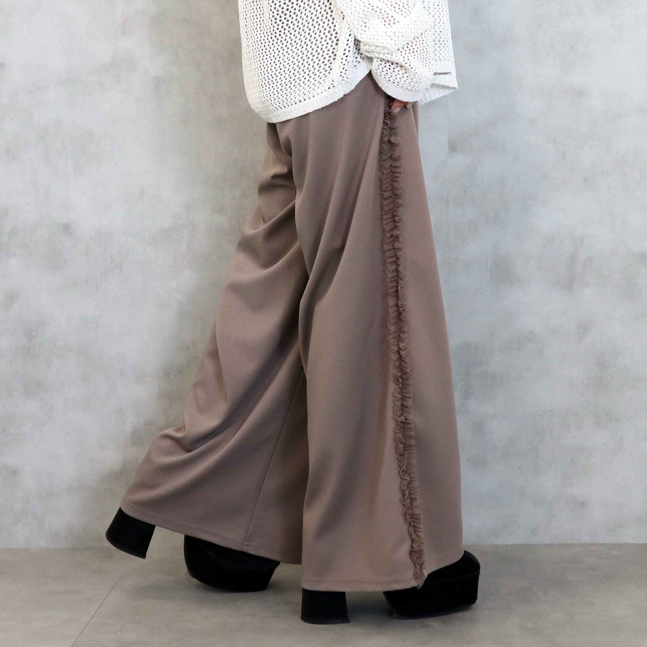 カットツイルサイドフリルワイドパンツ