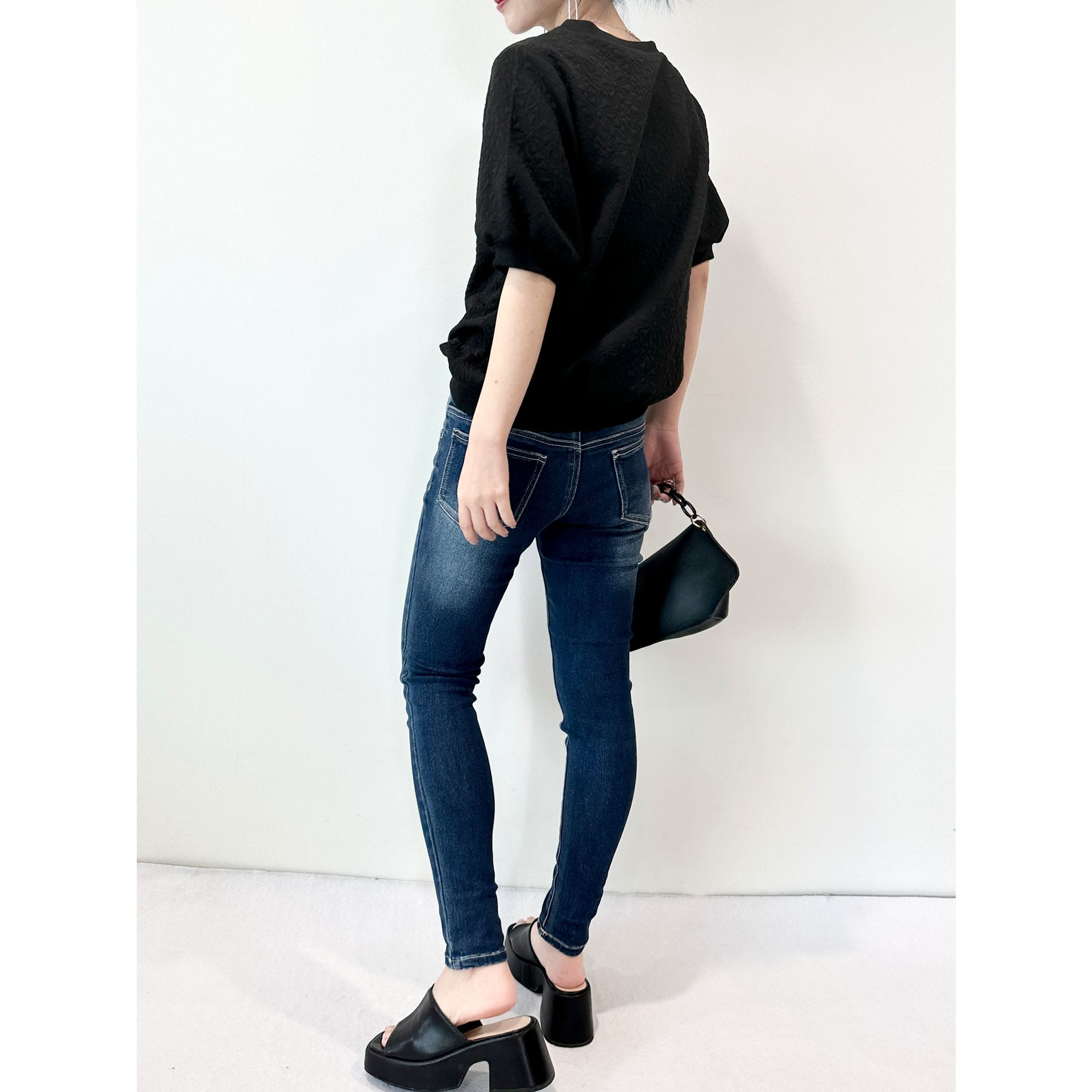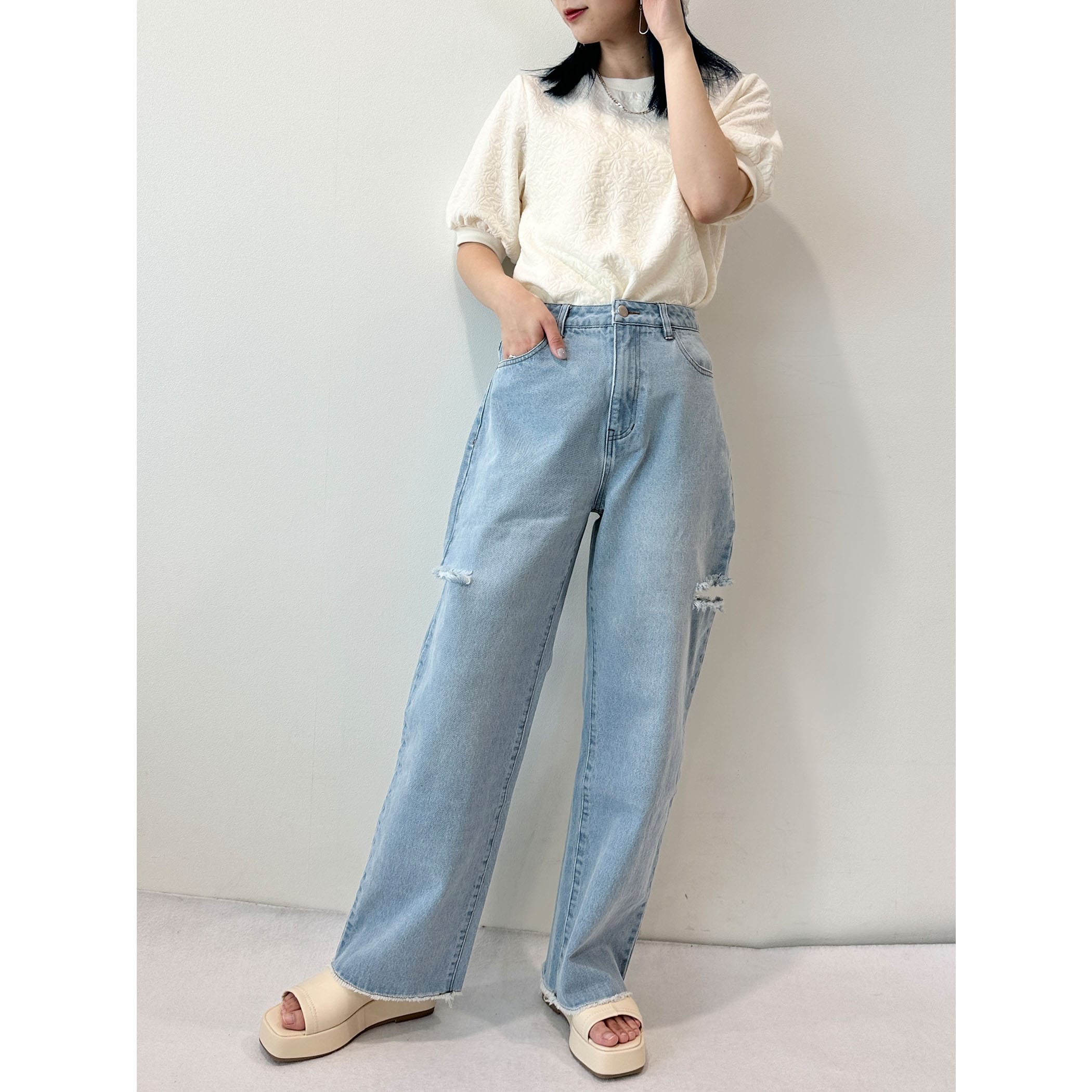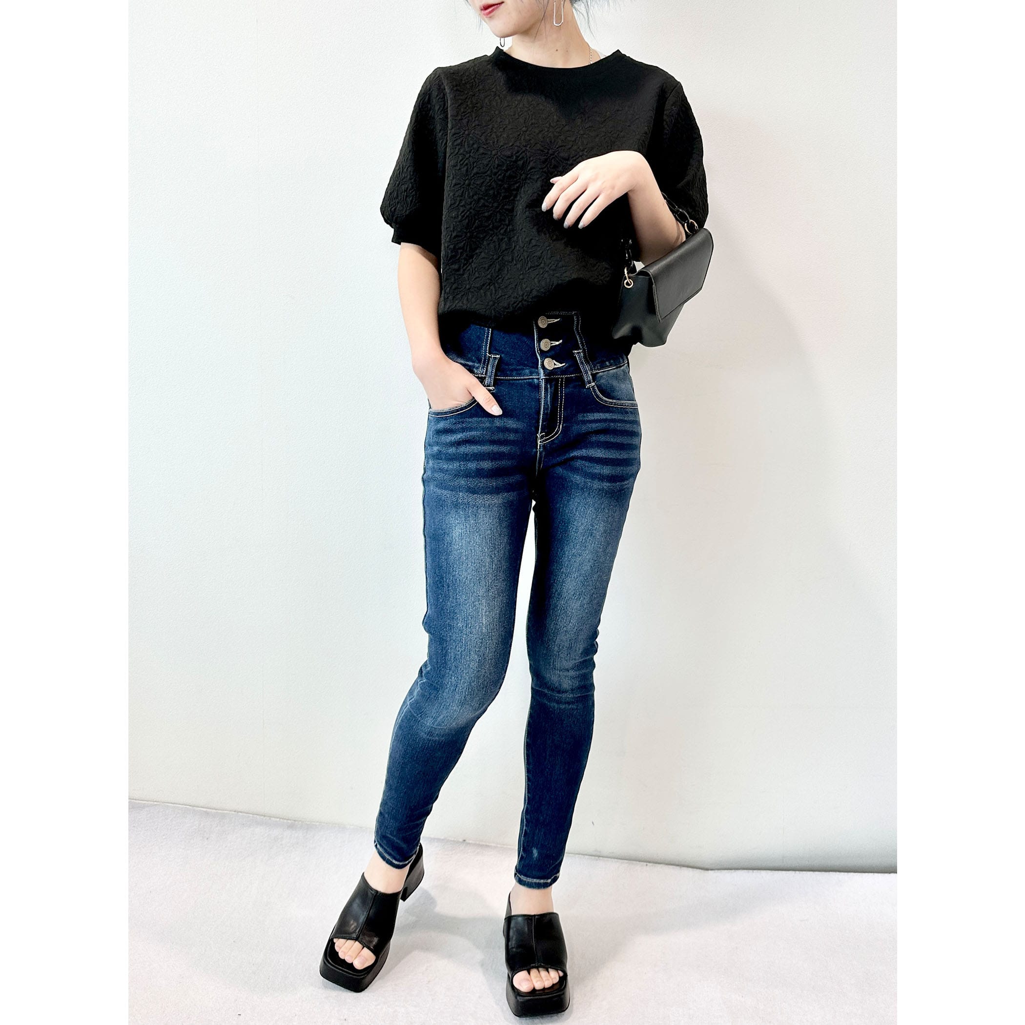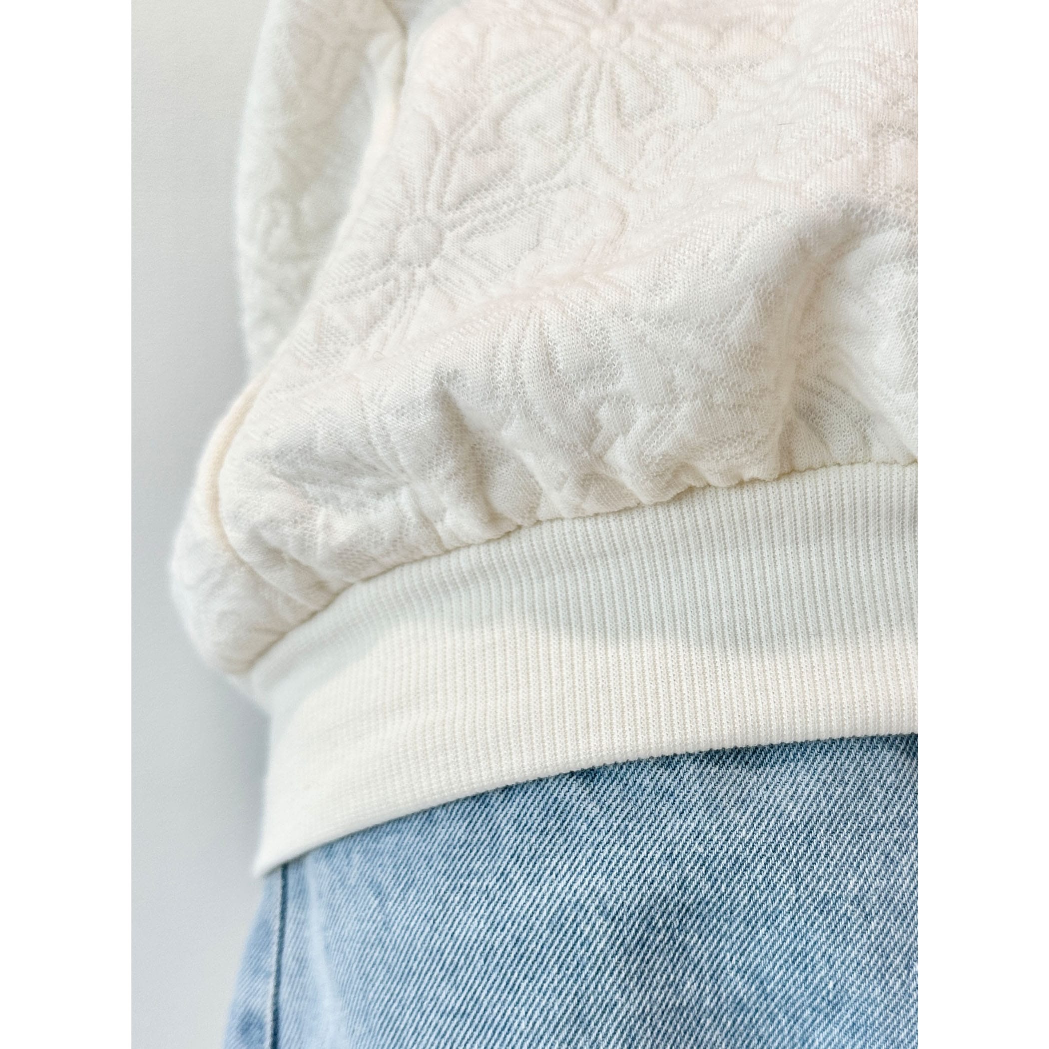 凹凸感のある花柄が新鮮な半袖プルオーバー。形はベーシックなので、スカートにもパンツにも合わせやすい一枚です。一枚で存在感のある素材なので着るだけでコーディネートのアクセントになります。お手持ちのワードローブに加えていただきたいアイテムです。