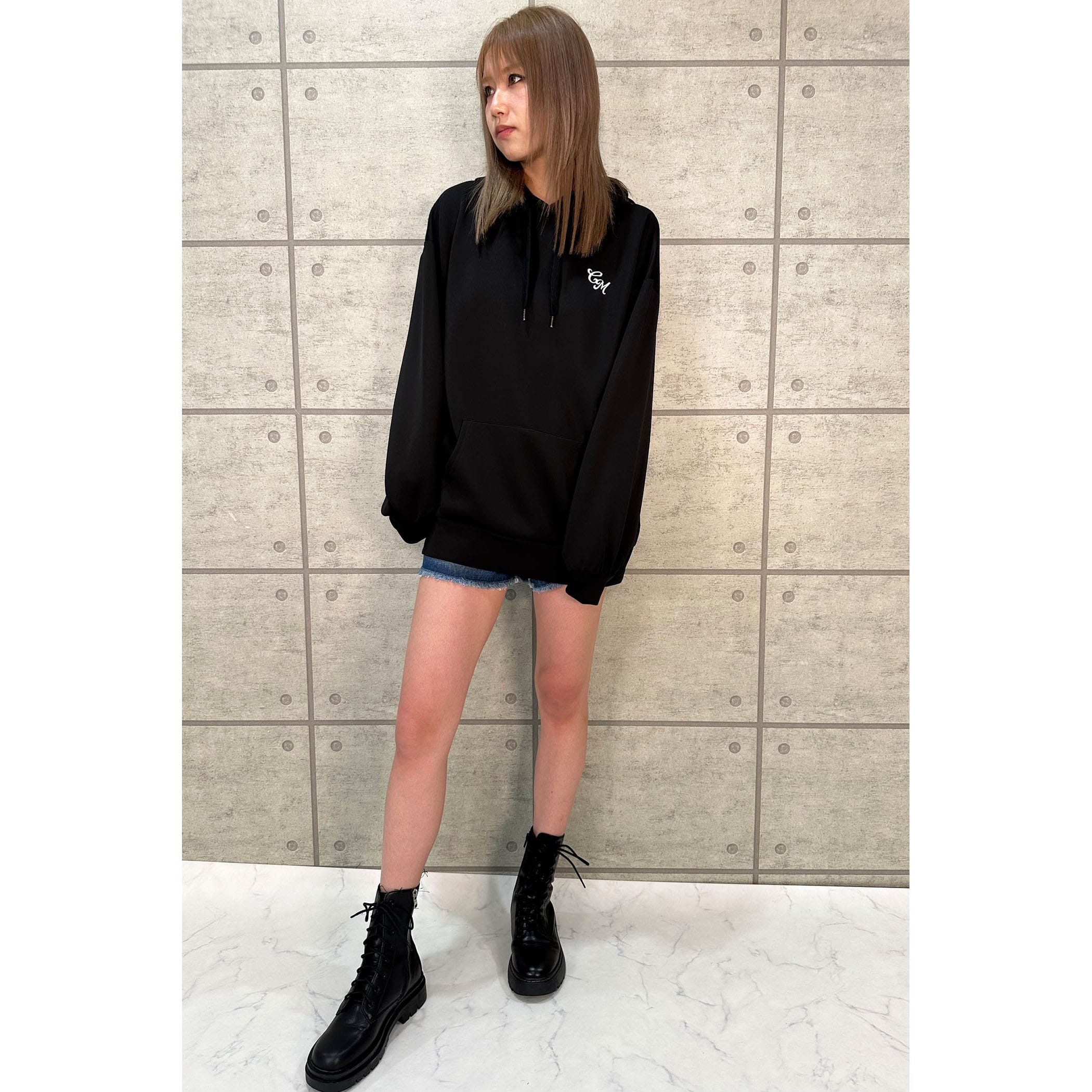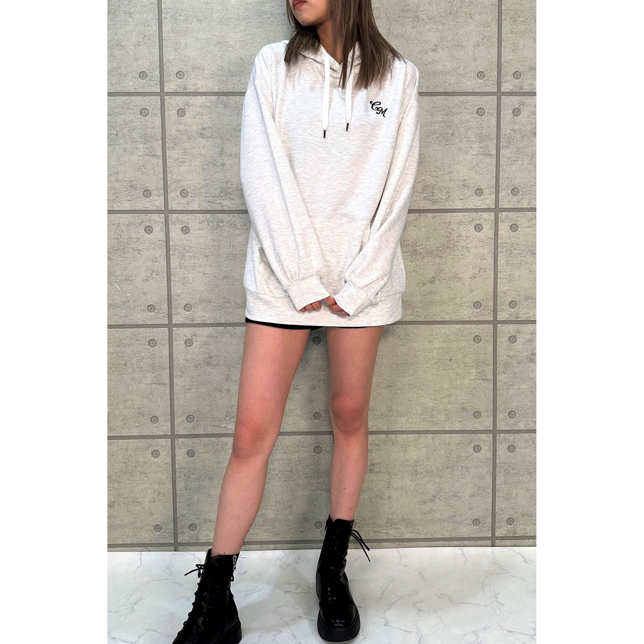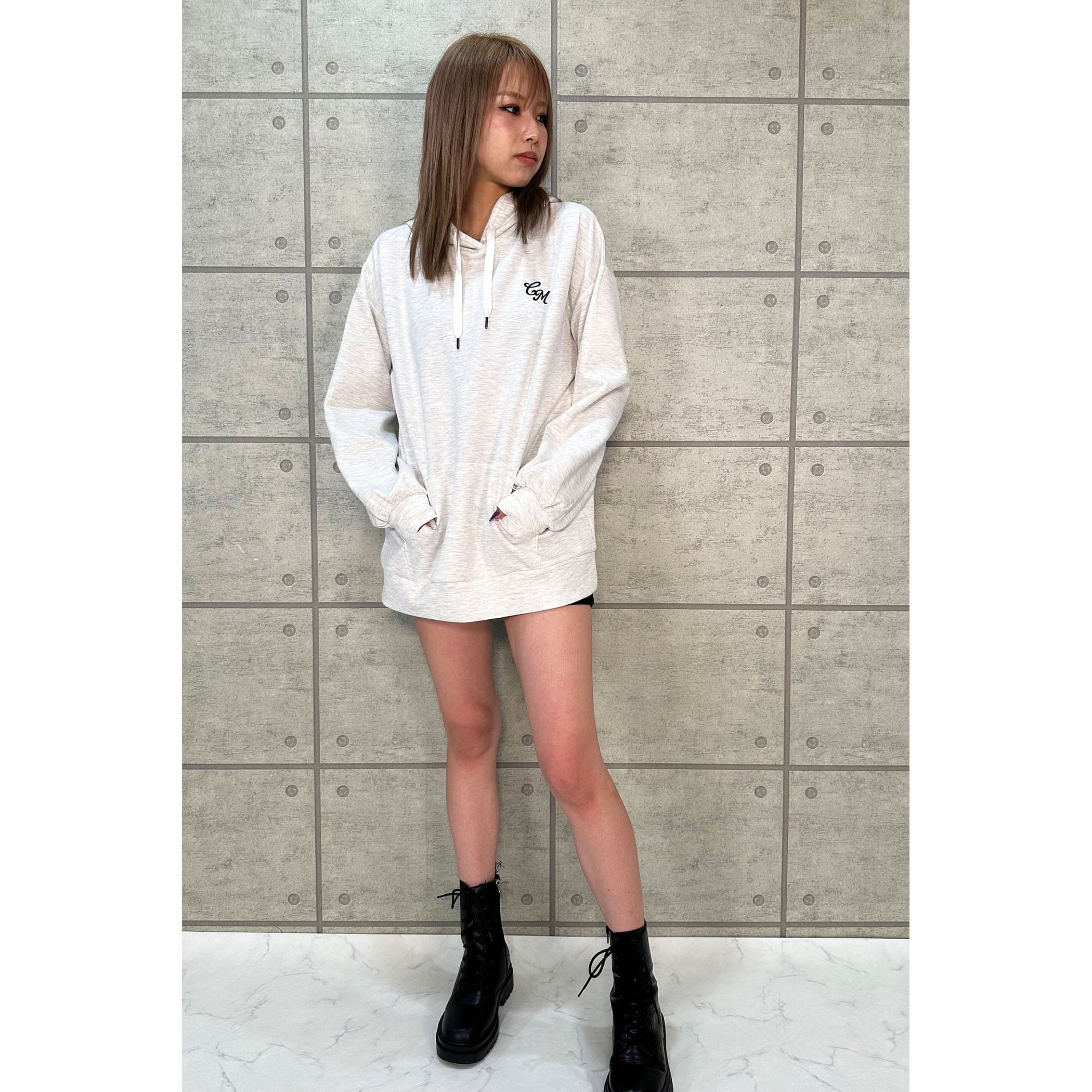 さりげない刺繍と後身頃のボックスプリントがポイントのゆるパーカー。シンプルなデザインで程よくゆるいシルエットで色んなコーデに使える1着☆