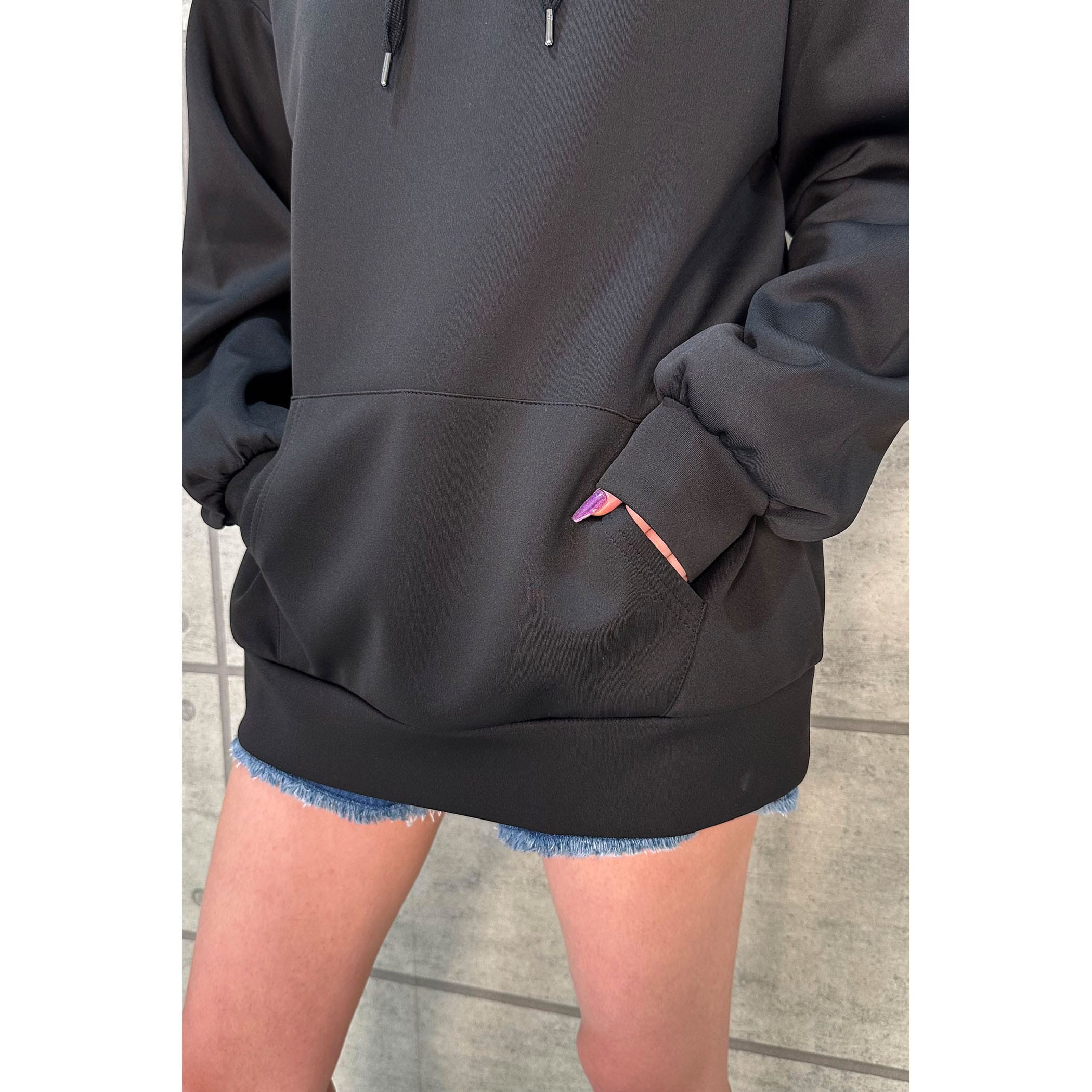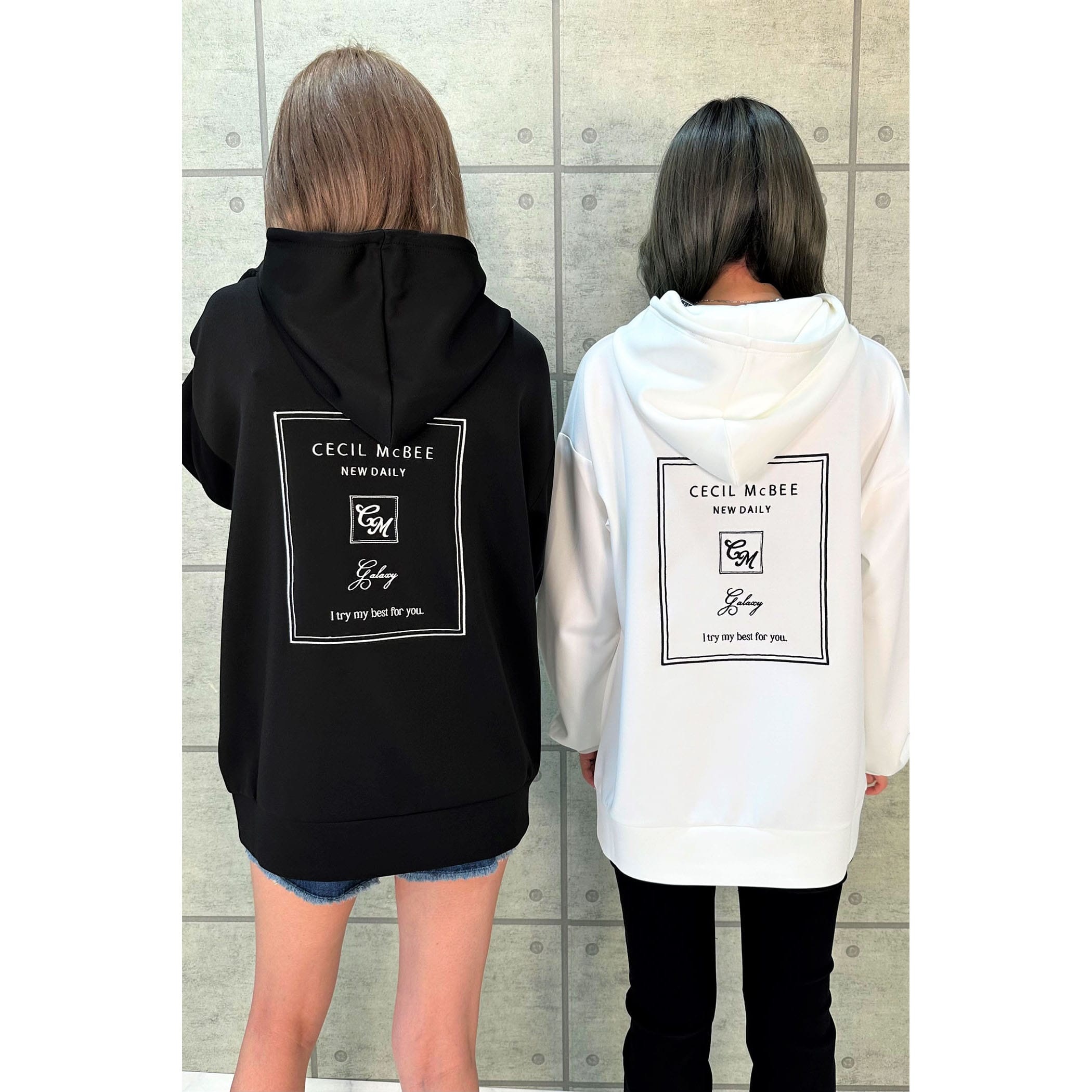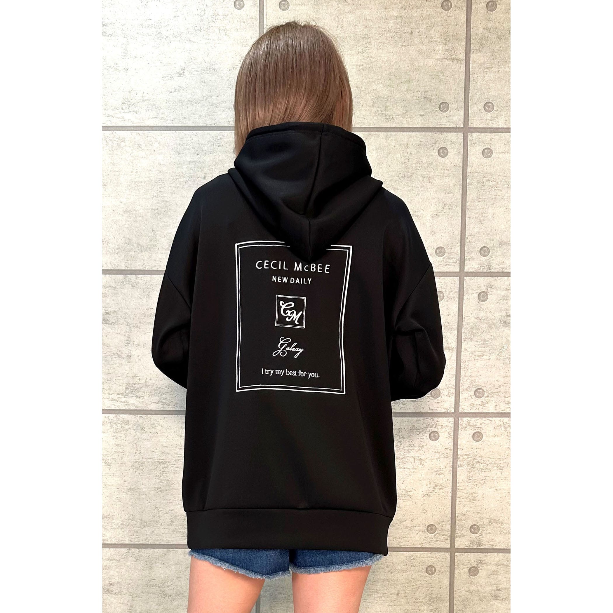 さりげない刺繍と後身頃のボックスプリントがポイントのゆるパーカー。シンプルなデザインで程よくゆるいシルエットで色んなコーデに使える1着☆