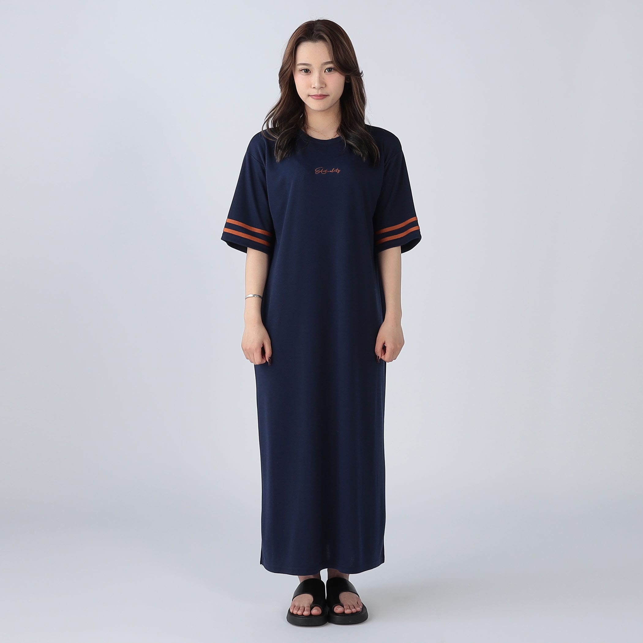 刺繍ロゴライン入りTシャツワンピース