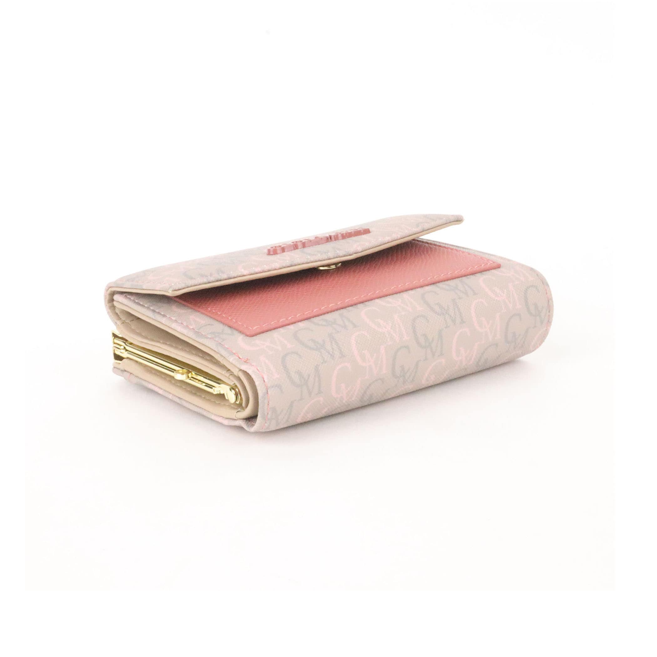 オリジナルのモノグラム柄をプリントしヴィンテージライクに仕上げたシリーズ。色を効かせたブローチがスポーティな雰囲気に。切り返しの配色がアクセントになっています。