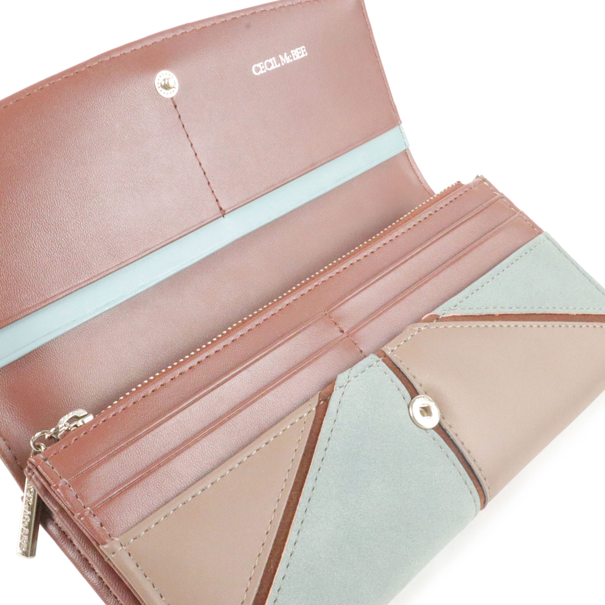 くすみカラーの配色とヌバック調の素材のパッチワークが目を惹くデザインのシリーズ。内造りに差し色を入れ開けた時にも気分が上がるこだわりのデザインです。