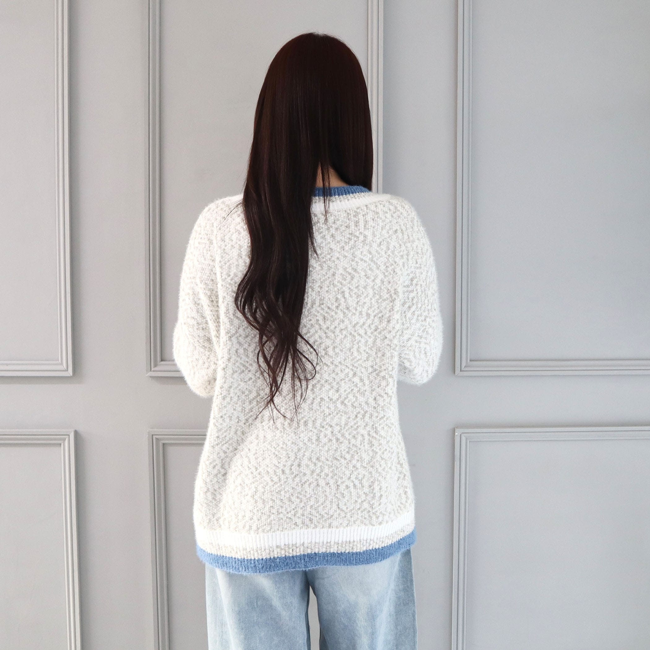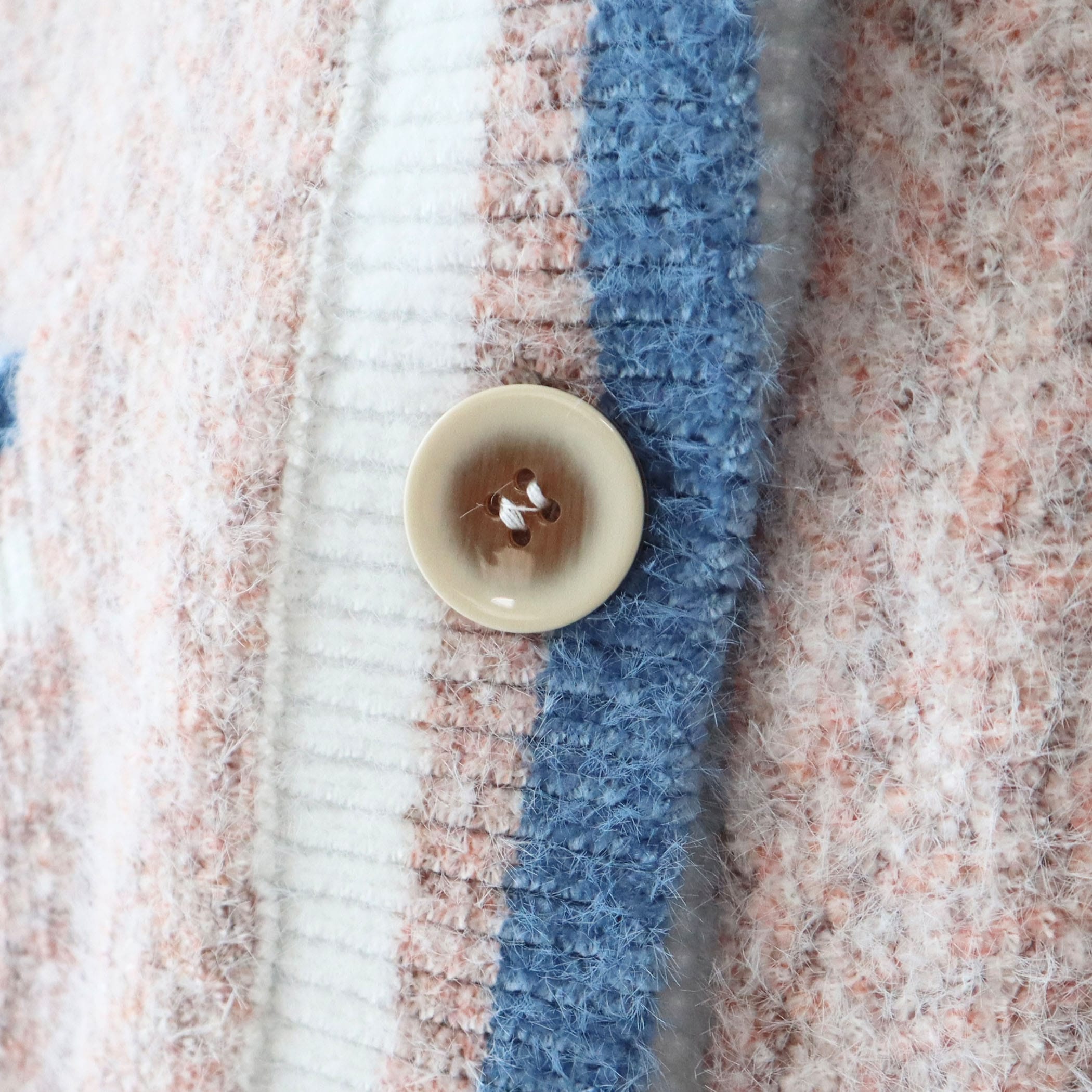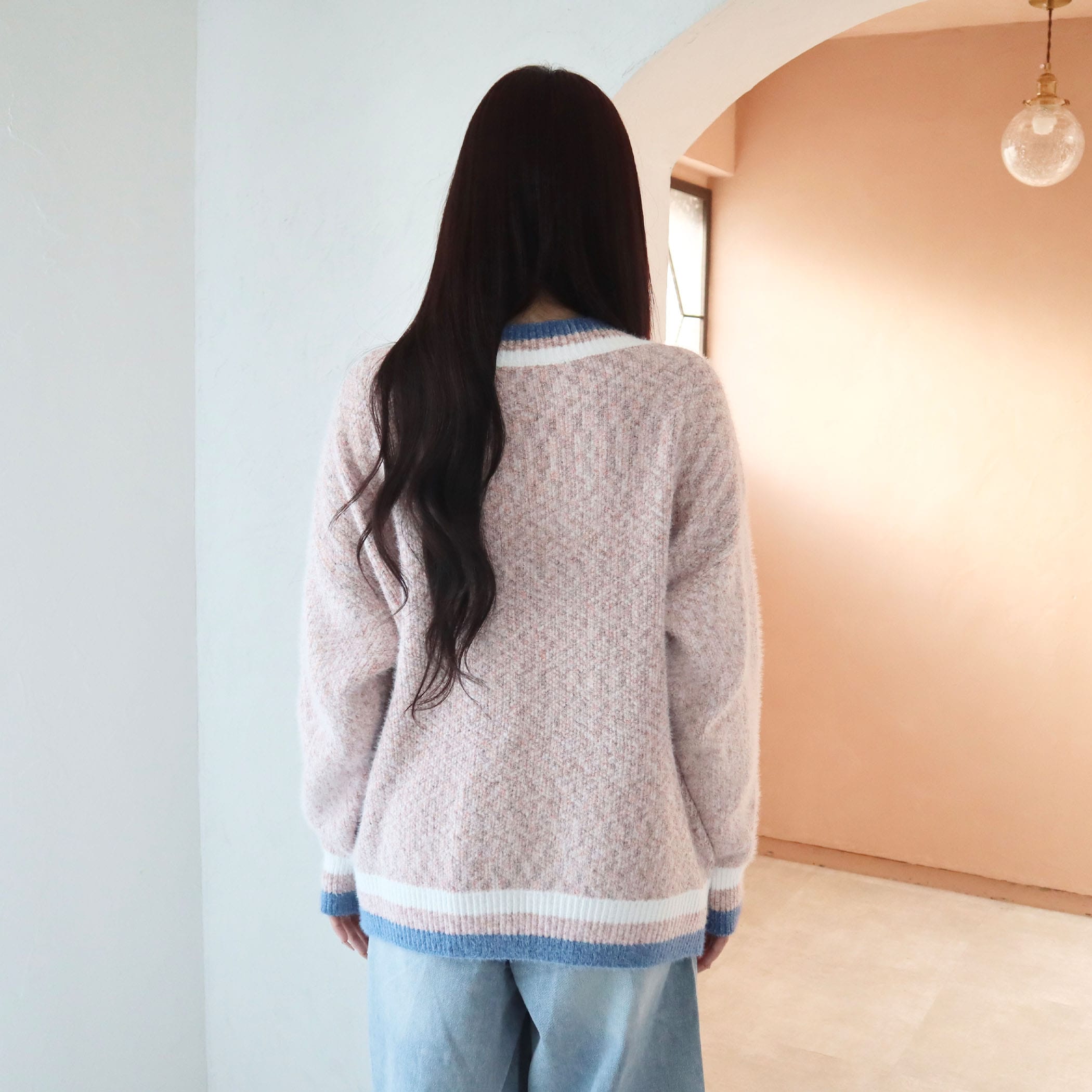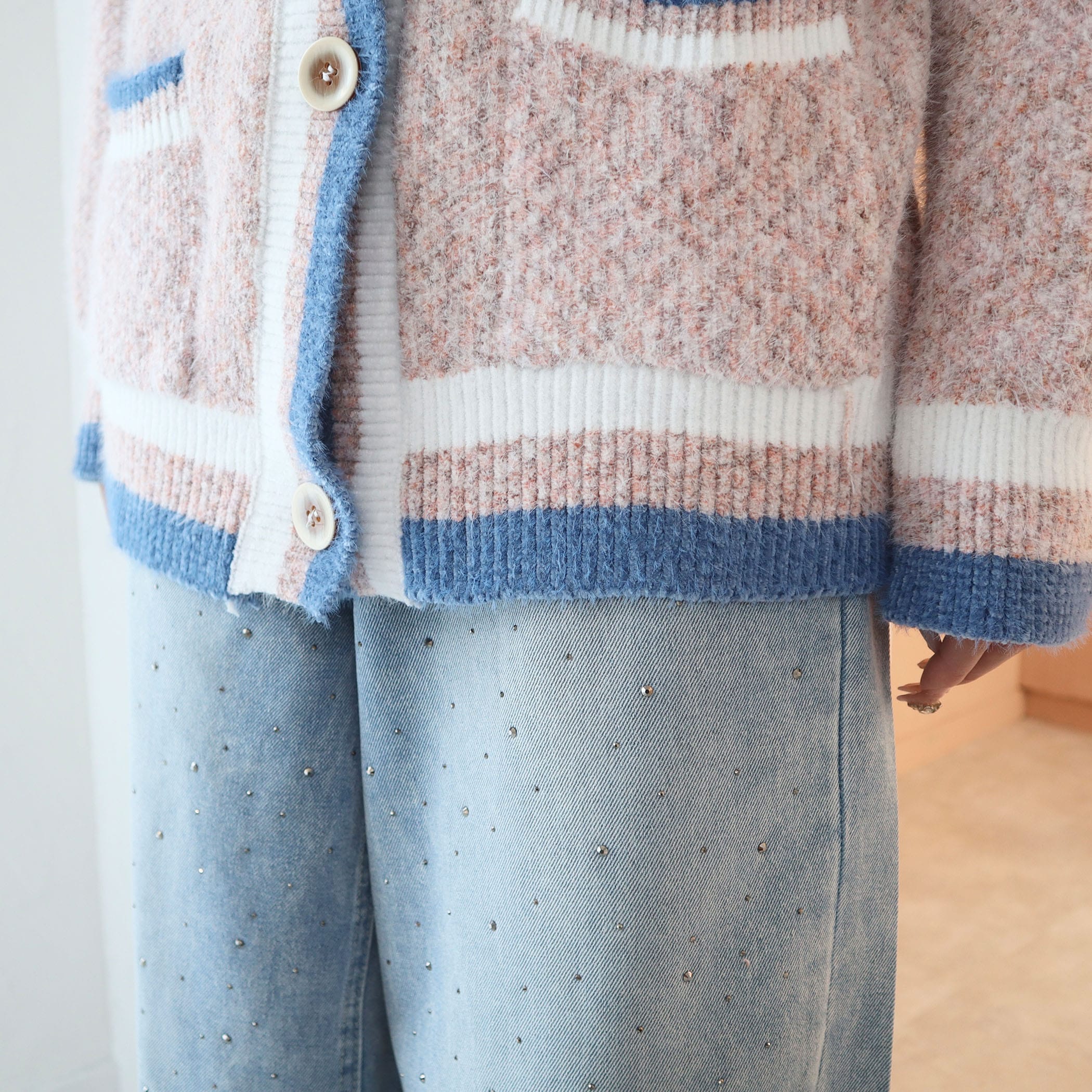 オーバサイズが可愛い配色ニットカーディガン。ゆったりシルエットで、ネックラインの配色トリミングや、オシャレな色の組み合わせがポイント!ポケットが付いているため、リップや小物などを忍ばせたり実用性も抜群。前開けで羽織るようにさらっと着ても映え、様々な着こなしが楽しめます◎