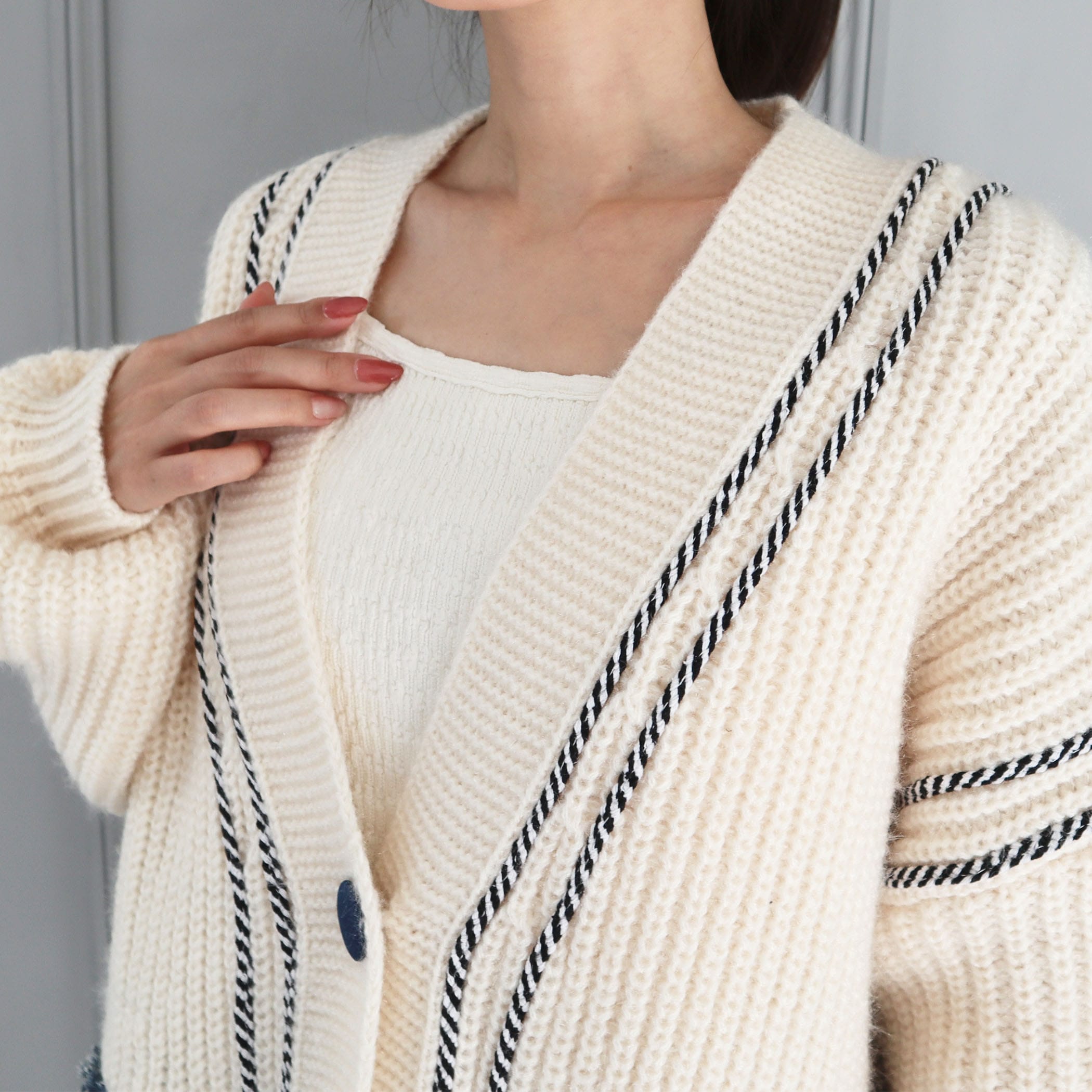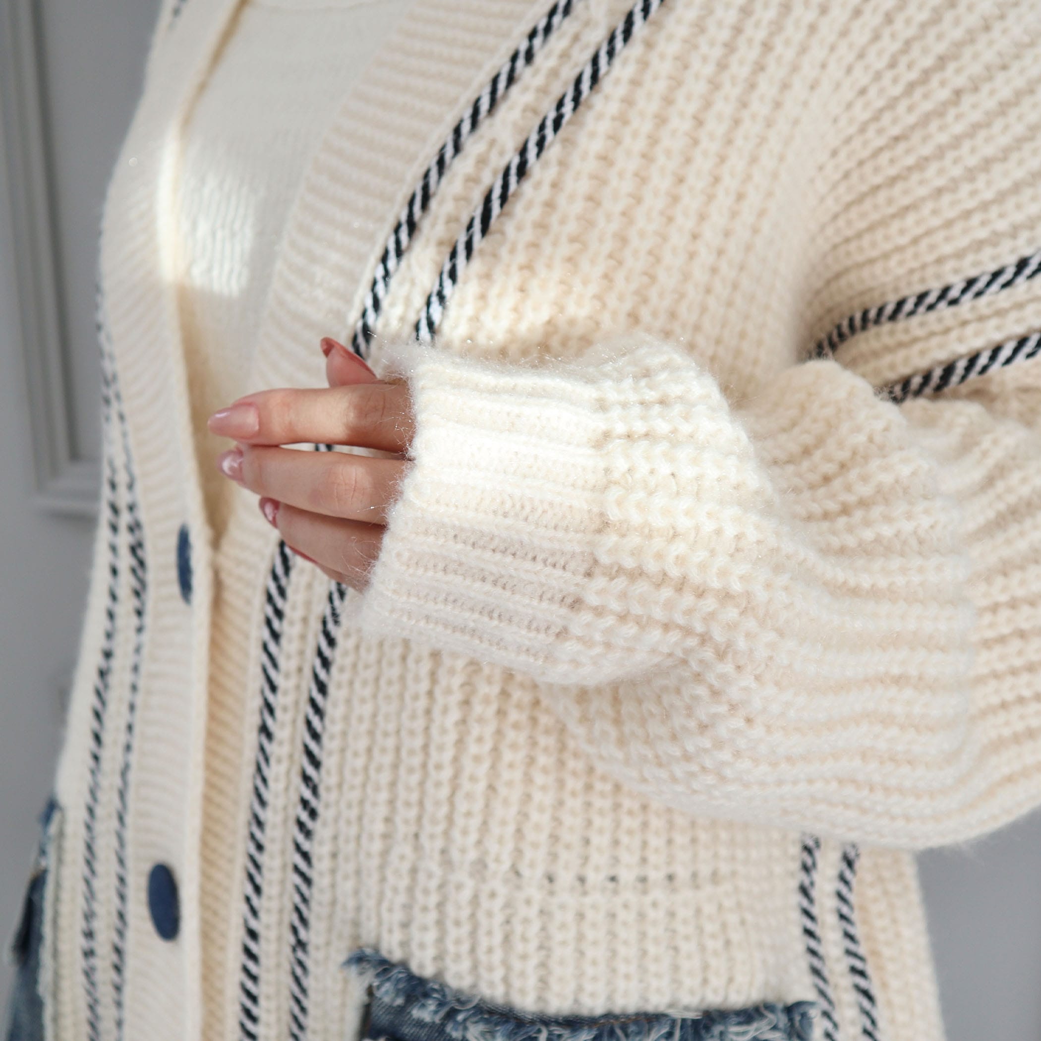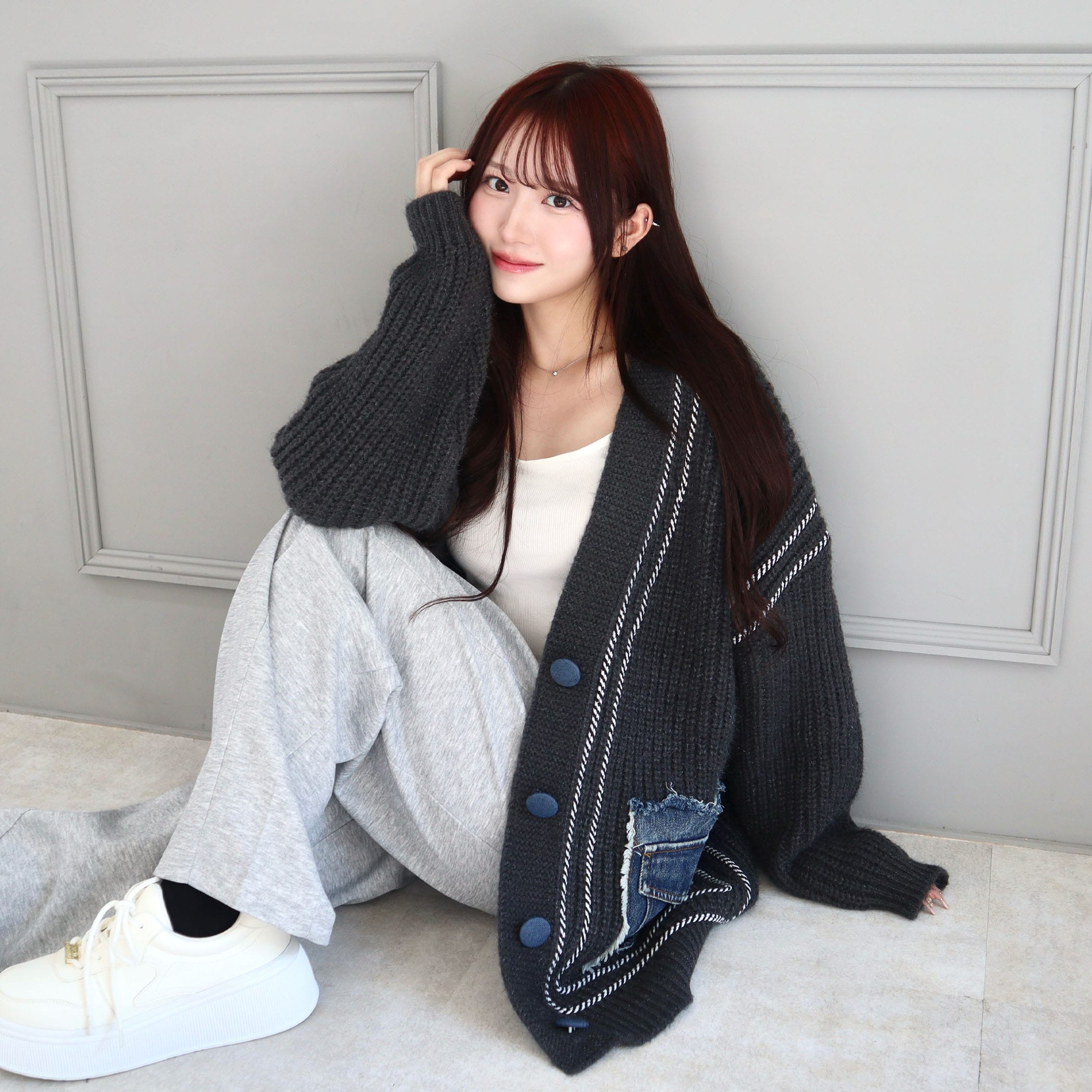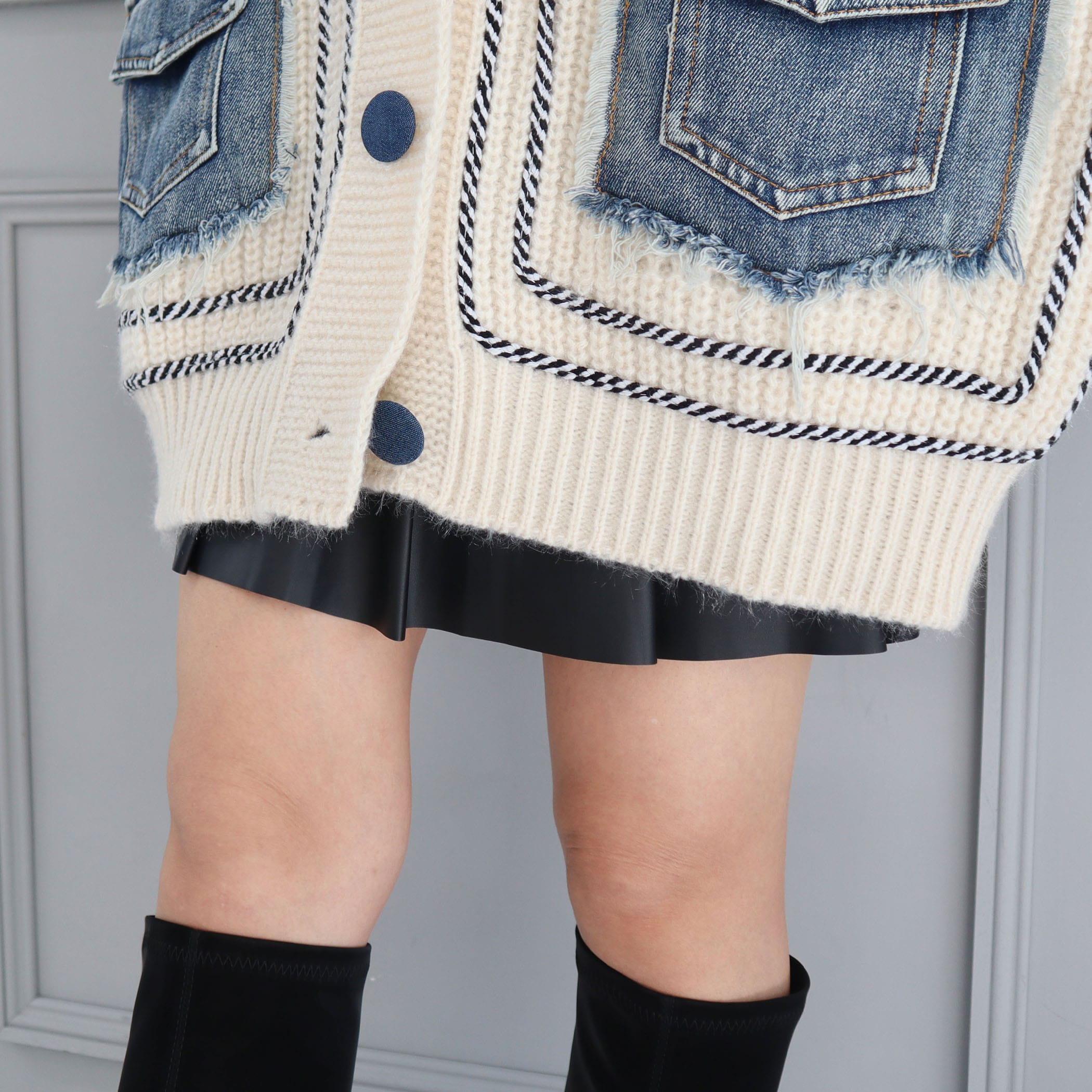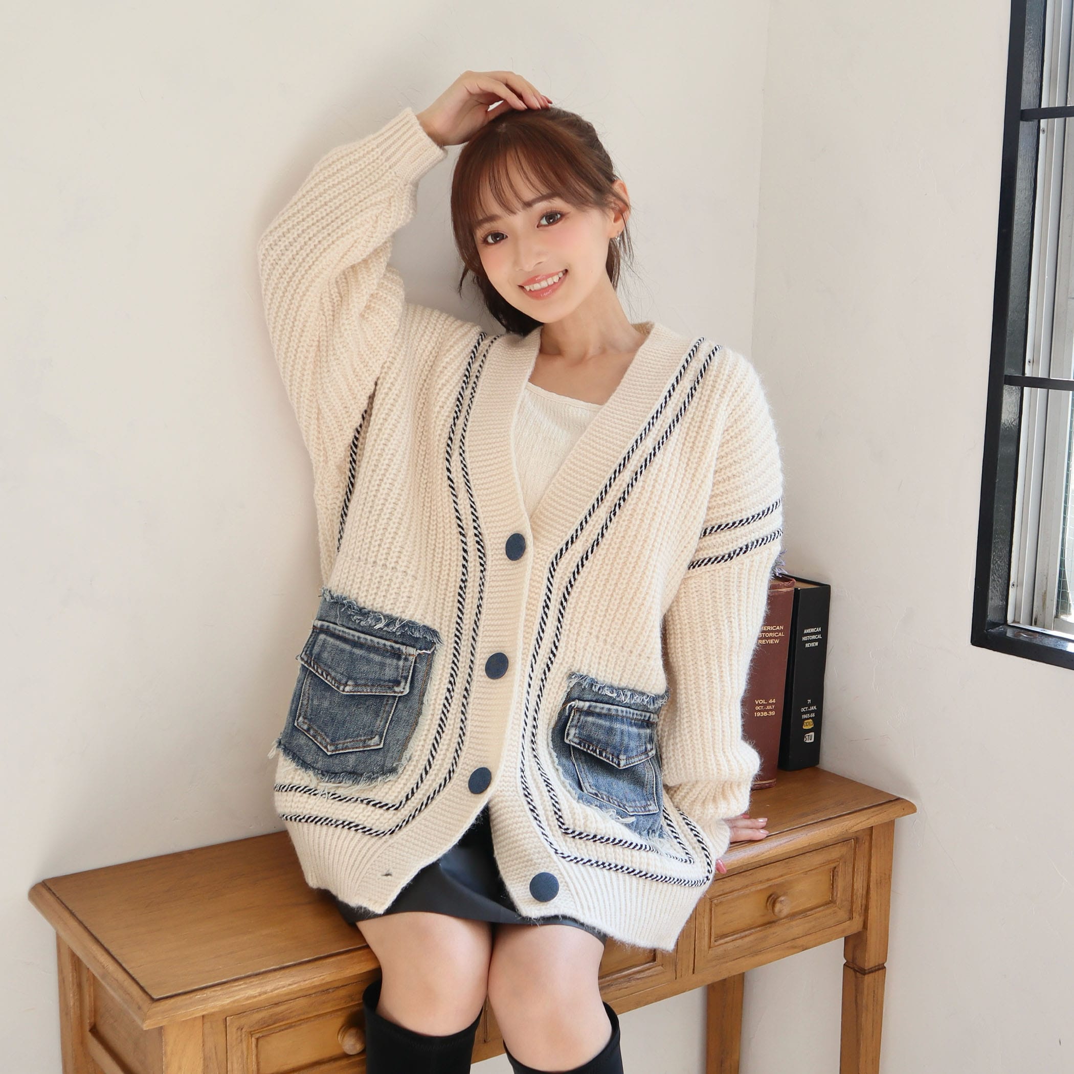 デニムポケットライン入りリブニットBIGカーディガン