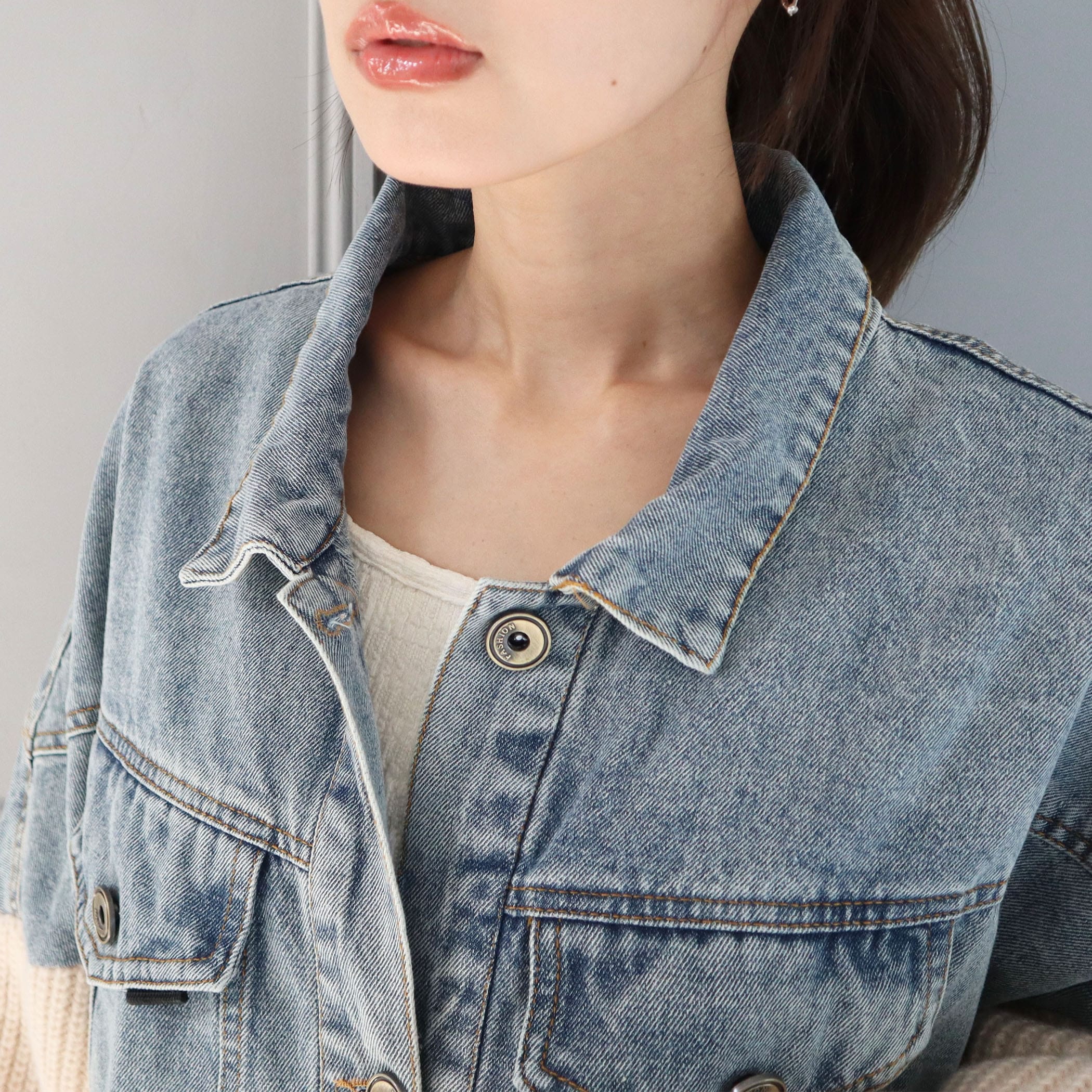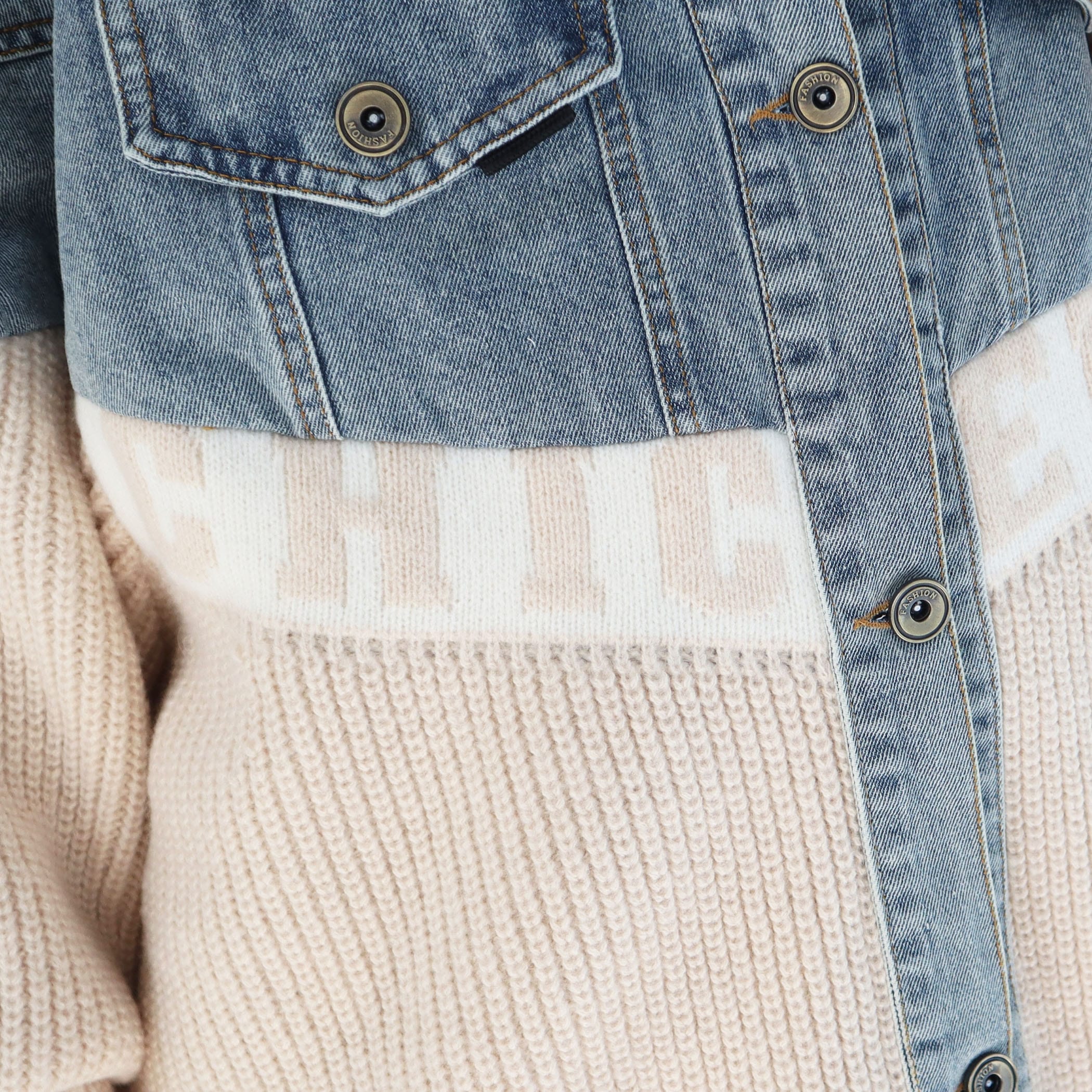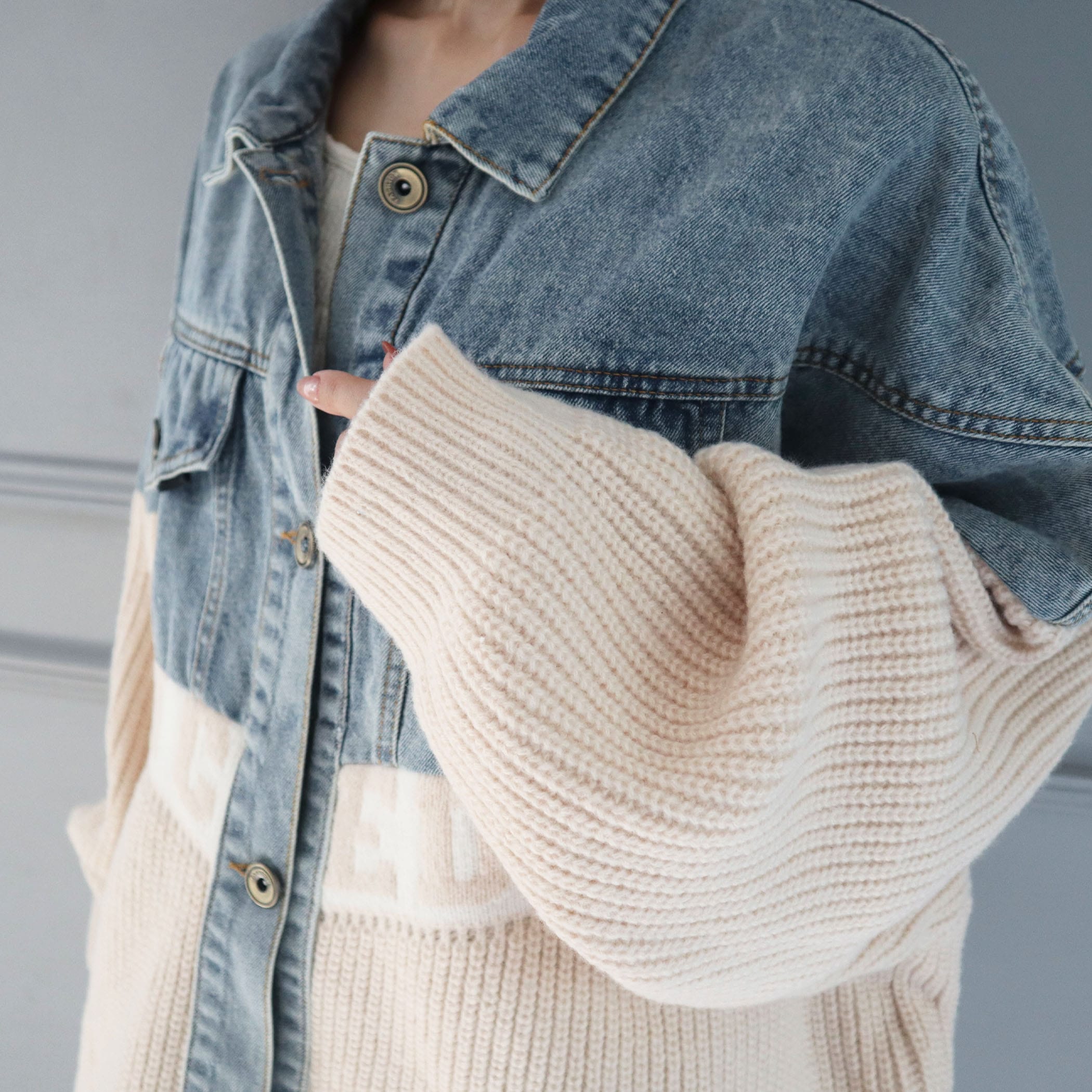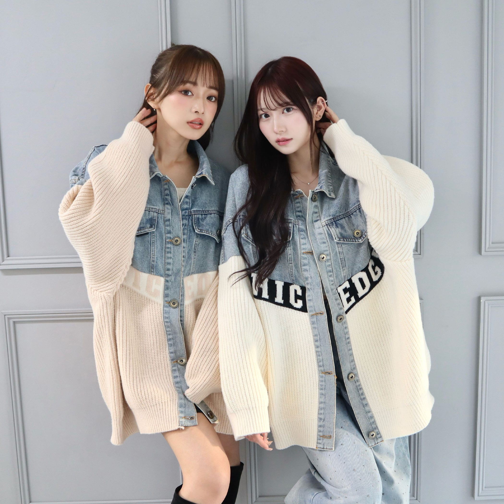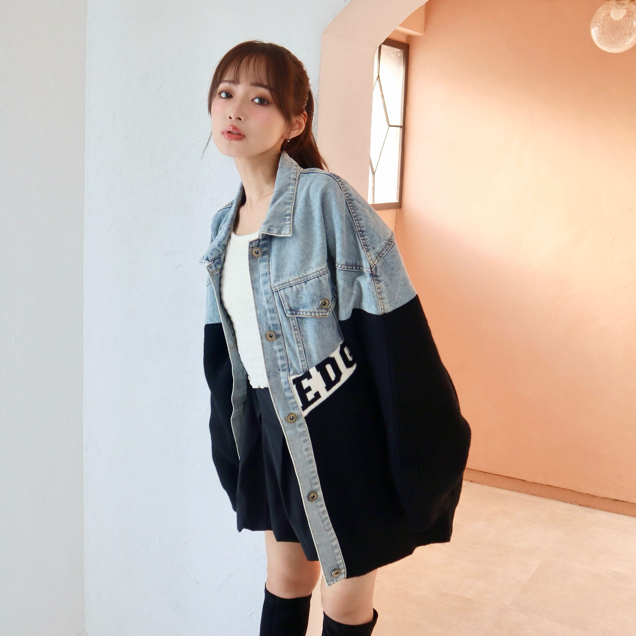 素材の切り替えデザインとロゴがポイントのジャケット。オーバーサイズで着用するだけで抜け感のあるストリートカジュアルコーデが完成するアイテムです。デニム素材とニット素材が切り替えになったデザイン性の高いアウターで、着用するだけでコーディネートの主役になります◎フロント部分と後ろには大きなロゴデザインがポイント。大きめのゆるっとしたシルエットなので、厚手のトップスなどの上からでも着用しやすくなっています。スウェットパンツやデニムパンツなどと合わせて厚底スニーカーなどのシューズと合わせて着用すればトレンド感のある韓国ファッション風コーデになります。ミニスカートやショートパンツと合わせてロングブーツやニーハイブーツなどと合わせればY2Kファッション風コーデになります。秋服冬服シーズンのトレンドコーデにおすすめのアウターです。