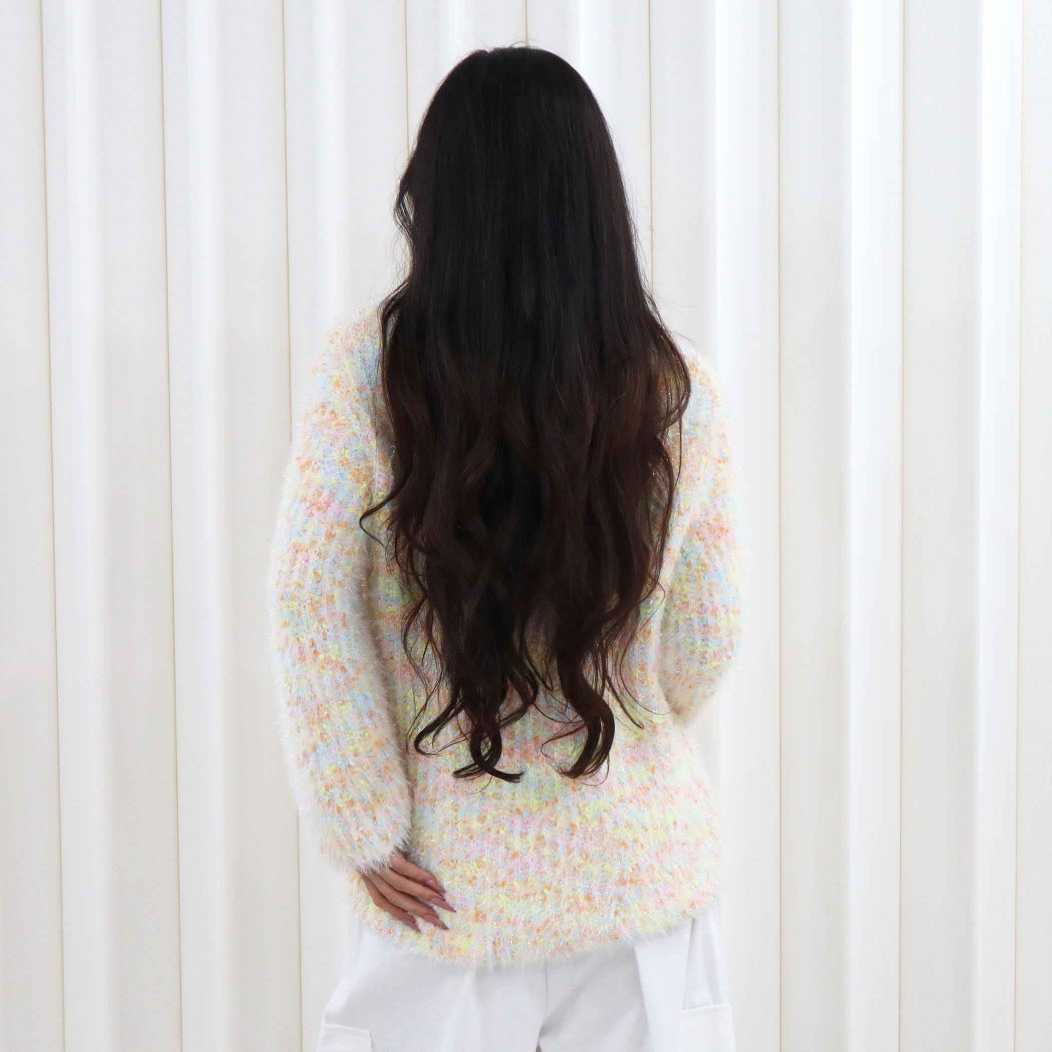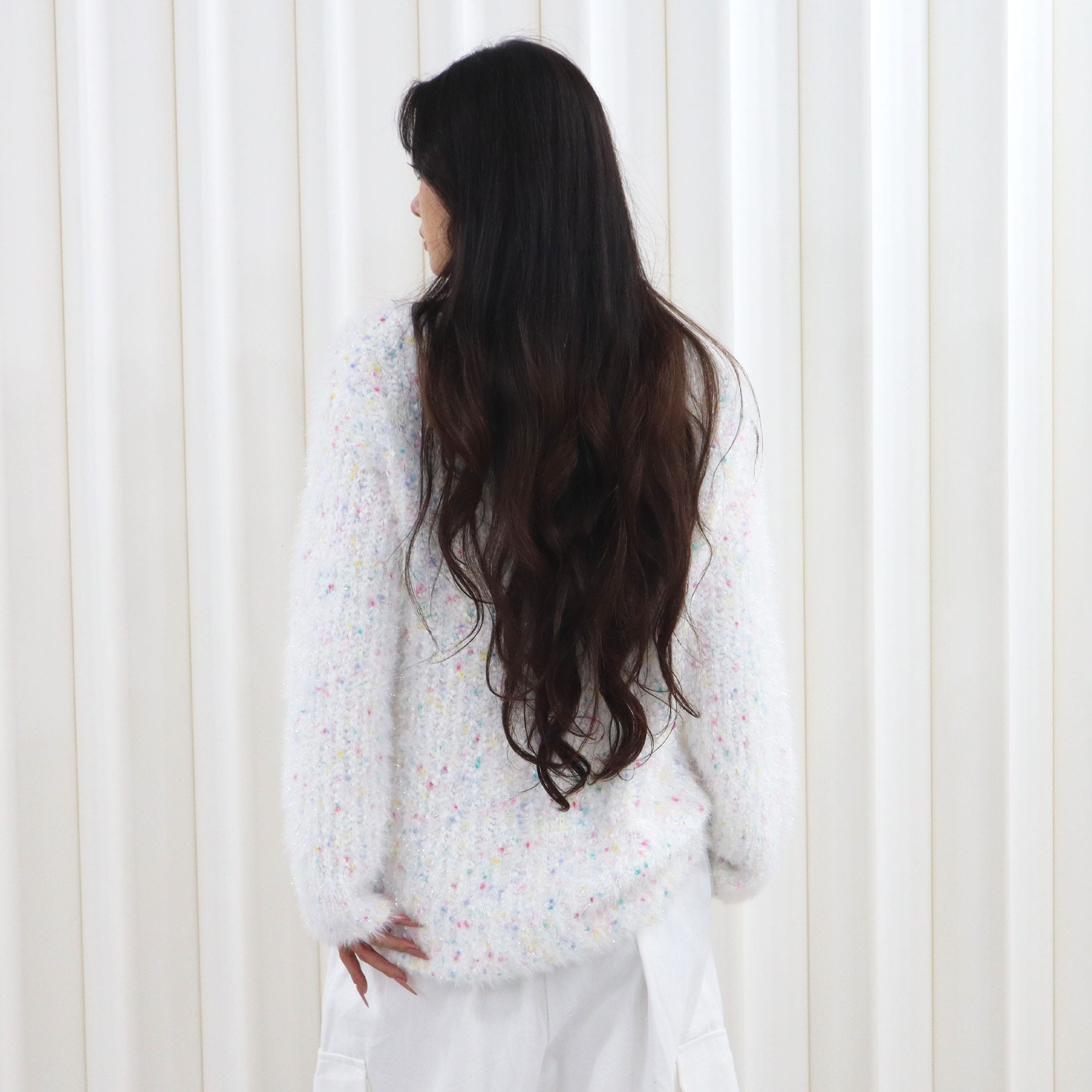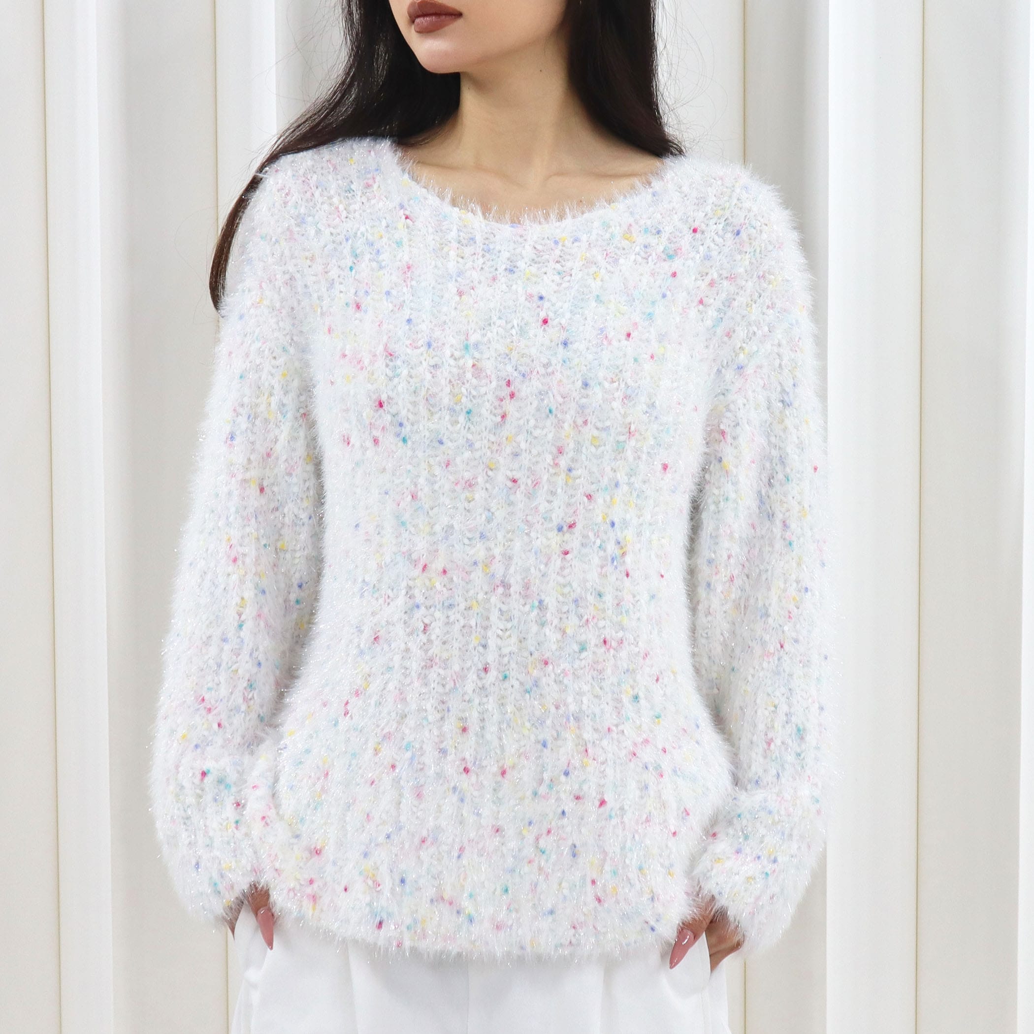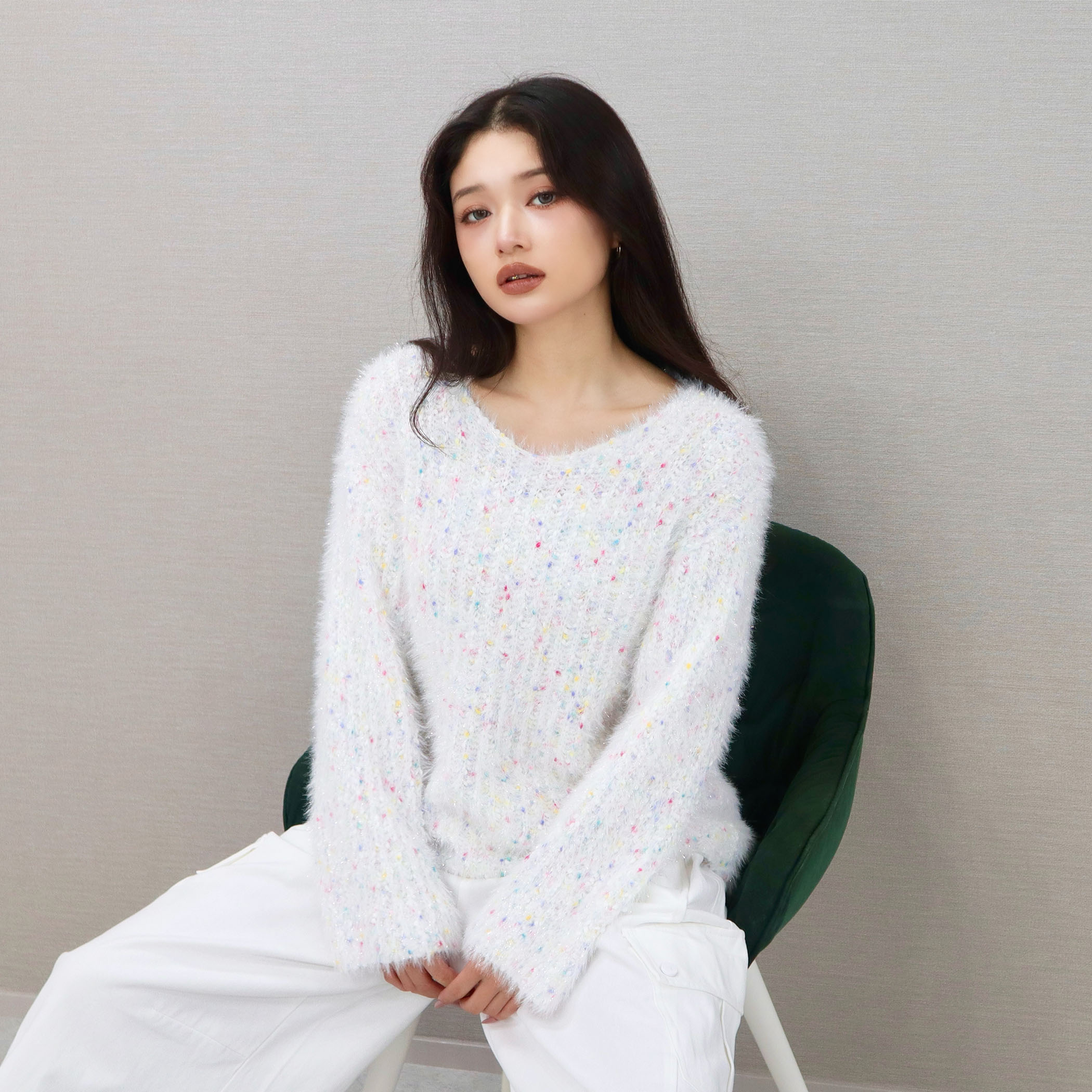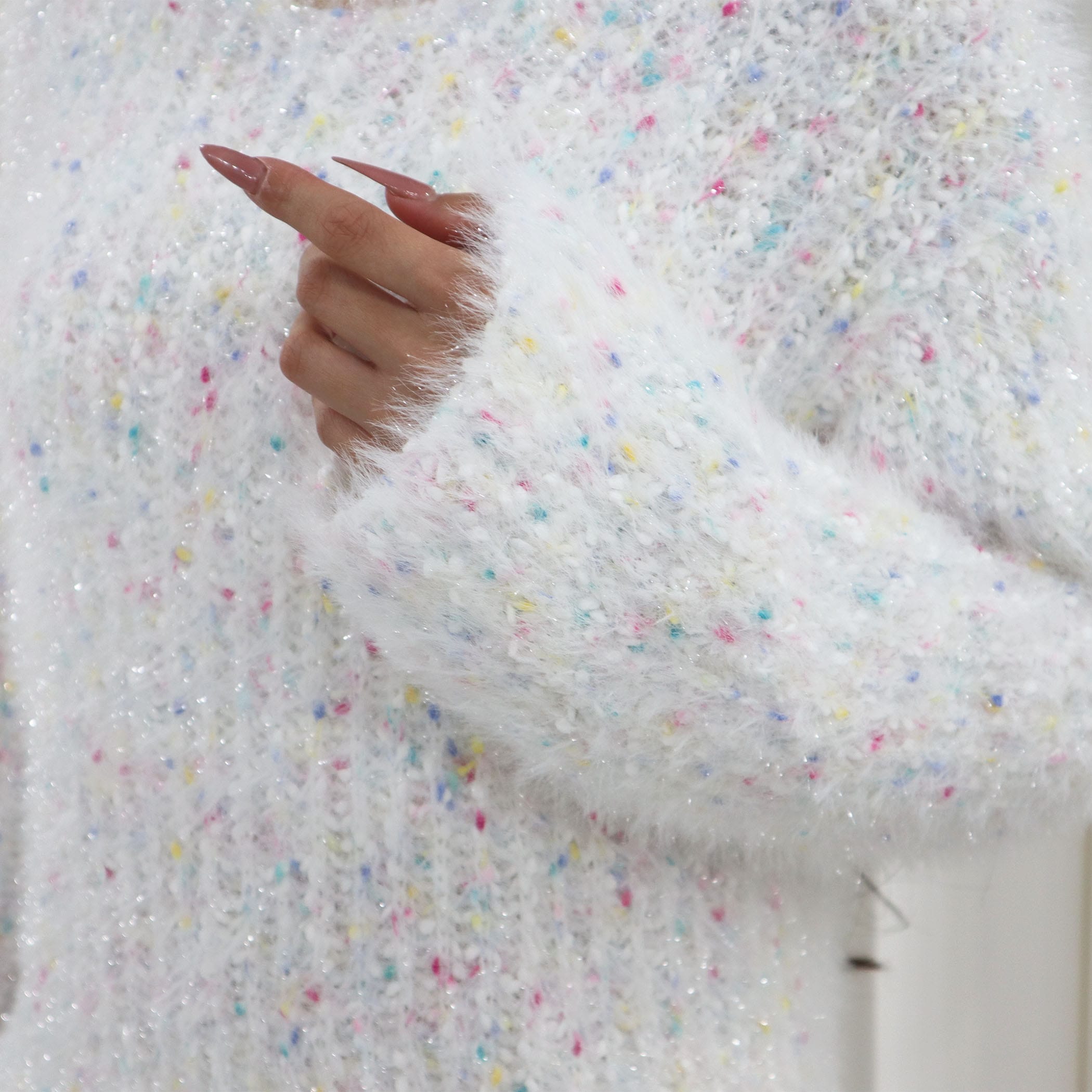 ぽてっとシルエットが可愛いMIXニットトップス。ポワッとしたシルエットが女性らしい印象に。Vネックで首元に抜け感を与えてくれます。MIX糸を使用したニット素材でコーデの主役に!シンプルなデニムやスラックス合わせでカジュアルスタイルに、スカートと合わせで女性らしいスタイルもおすすめです。Vネックなのでハイネックのインナーとレイヤードスタイルも◎