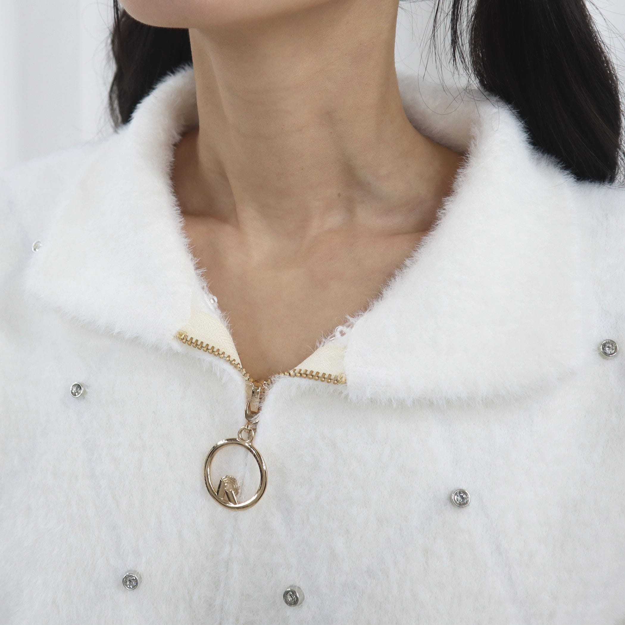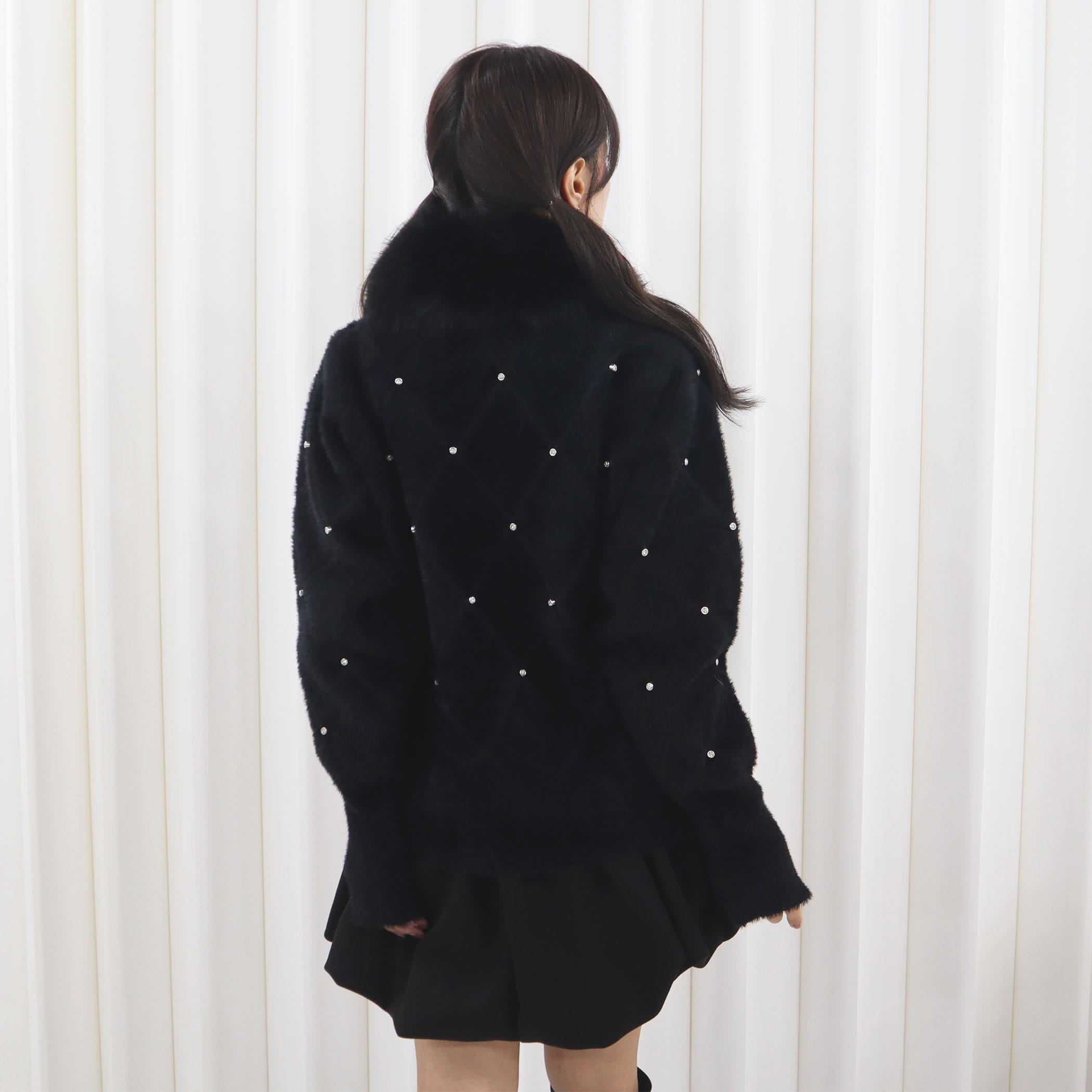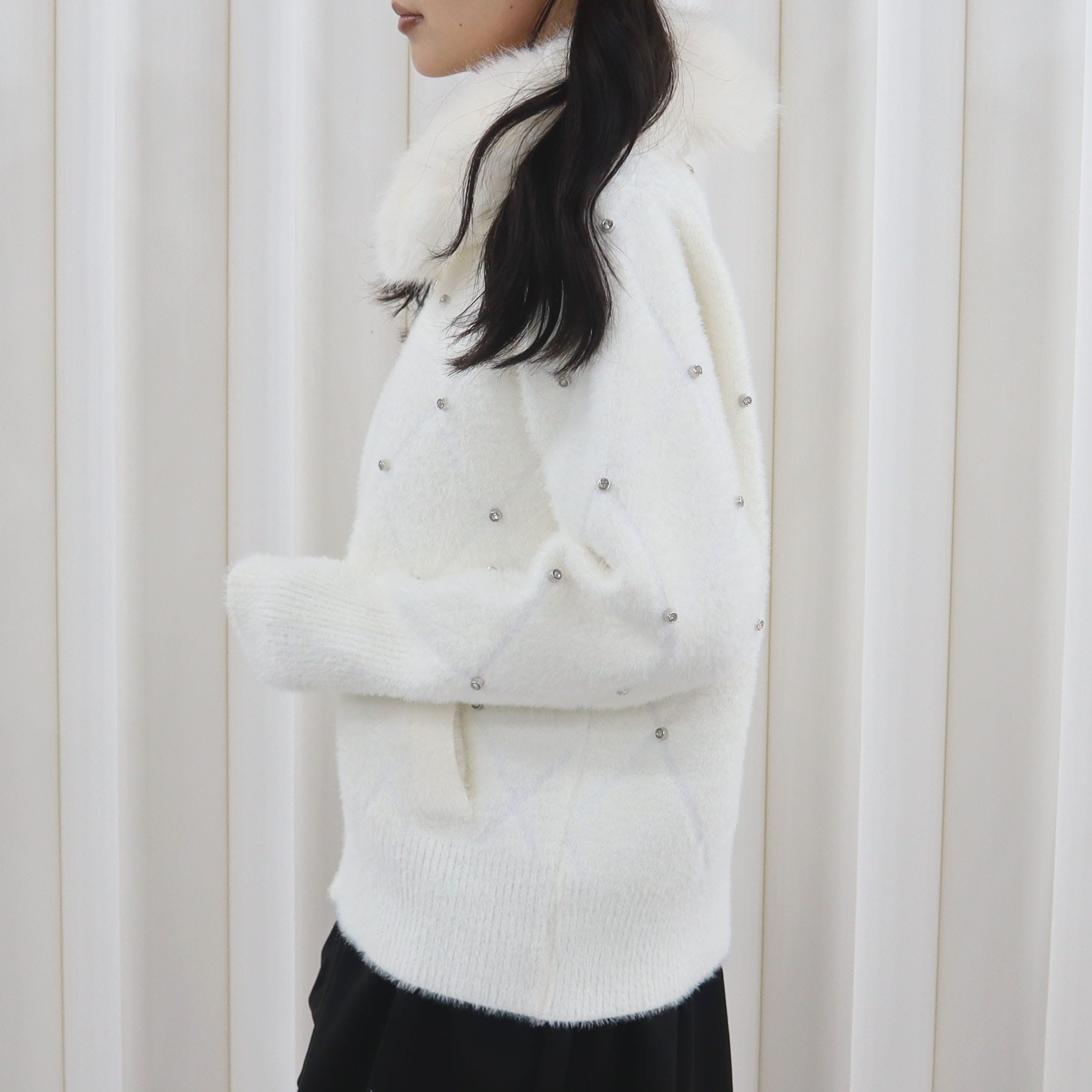 上品にな印象が叶うビジュー付きファー襟ニットカーデ。上品な印象ながら、ジップでカジュアルさをプラスしてバランスよく仕上げました。ファー付の襟は小顔効果も◎ファー襟は取り外し可能なので気分や気温で変えていただけます!ミニ丈のスカートやパンツ合わせがおすすめ。ファーを外してパンツ合わせもカジュアルに着ていただけます!ワンピースやロングスカート合わせも大人っぽくておすすめです◎