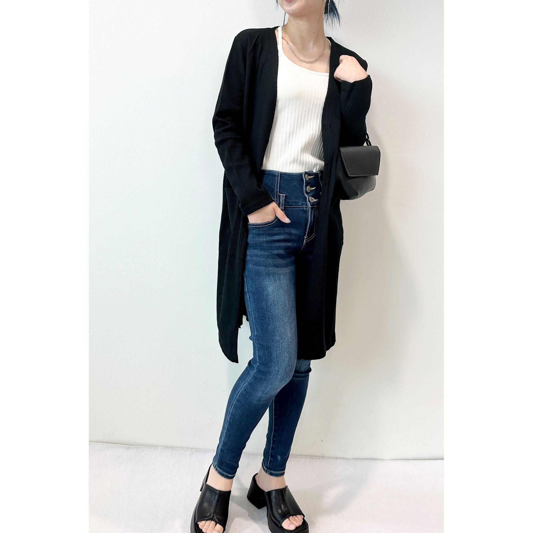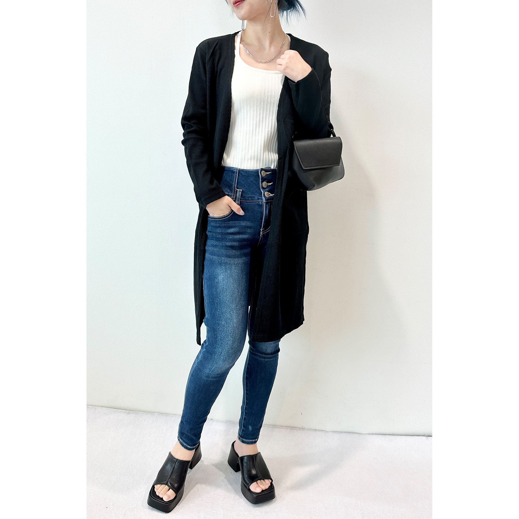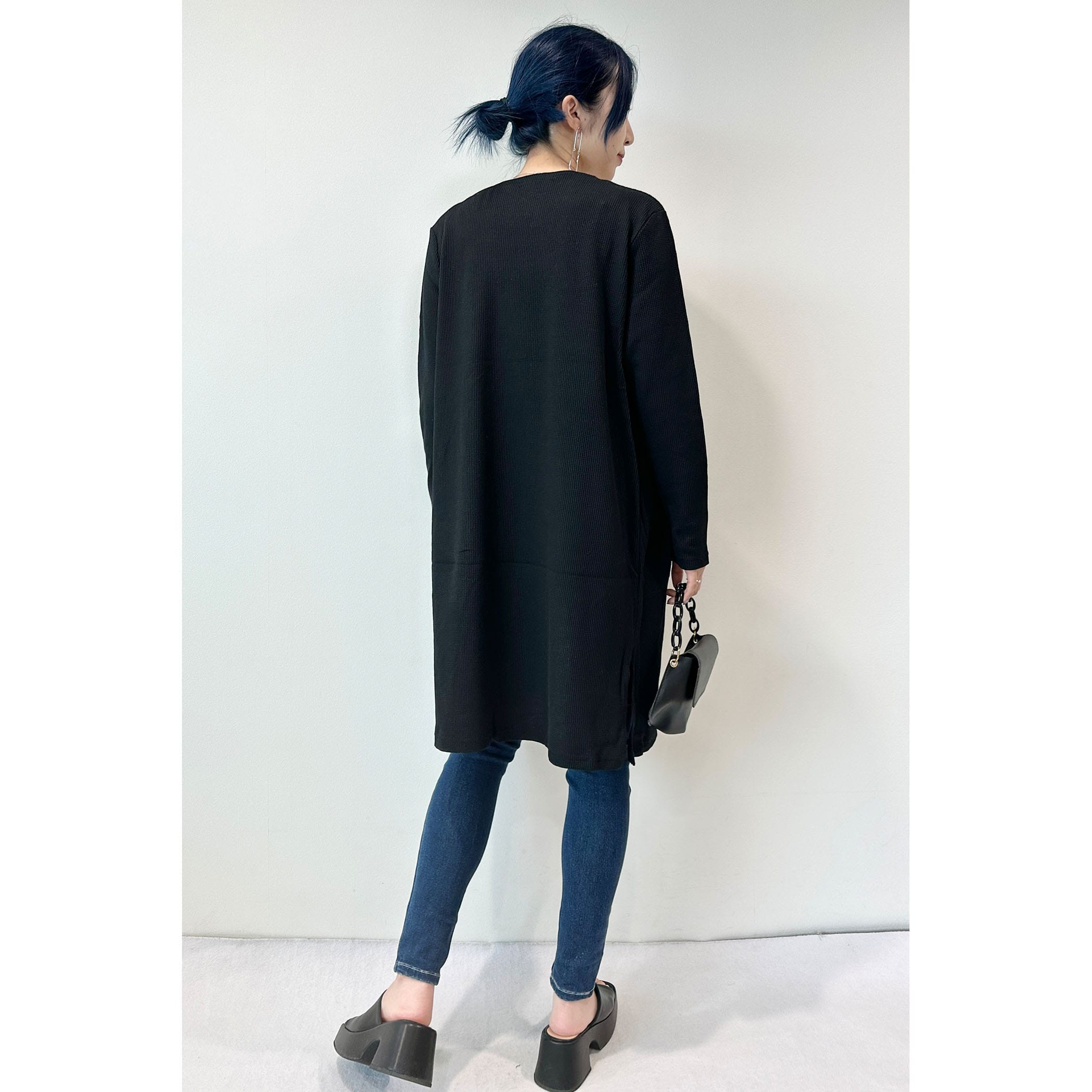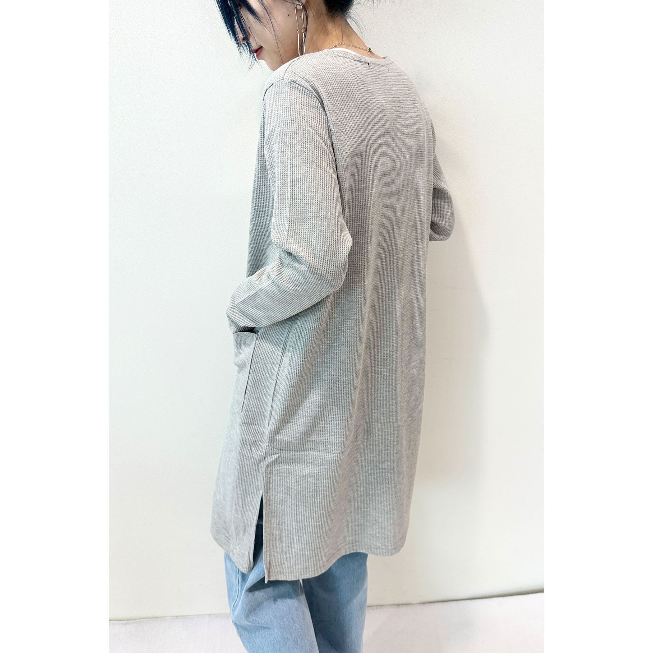 ワッフル編みのロングカーディガンです。ふっくらと柔らかい生地が特徴。スポーティに合わせたり、きれいめなスタイルに合わせてカジュアルな抜け感を出してもおすすめです。カット素材のカーディガンなので春先などにはアウター代わりとしても使って頂けます