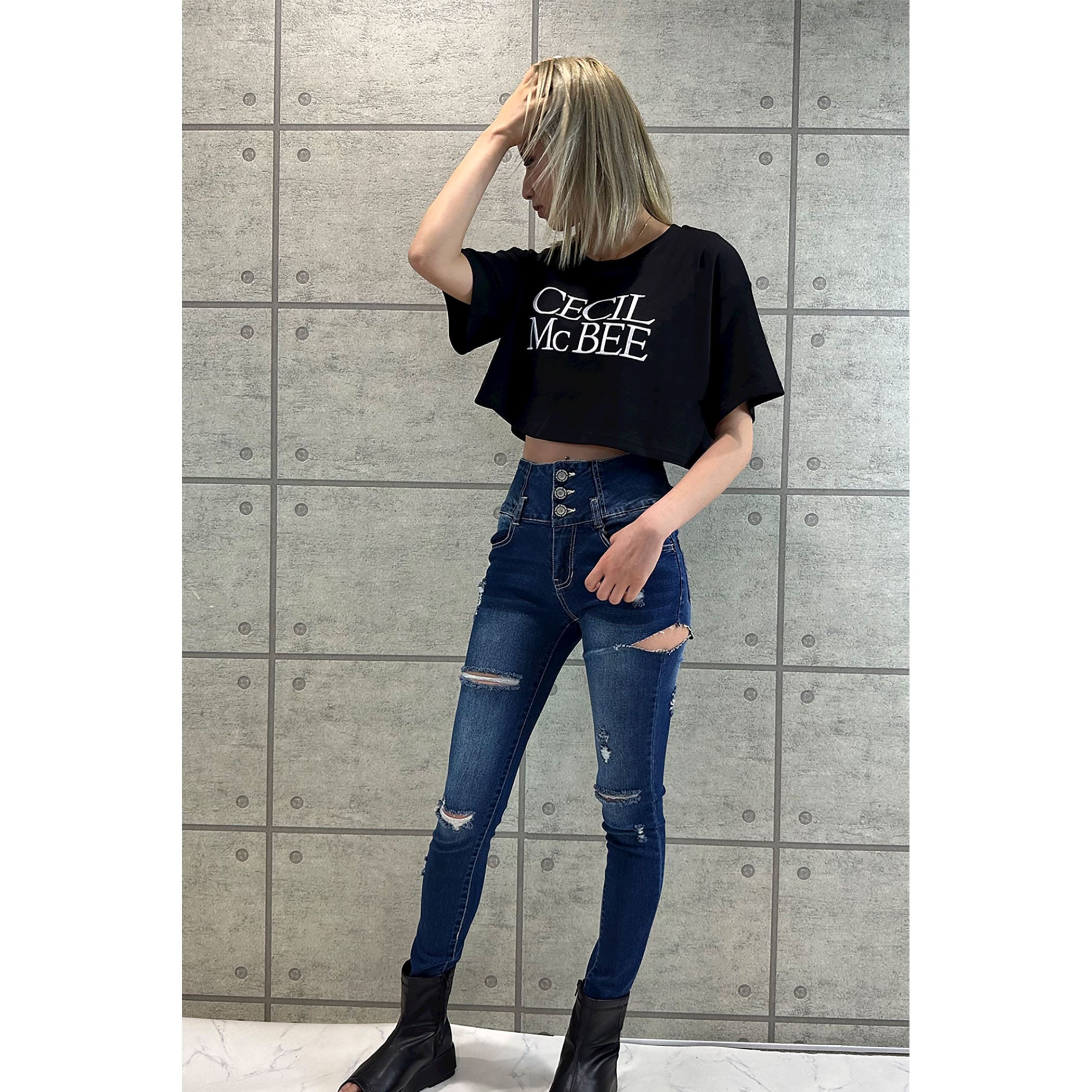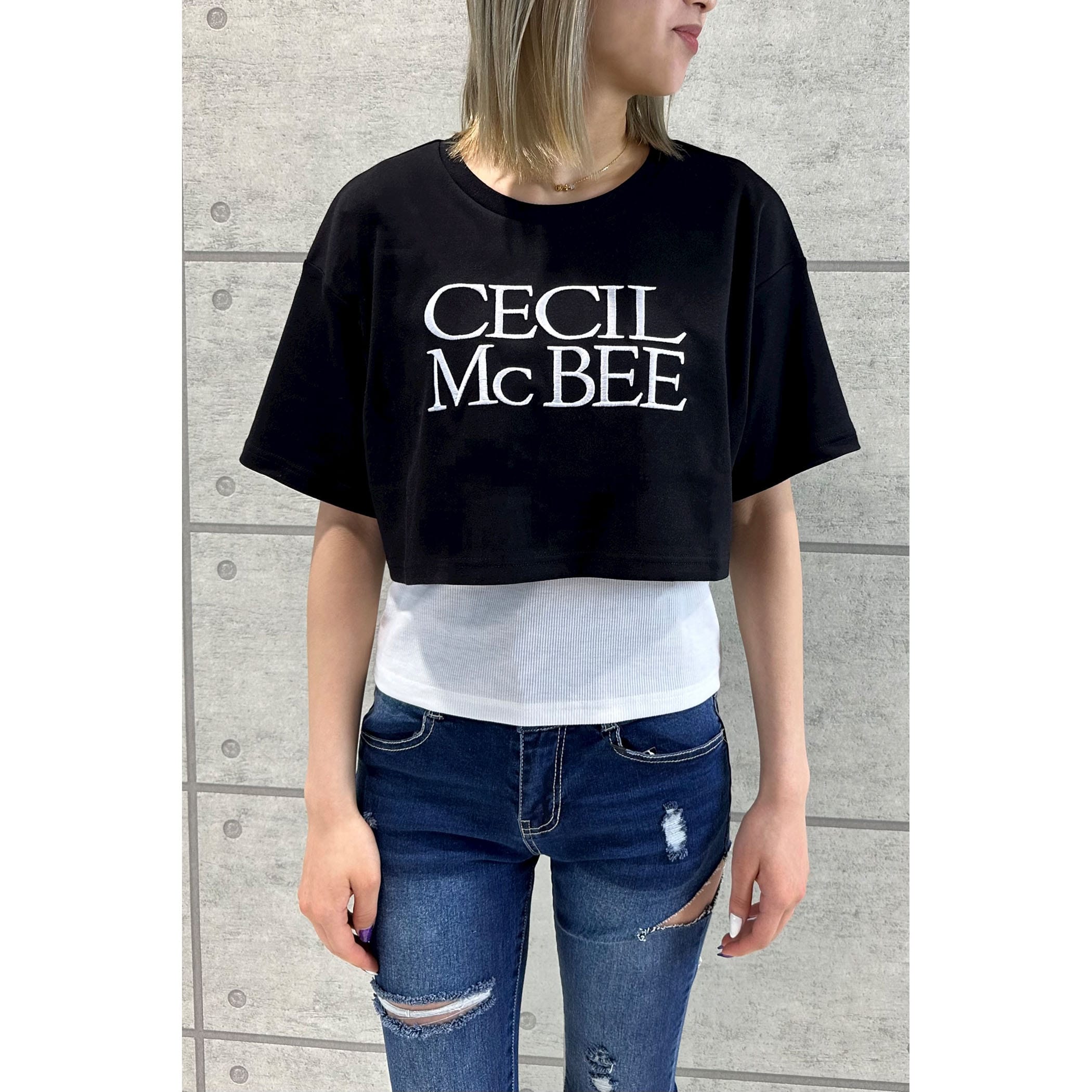 インパクトある大きめのセシルマクビーのロゴ刺繍の入った短丈Tシャツとタンクのセット商品です。トレンドのレイヤードスタイルが楽しめるセットアイテムです。Tシャツは短めですが、袖は5分袖なので二の腕をカバーしてくれる丈感で、ワイドパンツやデニム・タイトスカートとの相性抜群です。セシルファンにはたまらない一枚です。