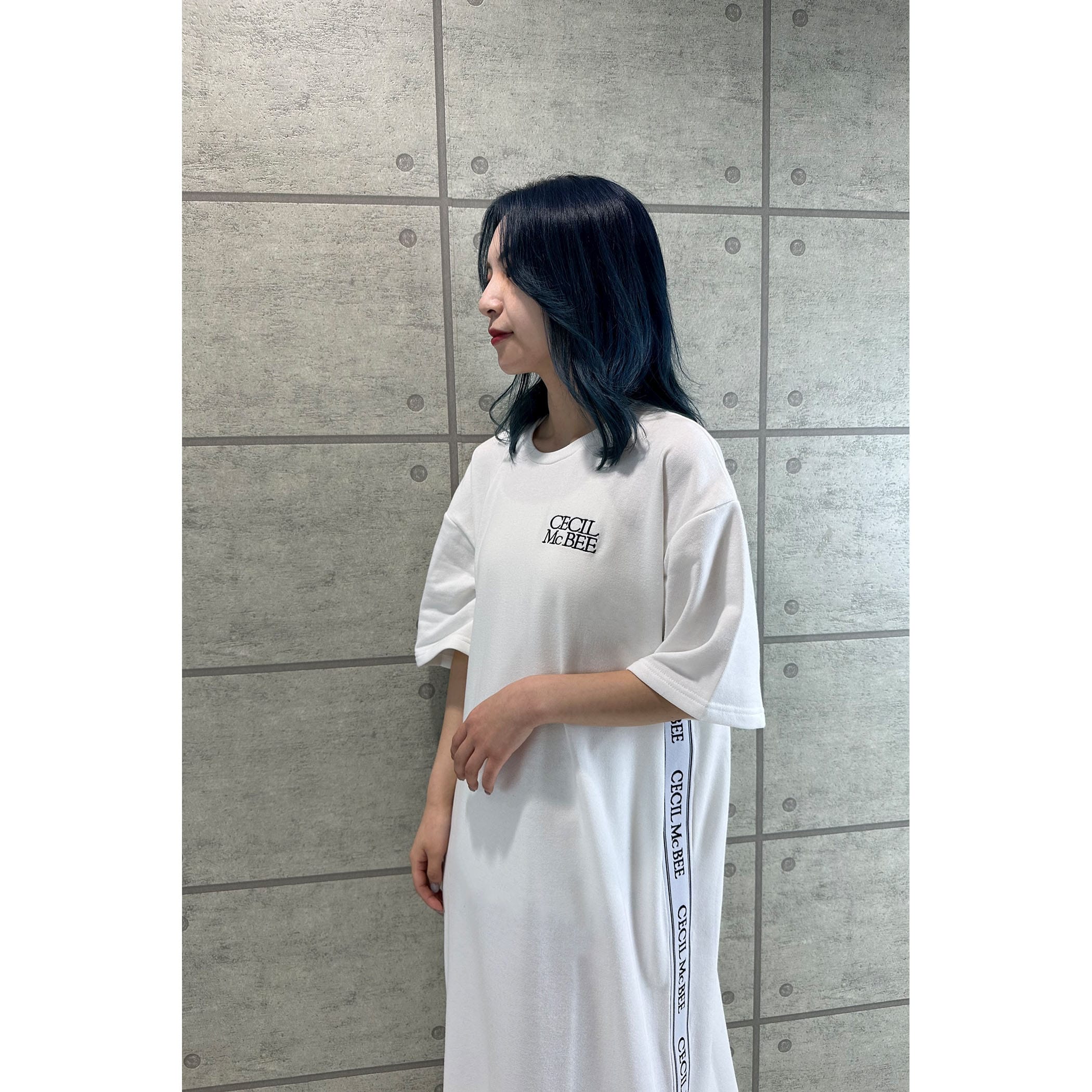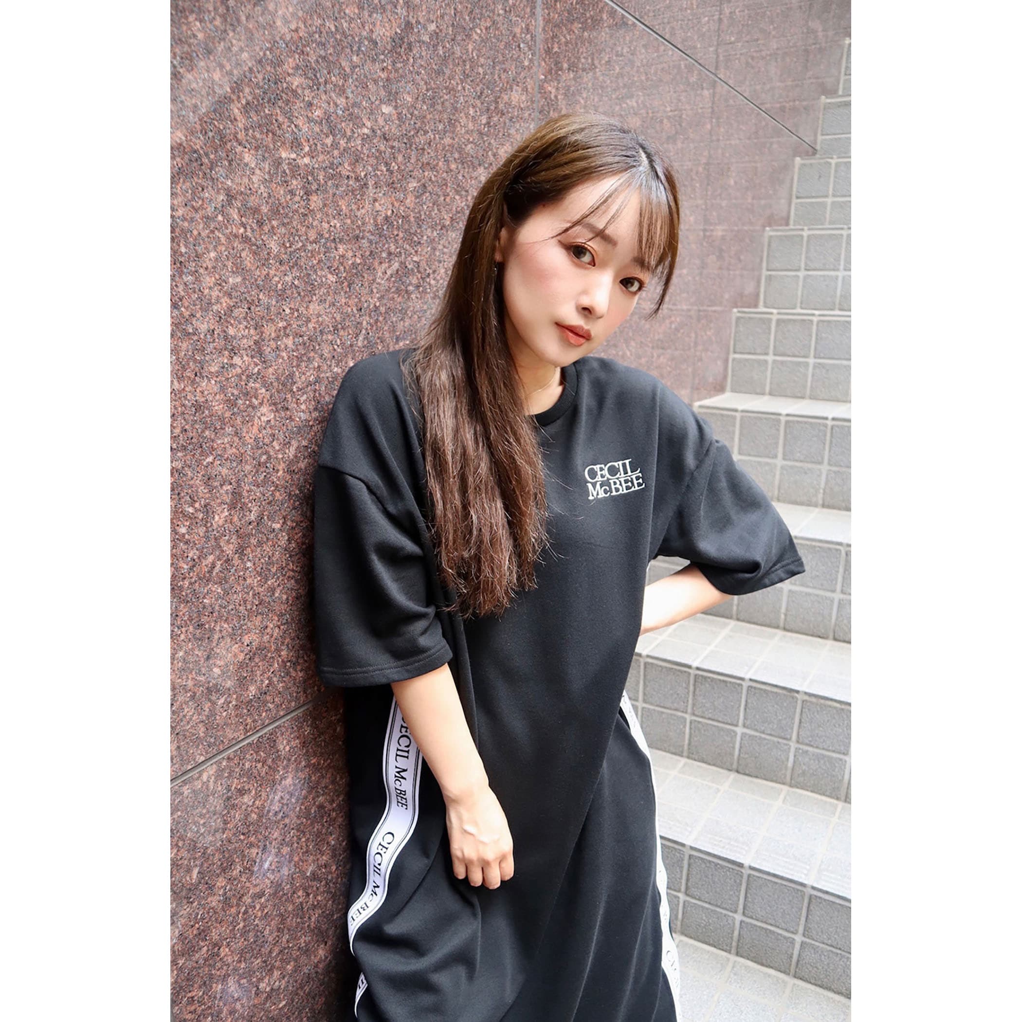 一枚でコーディネートが完成するTワンピース。ドロップショルダーでゆとりのあるシルエットなので、こなれた印象を持たせつつ体形カバーもしてくれる一枚。脇のセシルロゴの入ったライン使いがアクセントになり、スポーティな雰囲気もありワンマイルウェアとしてもオススメのアイテムです。