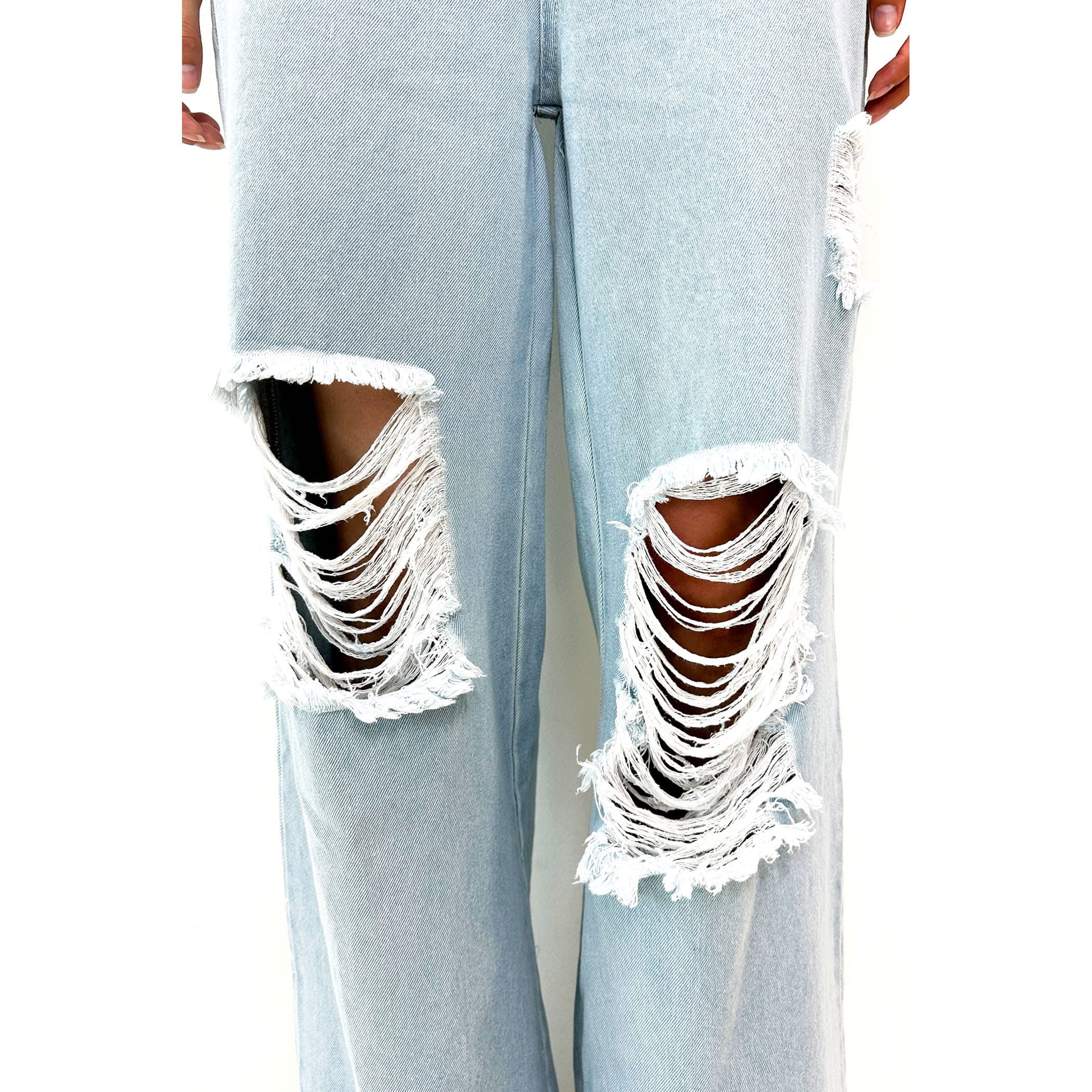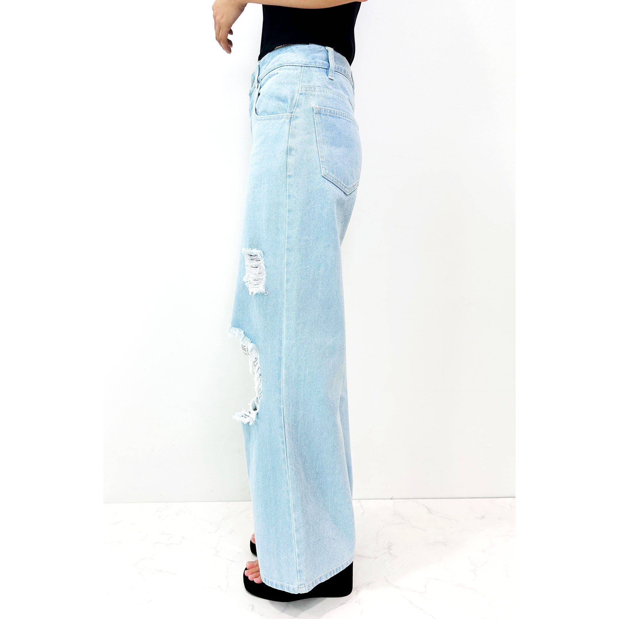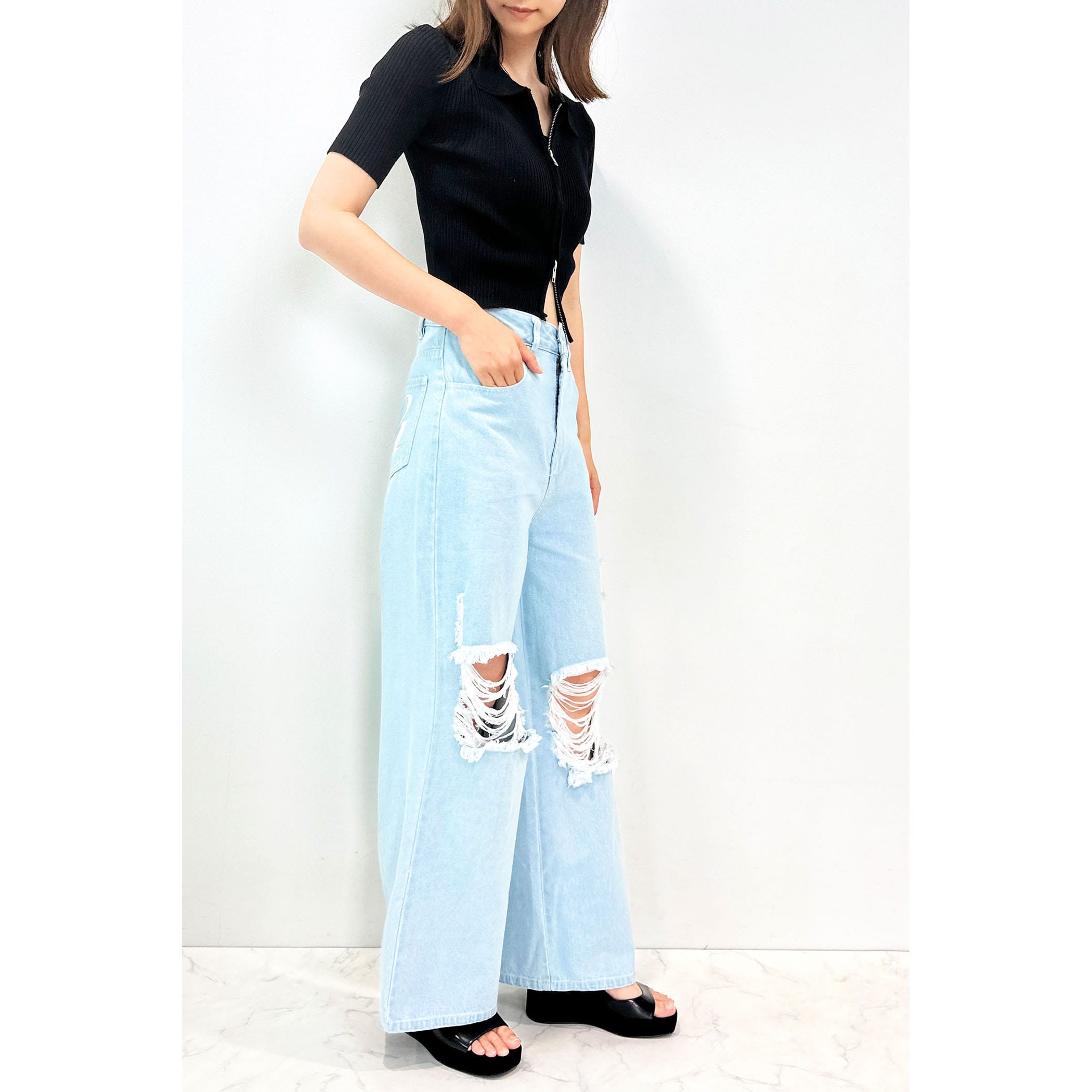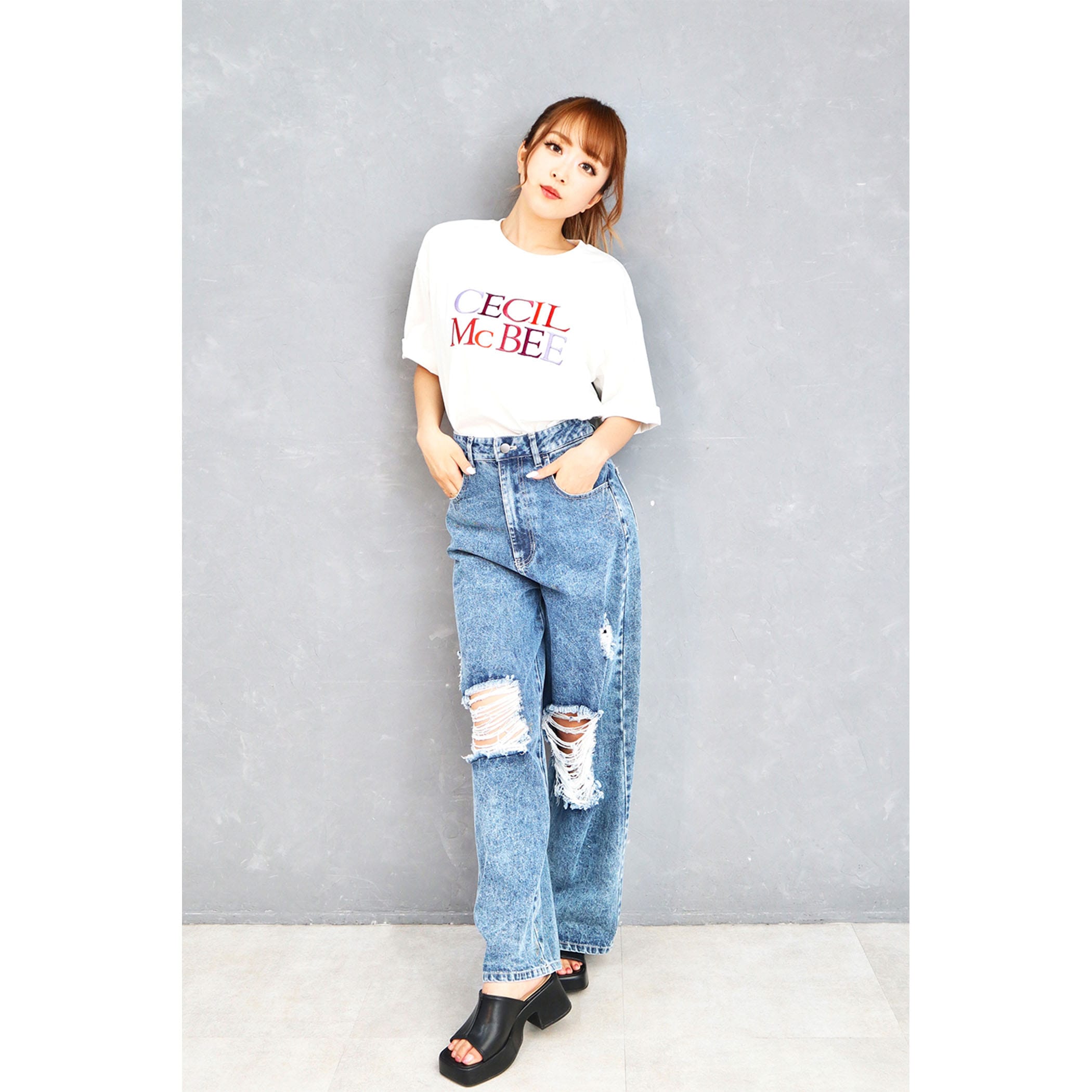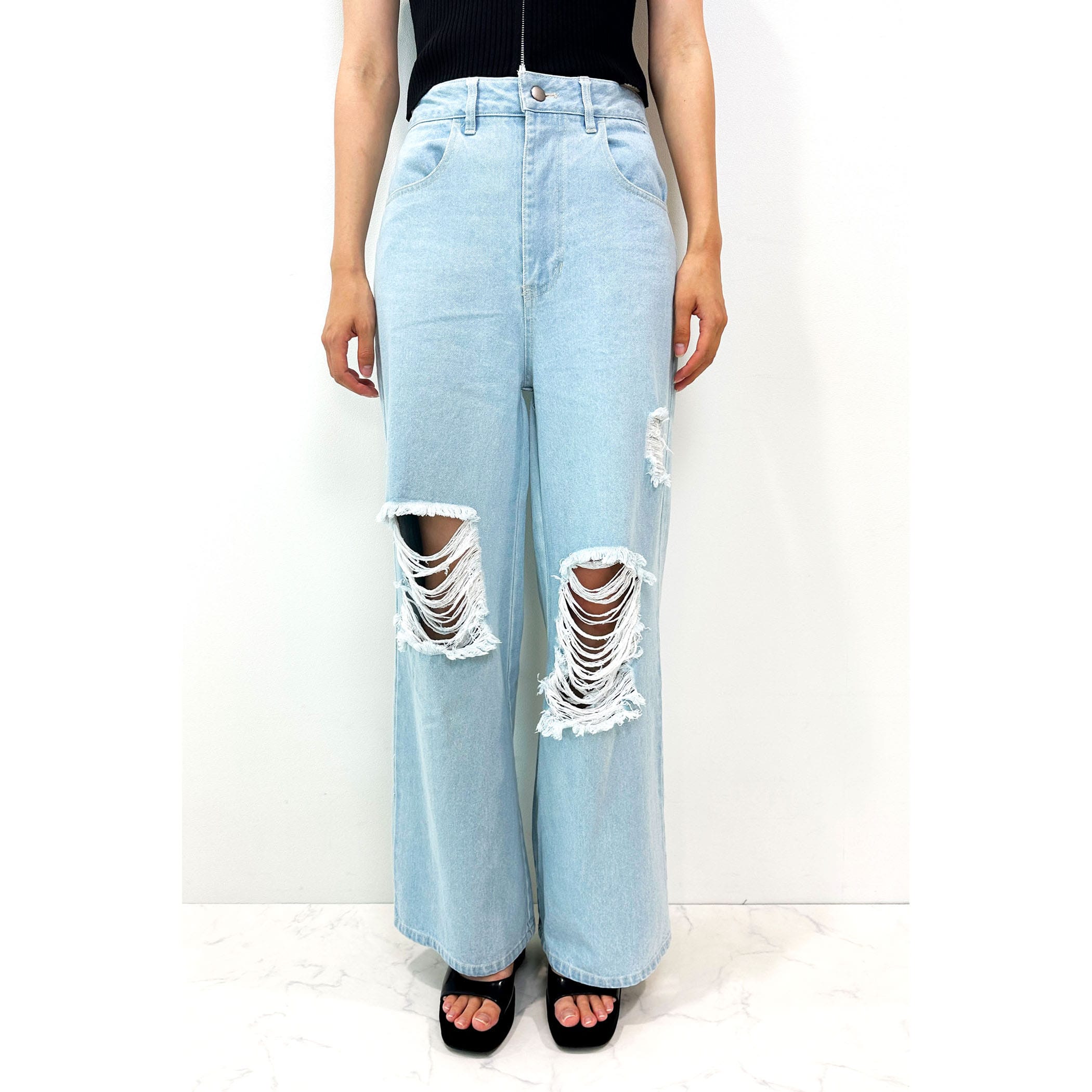 程よくボリュームのあるシルエットにダメージ加工が施されたジーンズは、コーディネートのメインとして活躍する1本です〇