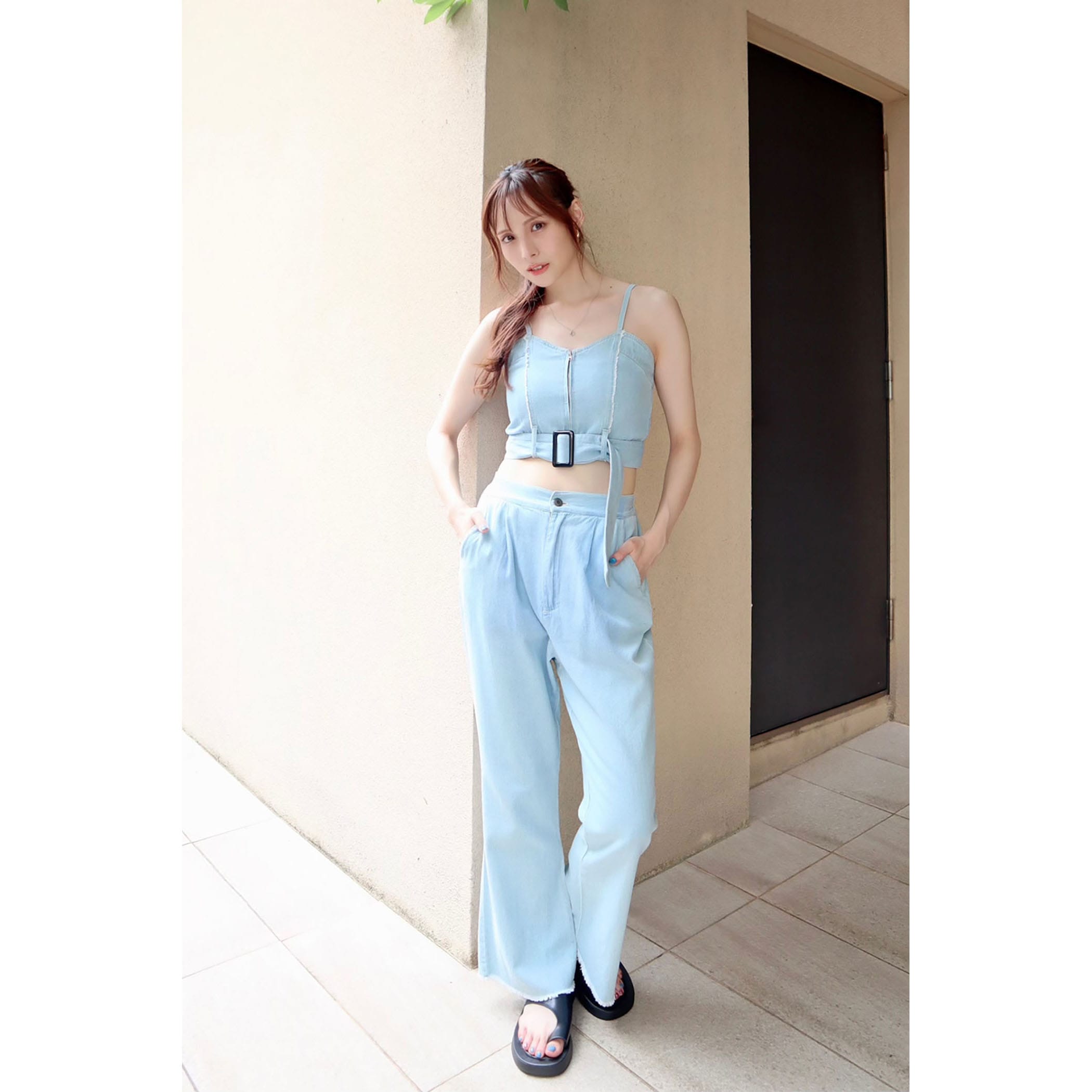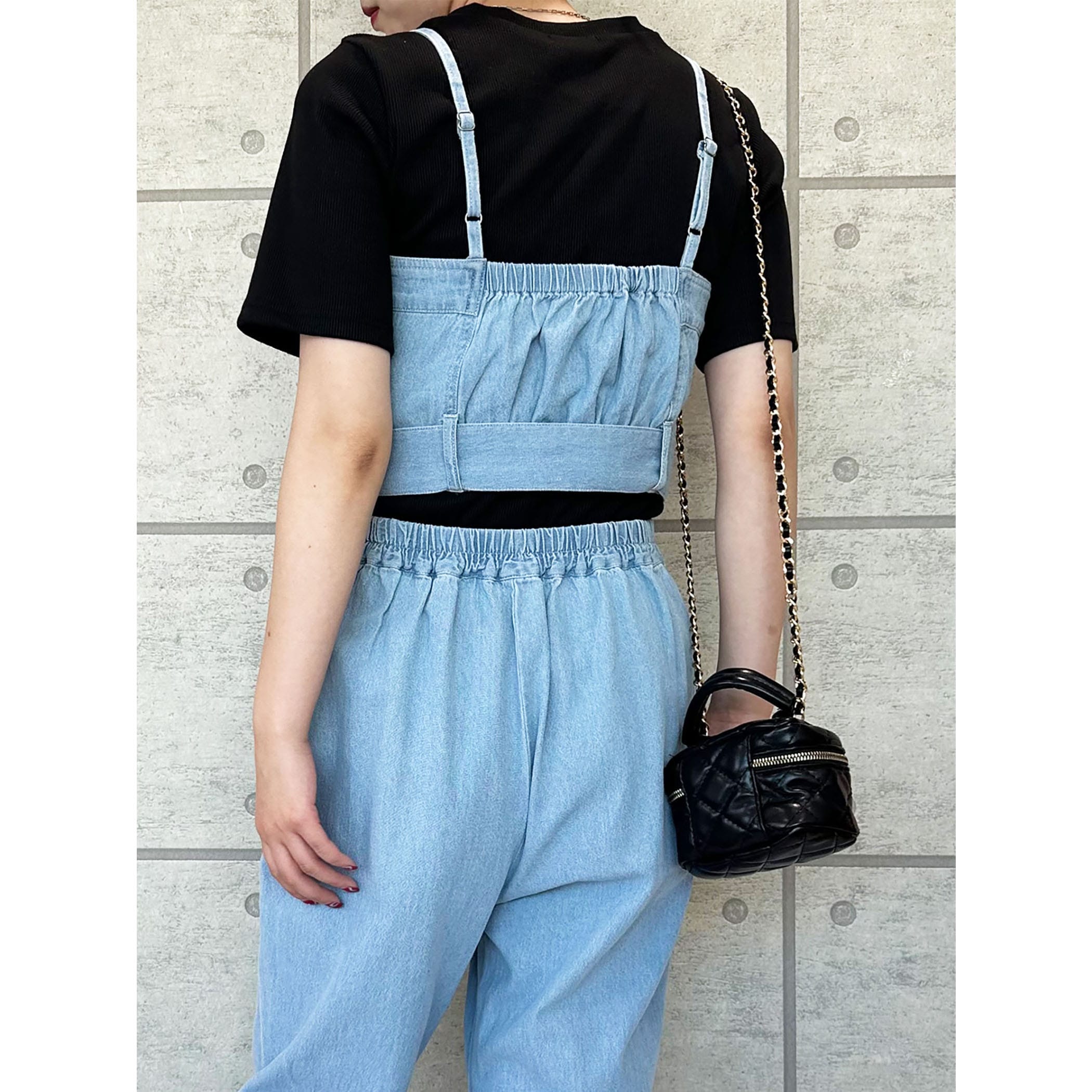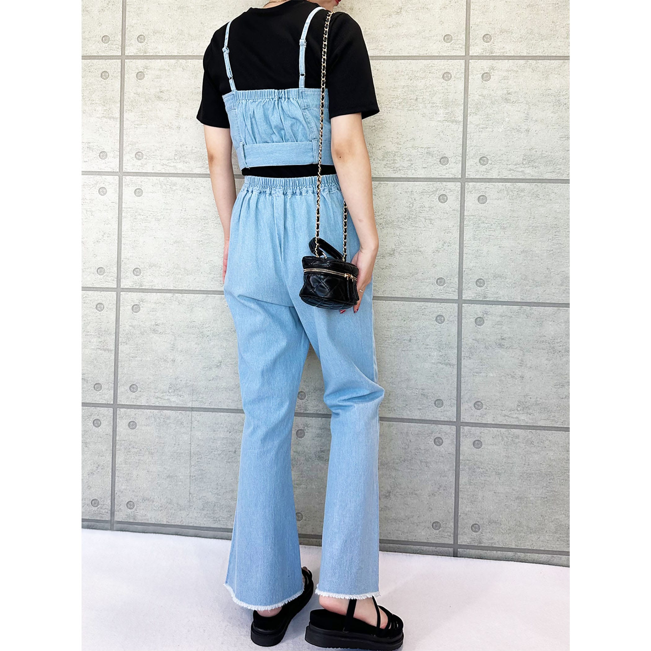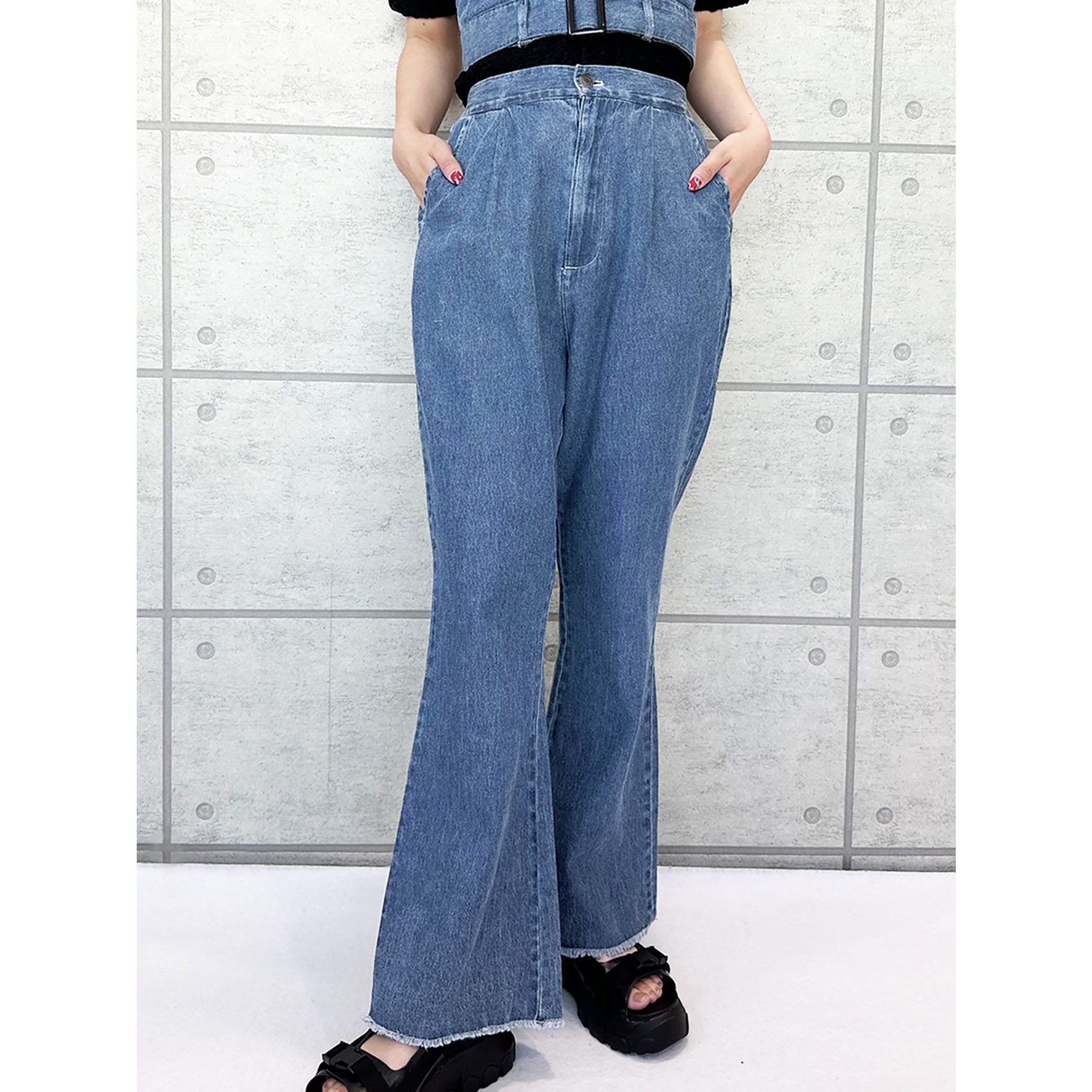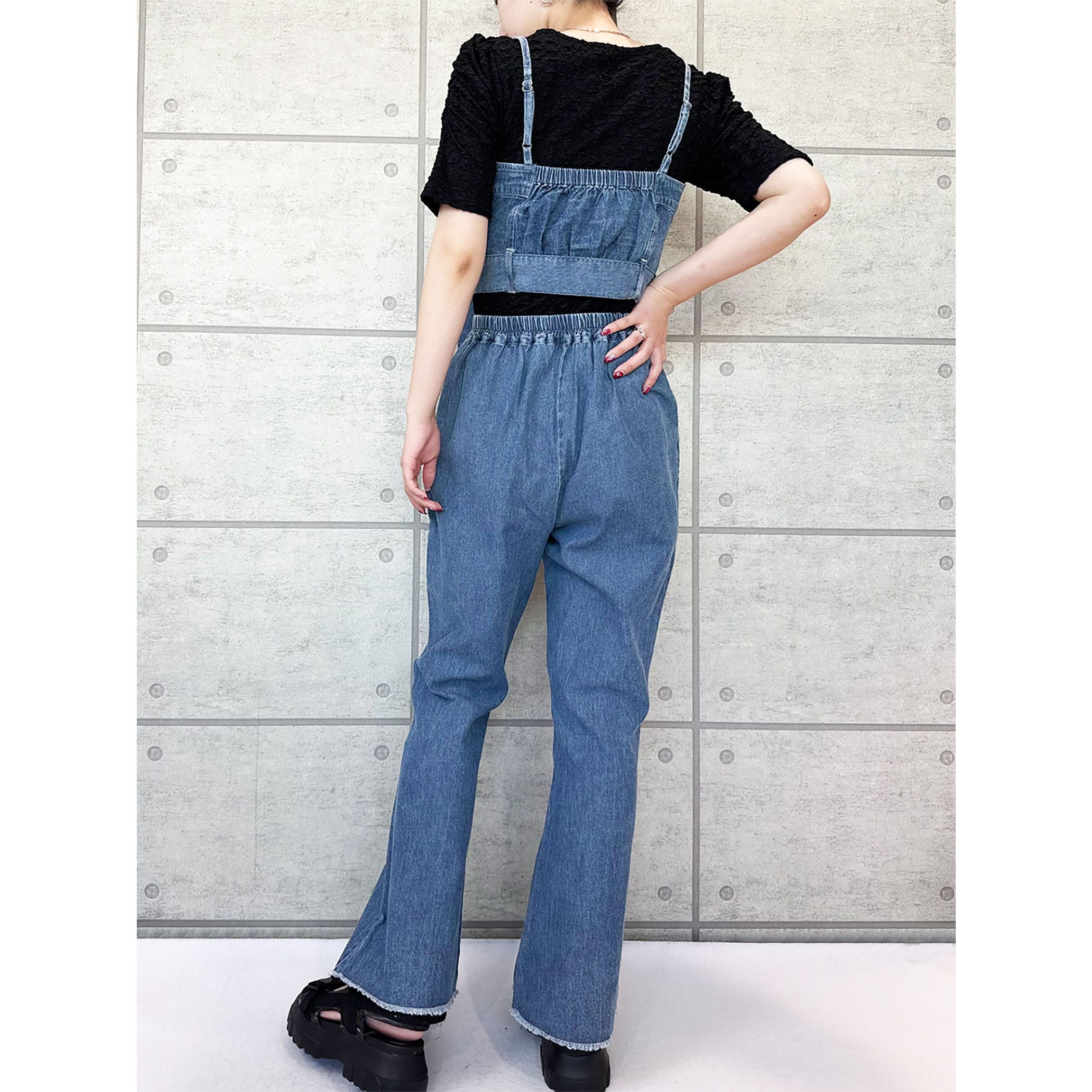 デニムビスチェxフレアパンツセットアップ