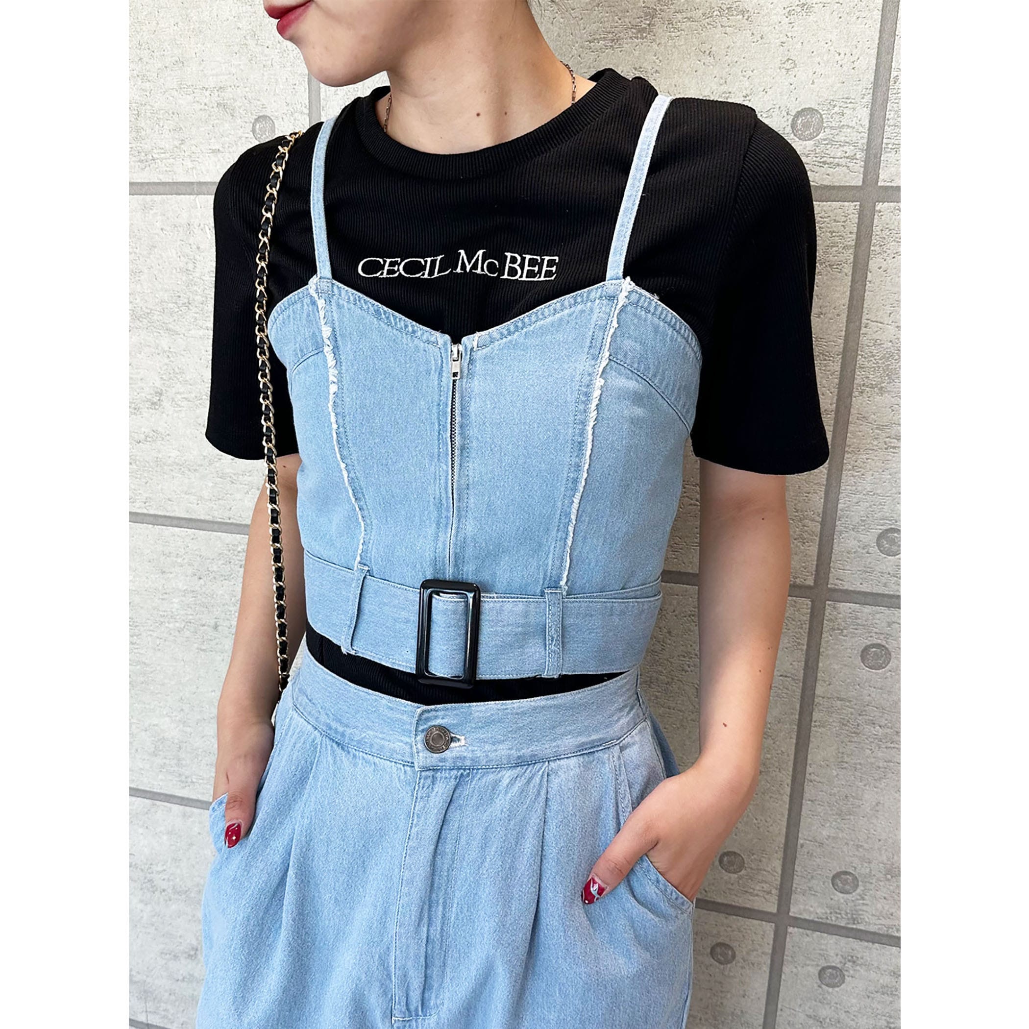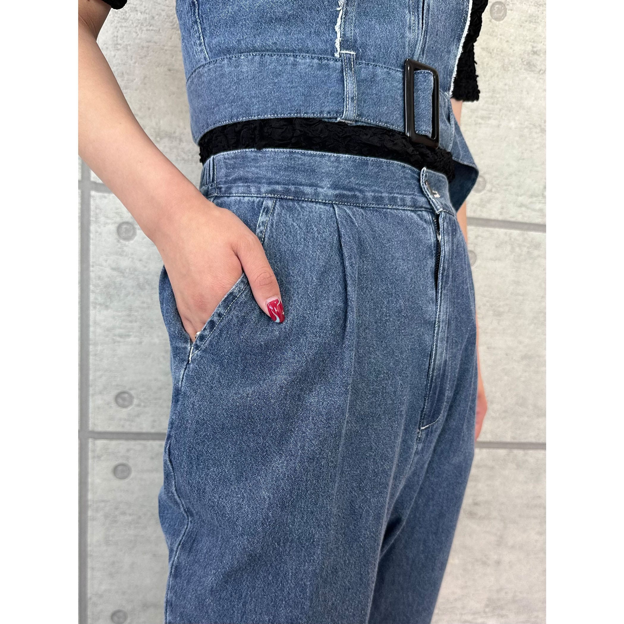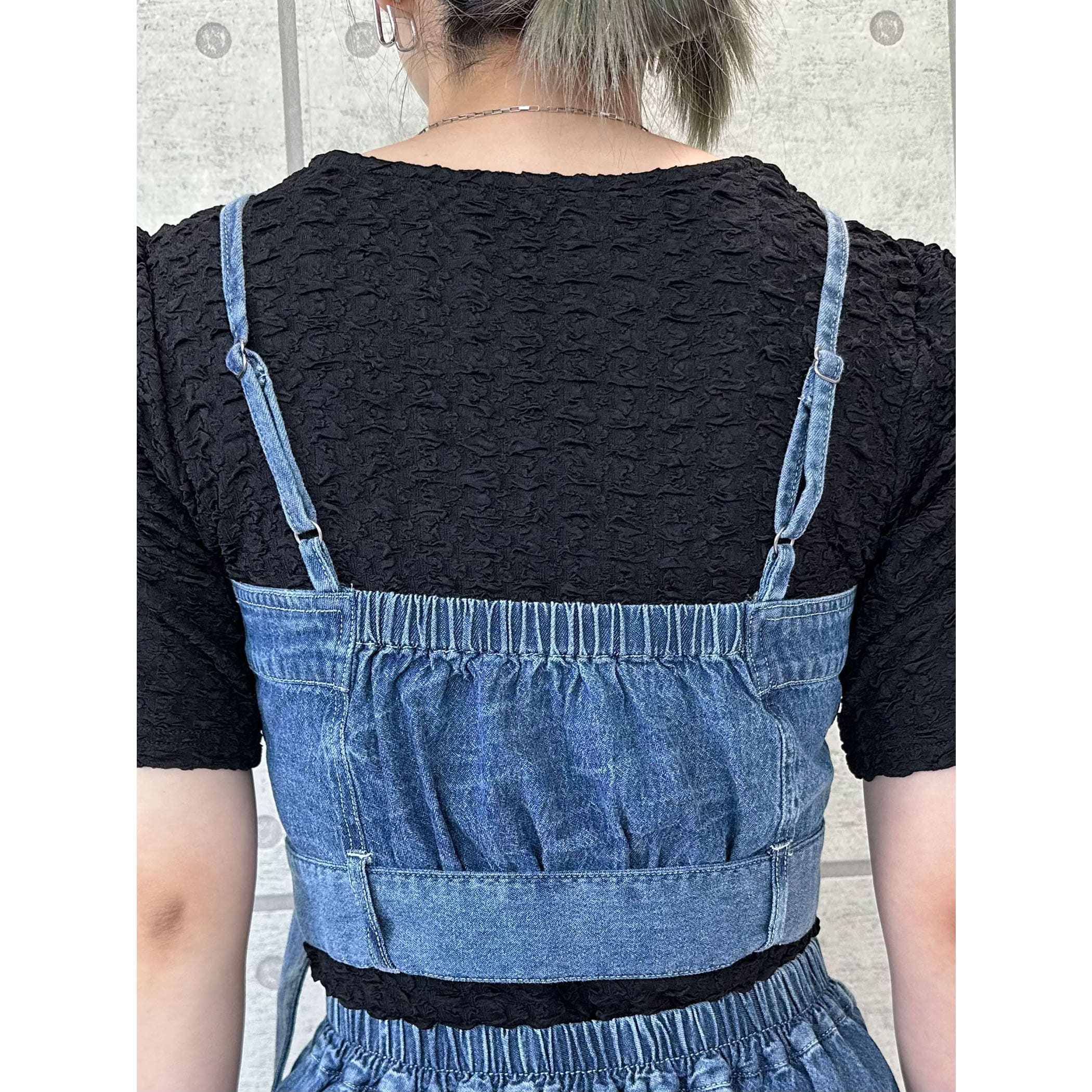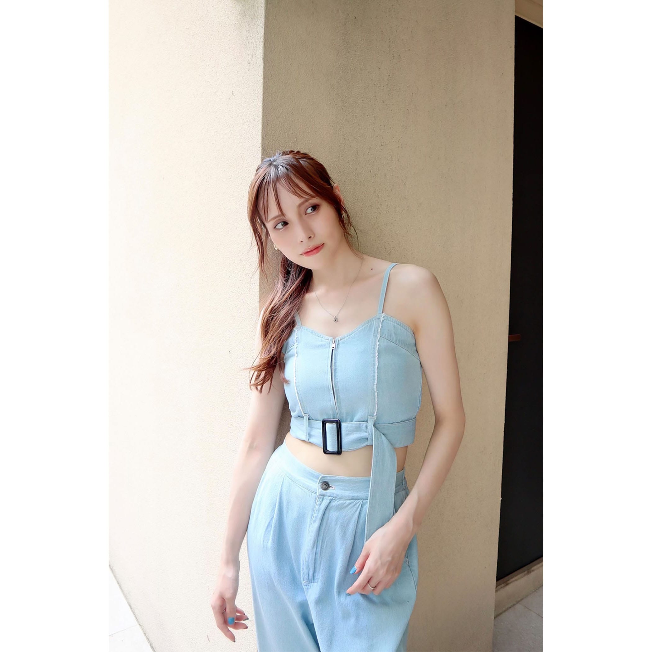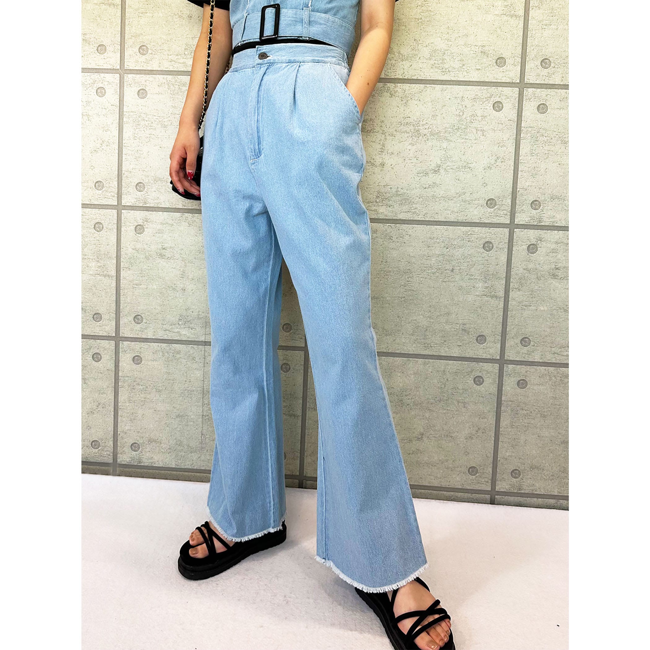 デニムビスチェxフレアパンツセットアップ