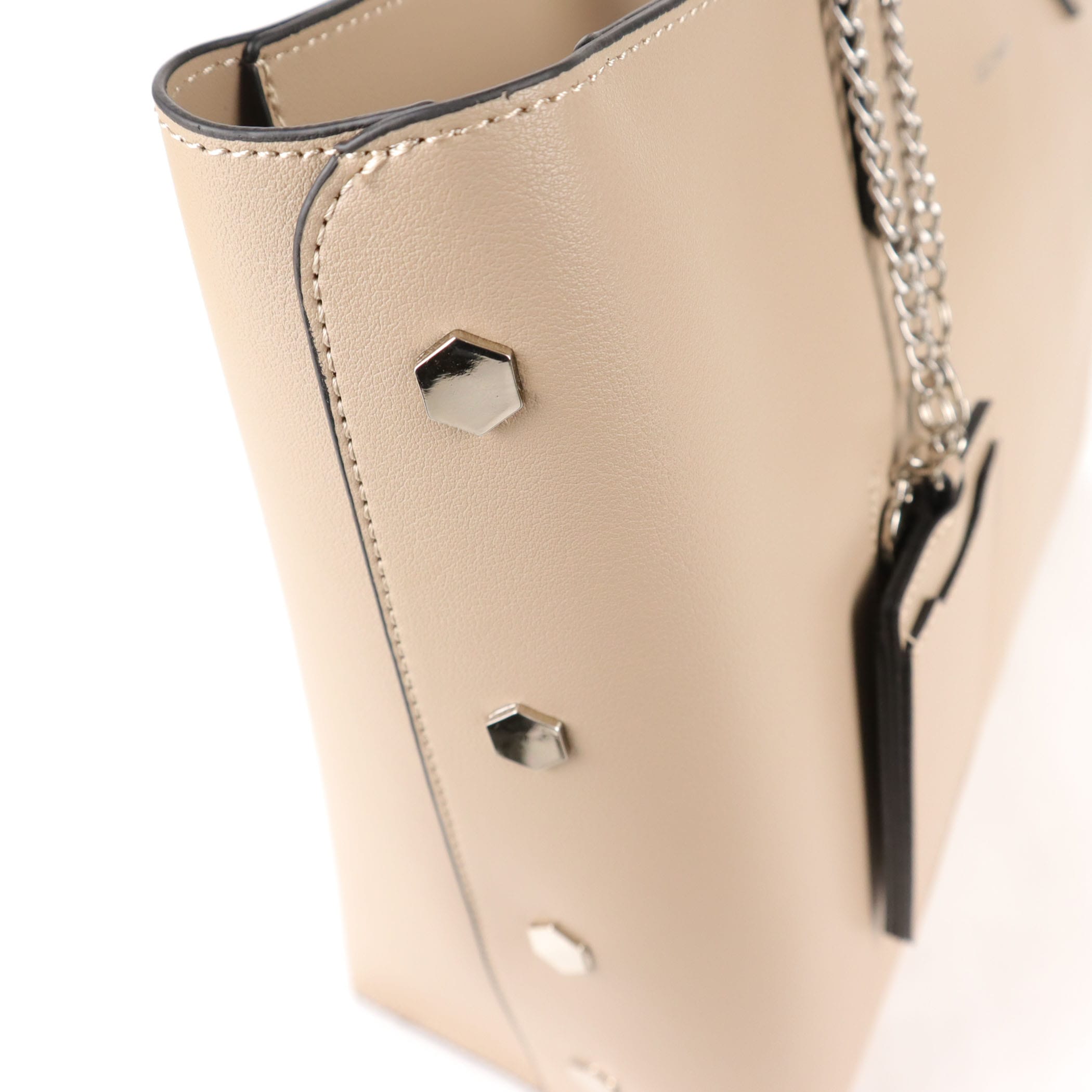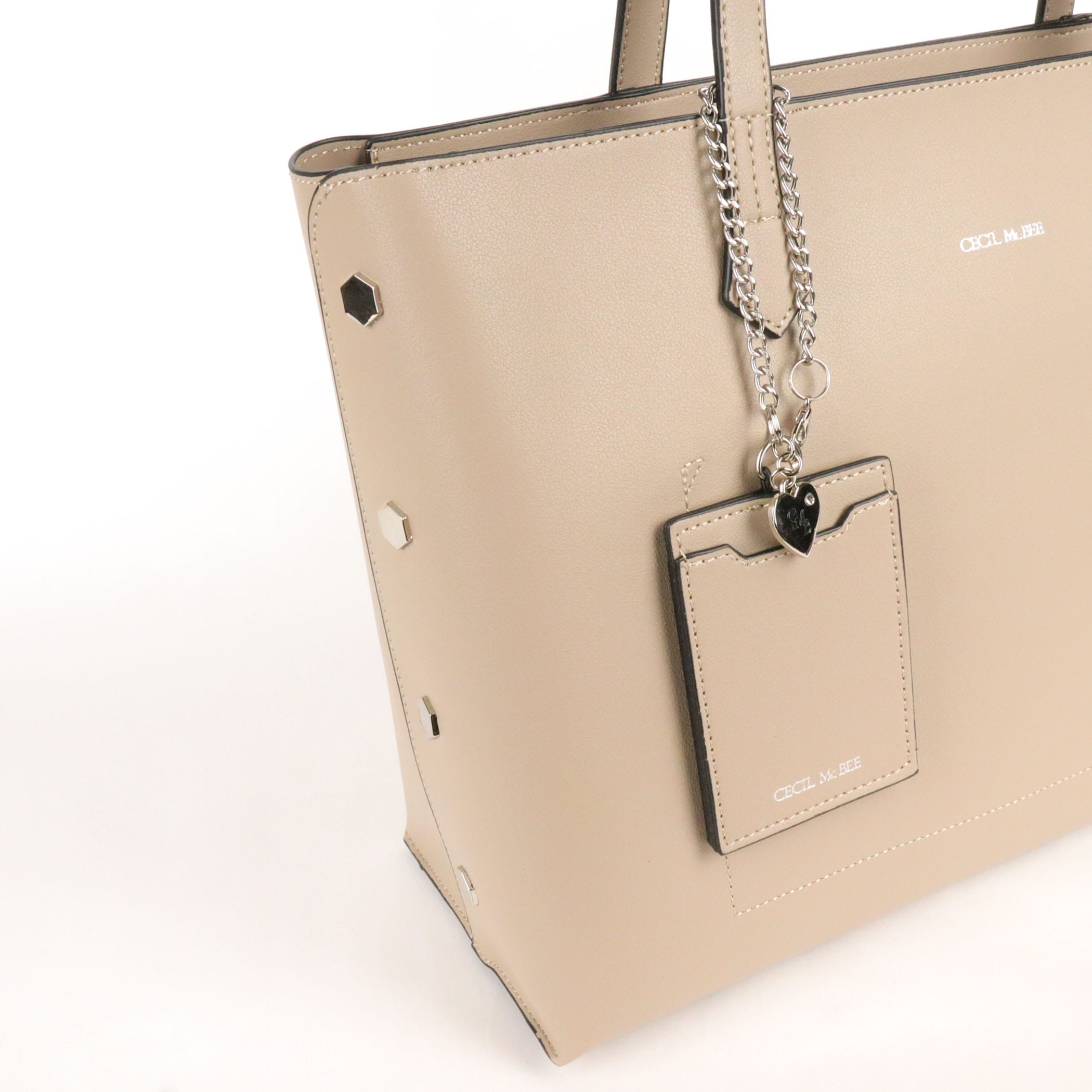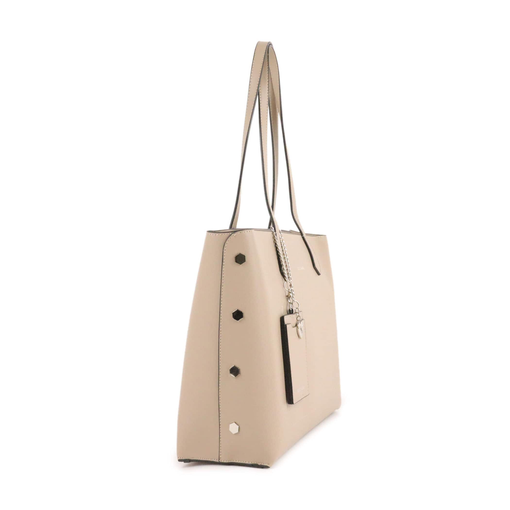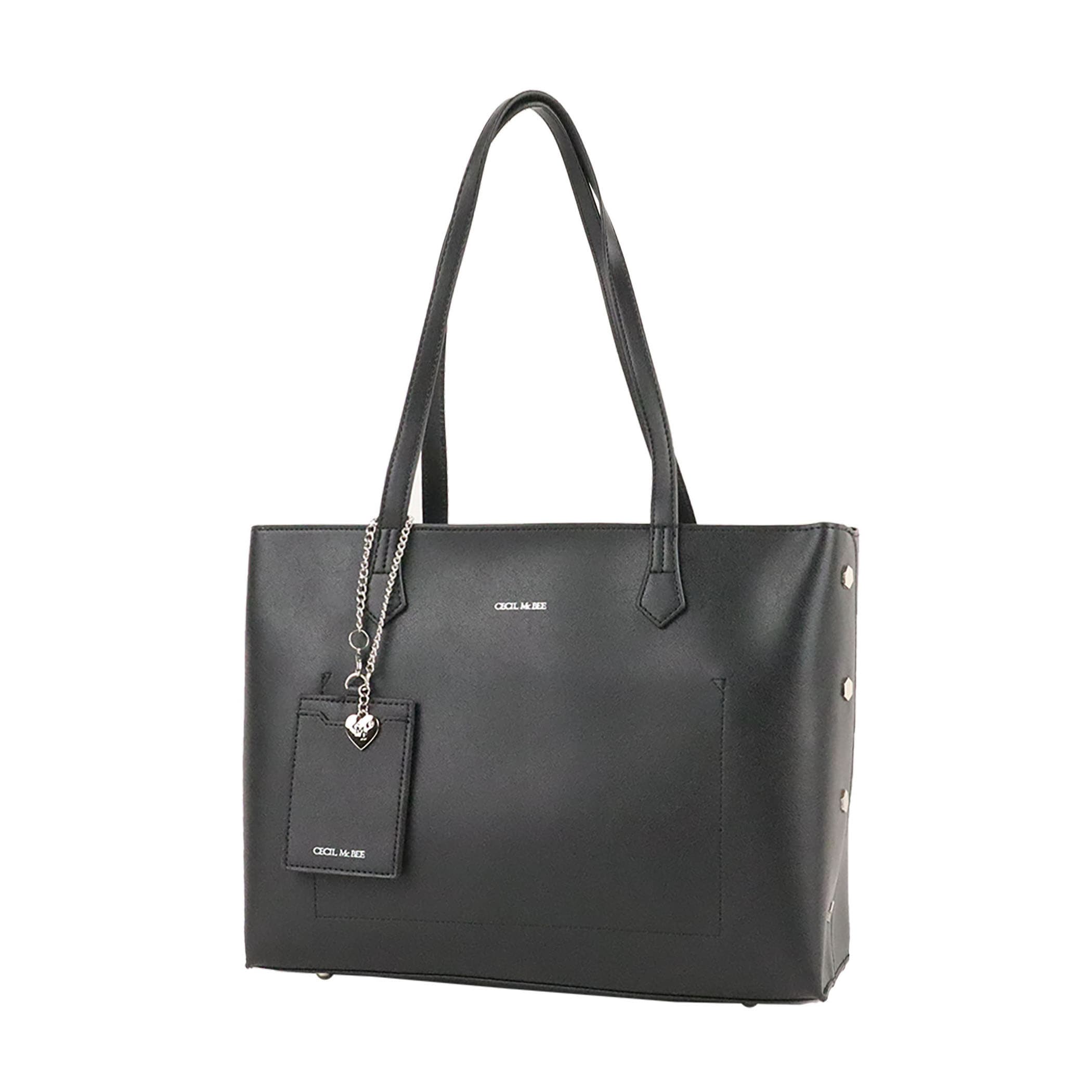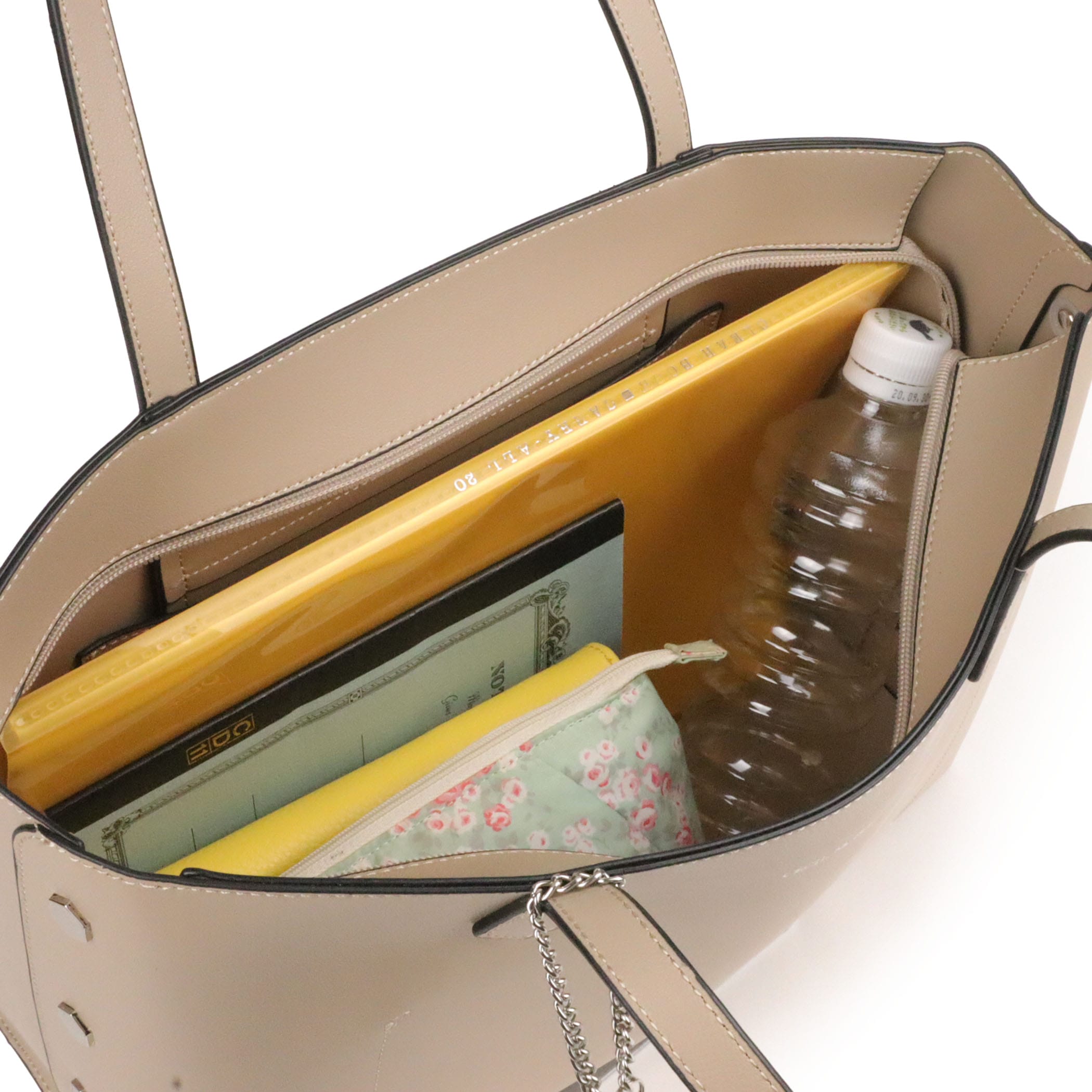べーシックな1枚仕立ての合皮バッグ。両サイドに施した六角型スタッズがクールなアクセントに。付属にパスケースを付けることにより普段使いから通勤・通学等、幅広く使用できるバッグです。
