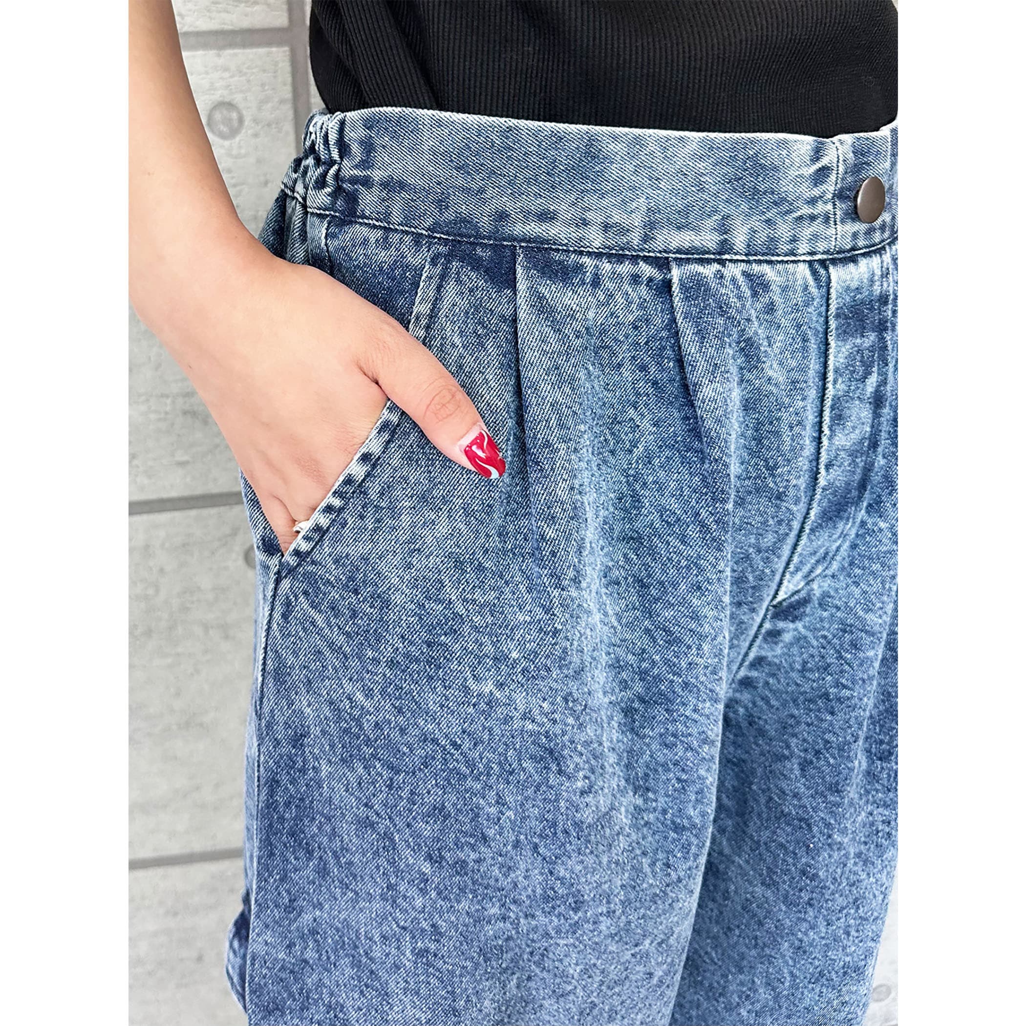 リラックスして穿けるゆったりなワイドサイズで、やや丸みのあるバルーンシルエットにした旬なデザイン。