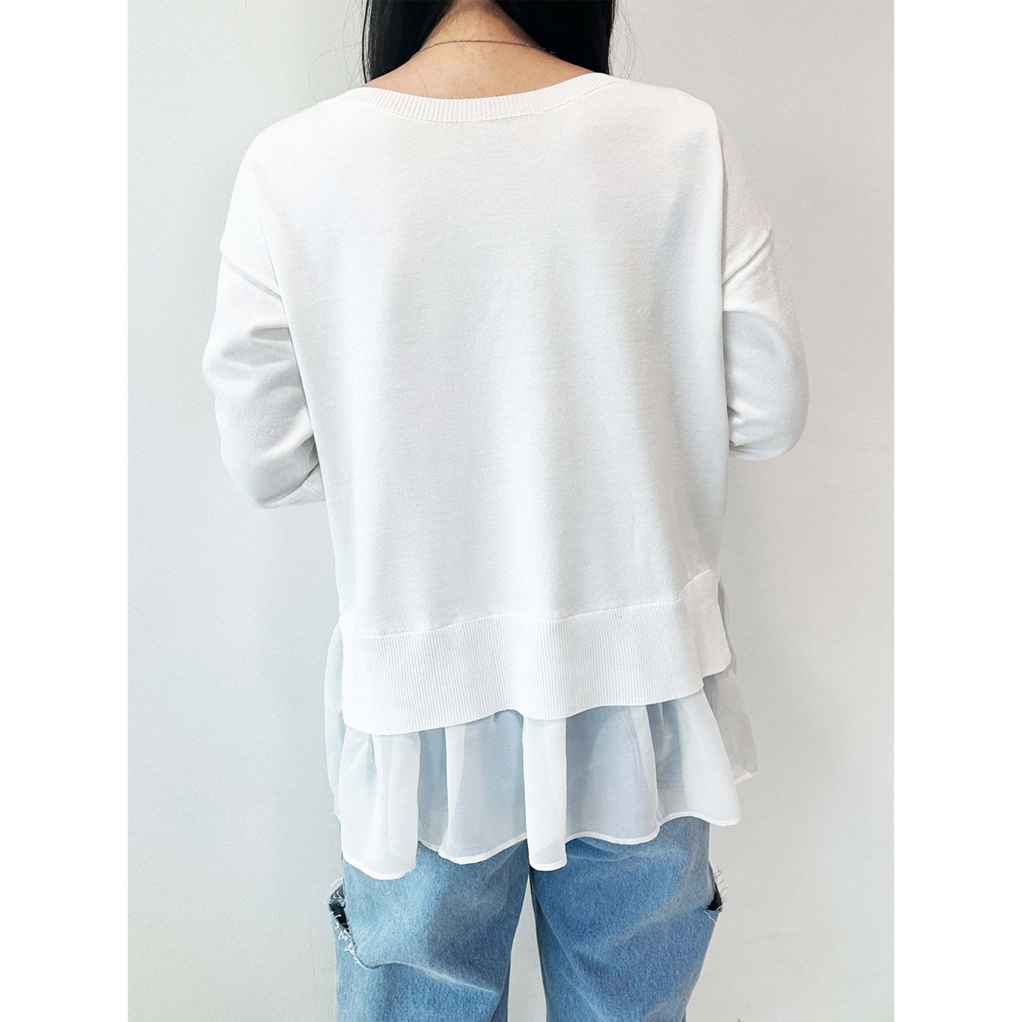 裾のフリルがふんわりとした印象でフェミニンな雰囲気を演出してくれるプルオーバー。タイトスカートでフェミニンに、デニム合わせでカジュアルダウンしたスタイリングもおすすめです◎シンプルなデザインで着回し抜群な一枚です。