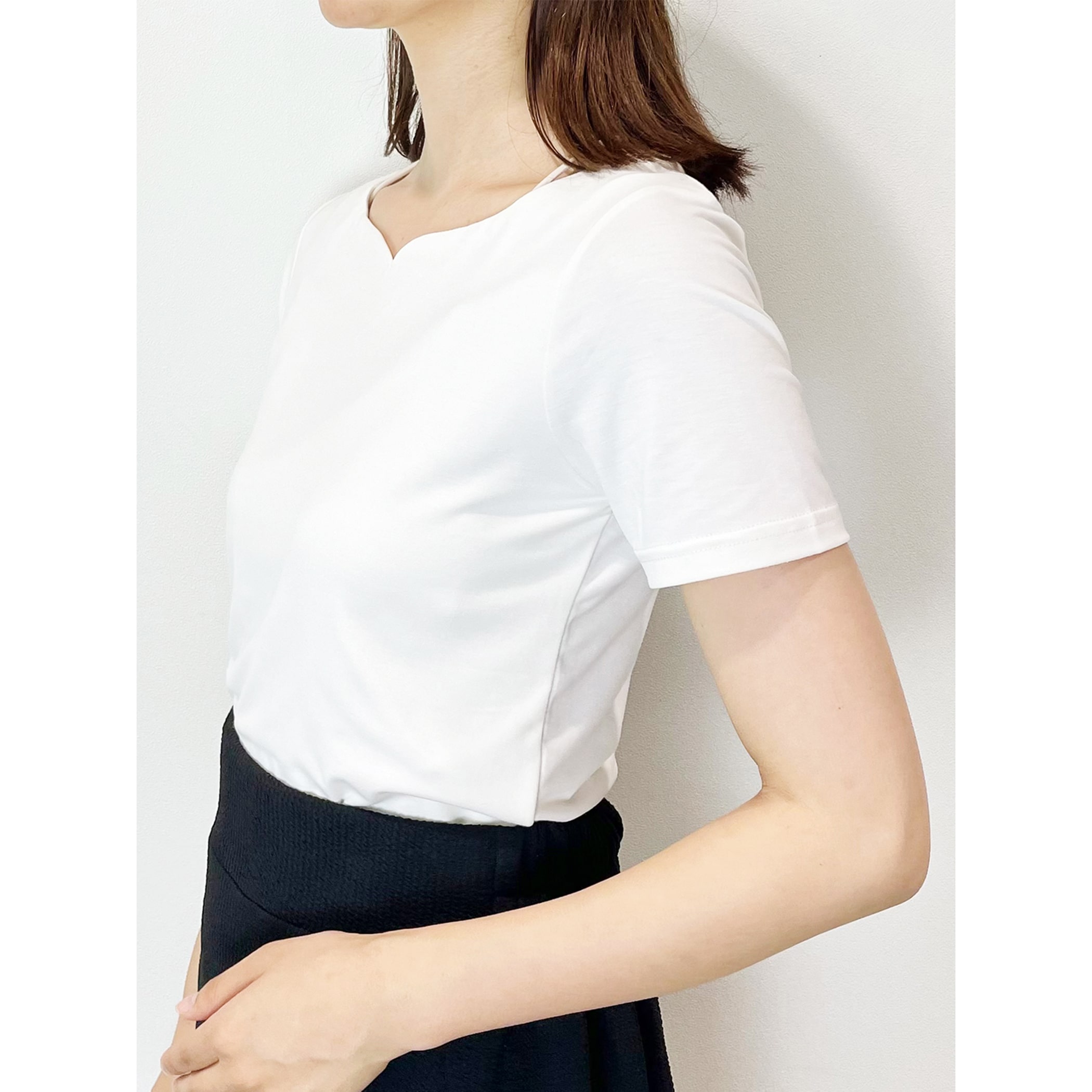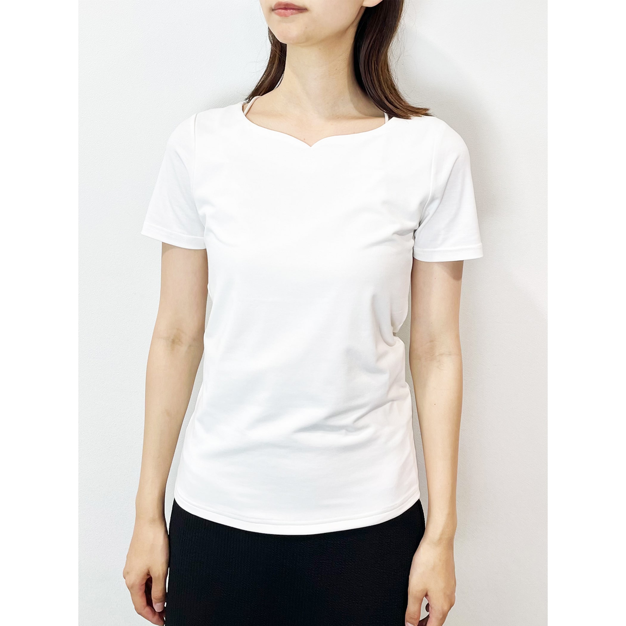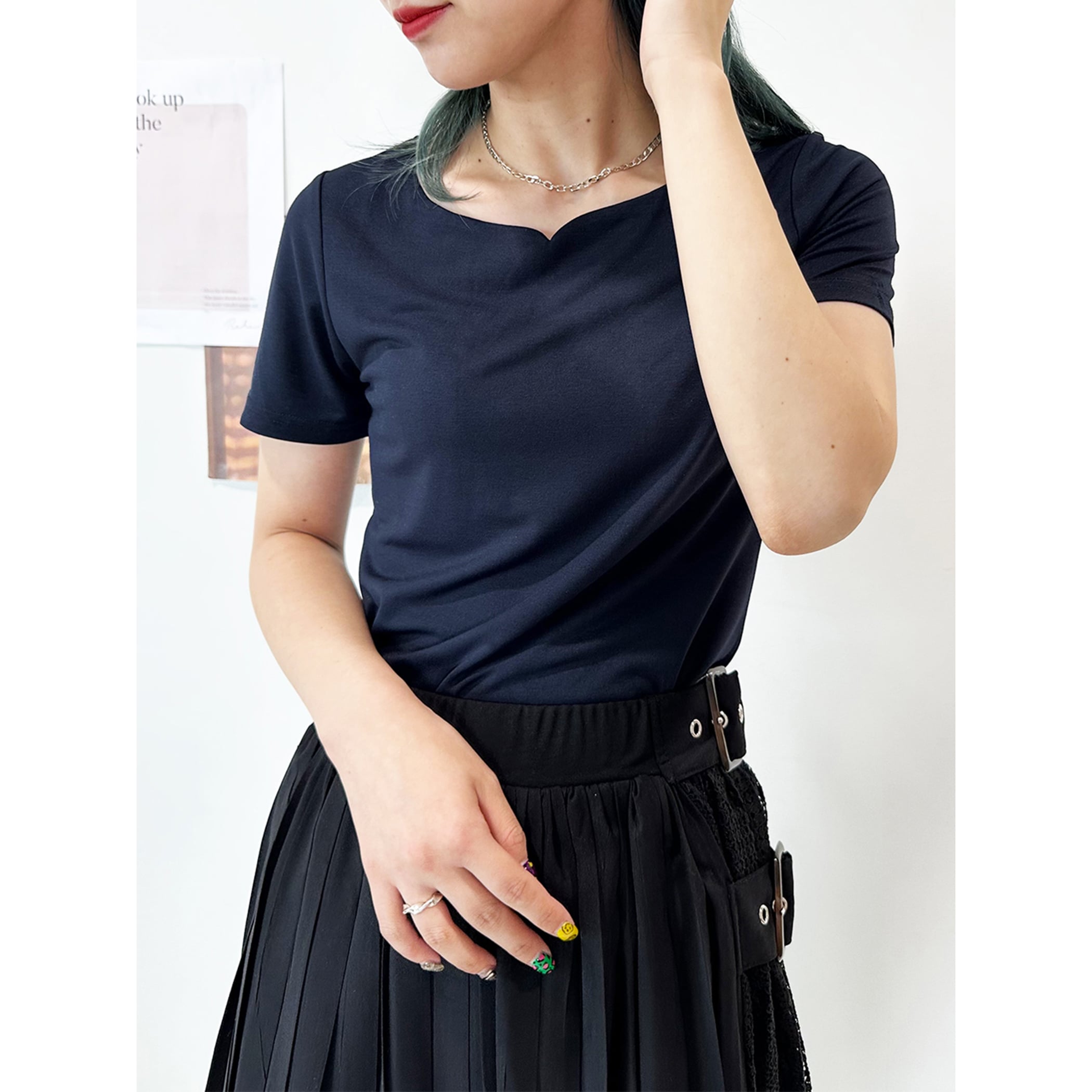 ハートネックでほどよい肌見せができ、デコルテラインの綺麗見えも叶います。