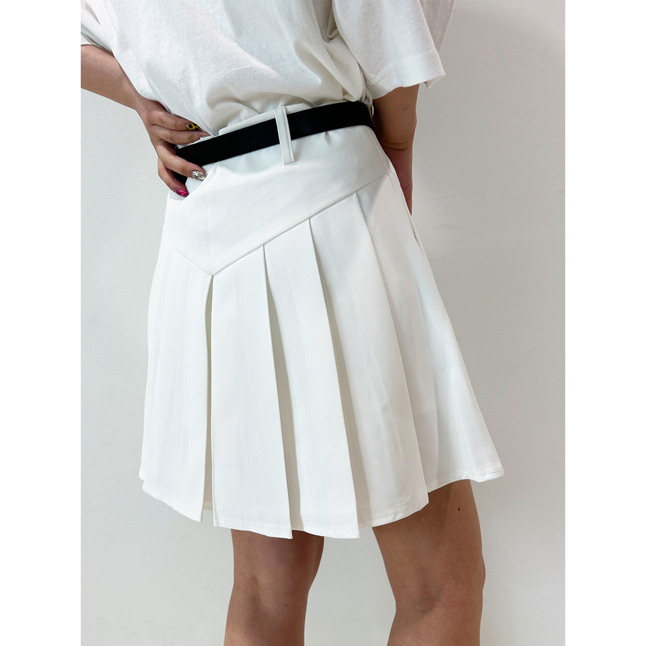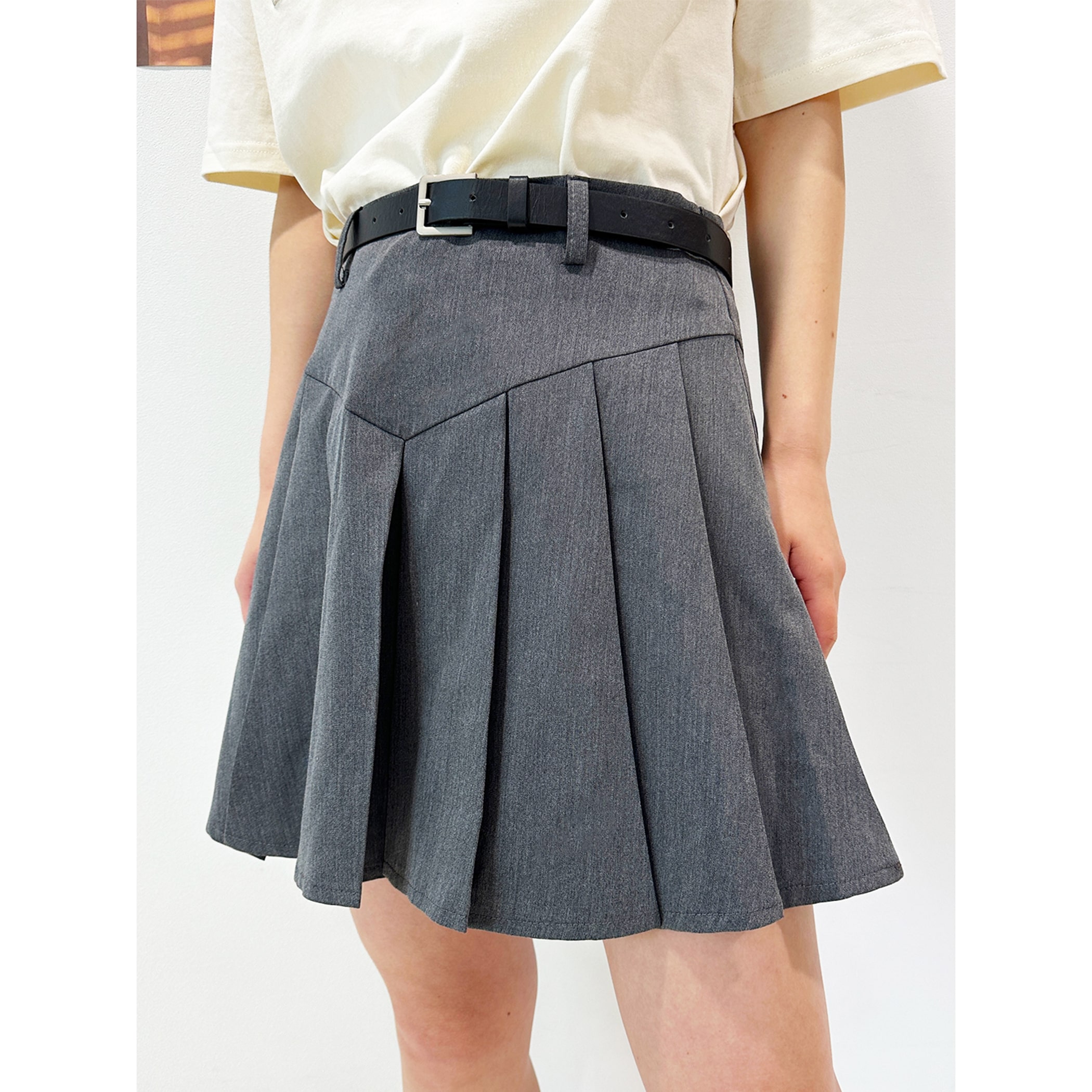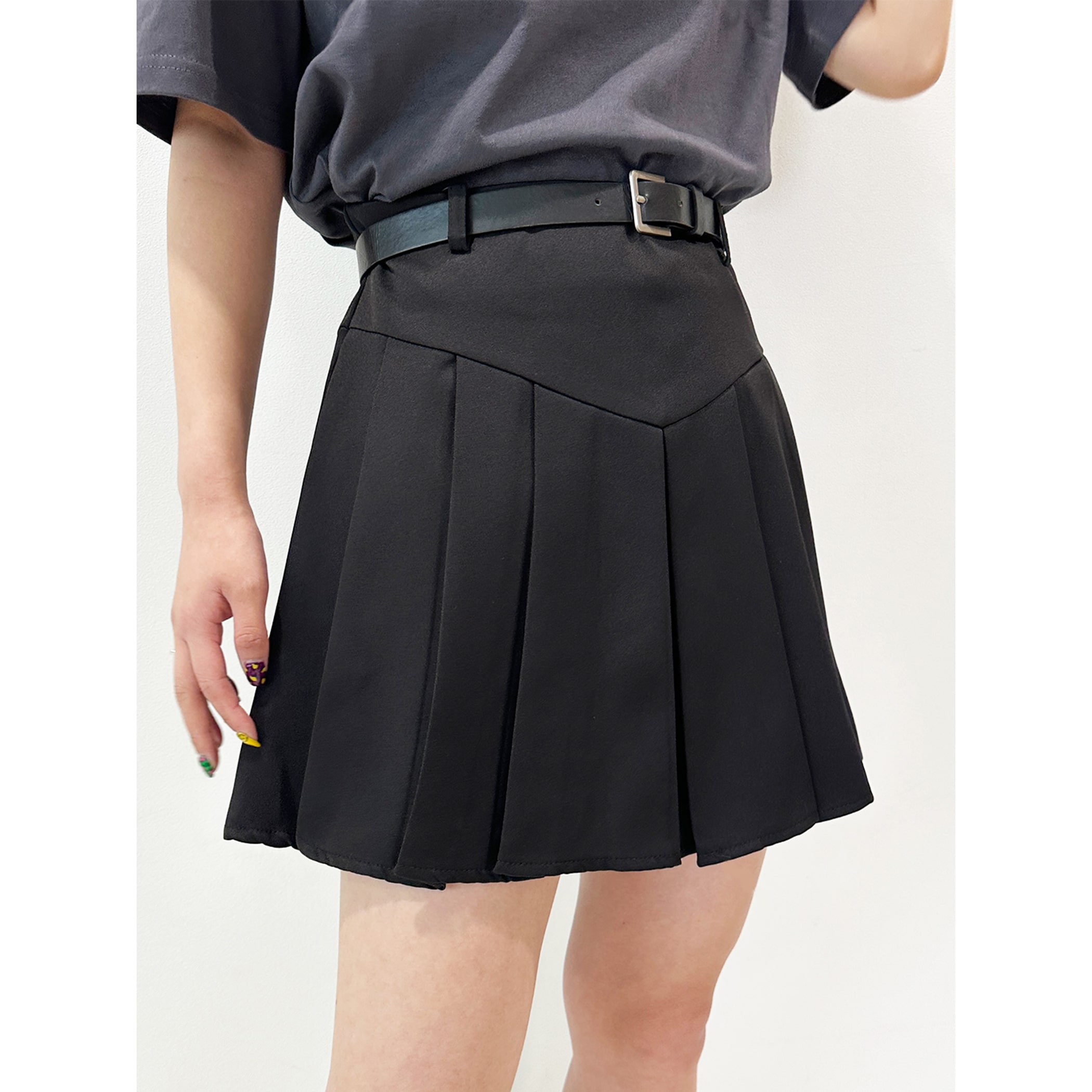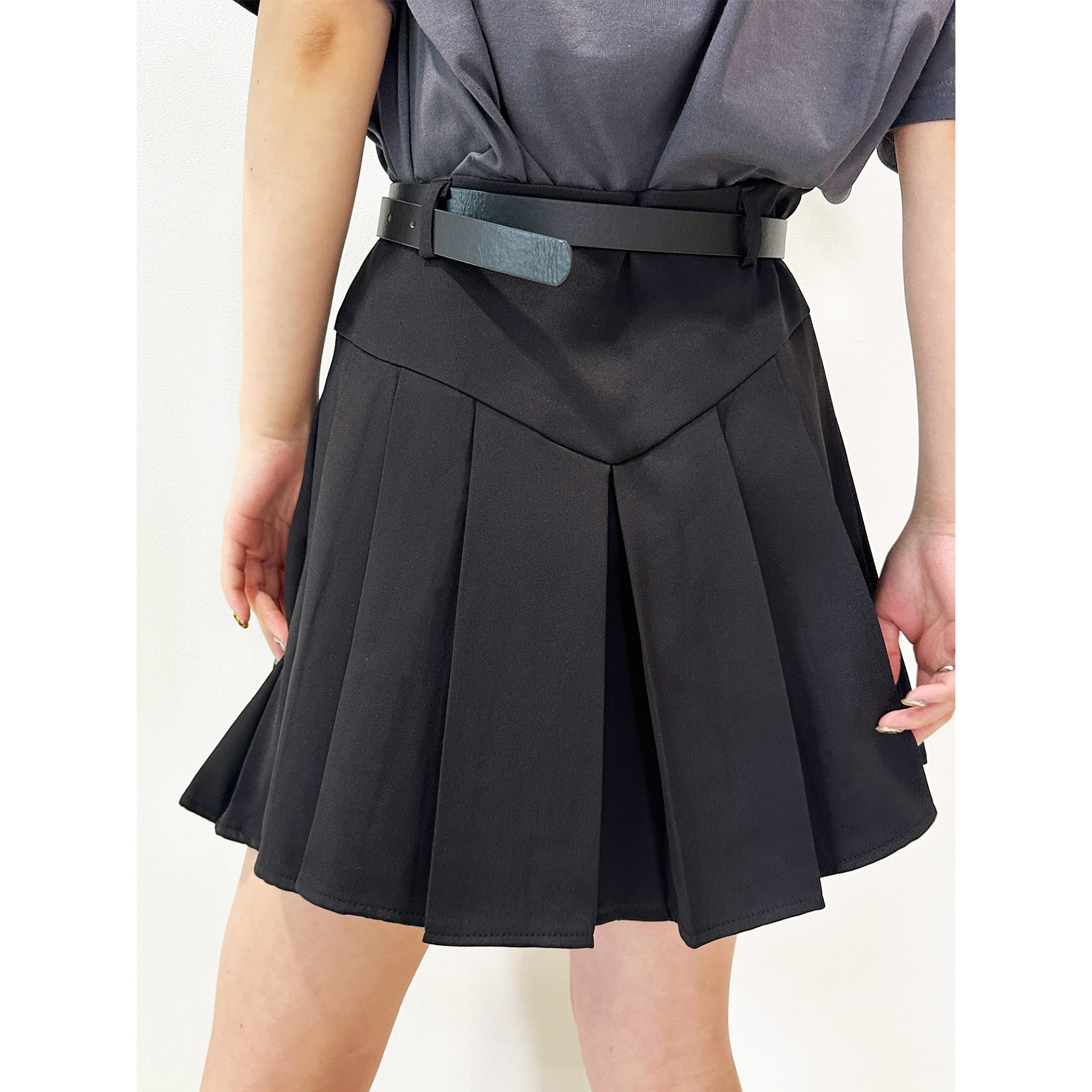 ベーシックなアイテムでデイリーに使えるプリーツデザインのスカパン。セットのベルトとハイウエストのデザインが腰回りをすっきりと見せスタイルアップ効果も発揮♪オールシーズン着用可能で、
