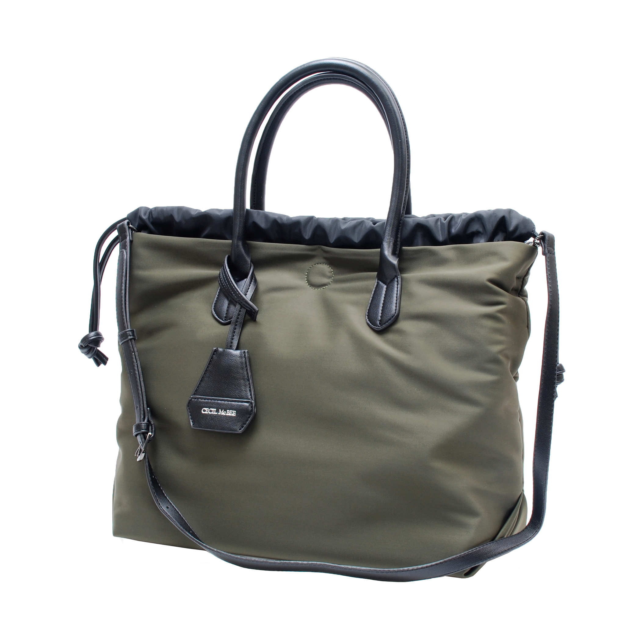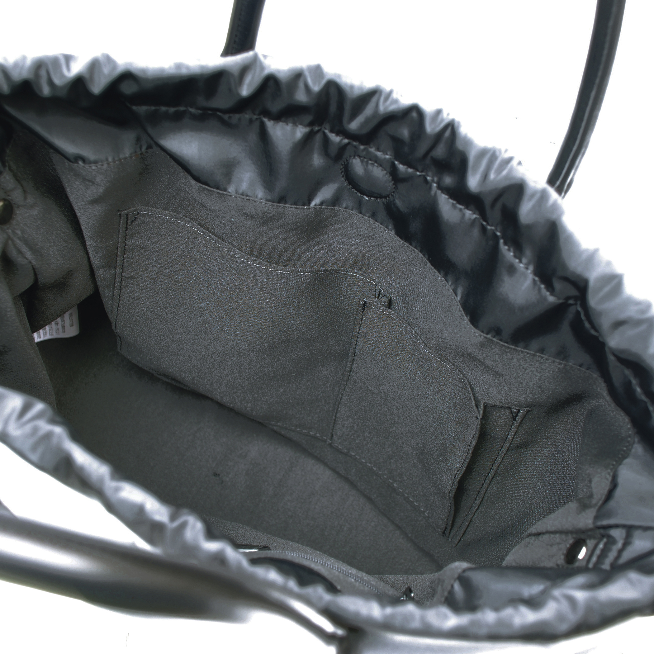 巾着を絞ってその日の気分に合わせてシルエットを変化して使用できます。中の巾着は脱着可能でショルダーバッグとしても使用可能。急に荷物が多くなてしまった時などバッグを2個持ちできる優れたバッグです。