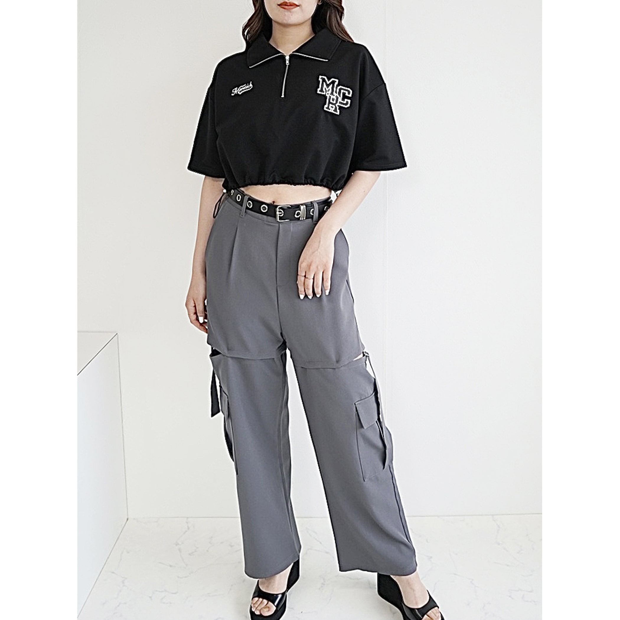 裾部分にドローコードをあしらったショート丈でトレンド感たっぷりなプルオーバー。今年はドローコードをきゅっと絞って着こなすのが◎ハーフジップなので、インナーを合わせたレイヤードスタイルもおすすめです◎