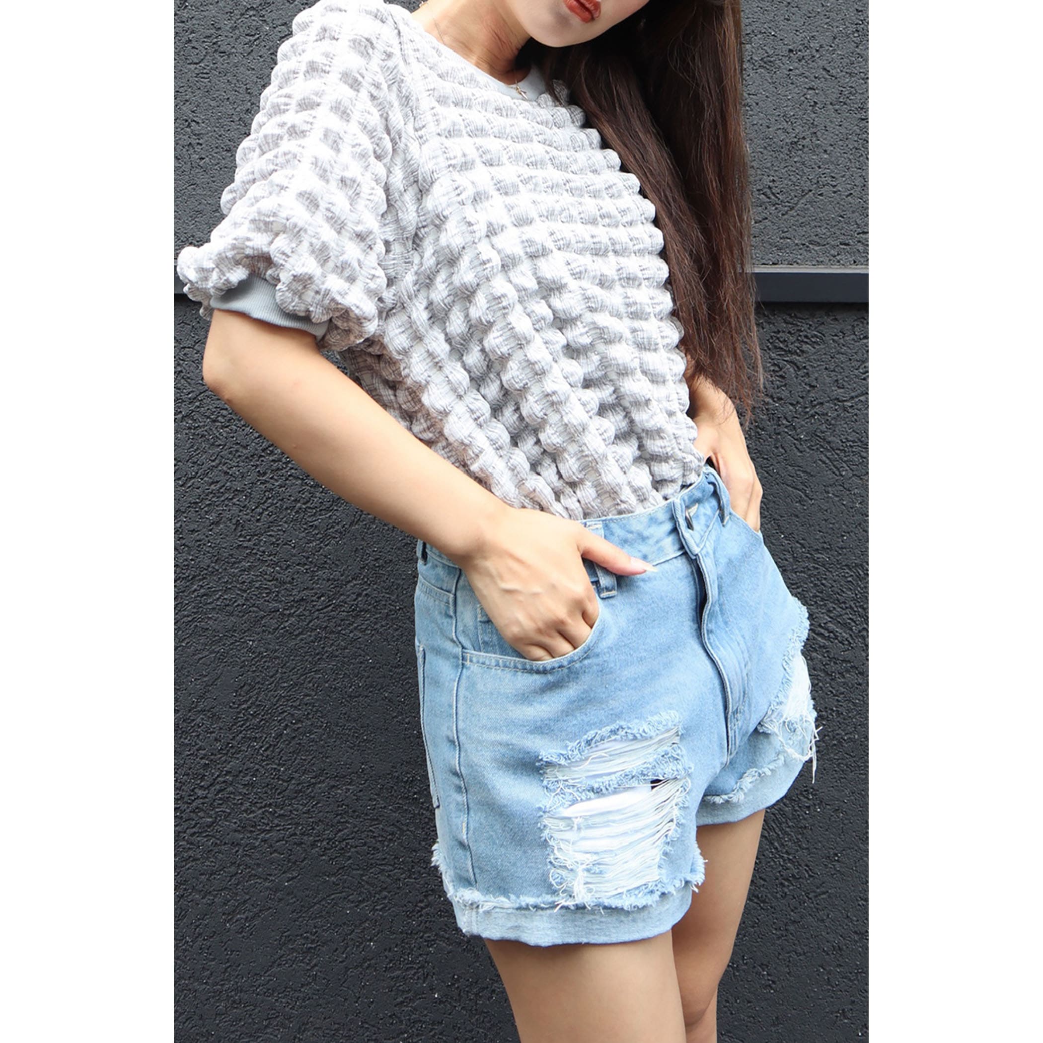 大胆なダメージ加工でヘルシーな肌見せが叶うデニムショートパンツ!オールシーズンで使いやすいデニムショートパンツ♪裾の切りっぱなしデザインとこだわりのダメージ加工でおしゃ見え確実!!さらにヴィンテージ風のウォッシュ加工入りで、履くだけで周りと差をつけるこなれ感♪