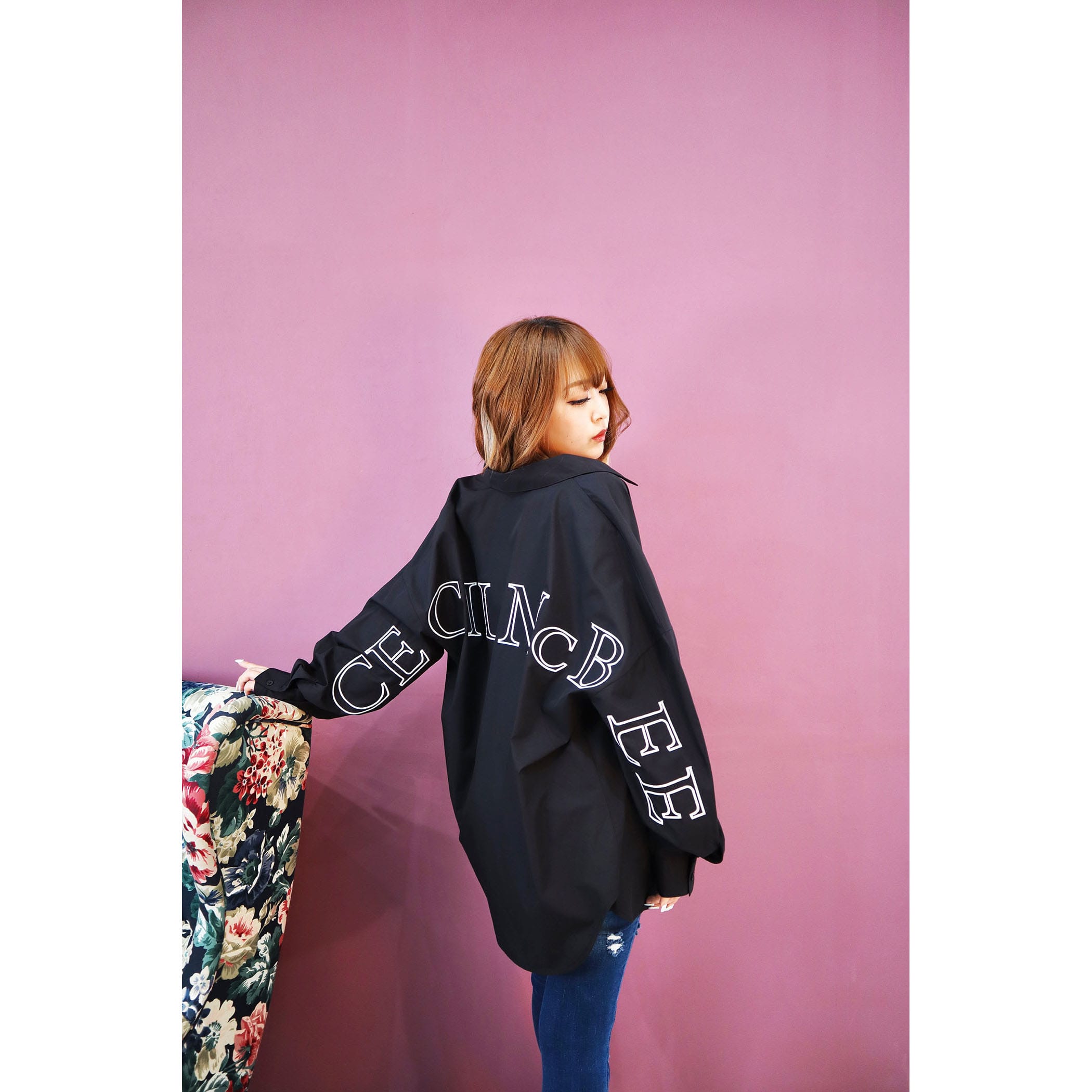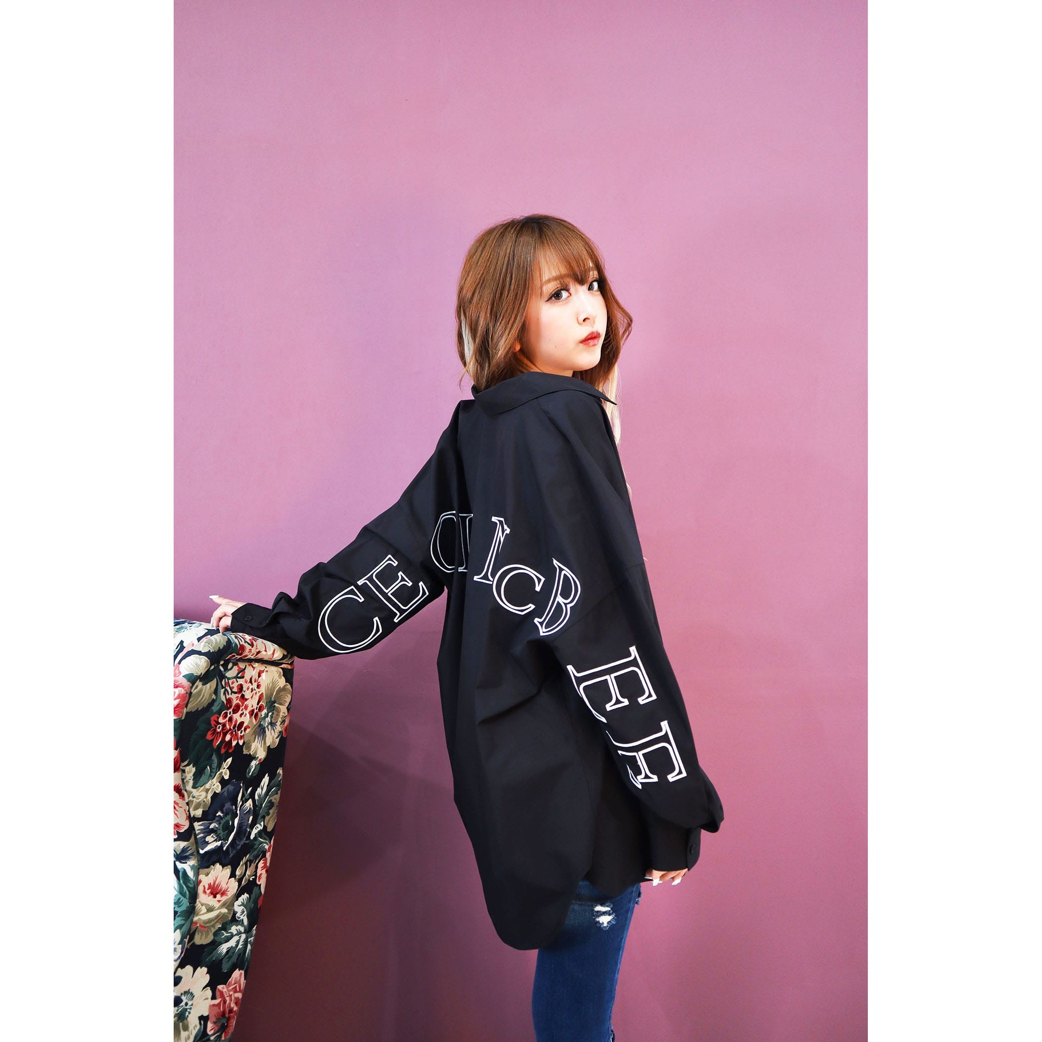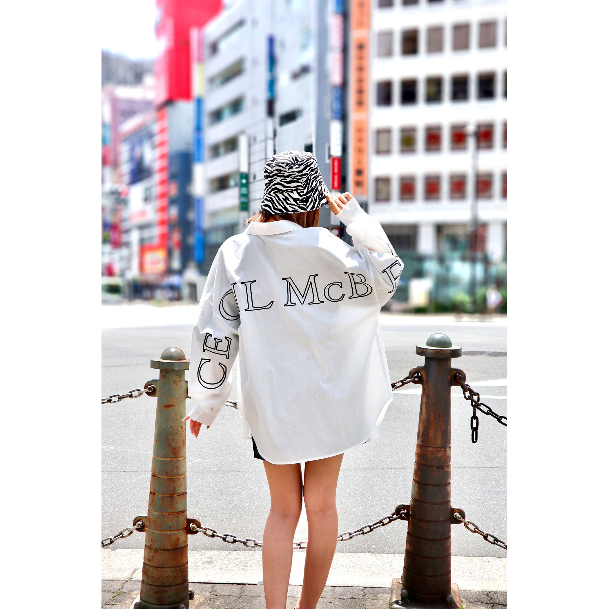 バックに大胆にセシルマクビーのロゴ刺繍の入ったルーズシャツ。ビックシルエットでドロップショルダーデザインなので、着用するだけで抜け感とこなれ感を持たせてくれるシルエットです。羽織としてもシャツとしても着回しのきく一枚です。スキニーやショートパンツ・タイトスカートやワンピの羽織など、辛めのアイテムとコーディネートしていただくのがオススメです。