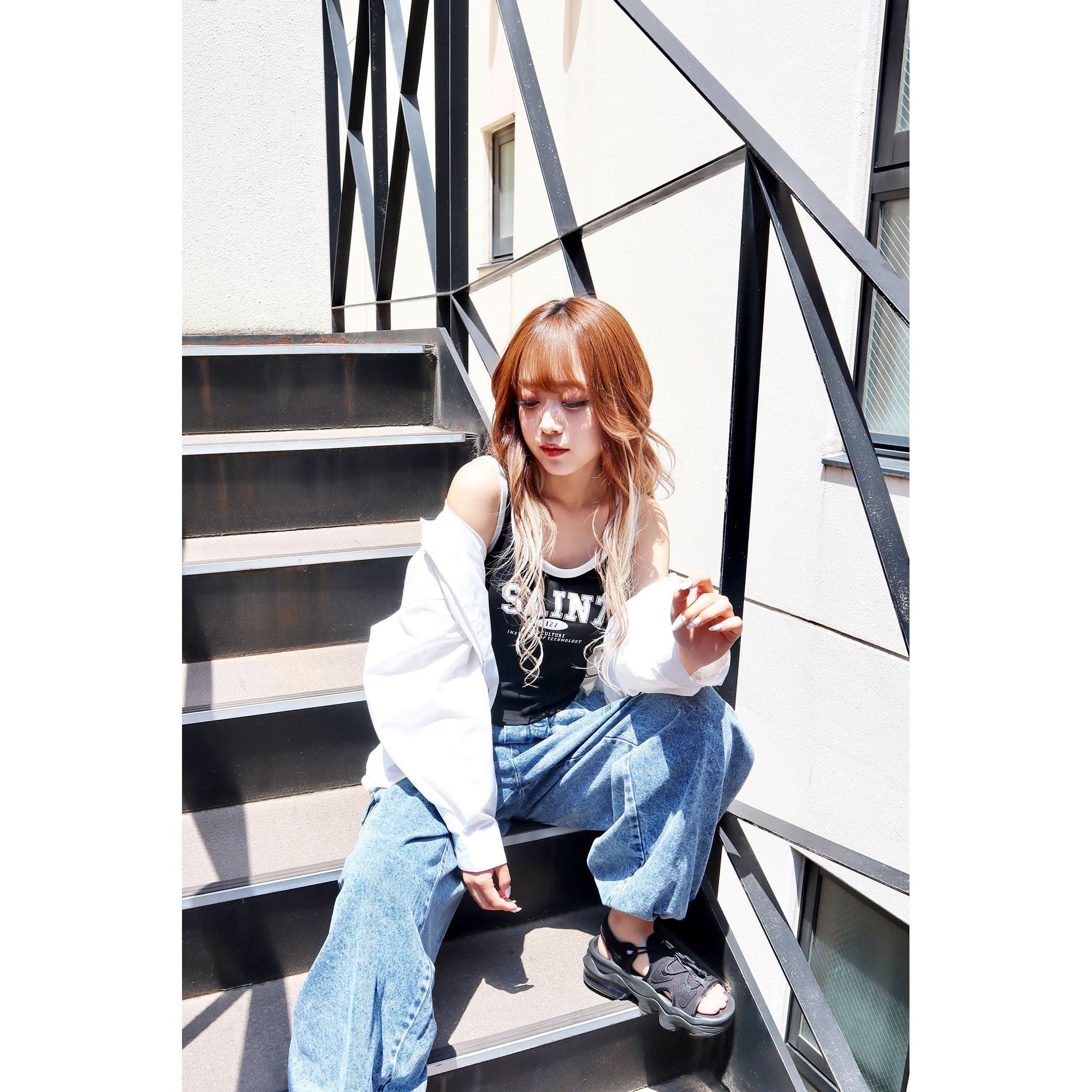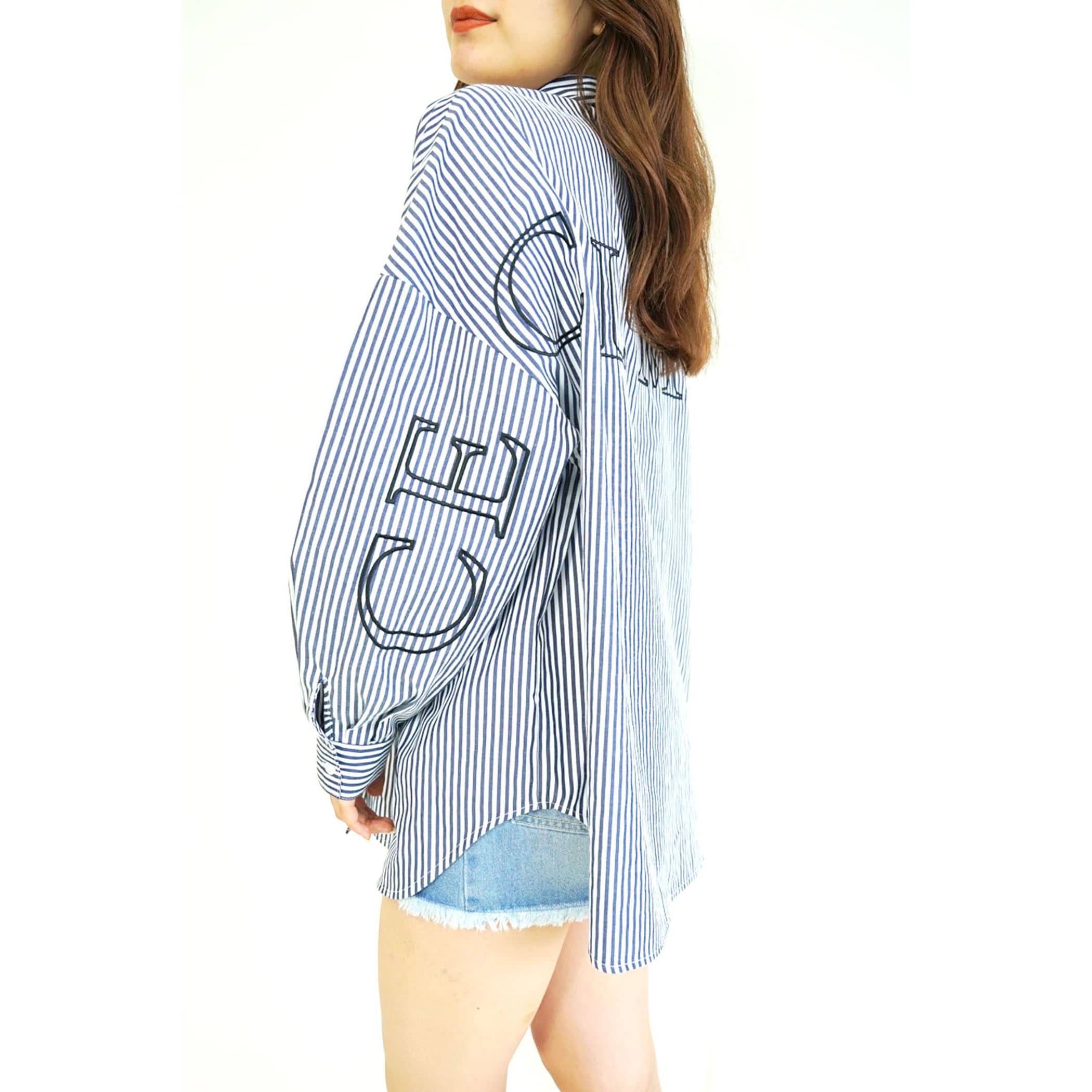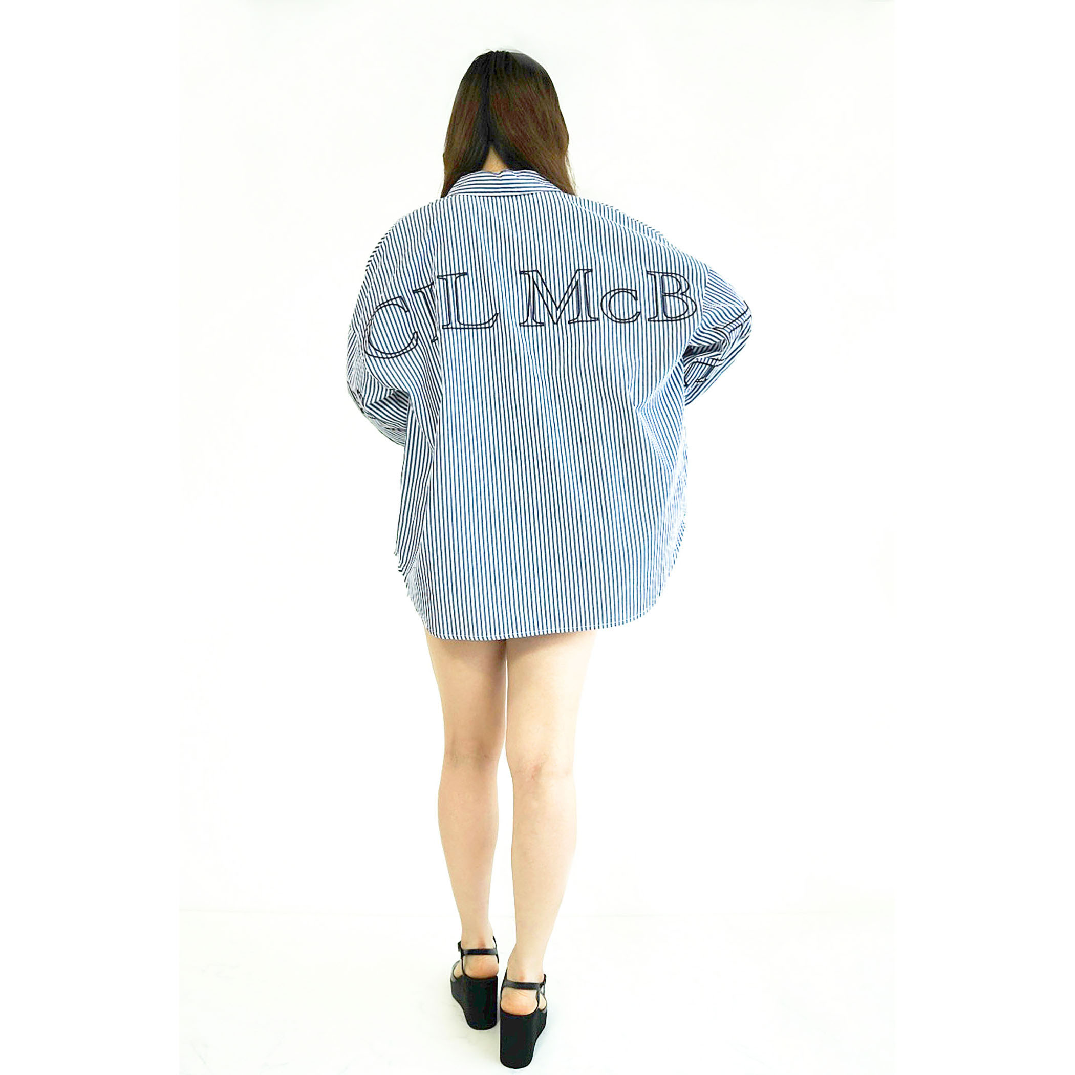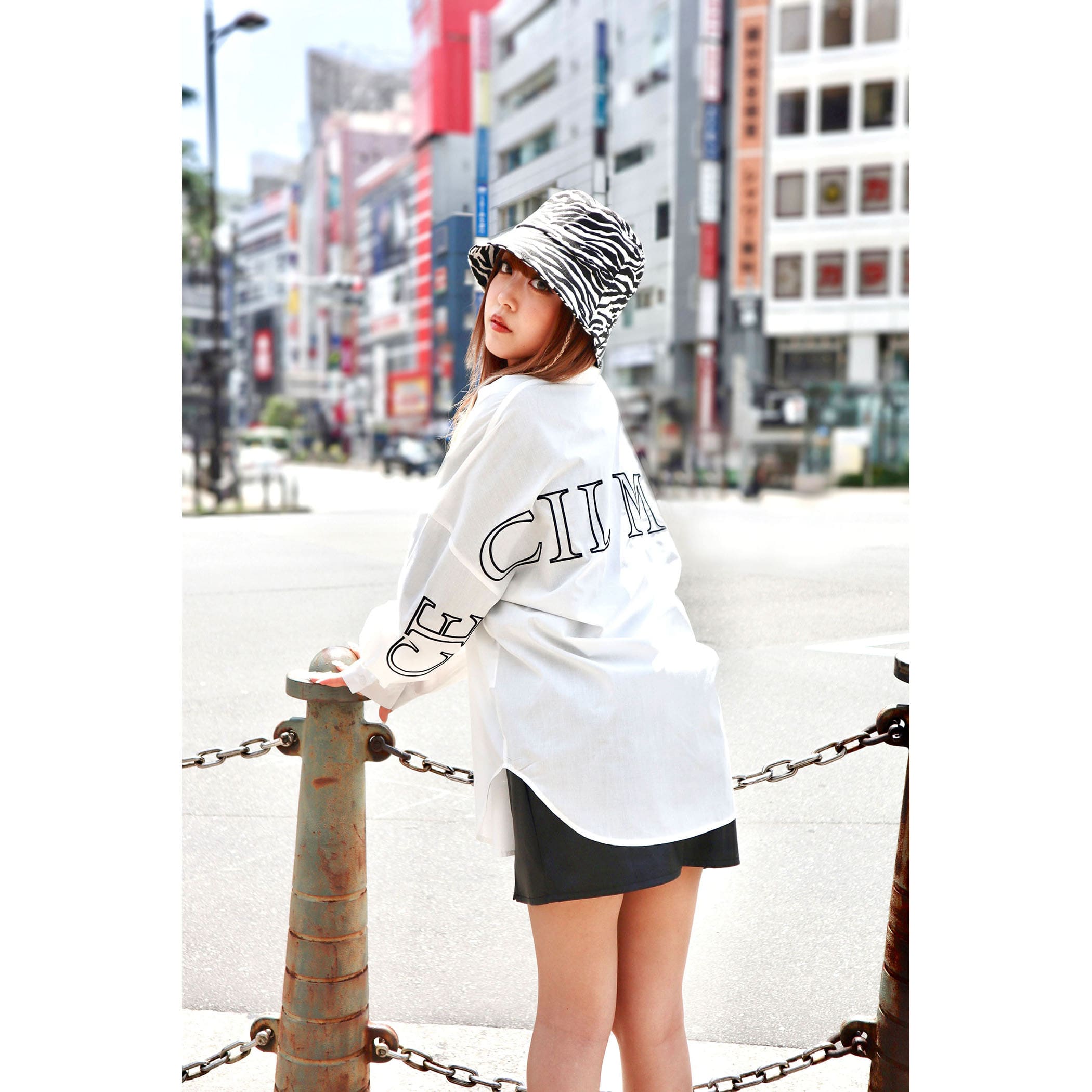 バックに大胆にセシルマクビーのロゴ刺繍の入ったルーズシャツ。ビックシルエットでドロップショルダーデザインなので、着用するだけで抜け感とこなれ感を持たせてくれるシルエットです。羽織としてもシャツとしても着回しのきく一枚です。スキニーやショートパンツ・タイトスカートやワンピの羽織など、辛めのアイテムとコーディネートしていただくのがオススメです。