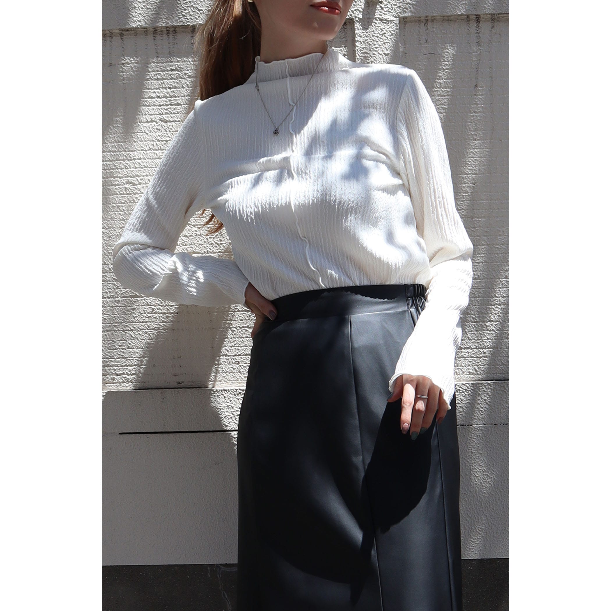 表面感のあるジャガード生地を使用したメロートップス。今季も引き続き、レイヤードスタイルに欠かせないマストアイテム。一枚での着用はもちろん、ニットやスウェット、ワンピースのインナーとしてアクセント使いも出来るので長い間重宝していただけるアイテムです。