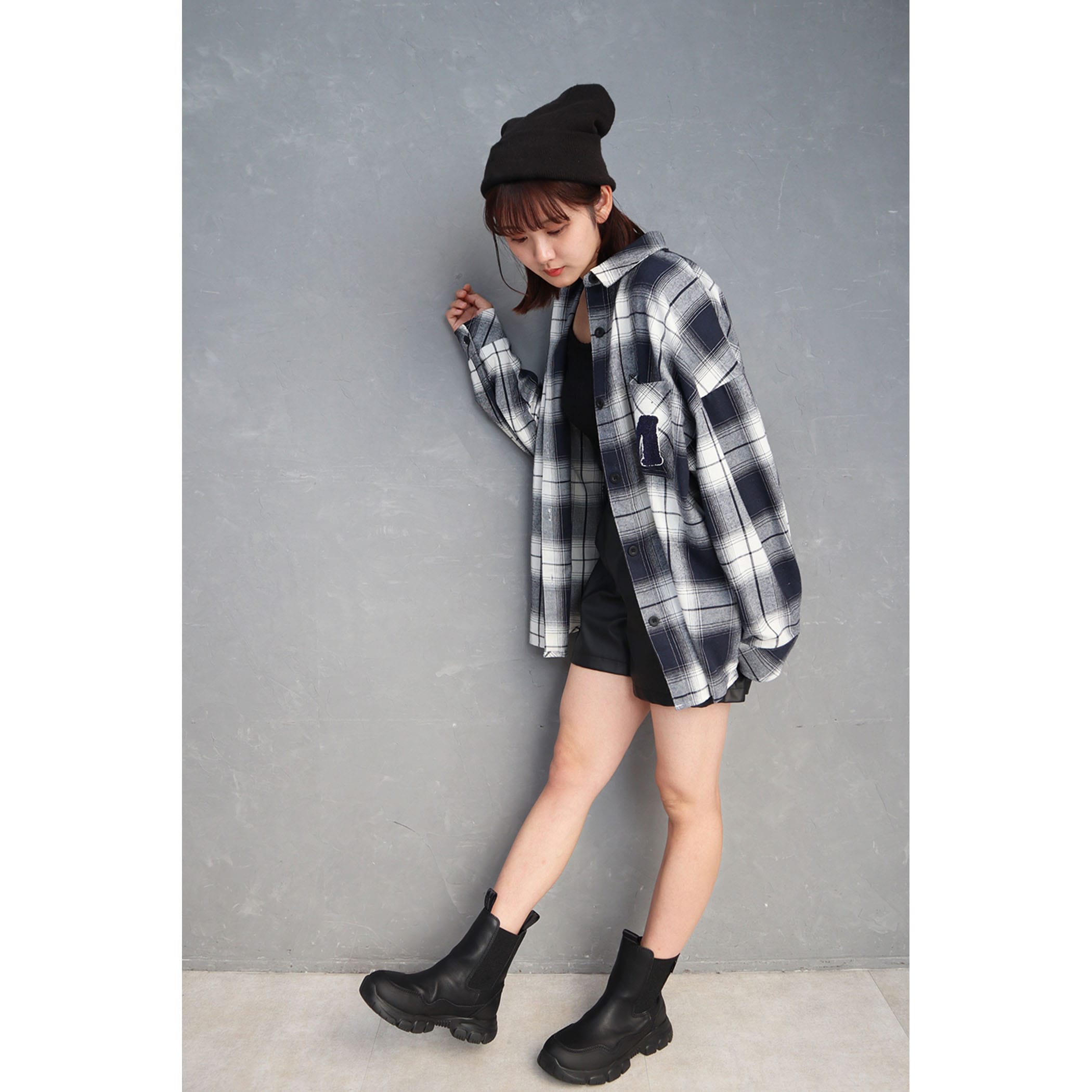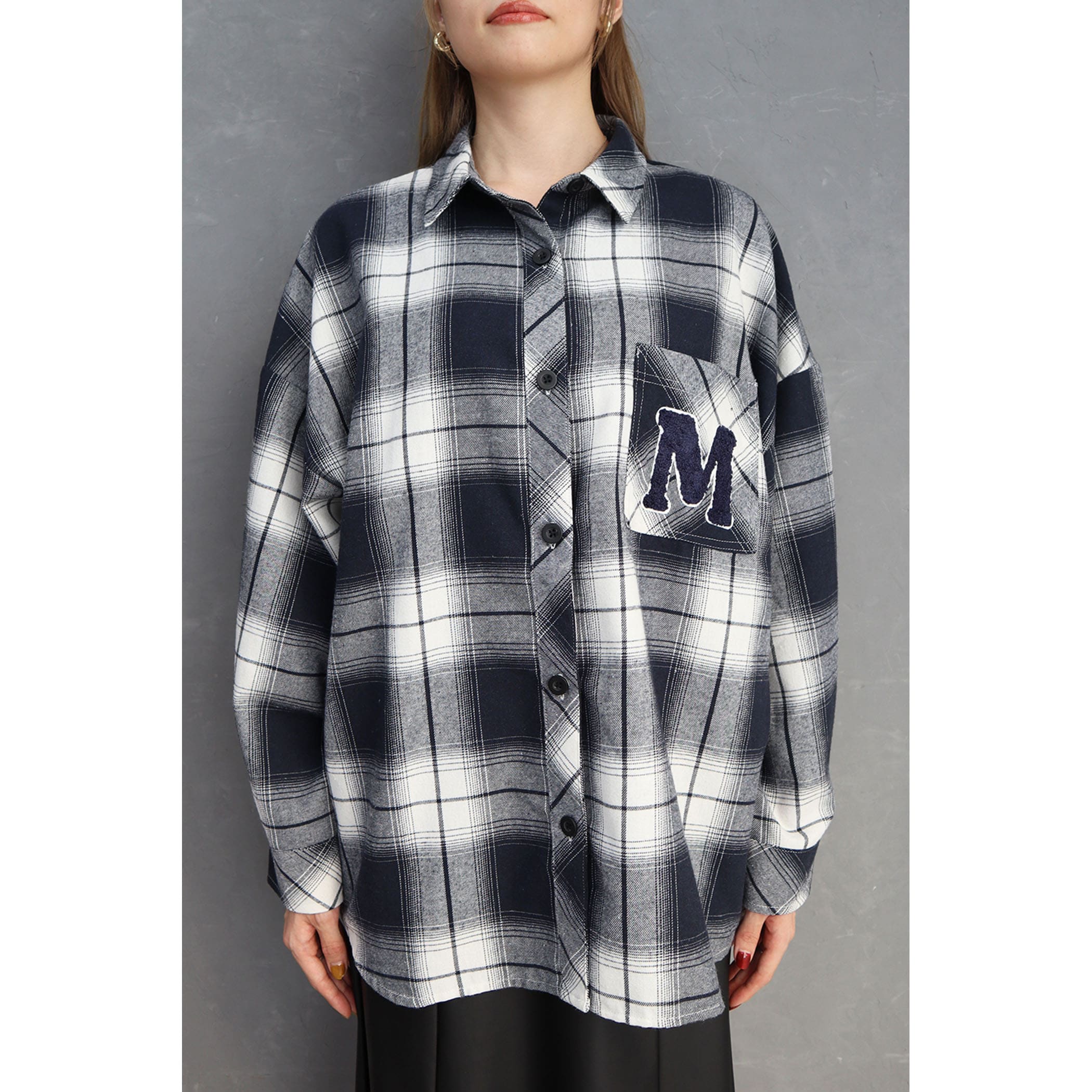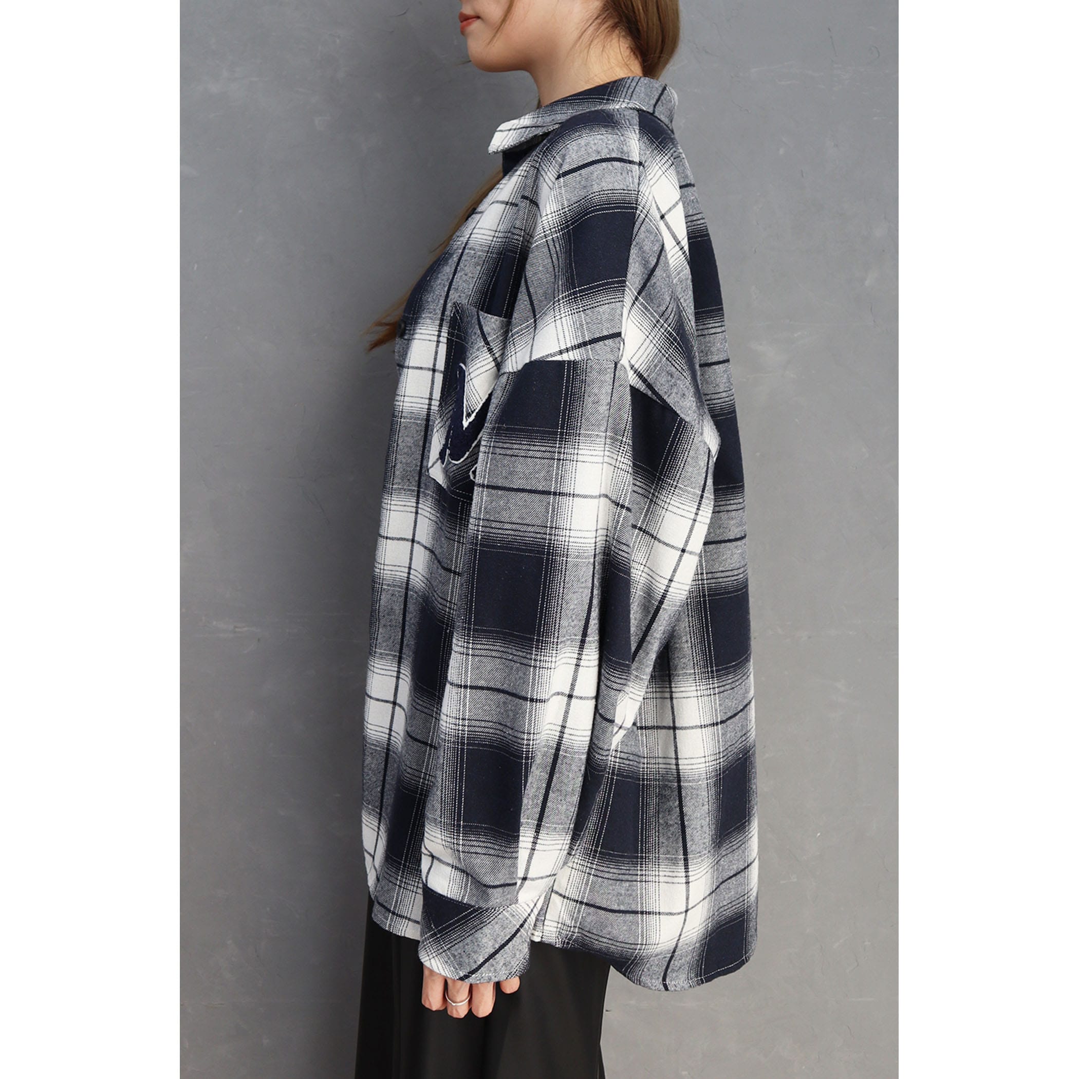 胸元のワッペンがポイントのオーバーサイズチェックシャツ。華奢に見せてくれるドロップショルダーかつビックシルエットなので、スキニーやパンツアイテムとのコーディネートがオススメです。シャツとしても、秋の羽織としても着回しできます。着こなし方次第でメンズライクにもレディライクにも着こなせるアイテムです。