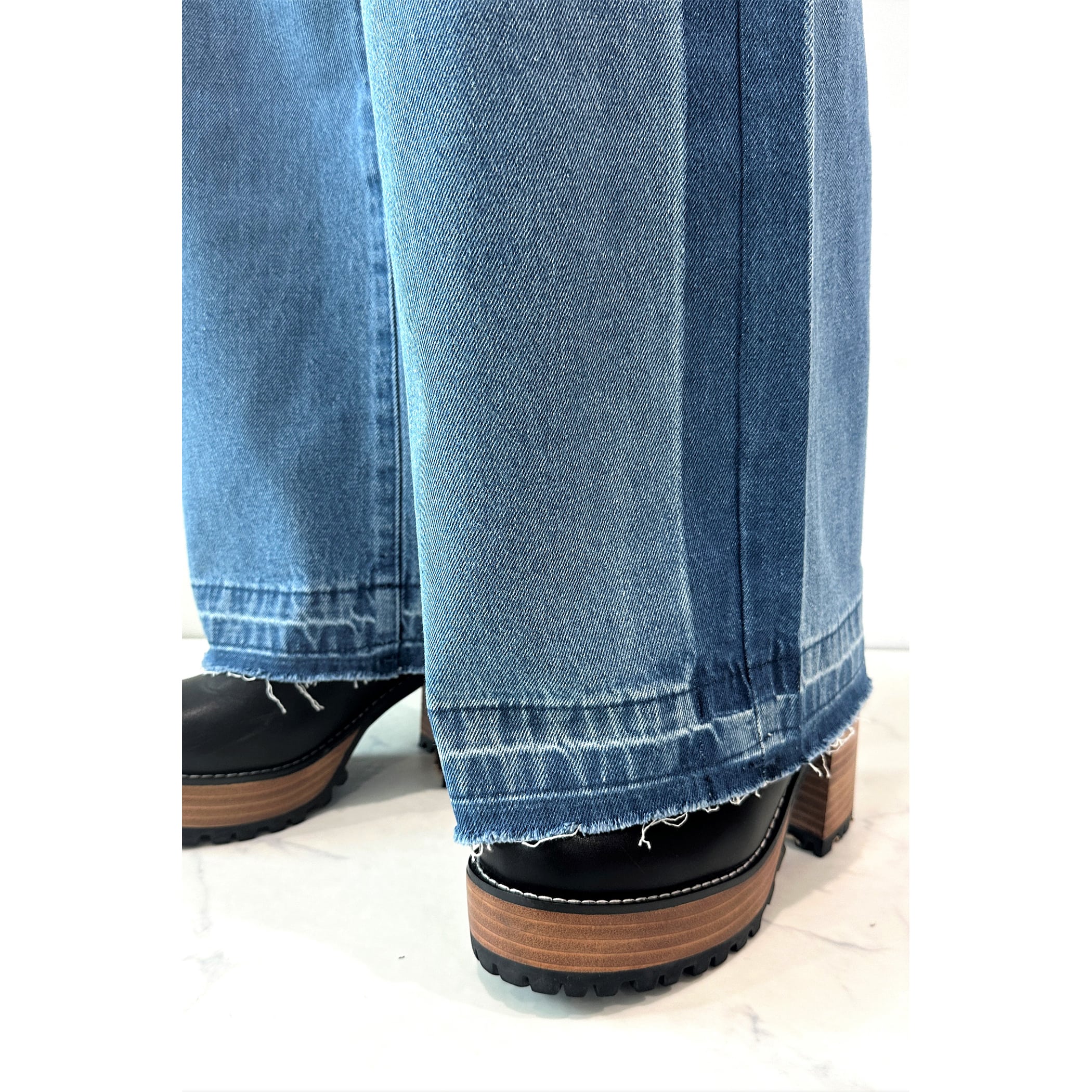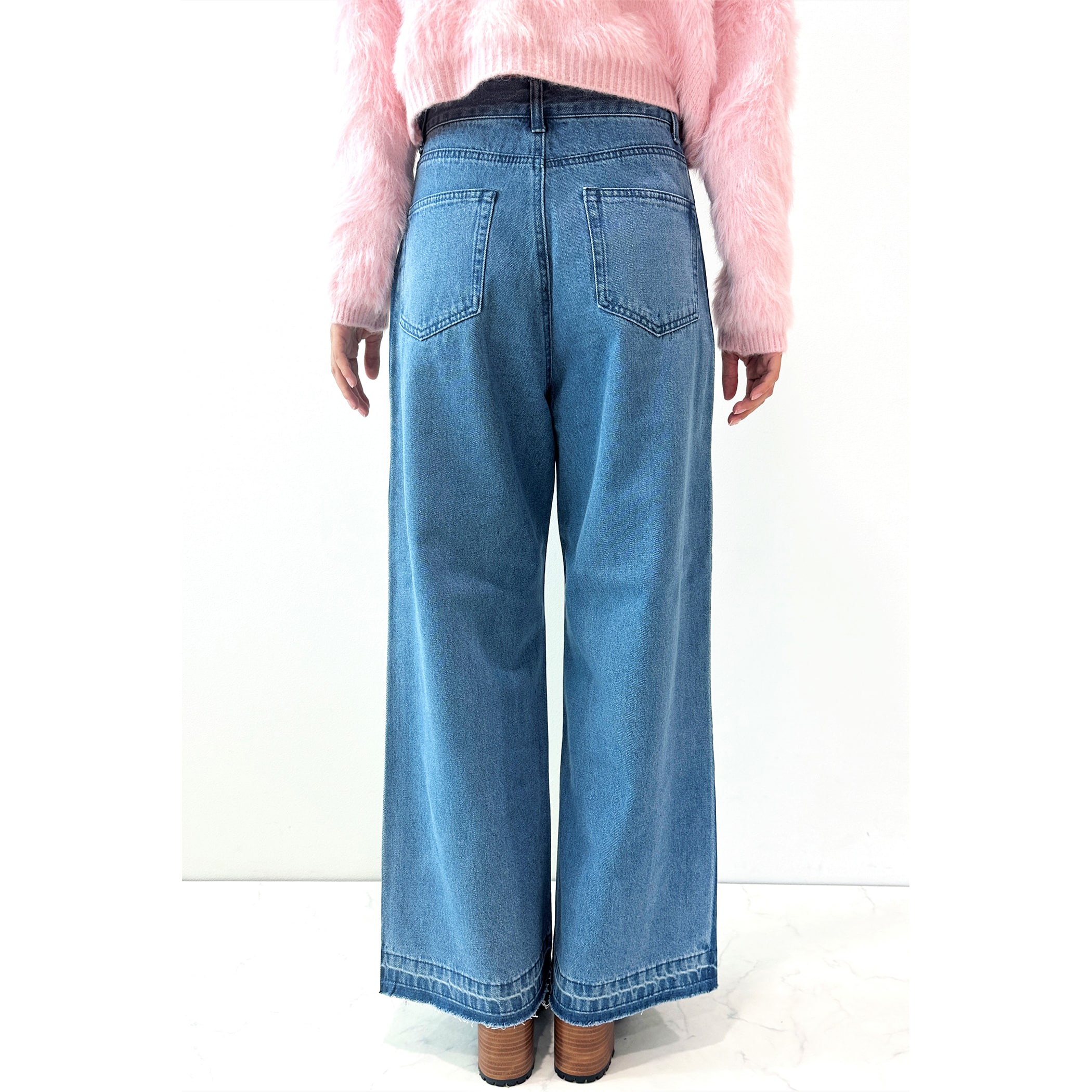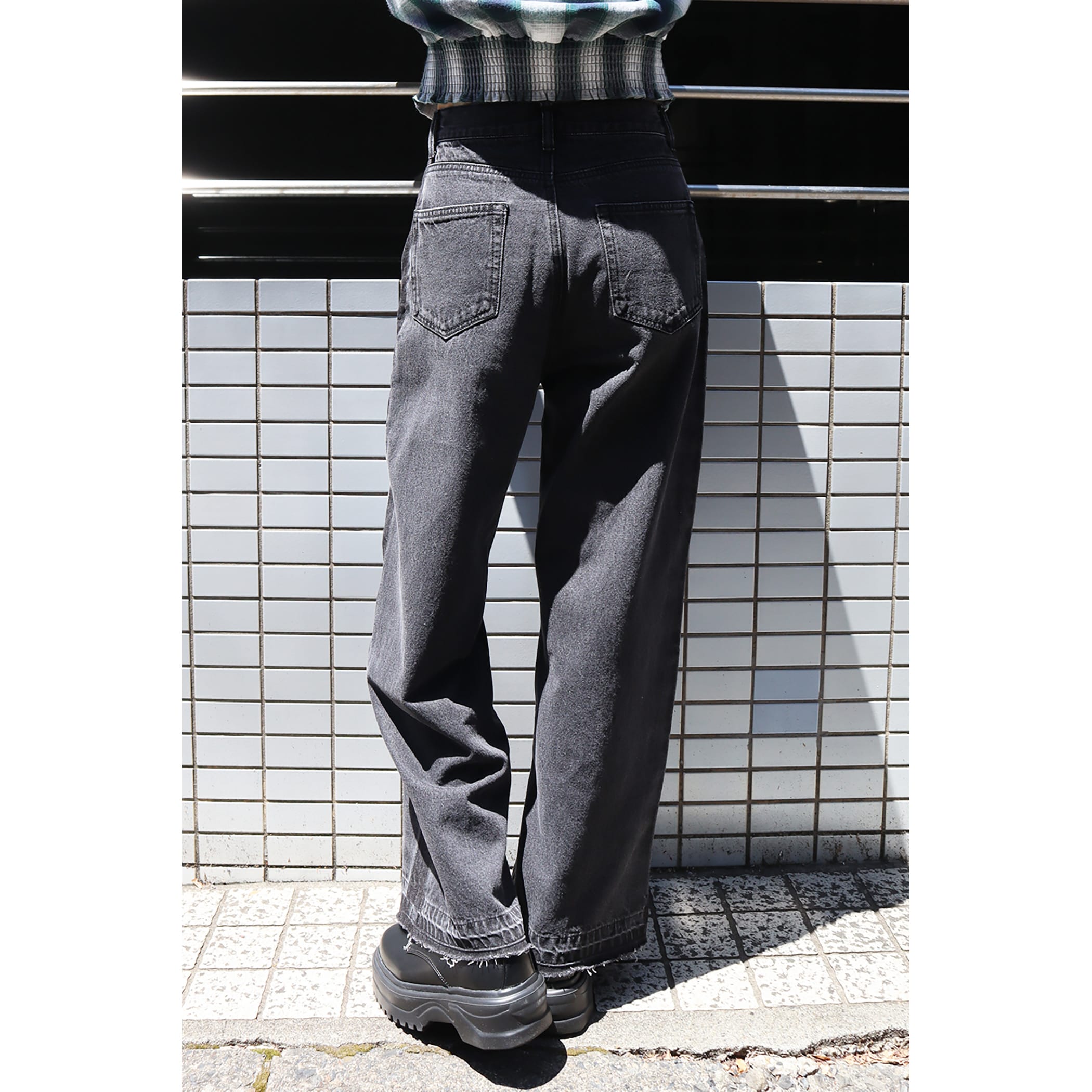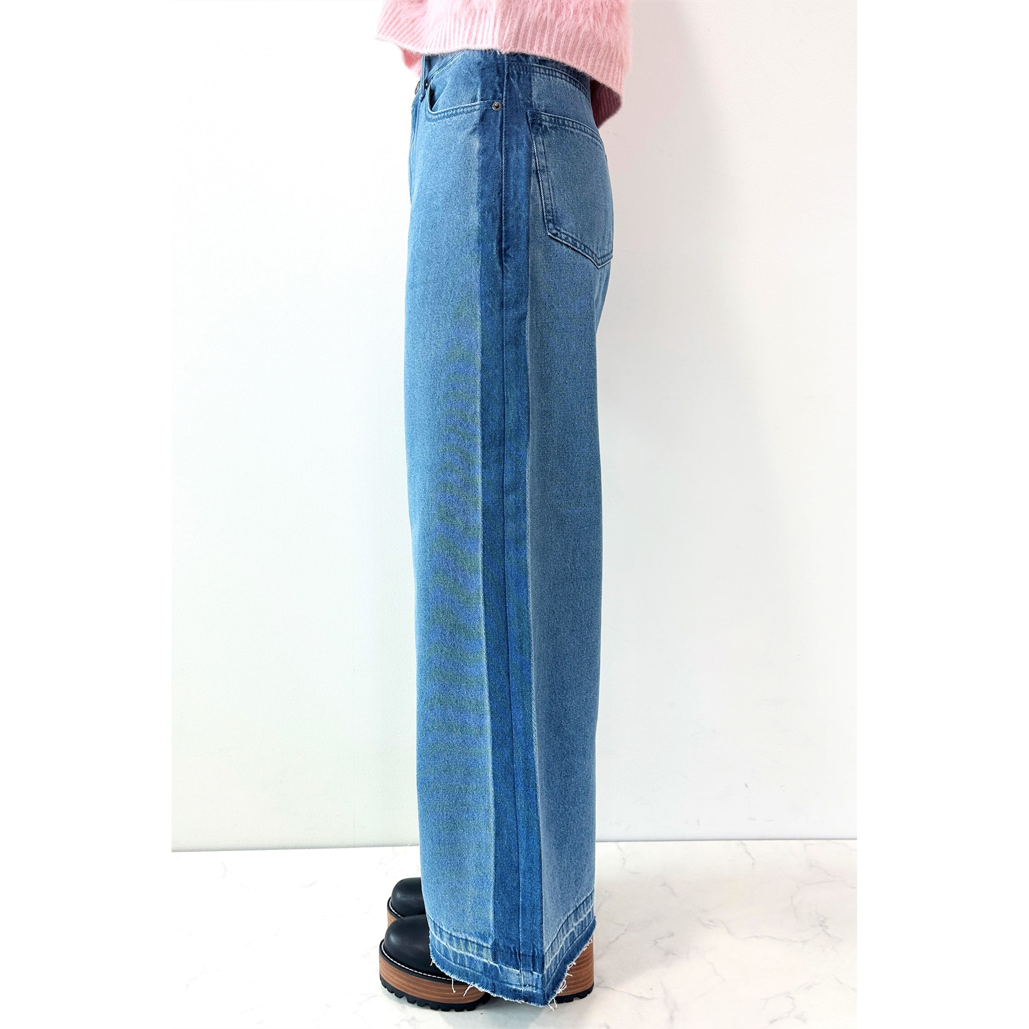 サイドにさりげなくラインが入ったデニムパンツラインが入っていることで美脚効果も◎カジュアルコーデからキレイめコーデまで着回しのきく1枚です。オールシーズン履ける定番アイテムです。