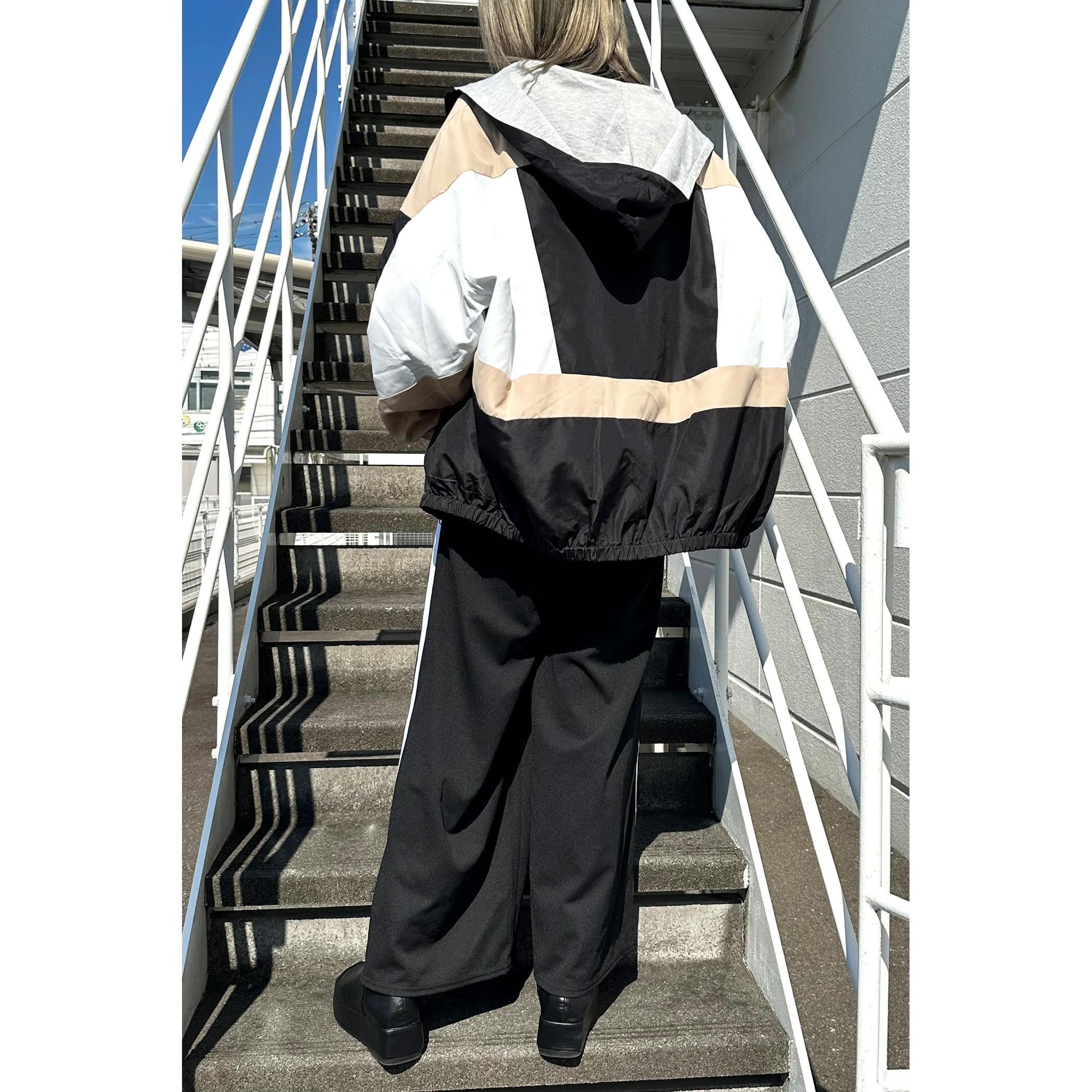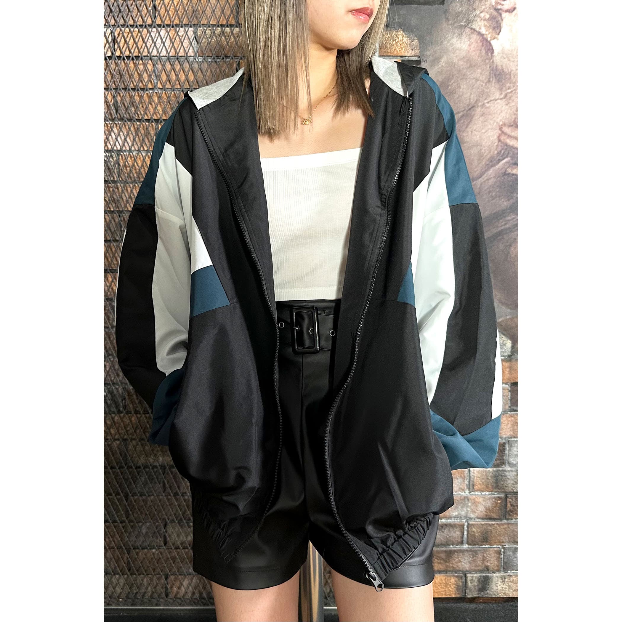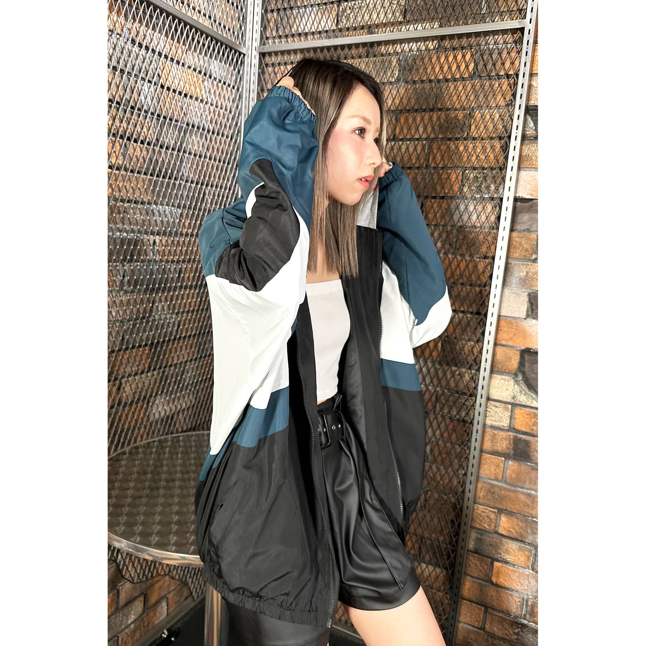 フーディ配色切替ブルゾン