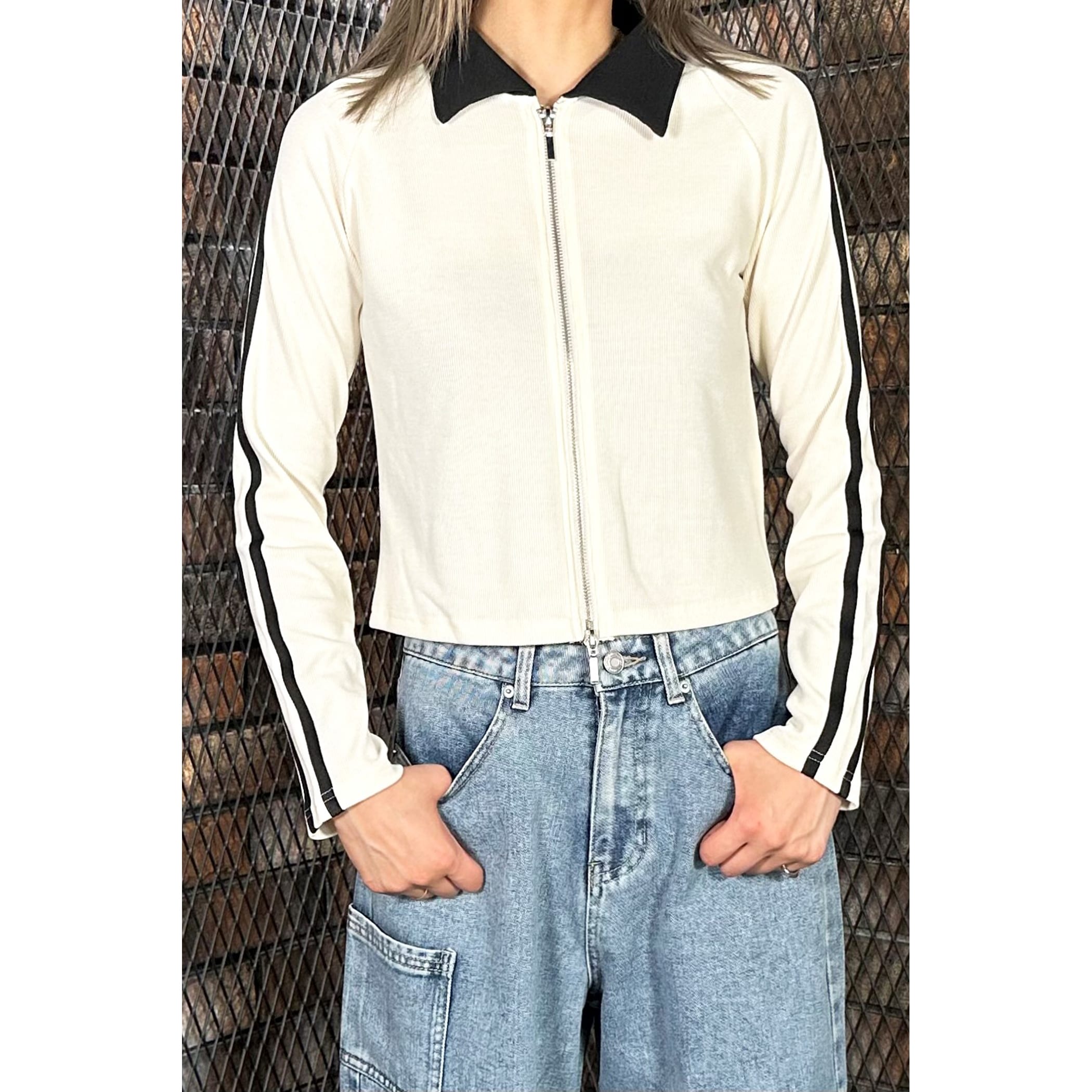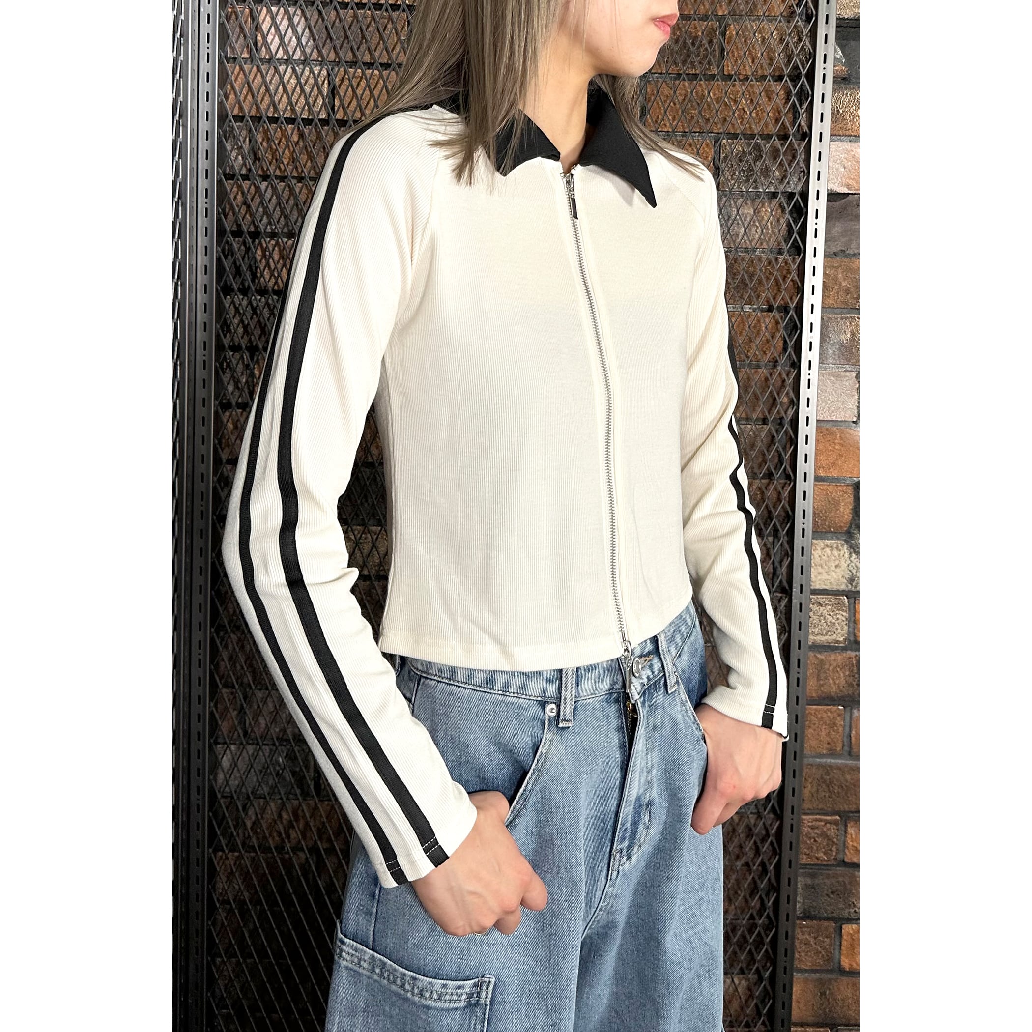 スポーティーデザインながらもコンパクトシルエットが女性らしいWジップリブカーディガン。Wジップが程よい肌見せを叶えてくれて、リブが縦ラインを強調してくれるのですっきりとした印象で着用できます。程よくフィット感のある生地で身体のラインを拾い過ぎないのも嬉しいポイント。カジュアルな雰囲気のトップスなので、スカートなどフェミニンさを感じるものと合わせるのもおすすめです◎
