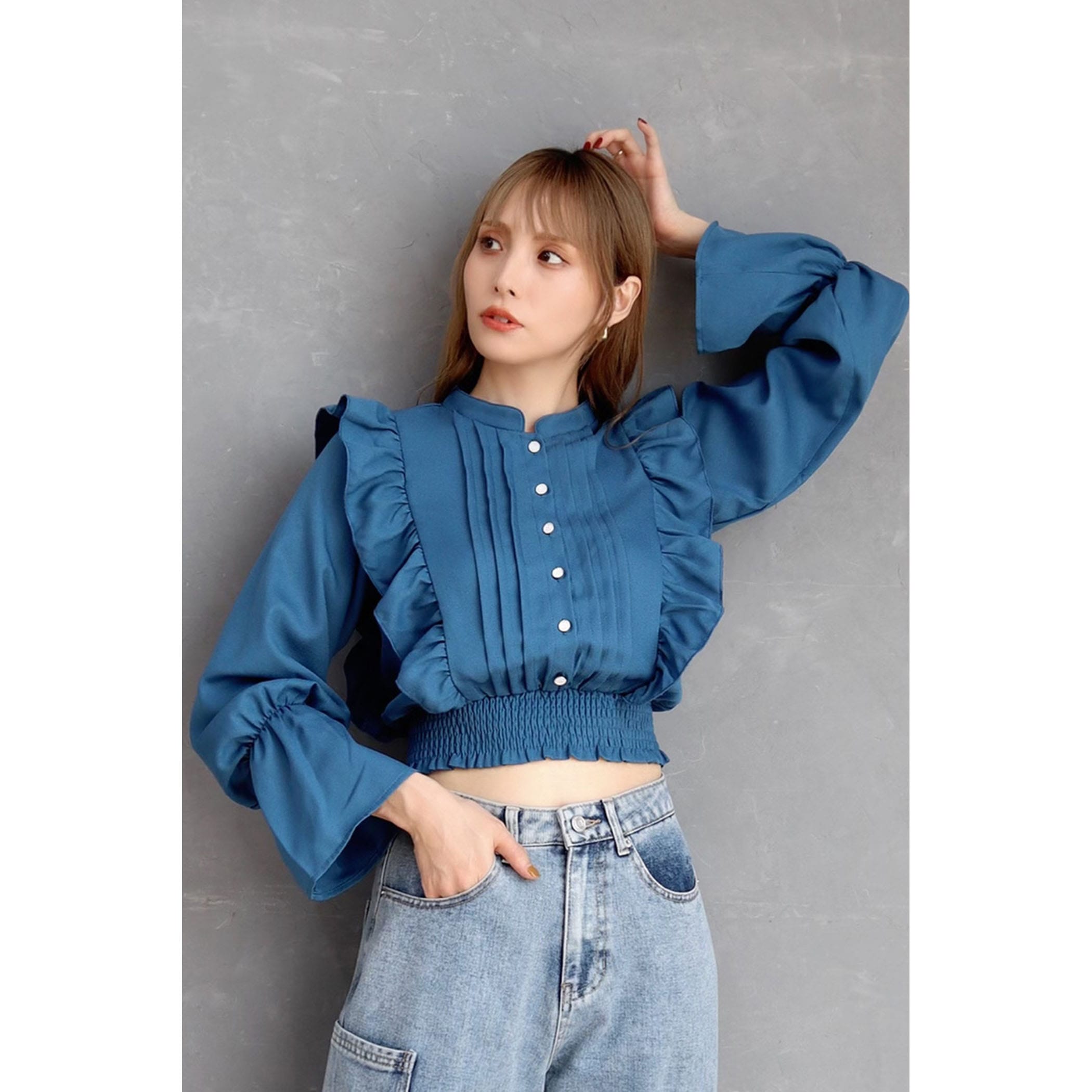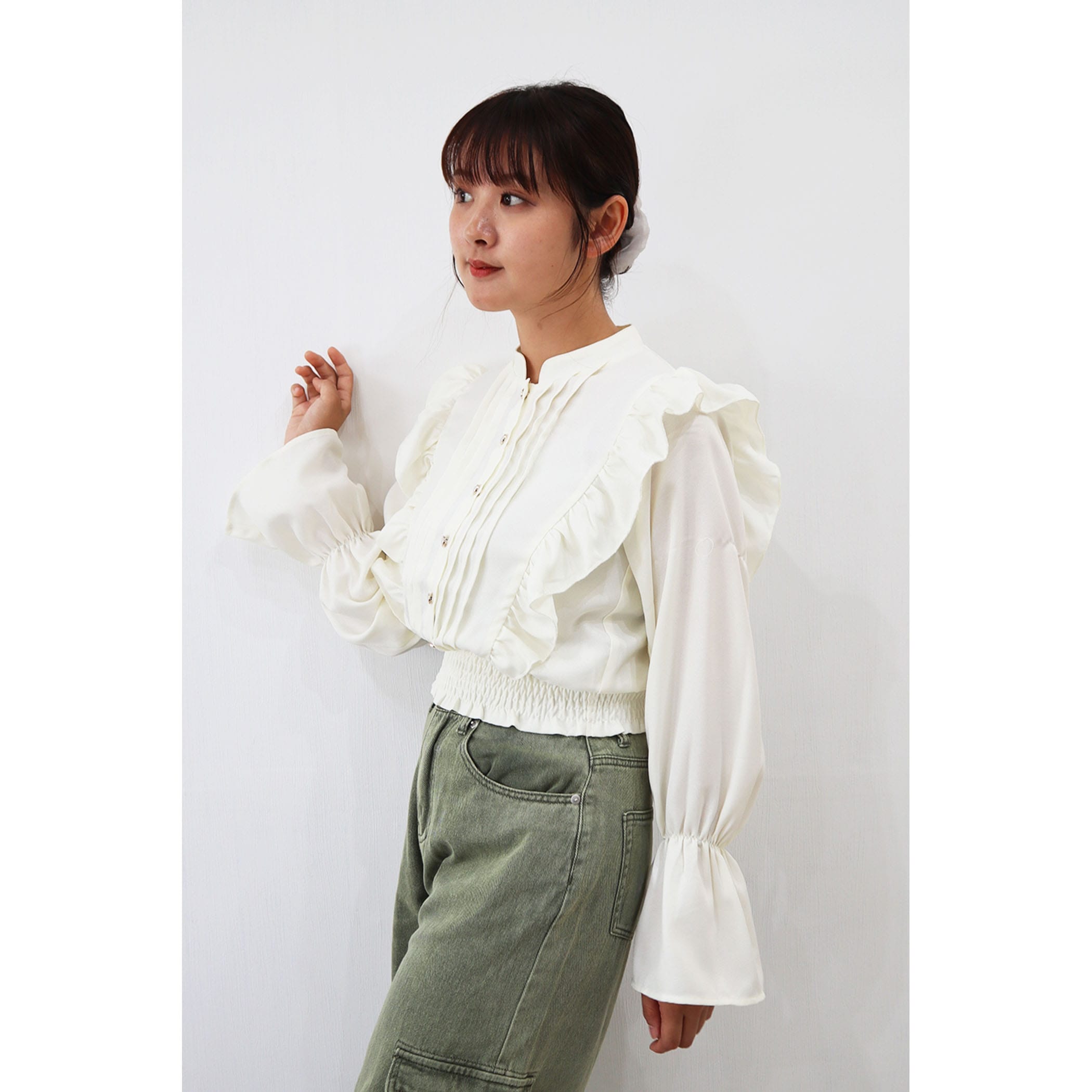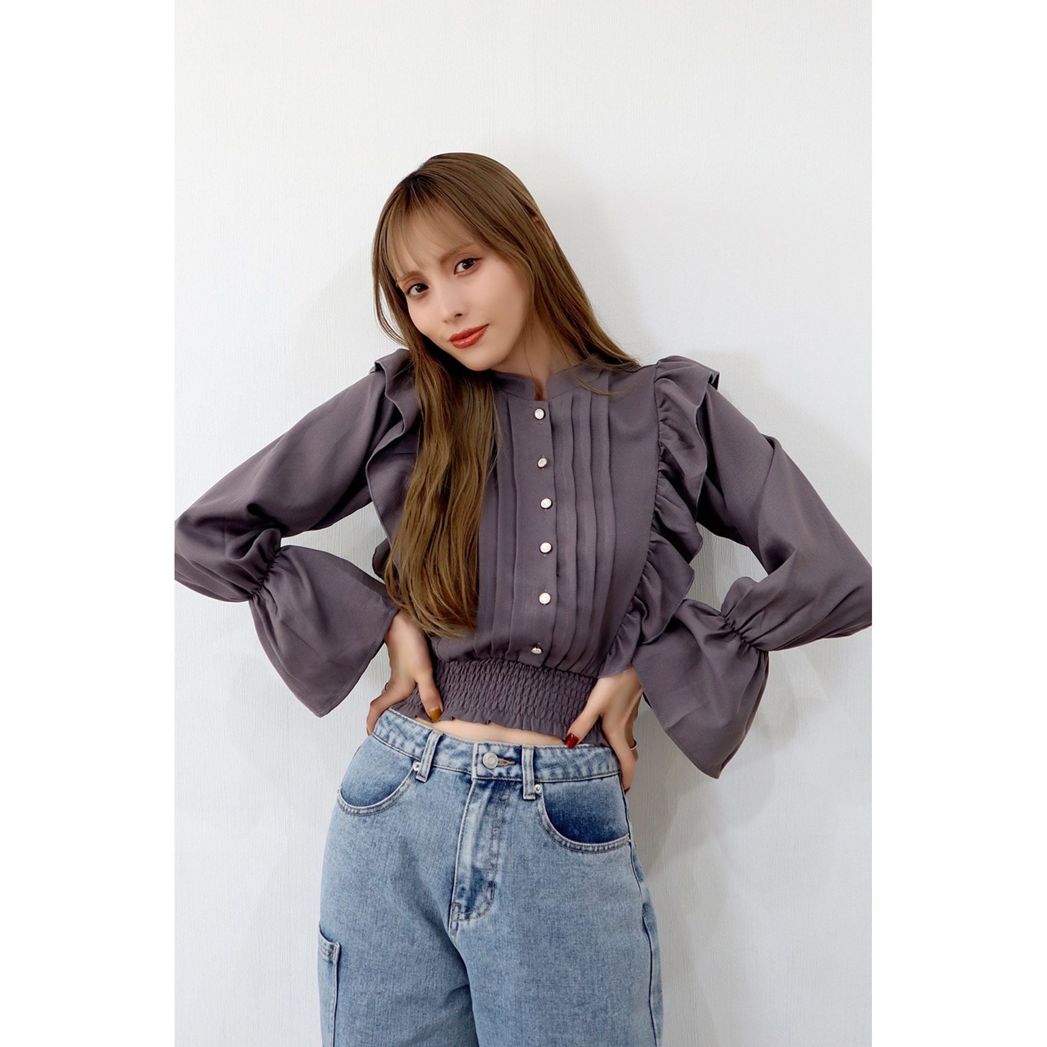 フレアデザインとキャンディースリーブがフェミニンムードを演出してくれるブラウス。パールボタンもとってもキュート?ウエストのシャーリングがアクセントになっており、ウエストを細く見せてくれます。パンツスタイルにもスカートスタイルにも幅広く着用できる万能アイテムです♪