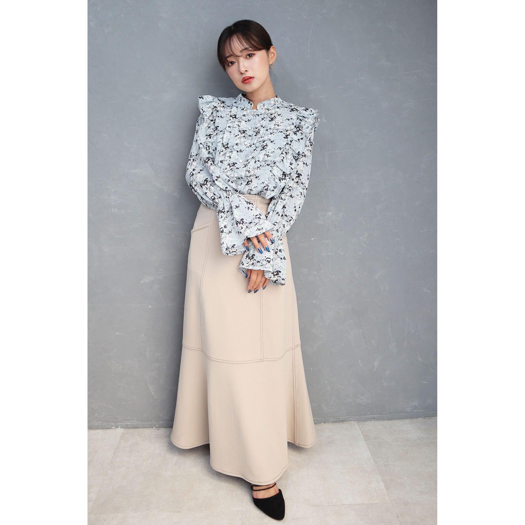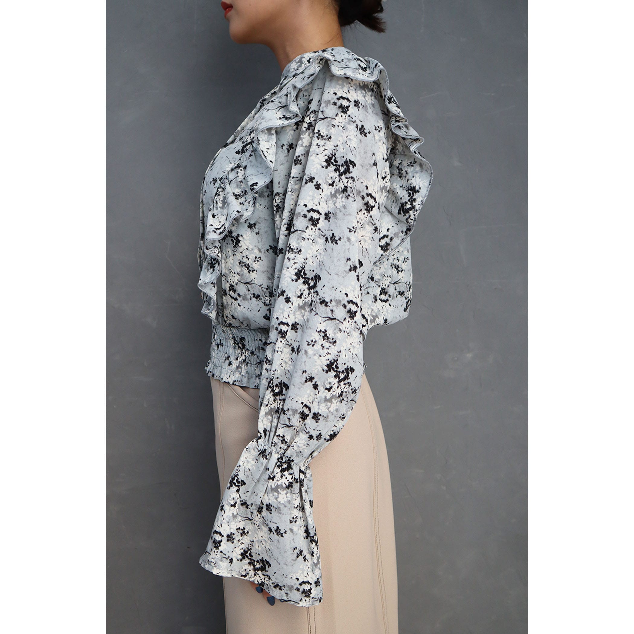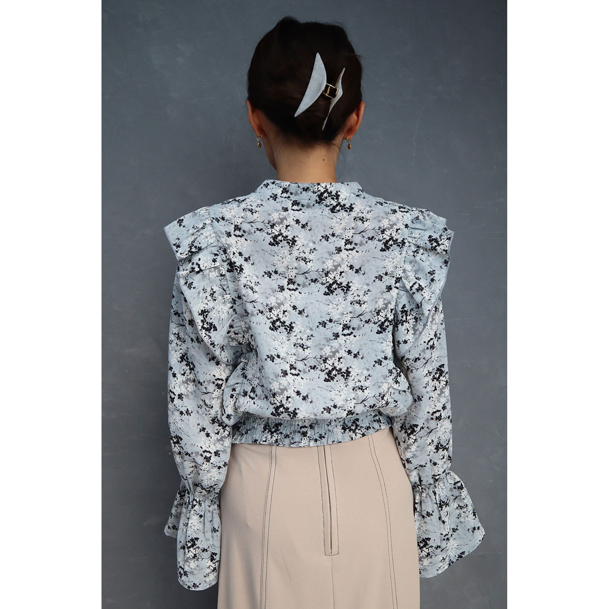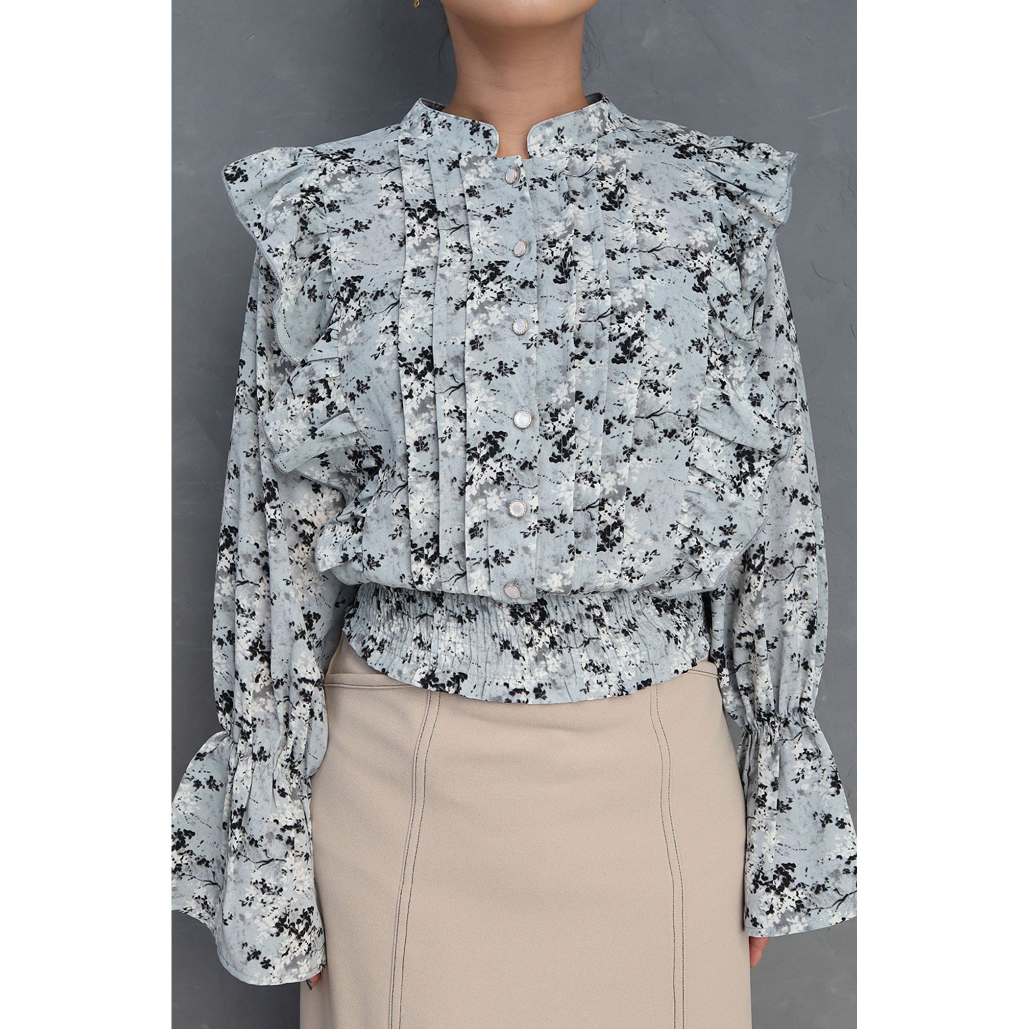フレアデザインとキャンディースリーブがフェミニンムードを演出してくれる花柄プリントのブラウス。パールボタンもとってもキュート?ウエストのシャーリングがアクセントになっており、ウエストを細く見せてくれます。パンツスタイルにもスカートスタイルにも幅広く着用できる万能アイテムです♪